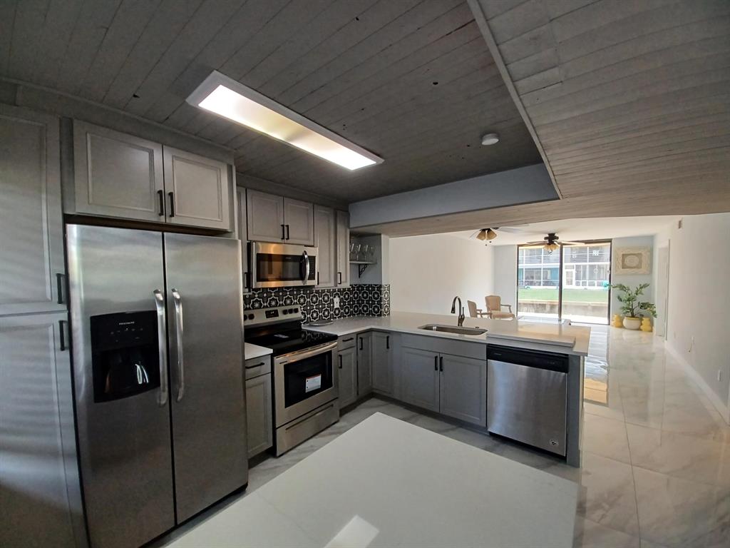 JUST REDUCED BELOW MARKET VALUE!!!This contemporary two bedroom, two bathroom ground-level condo was newly redesigned and offers an abundance of natural light, an open floor plan and a view of the Intracoastal & Hypoluxo Island from the waterside private patio and adjacent Master bedroom entry.Beautiful custom designed kitchen boasts quartzite counters, sleek grey cabinets, and stainless steel appliances. The master suite has ample closet space and an oversized shower.This condo can be used as a primary, secondary, or income producing investment property immediately. The gated community of ”Hidden Harbor of the Palm Beaches” offers many amenities to enjoy such as a clubhouse, swimming pool and tennis courts.