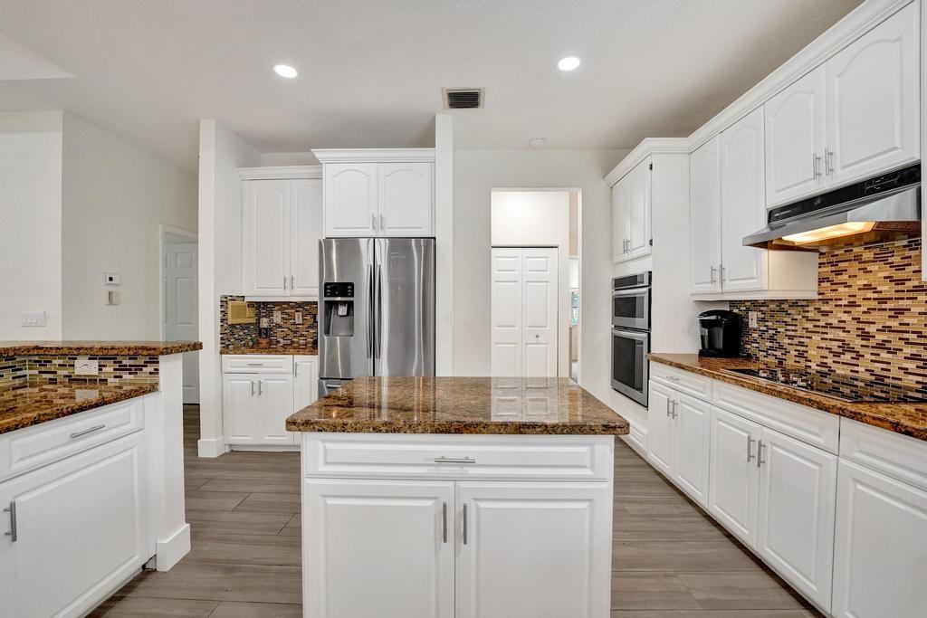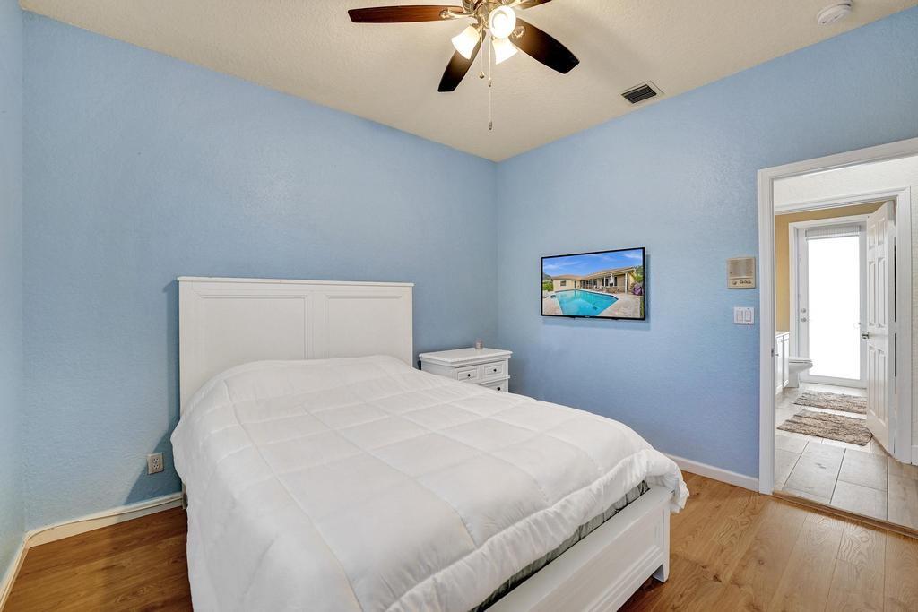 Welcome to an exquisite sanctuary nestled in the prestigious gated community of Country Glen. This Windsor Model boasts a desirable split bedroom floorplan, high vaulted ceilings, new wood-look tile flooring, remodeled open kitchen, new contemporary fans & lighting fixtures, impact windows & doors throughout and a 3-car garage with mini-split AC. Step outside to your private oasis, featuring a newly-diamondbrited pool with a travertine deck, complemented by a relaxing screen porch for optimal outdoor living. The over-sized waterfront lot offers tranquil views & complete privacy. The exclusive 24 hour guard- gated community features tennis, basketball, walking paths, a playground & volleyball court. All of this on top of the A-rated Cooper City schools makes this a can’t miss property!