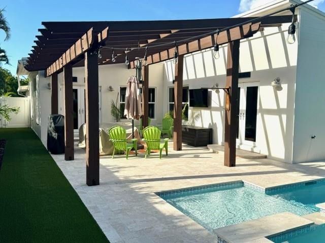 Welcome to Paradise! This turnkey 3 bed/2 bath beach retreat is a perfect home or vacation property that sits just .9 miles from the beach and is walking distance to vibrant Atlantic Ave and Pineapple Grove offering a number of restaurants, boutiques, art galleries and coffee shops. The home has CBS construction and a newer roof (2019) with impact windows/ doors throughout. The backyard will be your own private oasis with a huge pergola and brand new salt water pool and hot tub with a waterfall that spills over into the sun shelf. The front and back yard are also both fully fenced with new tropical landscaping with artificial turf in the backyard. This charming home and beautiful city truly feels like vacation everyday!