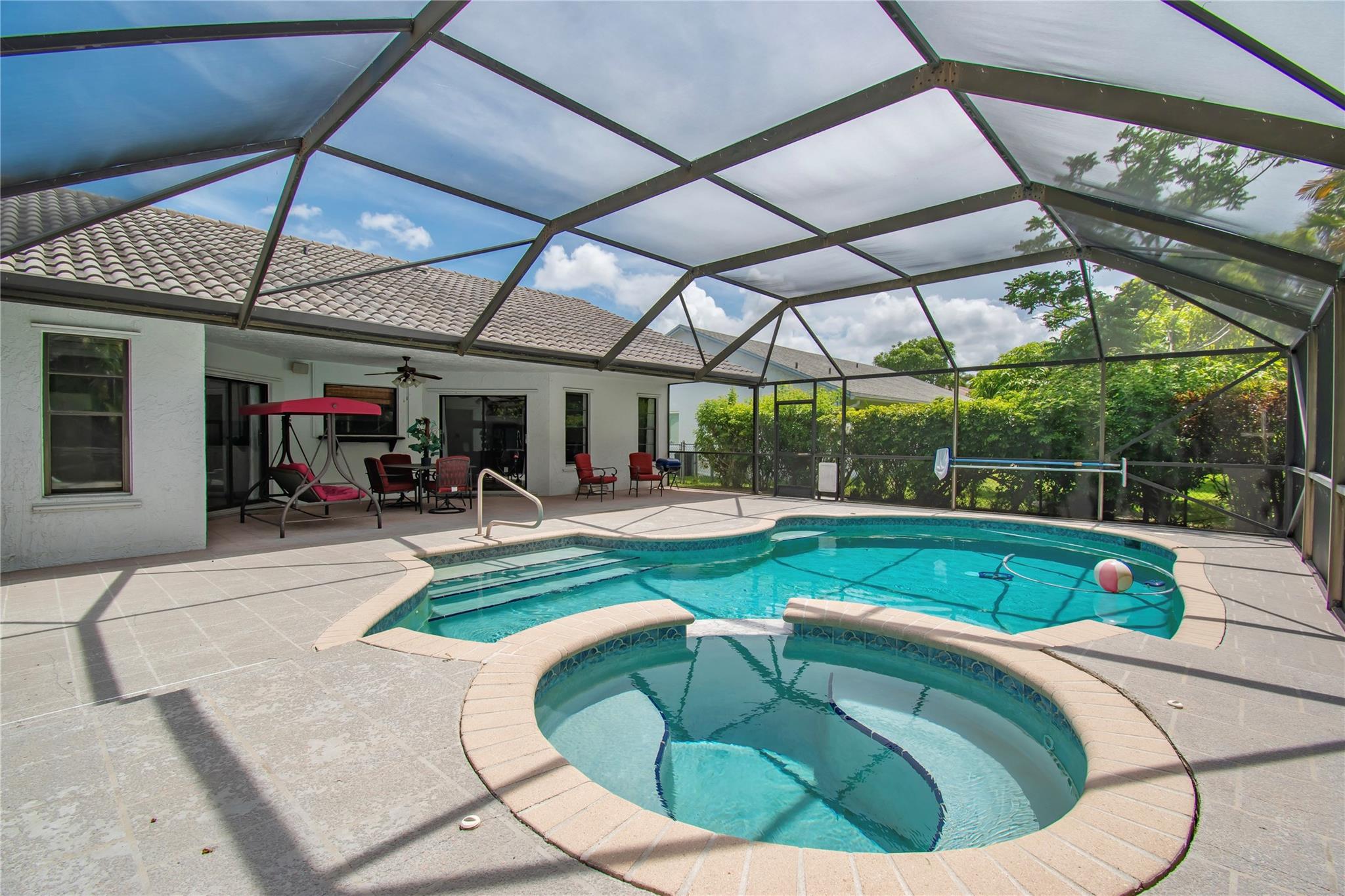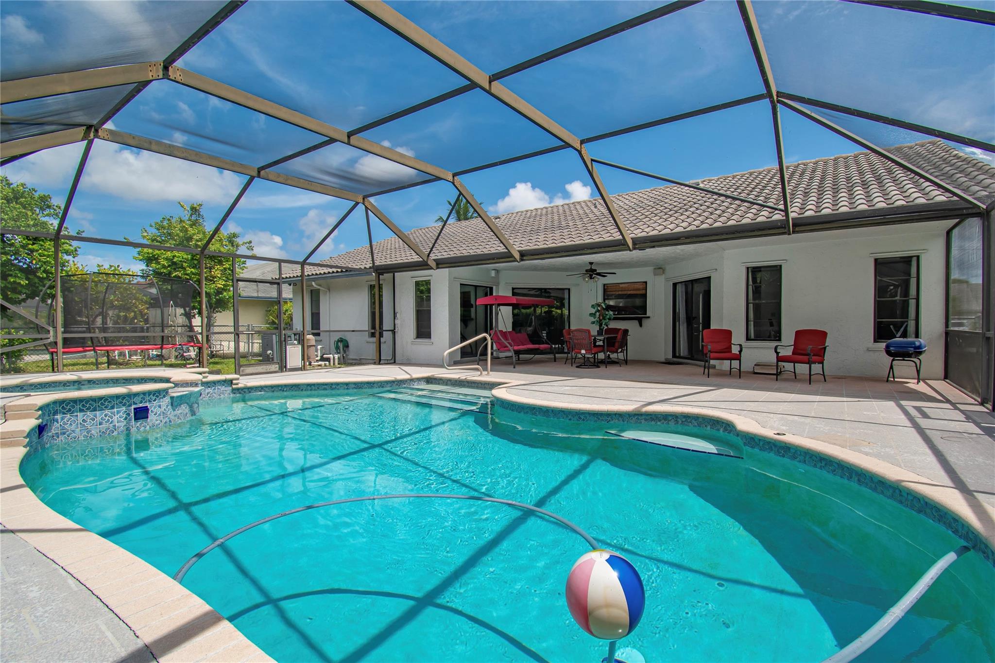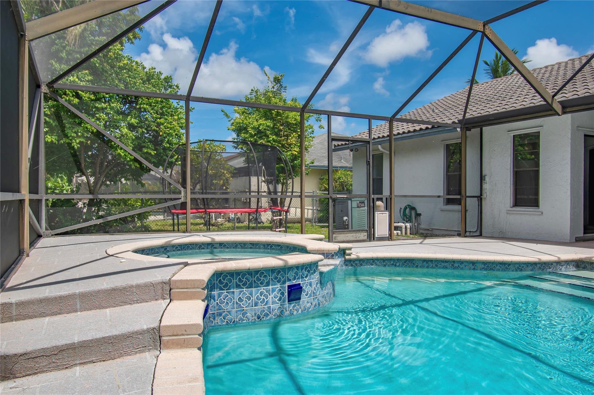 Welcome to this highly desirable single-story home located in the sought-after community of Boca Fontana. This beautifully maintained 4 bed, 2 bath home offers the perfect blend of comfort, style, and convenience—ideal for families or anyone seeking the best of Boca Raton living. Step inside to discover a spacious and functional layout with a welcoming living area that flows seamlessly into the dining and kitchen spaces. Enjoy year-round outdoor living with a screened-in patio and sparkling private pool. The backyard offers privacy and plenty of room for kids or pets to play. Located in a top-rated school district and just minutes from major shopping centers, fine dining, and parks. Boca Fontana is a well-maintained, family-friendly neighborhood with low HOA fees and great amenities!