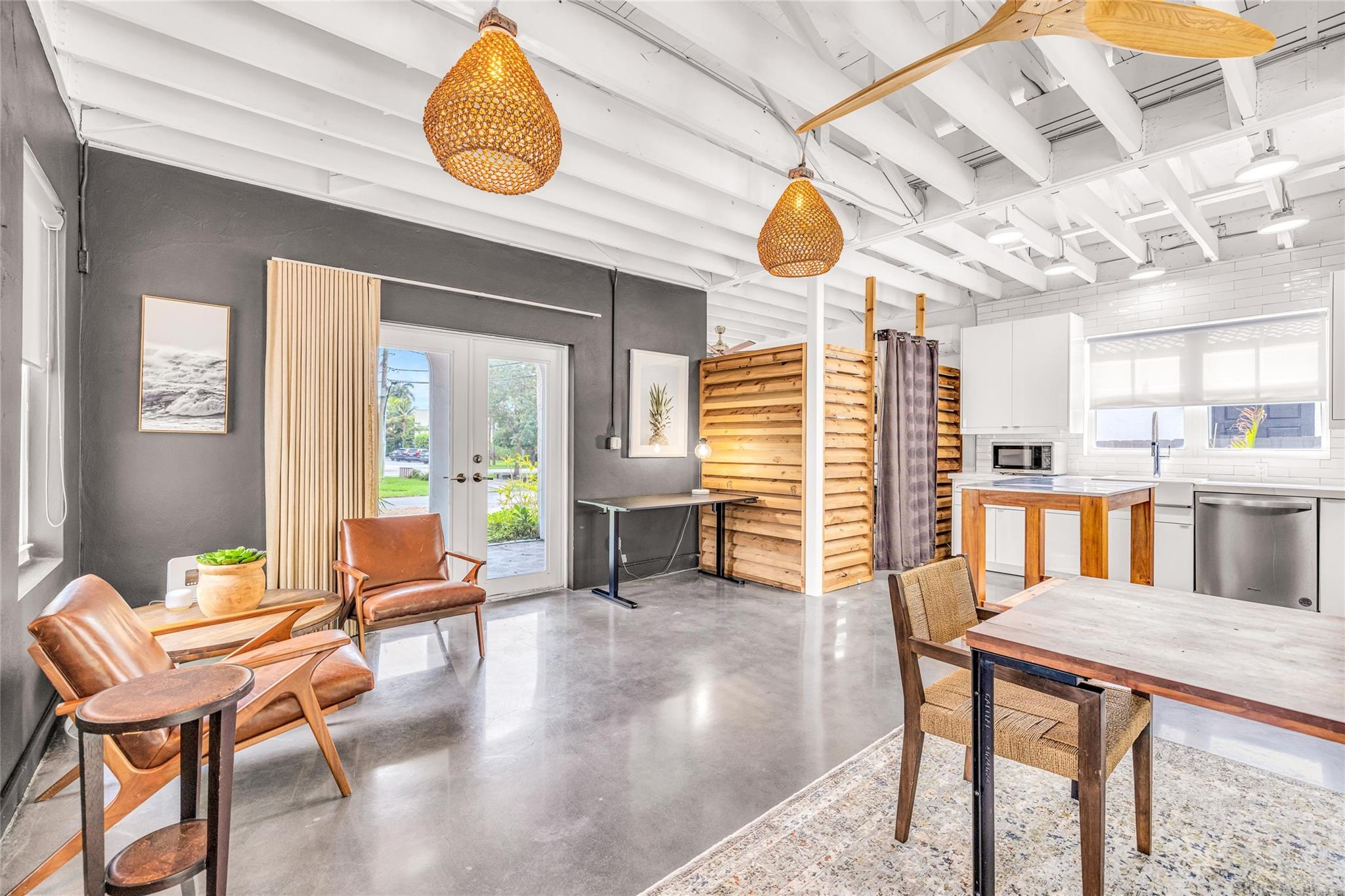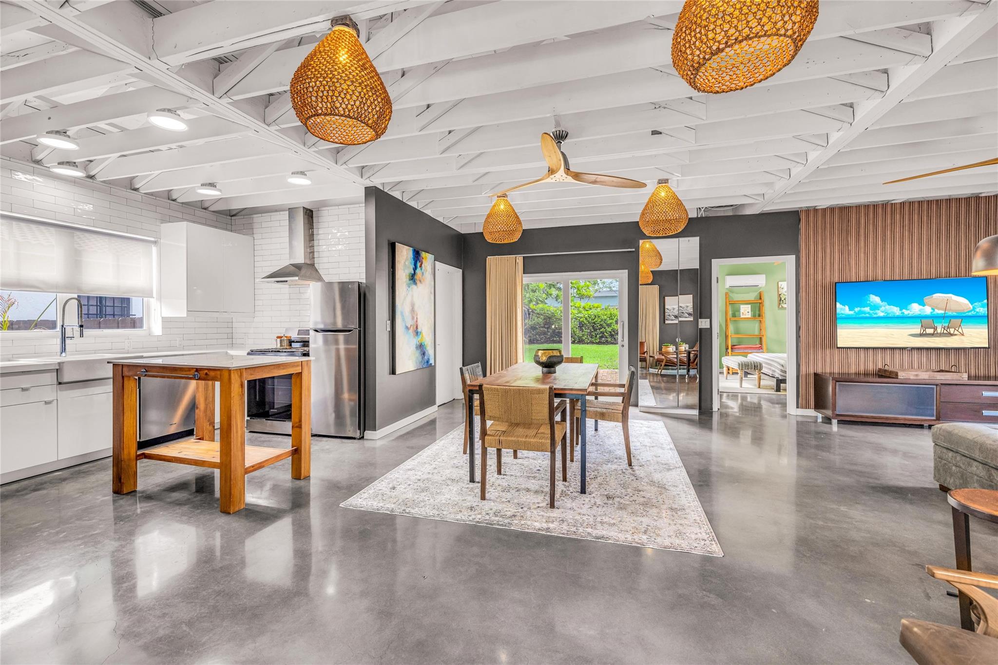 ZONED SRAC-SAE – One of Fort Lauderdale’s most powerful and flexible zoning designations! This fully renovated, fully furnished 2BR/1BA gem in Poinciana Park allows for bars, lounges, restaurants, cafés, retail, creative offices, venue space & more. A rare turnkey live/work setup with polished concrete floors, dramatic exposed wood-beamed ceilings, impact windows, designer finishes, and updated systems. Lush tropical landscaping, private screened porch, circular driveway, and space to expand, add a pool or create. Surrounded by rapid development and located minutes to Las Olas, Airport, Downtown, and the famed Fort Lauderdale beach. Refer to BCPA for accurate square footage. Adjacent parcels may also be available—ask for details!