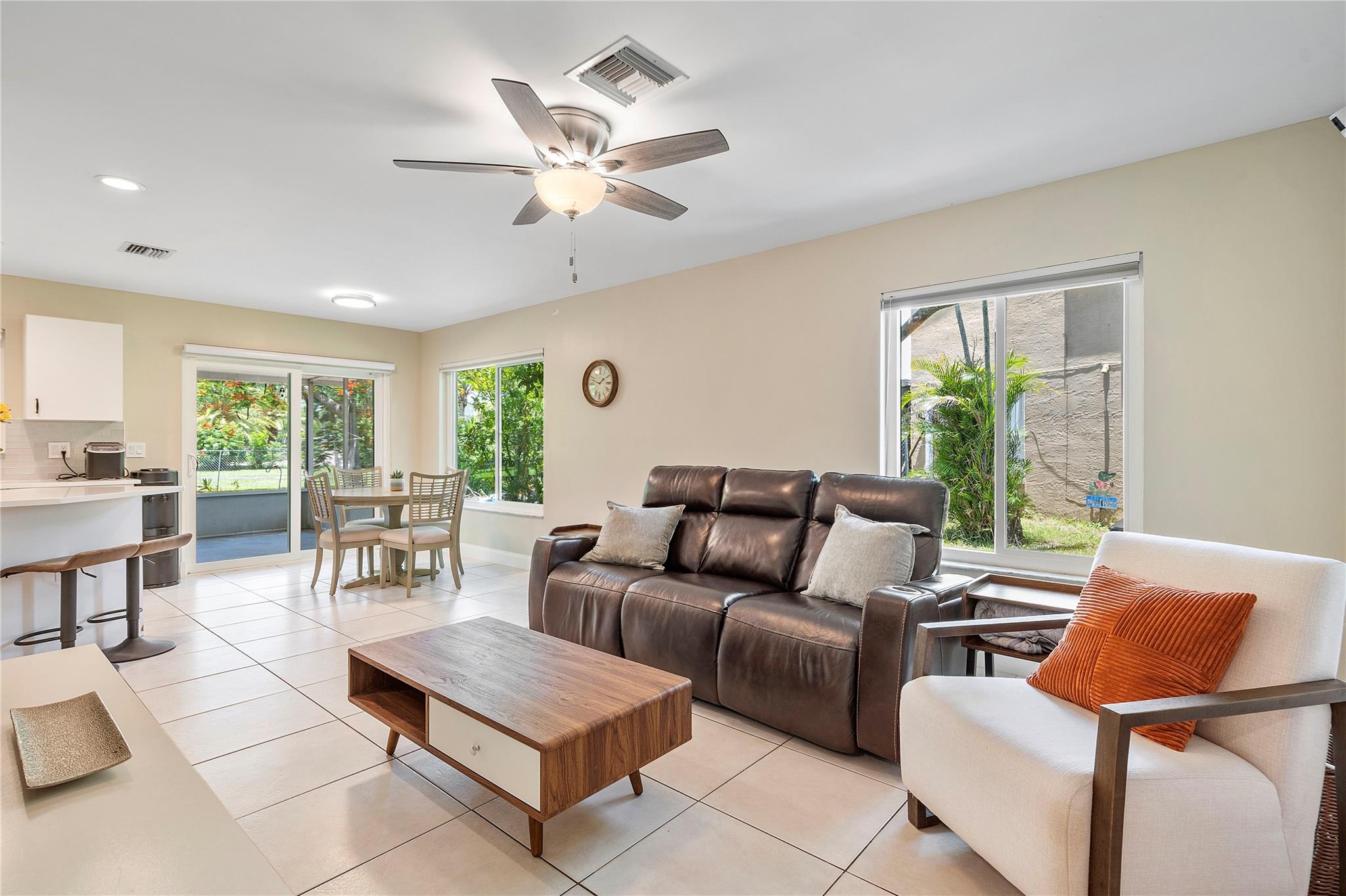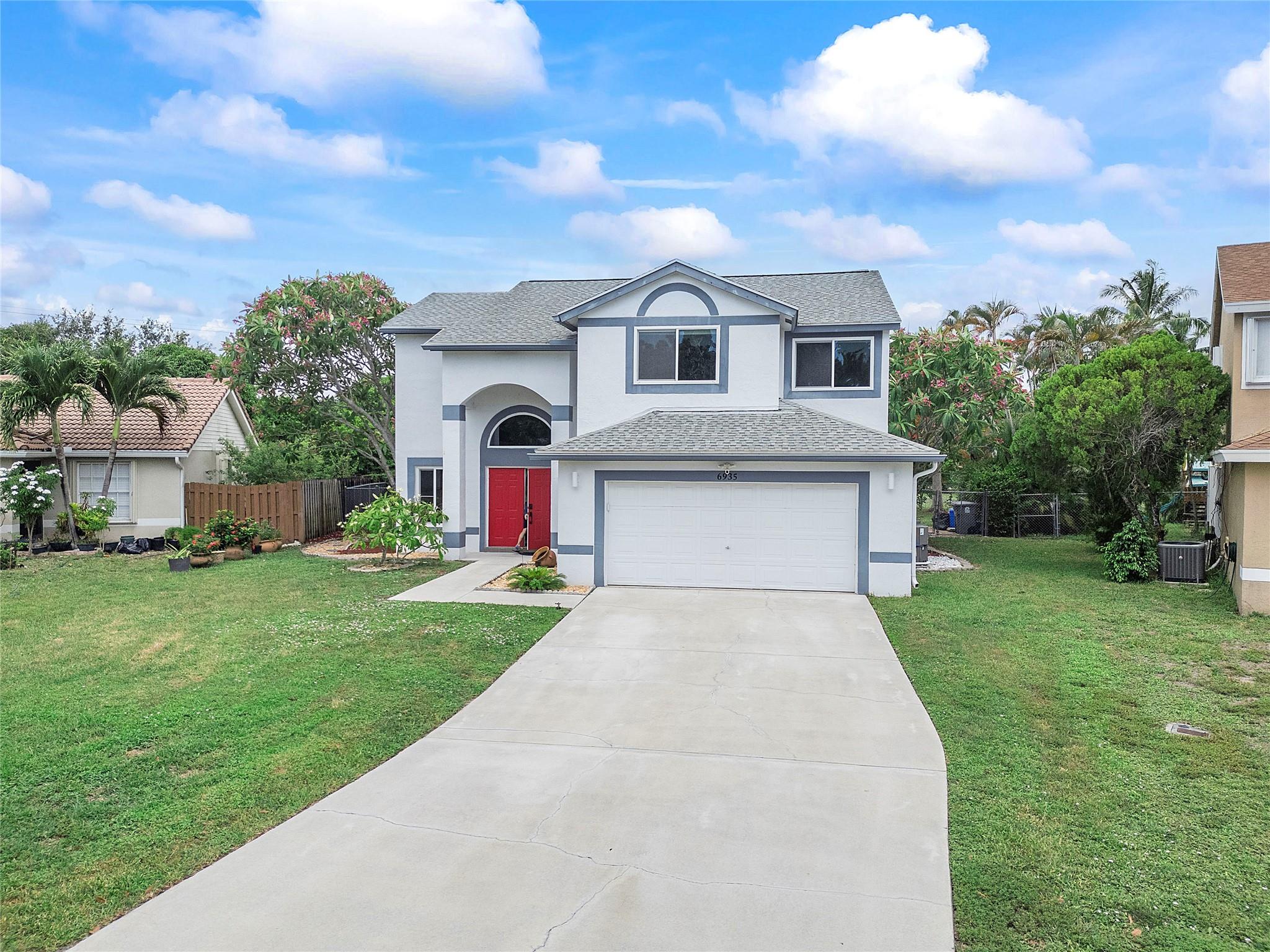 BEAUTIFUL 4-bed, 2.5-bath home on an oversized (.29 acre) corner lot in sought-after Alden Ridge with top A rated schools! Features include high-impact windows, wood flooring upstairs, upgraded kitchen & baths, new water heater and a new AC. Spacious layout with high ceilings, lots of natural light, two living areas, formal dining, and a kitchen perfect for entertaining—stainless appliances, pantry, island and covered and screened patio access. Upstairs master suite with walk-in closet, soaking tub, dual vanities and separate shower. Enjoy the large patio and HUGE fenced in yard with plenty of room for a pool. Community offers walking paths, pool and tennis courts—just minutes from shopping, dining, highway & Ocean Ridge beach! PER ASSOCIATION: NO LEASE FIRST 2 YEARS, MIN 695 CREDIT SCORE