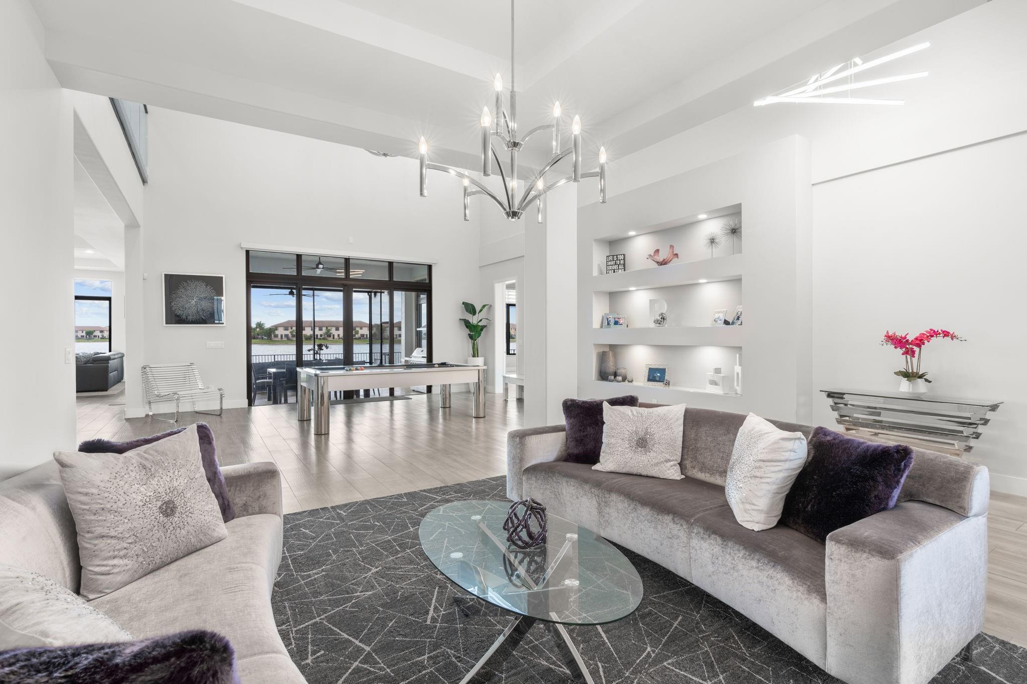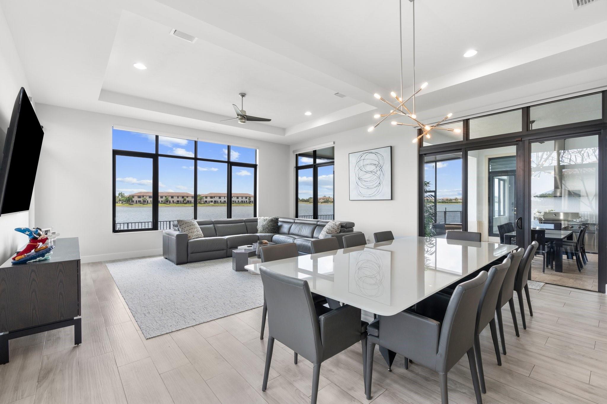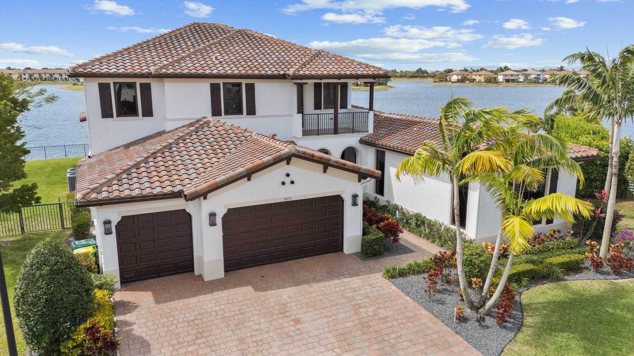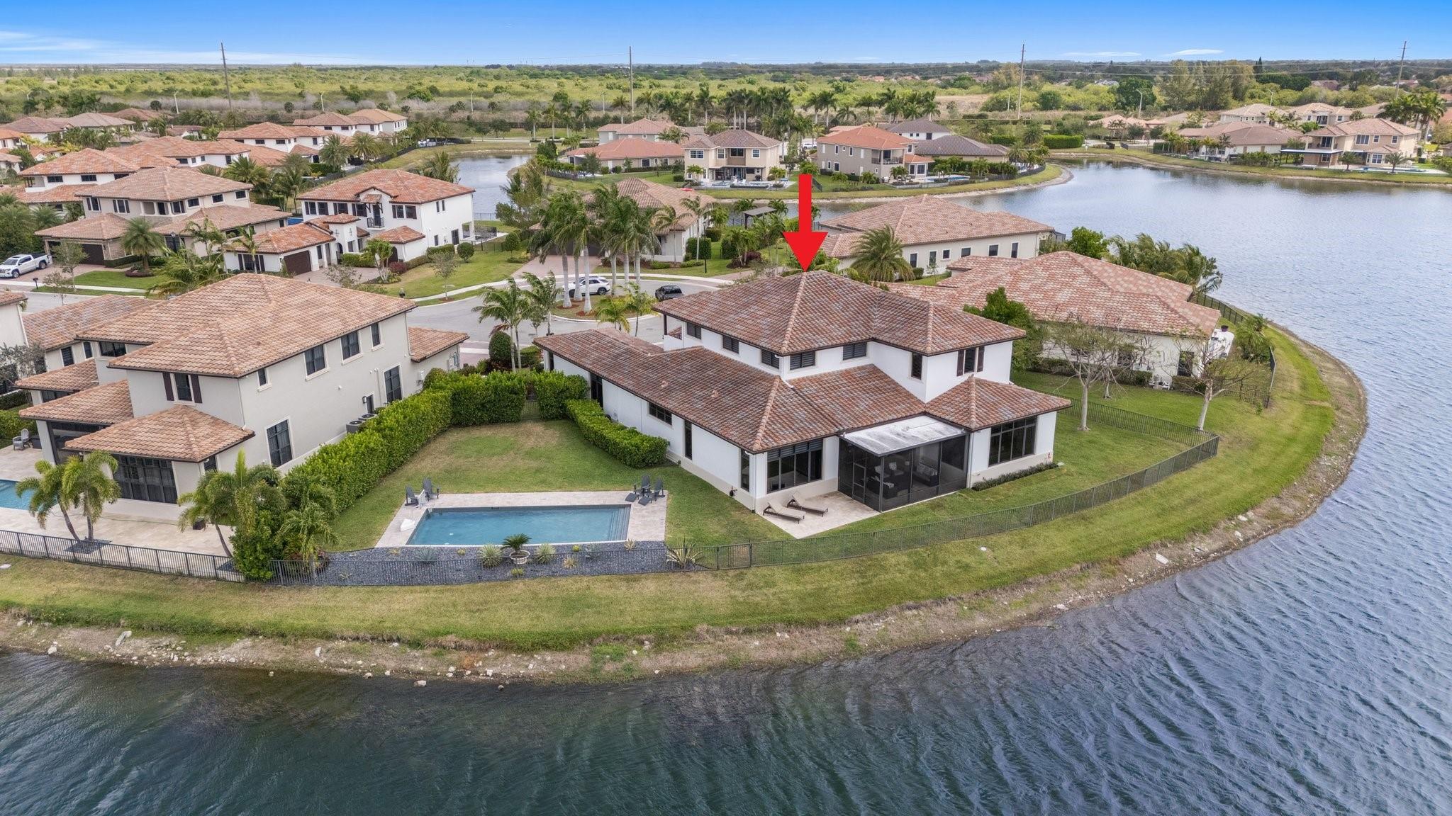Experience resort-style living in this exquisite 6-bed, 5.5-bath CC Homes Chateau model in MiraLago. Set on a rare pie-shaped lakefront lot with 144 ft of water views, this masterpiece boasts soaring ceilings, a grand open layout, and a designer kitchen with an oversized island. The luxurious primary suite features a spa-quality bath and custom-built closet. The only home in MiraLago with casement windows, it also includes a private extended casita perfect for guests, teens, or in-laws. Upstairs offers wood floors, 3 beds, 2 baths (Jack & Jill), and a sleek loft with glass railing. Enjoy the screened lanai, heated pool, 3-car garage, and 6-car driveway. Access world-class MiraLago & Cascata amenities, pool, gym, tennis & more!