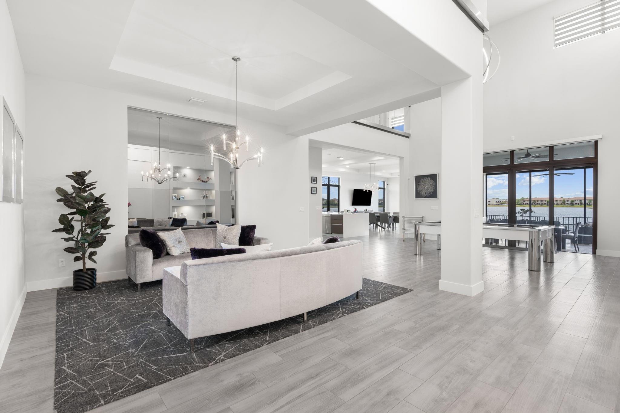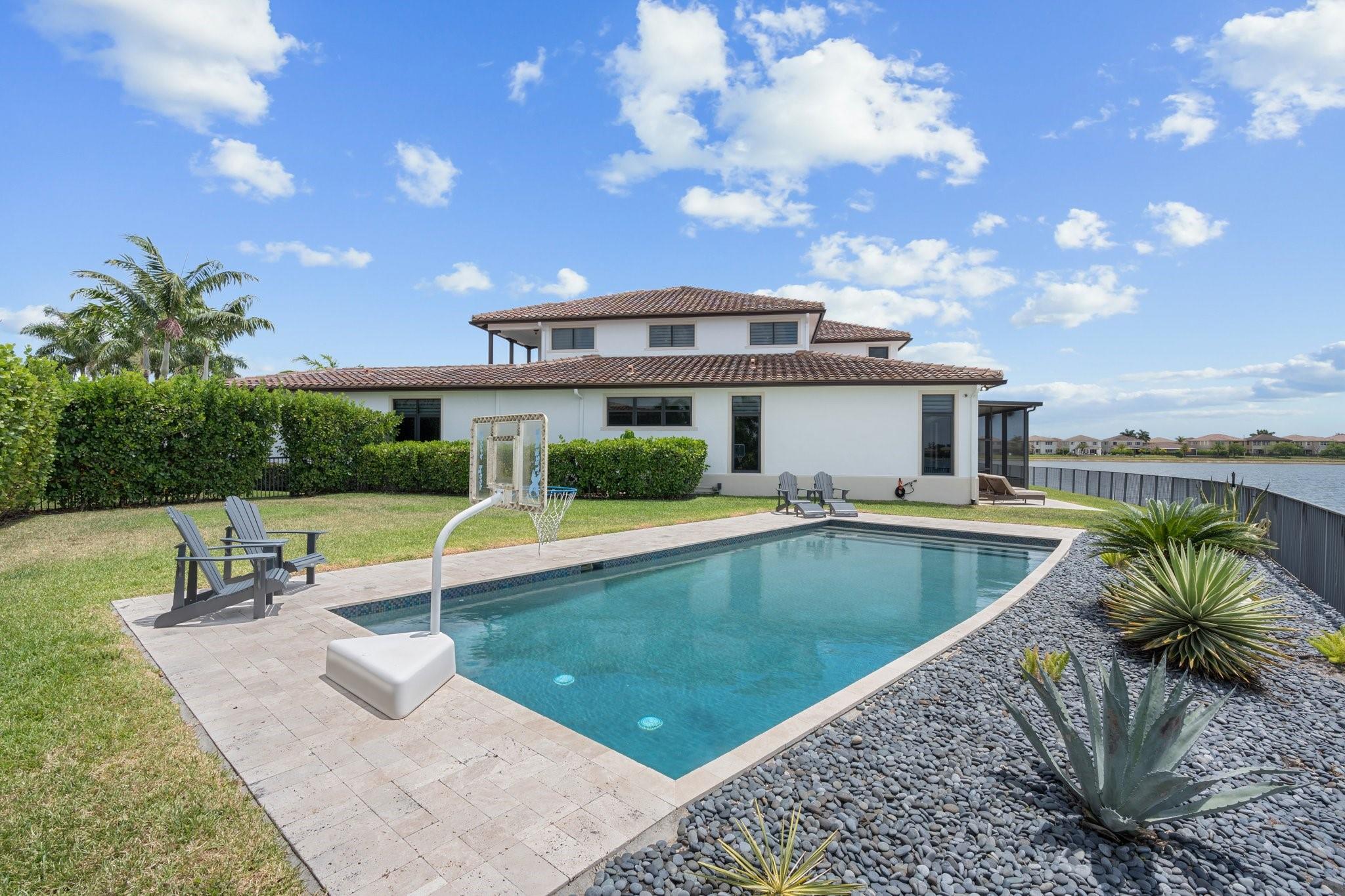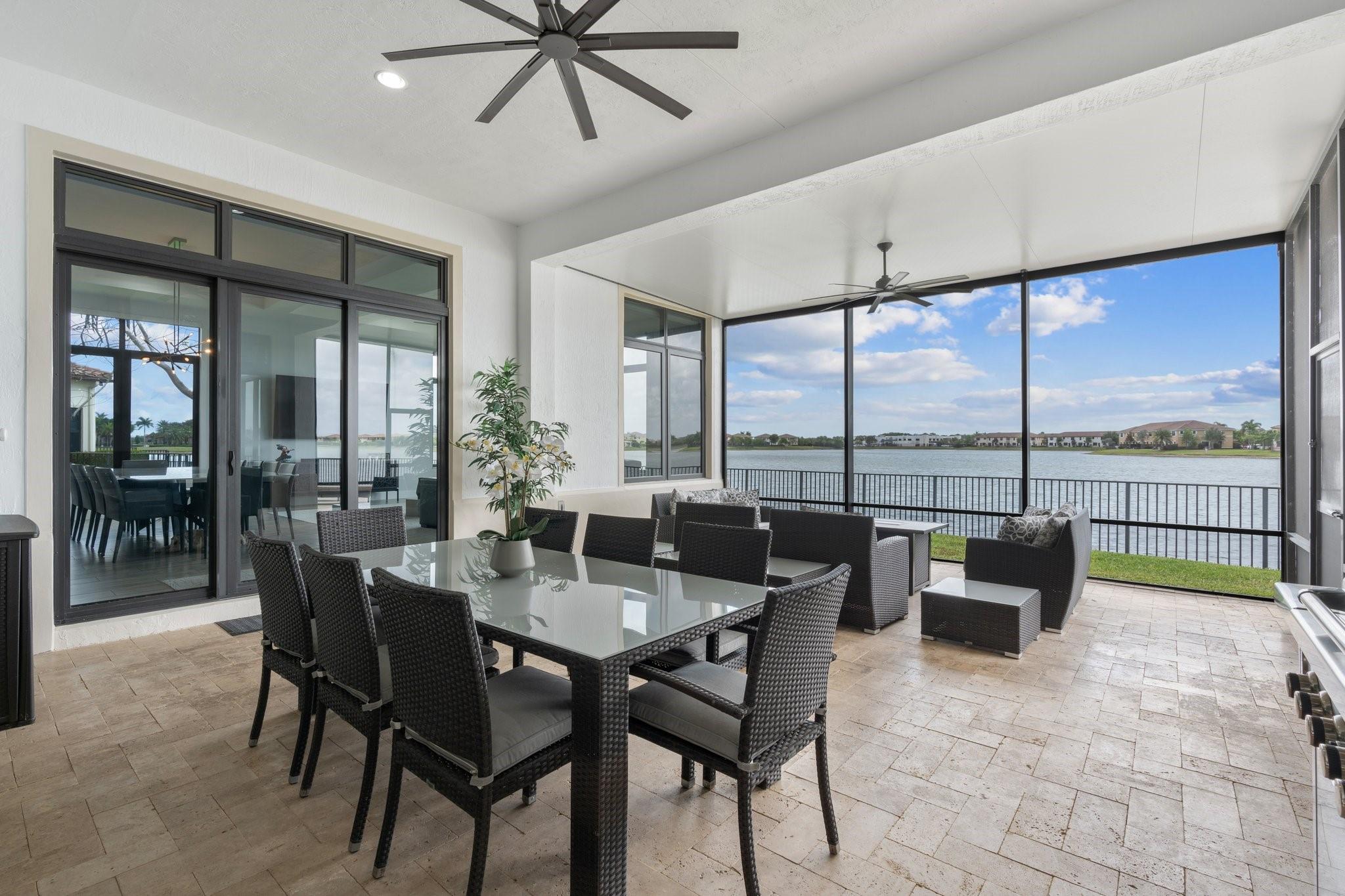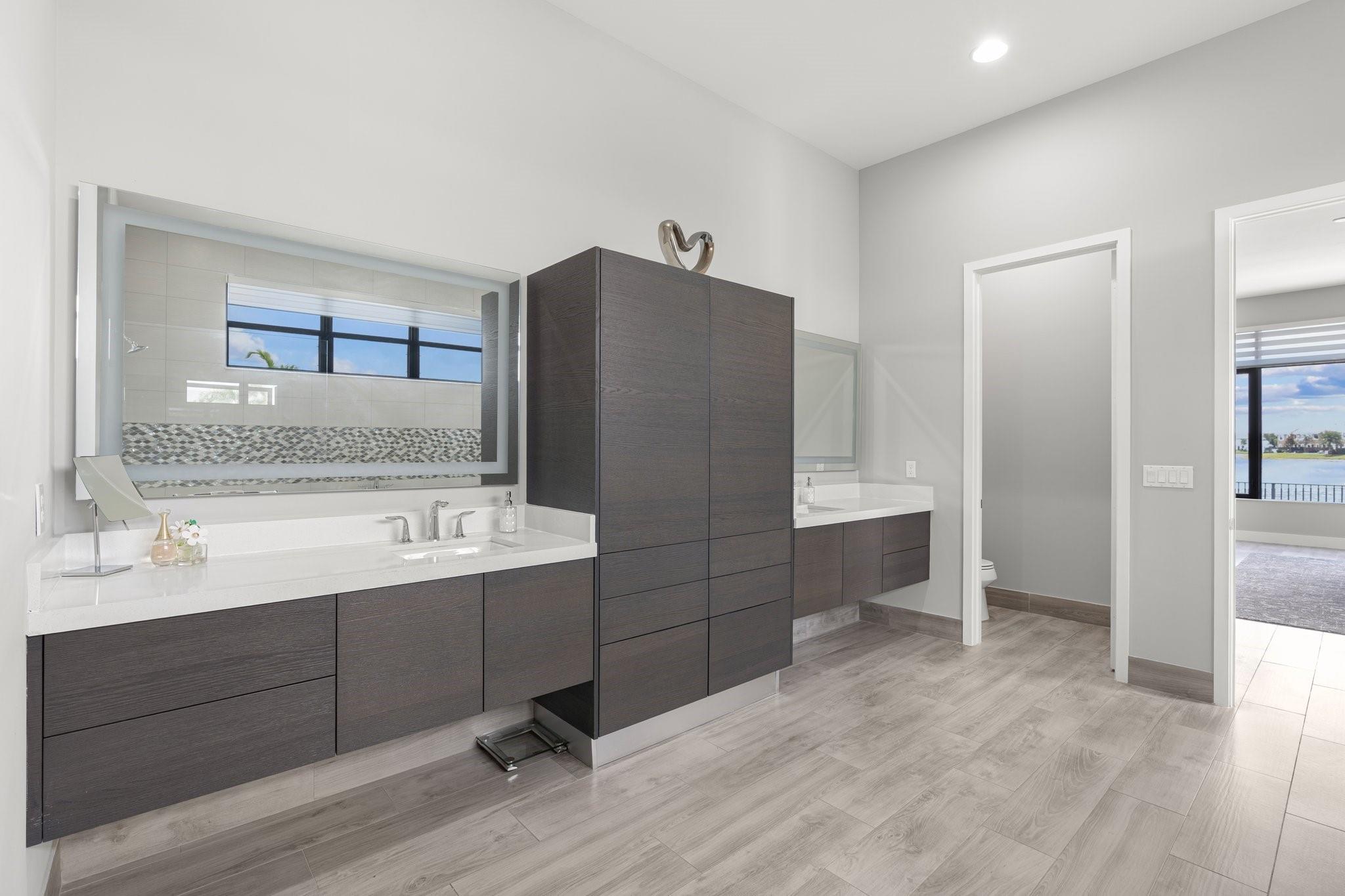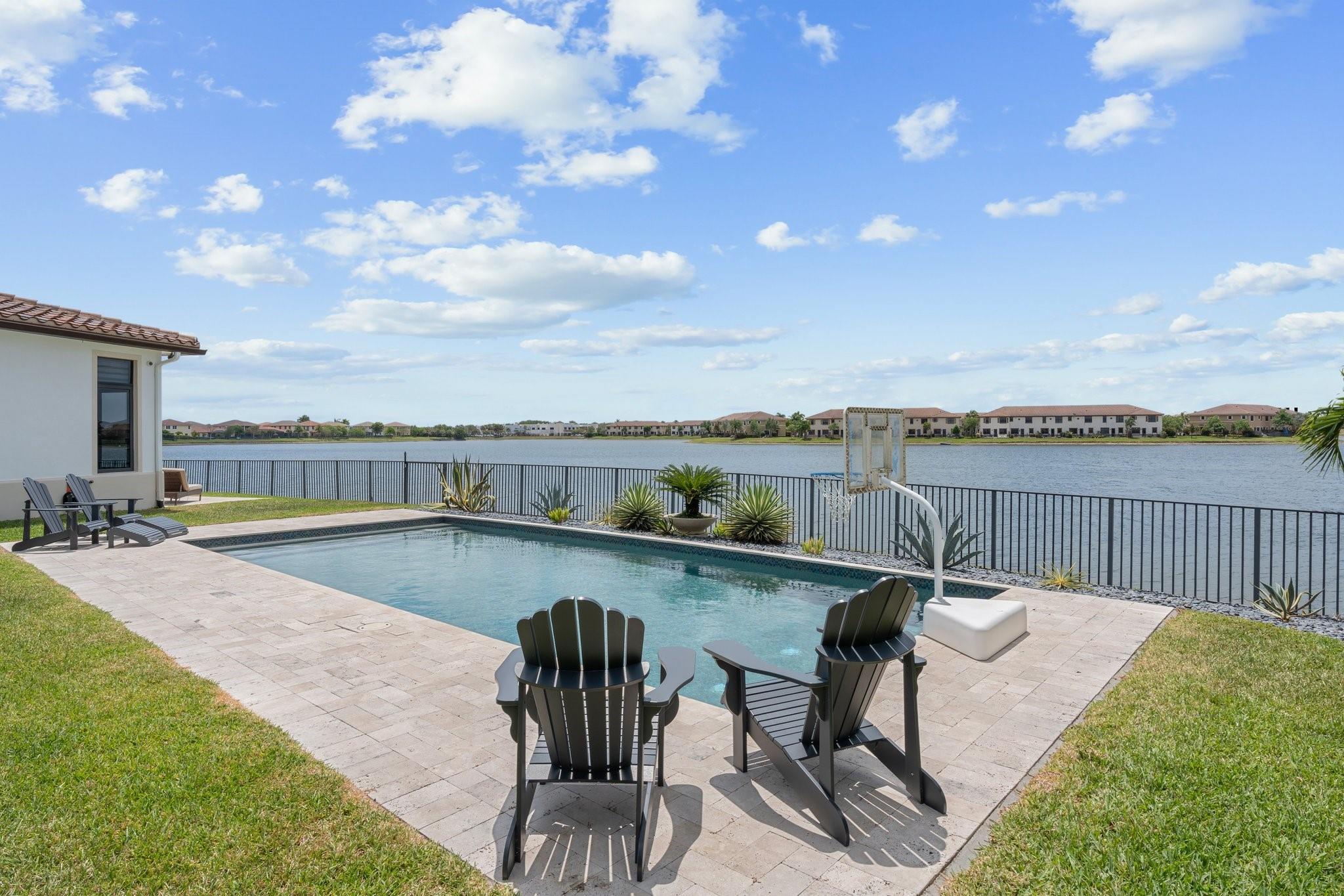 Experience resort-style living in this exquisite 6-bed, 5.5-bath CC Homes Chateau model in MiraLago. Set on a rare pie-shaped lakefront lot with 144 ft of water views, this masterpiece boasts soaring ceilings, a grand open layout, and a designer kitchen with an oversized island. The luxurious primary suite features a spa-quality bath and custom-built closet. The only home in MiraLago with casement windows, it also includes a private extended casita perfect for guests, teens, or in-laws. Upstairs offers wood floors, 3 beds, 2 baths (Jack & Jill), and a sleek loft with glass railing. Enjoy the screened lanai, heated pool, 3-car garage, and 6-car driveway. Access world-class MiraLago & Cascata amenities, pool, gym, tennis & more!