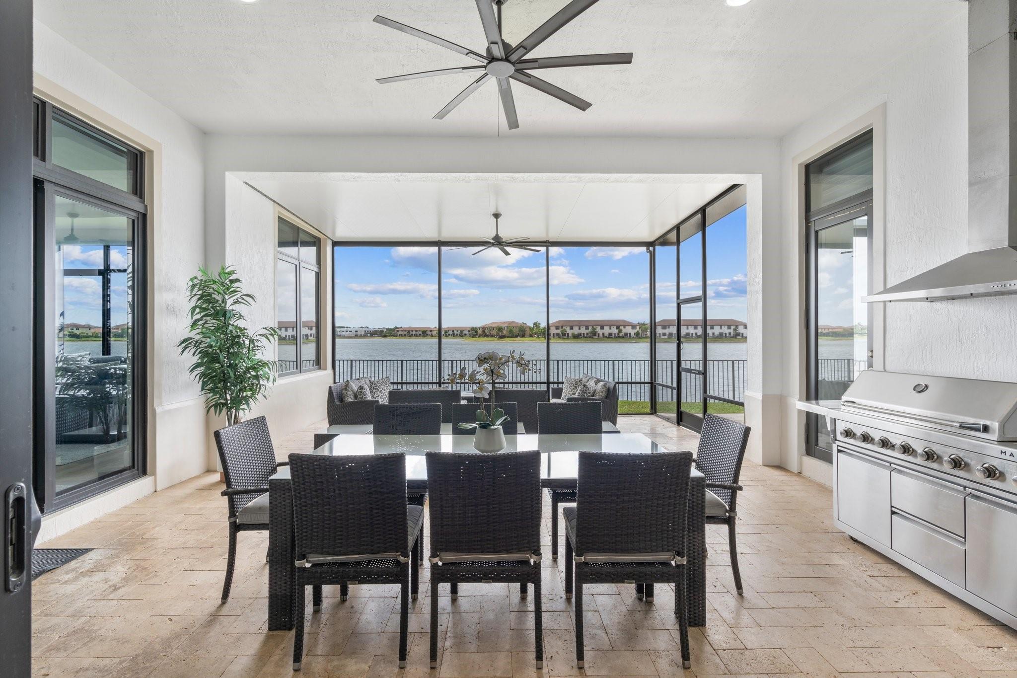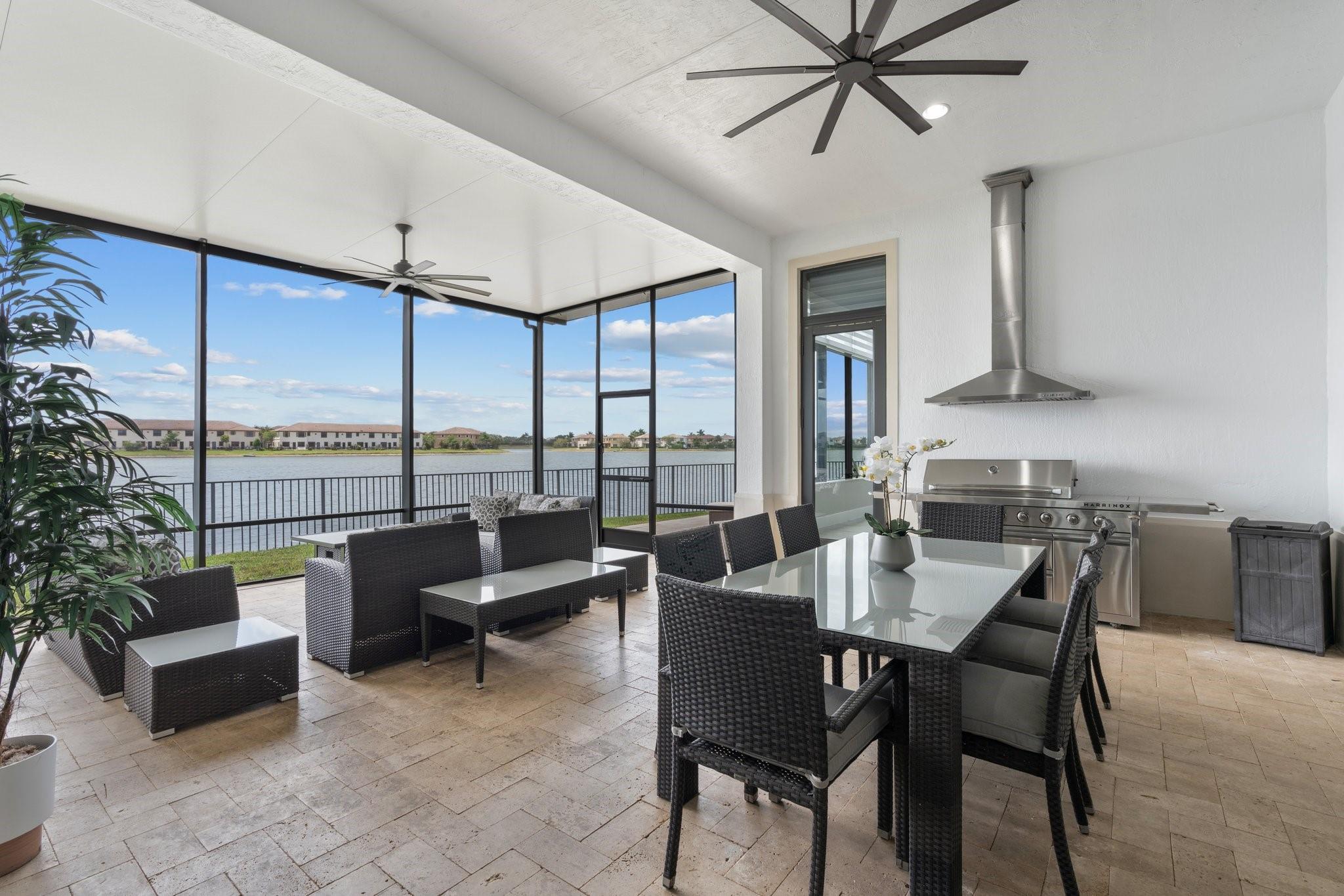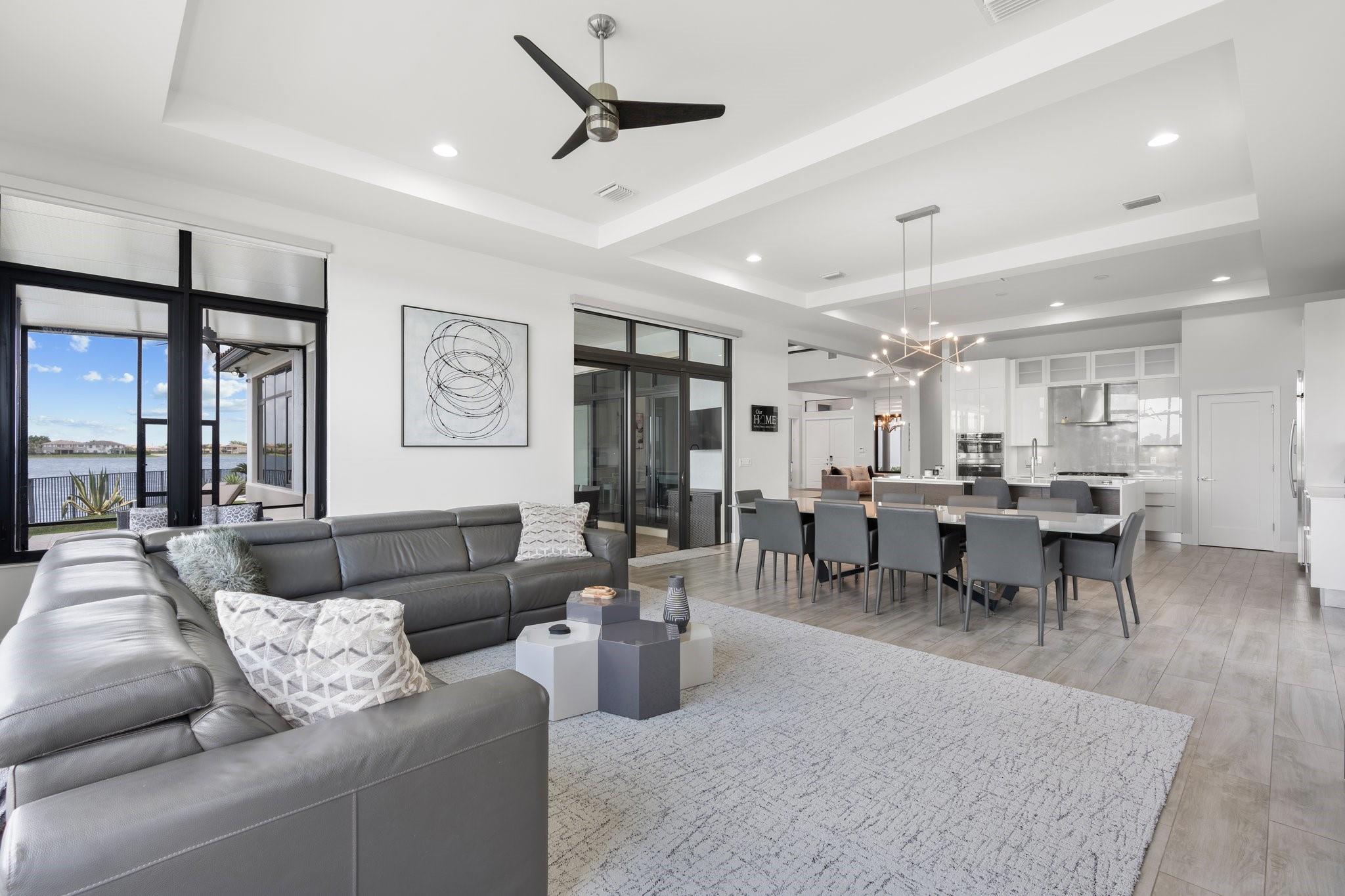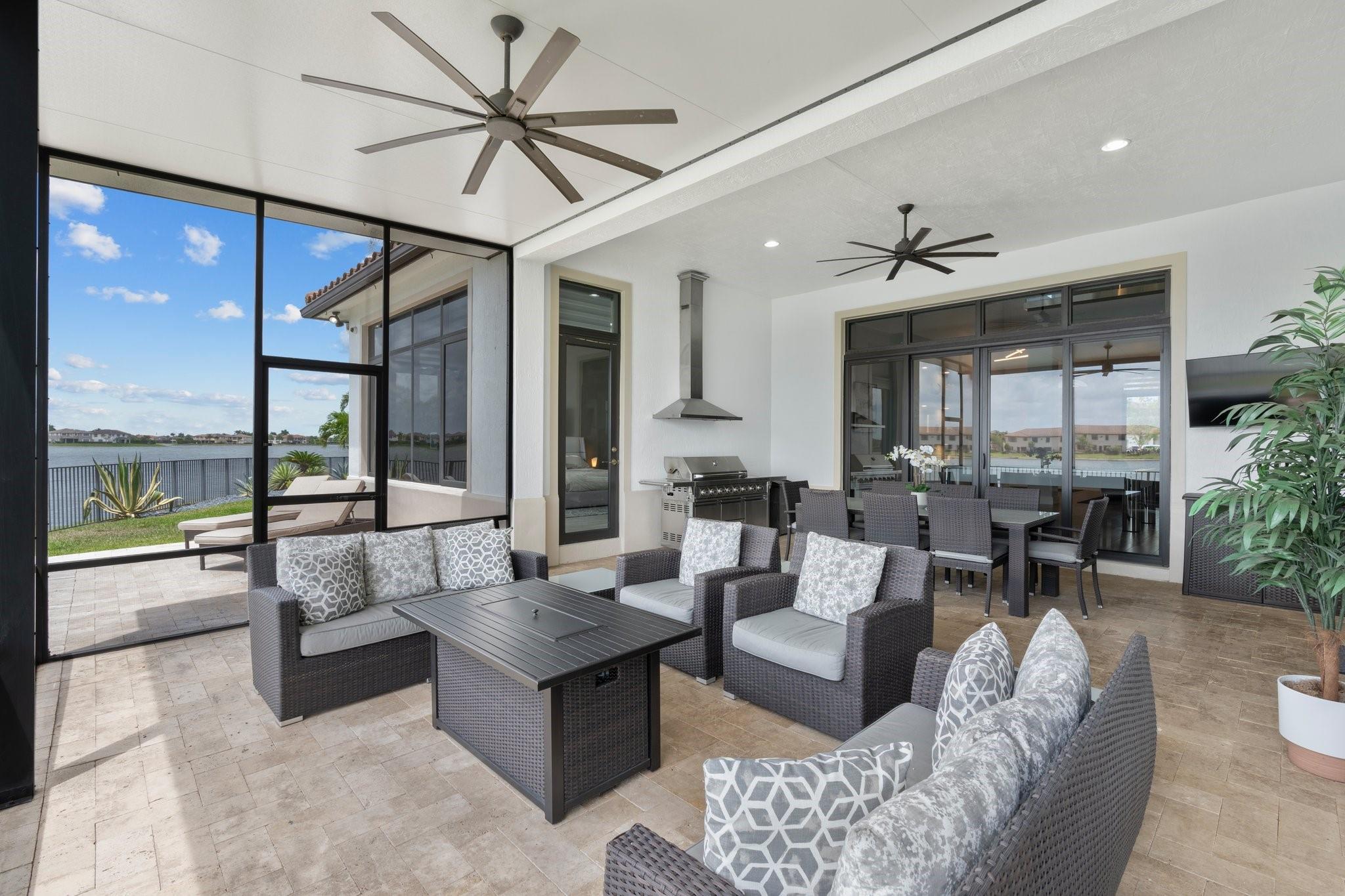 Experience resort-style living in this exquisite 6-bed, 5.5-bath CC Homes Chateau model in MiraLago. Set on a rare pie-shaped lakefront lot with 144 ft of water views, this masterpiece boasts soaring ceilings, a grand open layout, and a designer kitchen with an oversized island. The luxurious primary suite features a spa-quality bath and custom-built closet. The only home in MiraLago with casement windows, it also includes a private extended casita perfect for guests, teens, or in-laws. Upstairs offers wood floors, 3 beds, 2 baths (Jack & Jill), and a sleek loft with glass railing. Enjoy the screened lanai, heated pool, 3-car garage, and 6-car driveway. Access world-class MiraLago & Cascata amenities, pool, gym, tennis & more!