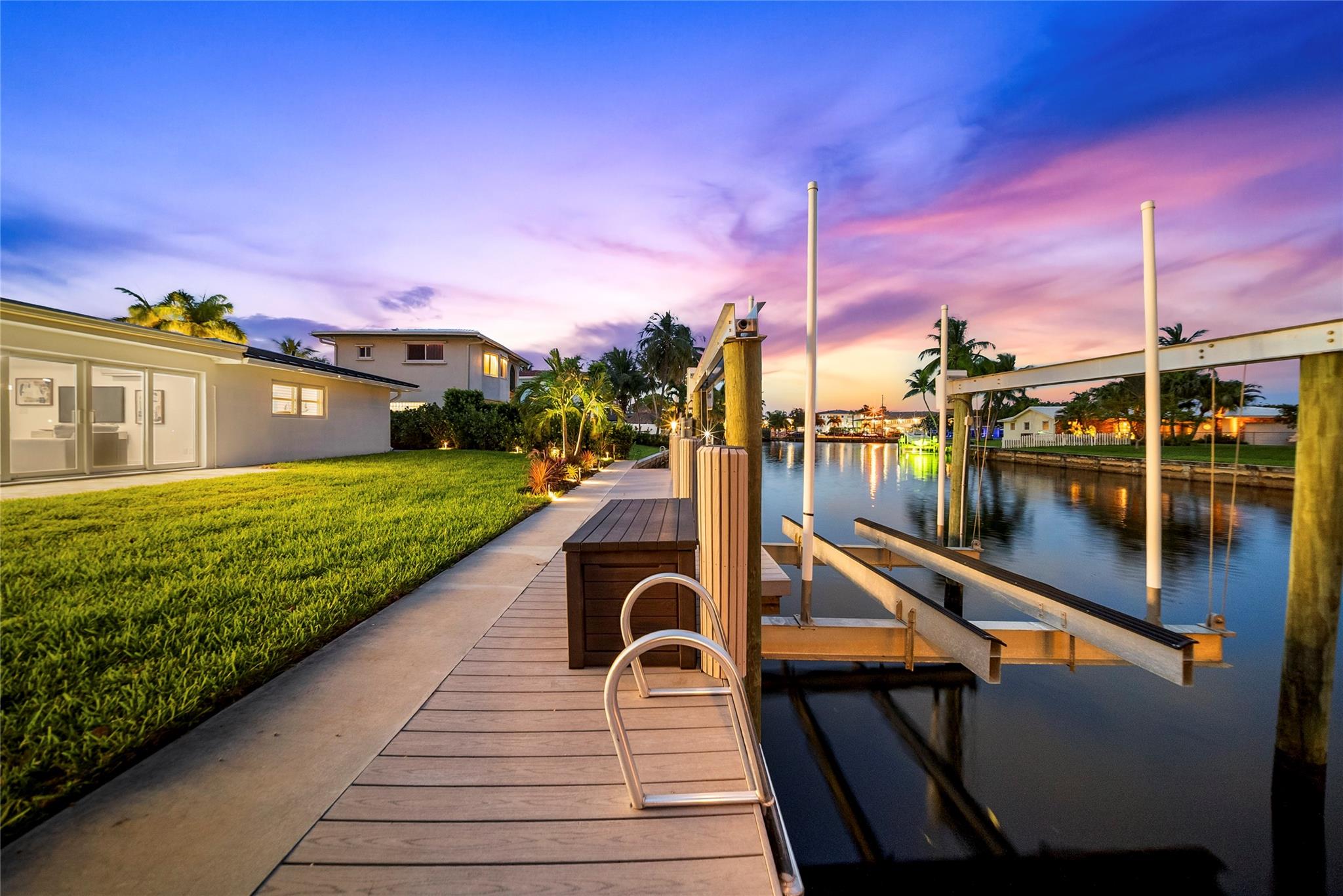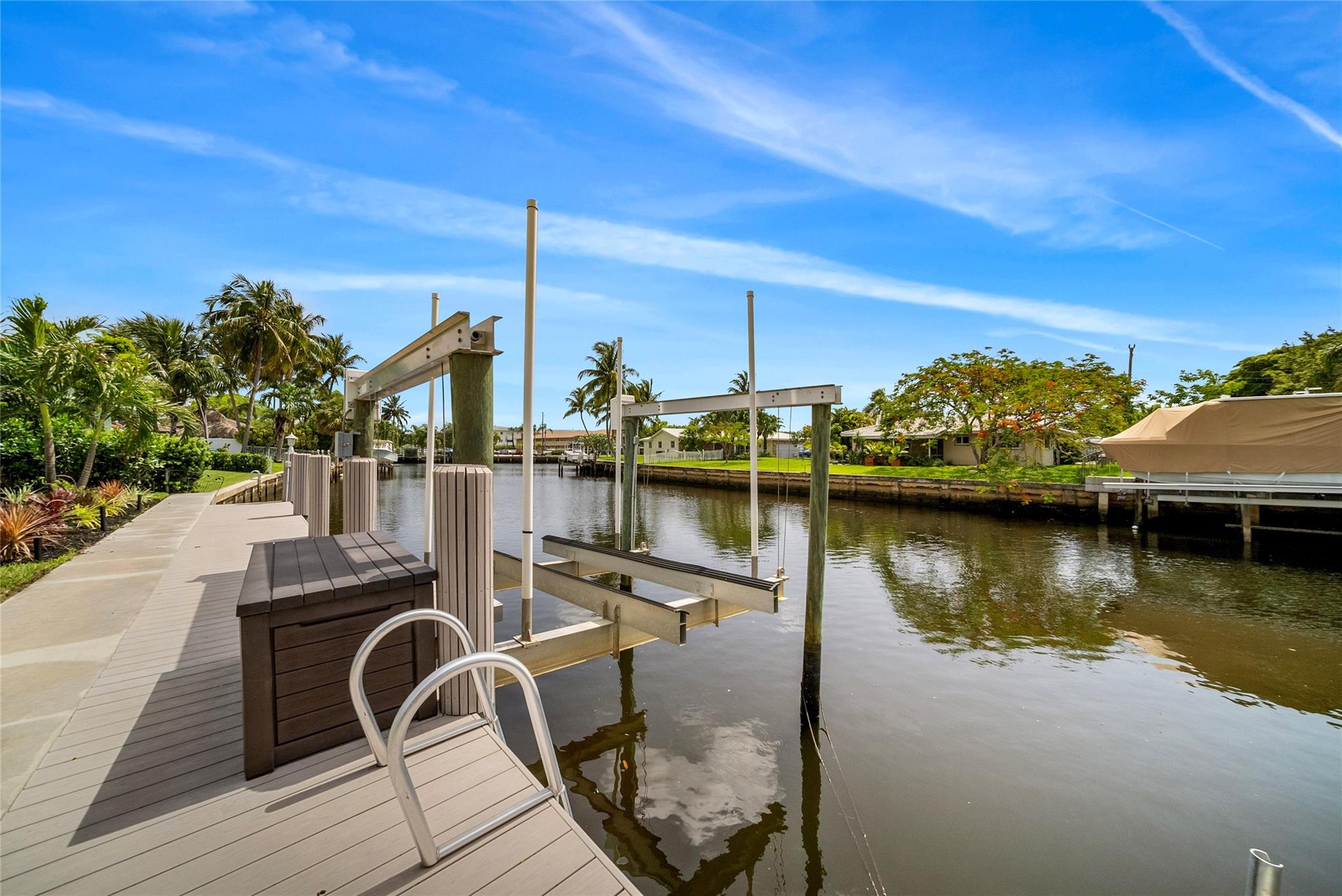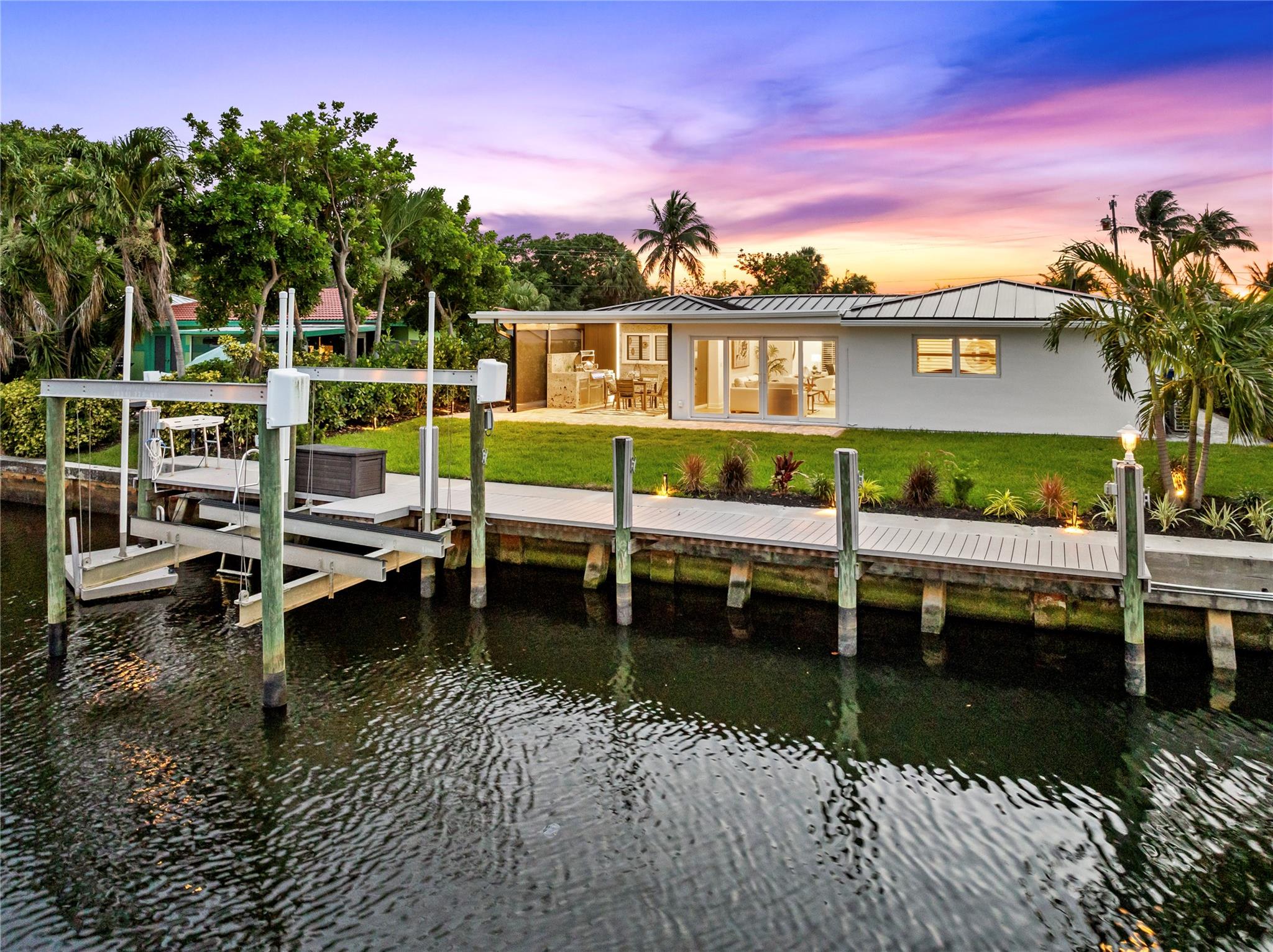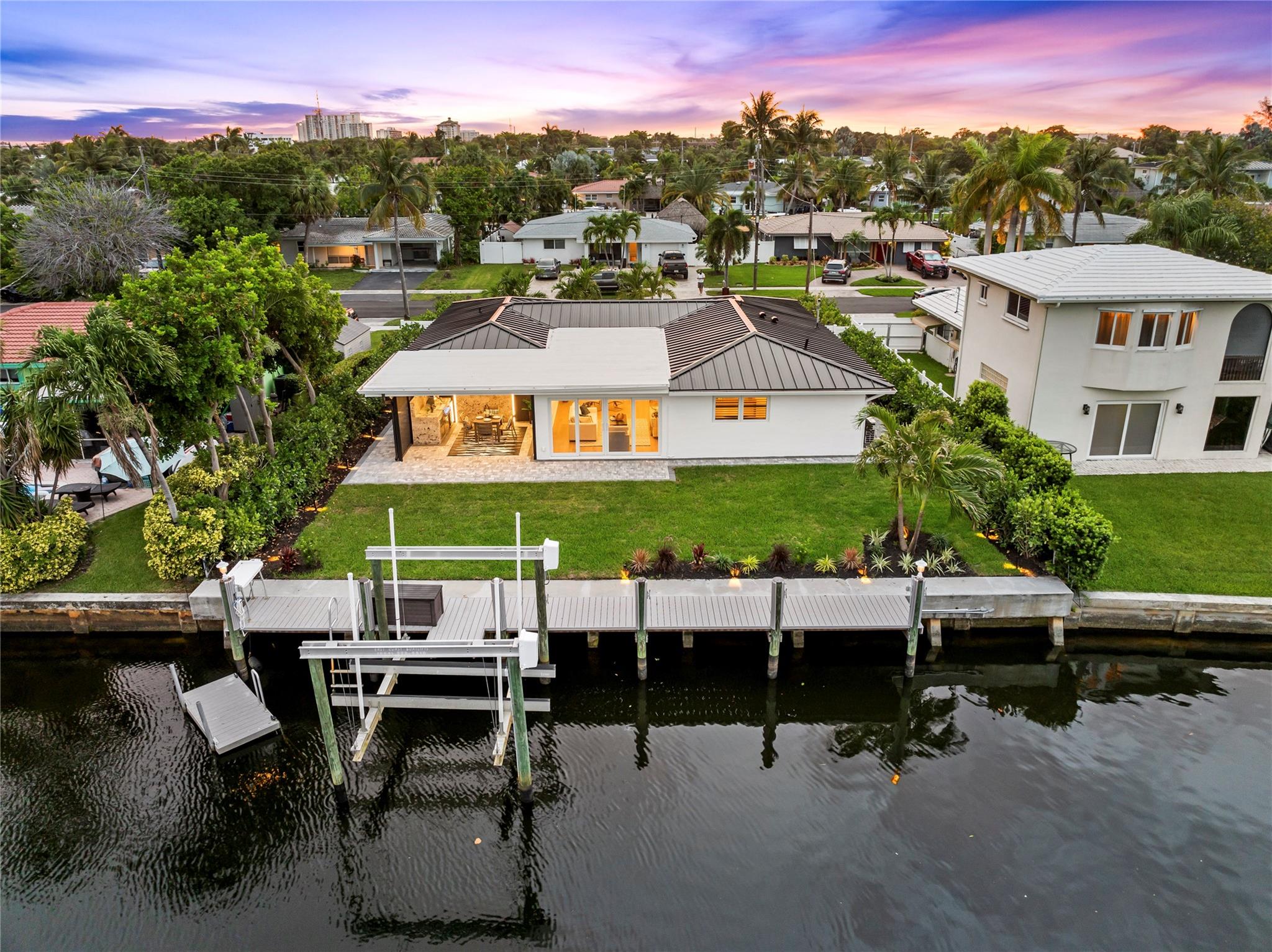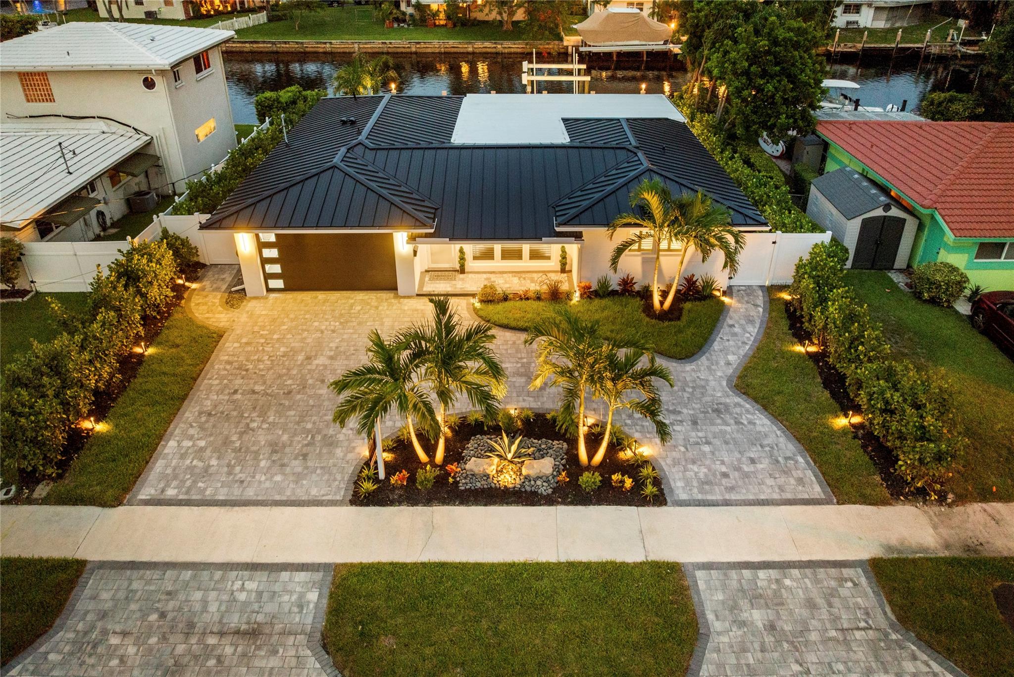 OVER $400K IN UPDATES! One-Of-A-Kind, Fully Renovated Waterfront Dream Home w/All Updates Fully Permitted By City Of Pompano Beach. 2025 Metal & Flat Roof (Rated To 218 mph) w/Warranties, Impact Windows, Luxury Wide-Plank Vinyl Flooring, Built-In Closets, LED Mirrors, & 9 Custom Waterfall-Edge Counters. Designer Kitchen w/Thermador Appliances, JennAir Fridge, & Miele Built-In Coffee Maker. Crystallo-Lit Mini Bar w/JennAir Wine Fridge. Outdoor Kitchen Includes Napoleon Grill & Blaze Fridge. Composite Dock, 12K Lb Boat Lift, Floating Dock, & Raised Seawall (2018). New Circular Driveway, Gutters, Epoxy Garage Floor, 7Ft Clusia Hedges, Retractable Screen, 4 Mini-Split A/Cs w/Individual Room Control. Full Centricon Termite.