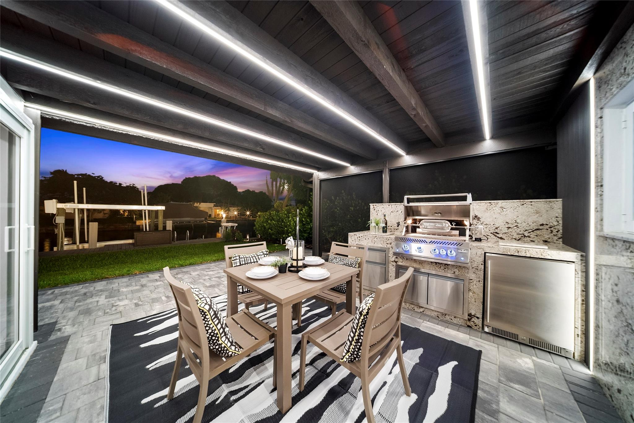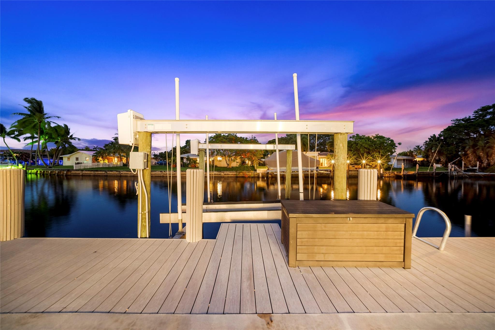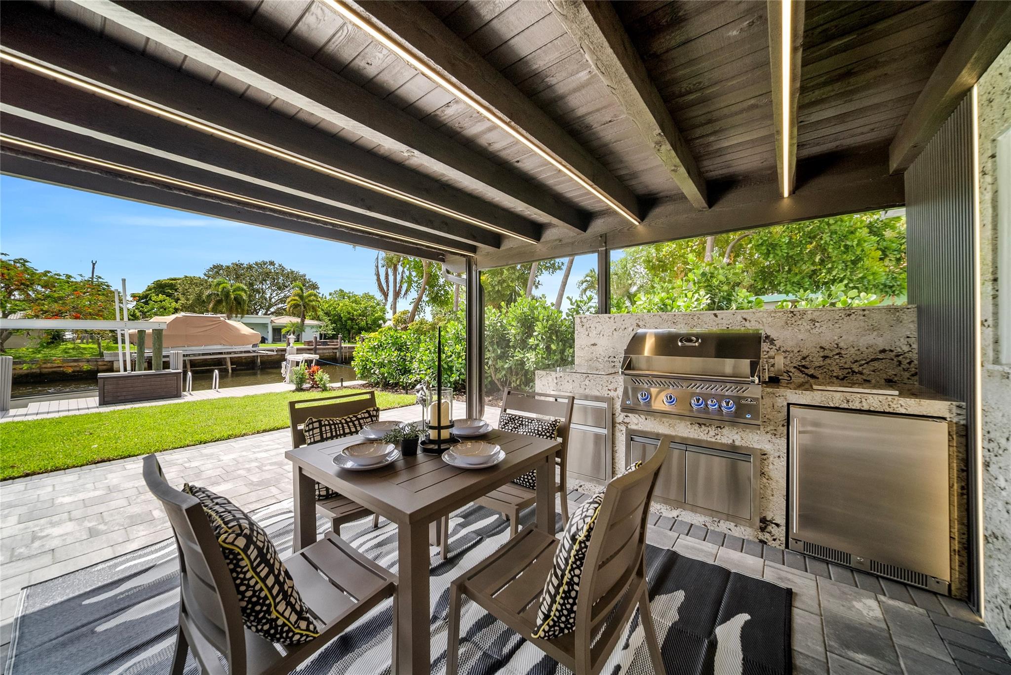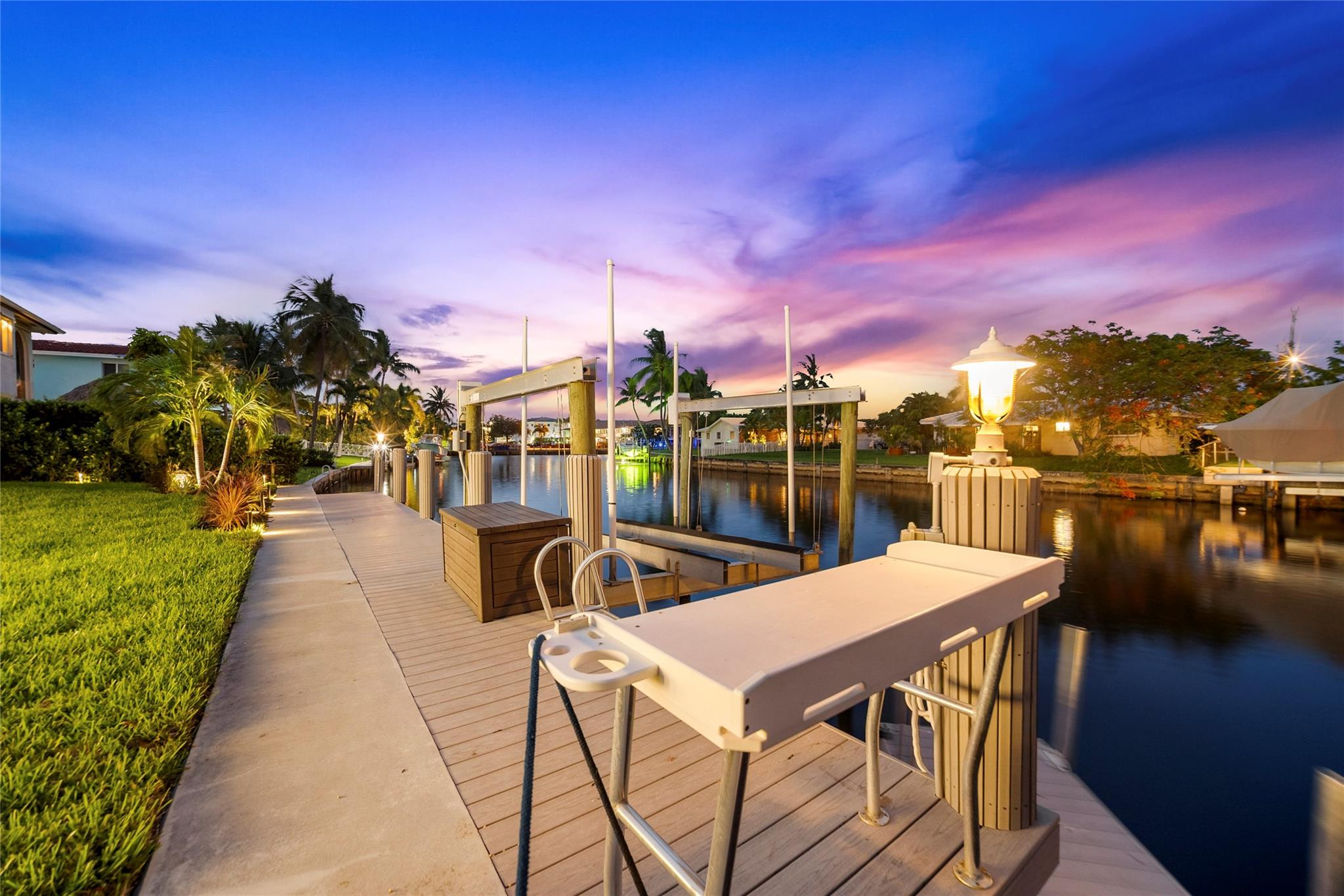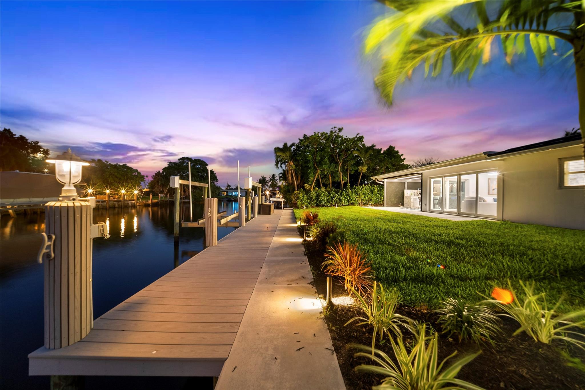 OVER $400K IN UPDATES! One-Of-A-Kind, Fully Renovated Waterfront Dream Home w/All Updates Fully Permitted By City Of Pompano Beach. 2025 Metal & Flat Roof (Rated To 218 mph) w/Warranties, Impact Windows, Luxury Wide-Plank Vinyl Flooring, Built-In Closets, LED Mirrors, & 9 Custom Waterfall-Edge Counters. Designer Kitchen w/Thermador Appliances, JennAir Fridge, & Miele Built-In Coffee Maker. Crystallo-Lit Mini Bar w/JennAir Wine Fridge. Outdoor Kitchen Includes Napoleon Grill & Blaze Fridge. Composite Dock, 12K Lb Boat Lift, Floating Dock, & Raised Seawall (2018). New Circular Driveway, Gutters, Epoxy Garage Floor, 7Ft Clusia Hedges, Retractable Screen, 4 Mini-Split A/Cs w/Individual Room Control. Full Centricon Termite.
