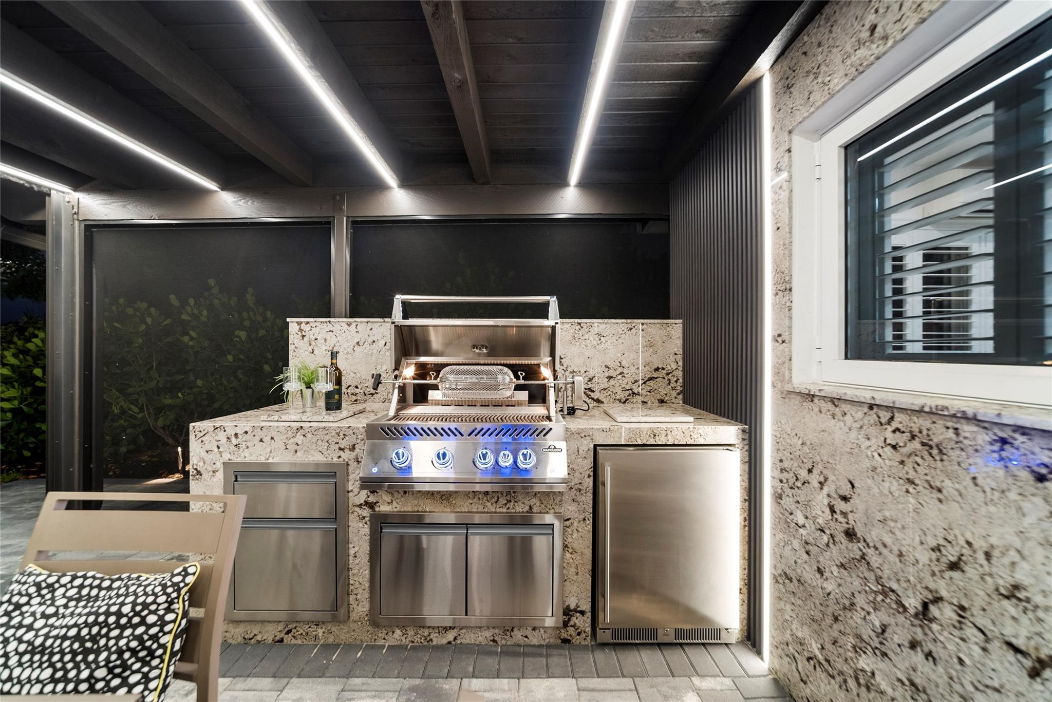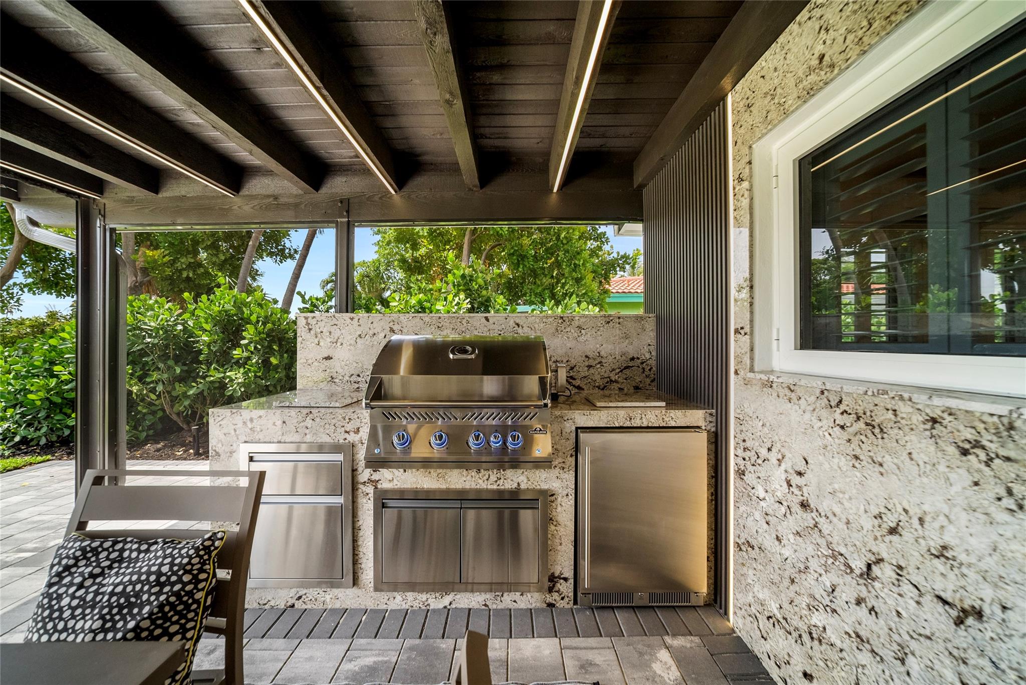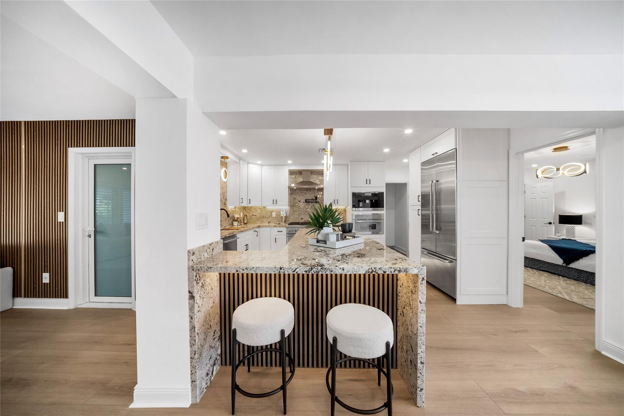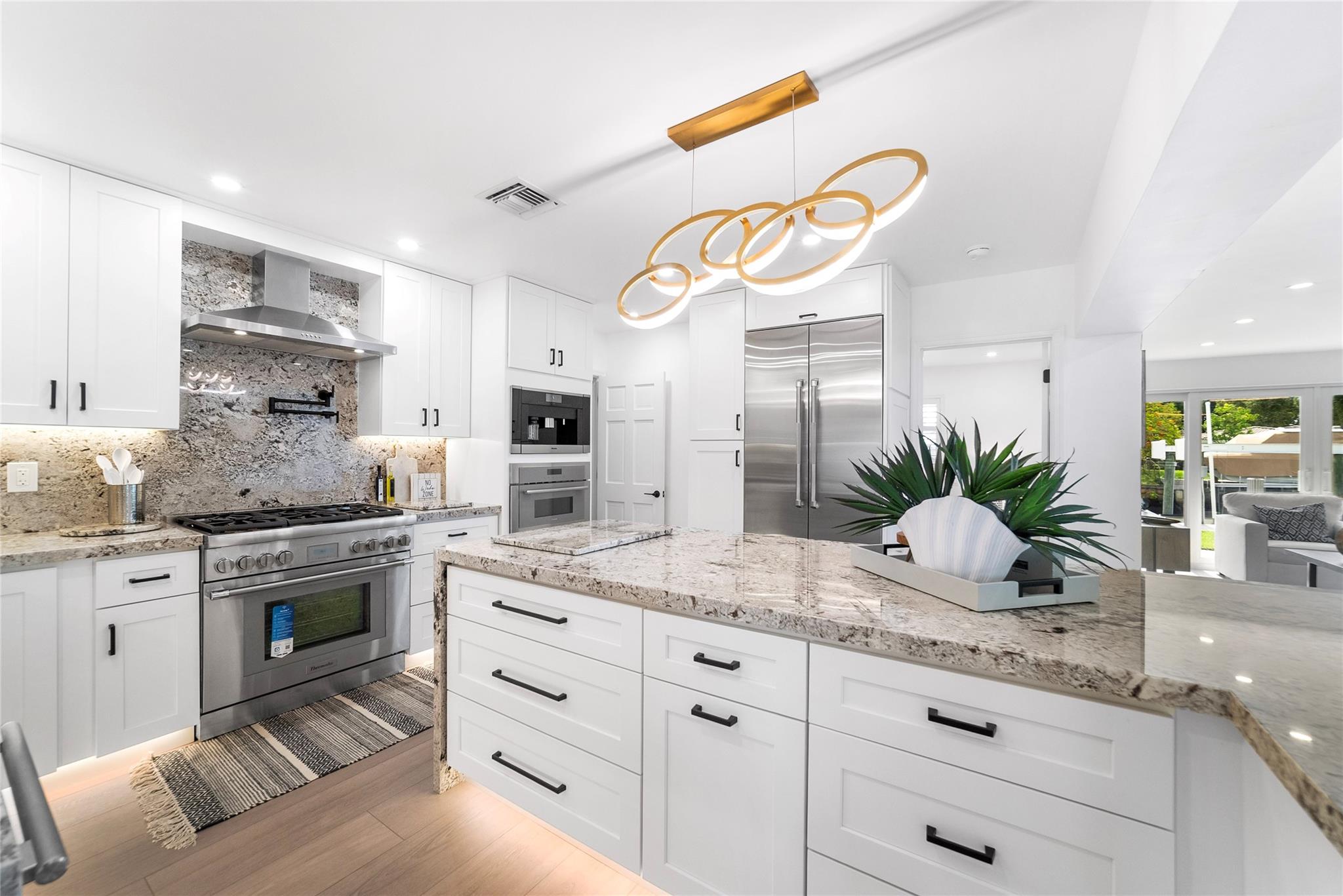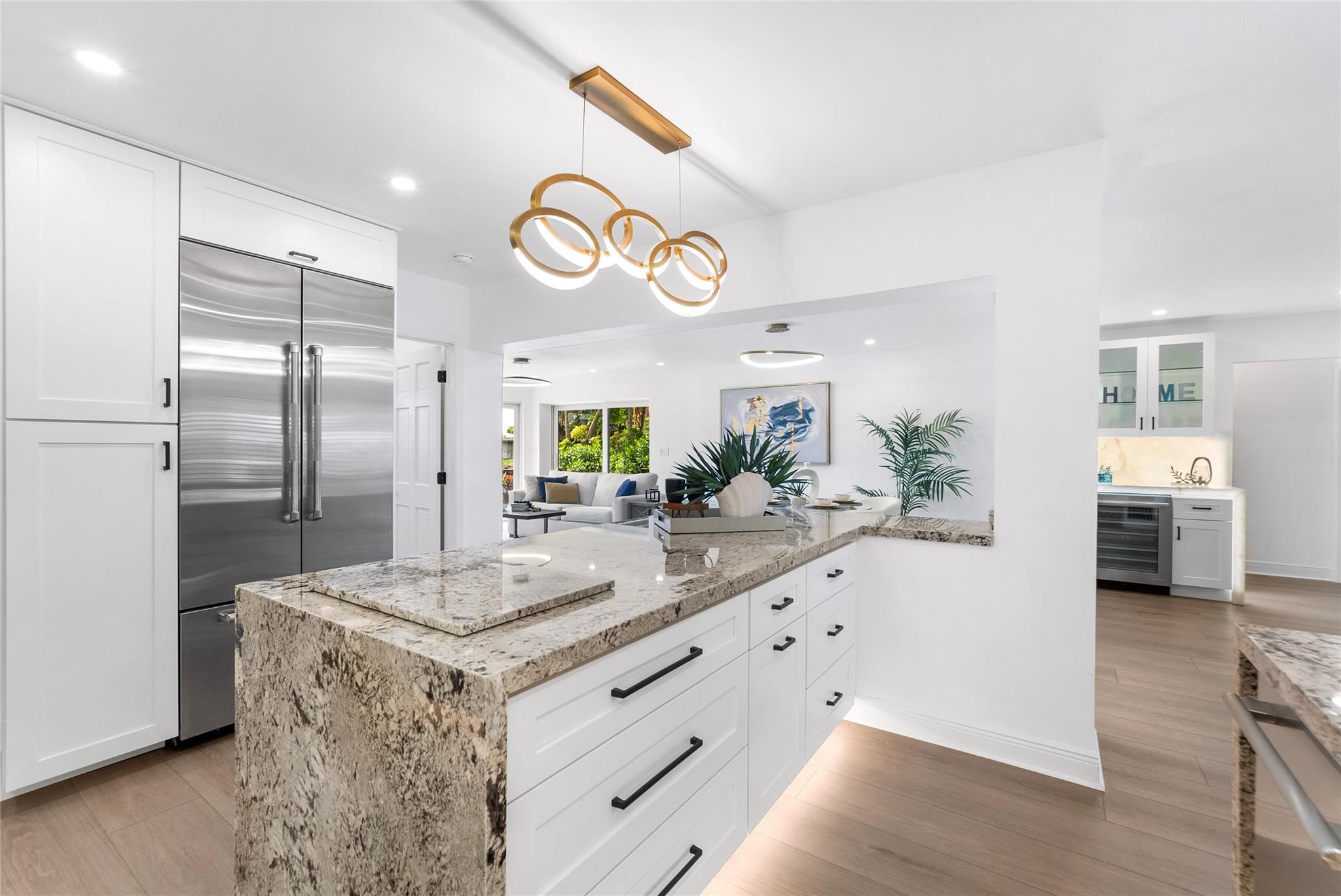OVER $400K IN UPDATES! One-Of-A-Kind, Fully Renovated Waterfront Dream Home w/All Updates Fully Permitted By City Of Pompano Beach. 2025 Metal & Flat Roof (Rated To 218 mph) w/Warranties, Impact Windows, Luxury Wide-Plank Vinyl Flooring, Built-In Closets, LED Mirrors, & 9 Custom Waterfall-Edge Counters. Designer Kitchen w/Thermador Appliances, JennAir Fridge, & Miele Built-In Coffee Maker. Crystallo-Lit Mini Bar w/JennAir Wine Fridge. Outdoor Kitchen Includes Napoleon Grill & Blaze Fridge. Composite Dock, 12K Lb Boat Lift, Floating Dock, & Raised Seawall (2018). New Circular Driveway, Gutters, Epoxy Garage Floor, 7Ft Clusia Hedges, Retractable Screen, 4 Mini-Split A/Cs w/Individual Room Control. Full Centricon Termite.