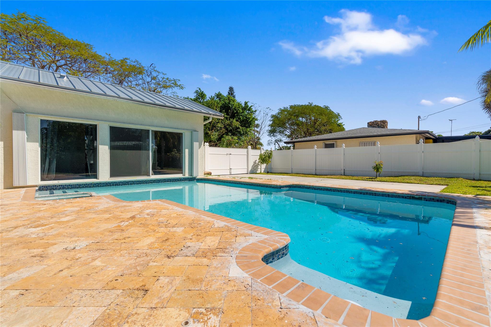Welcome to this beautifully rebuilt (2005) corner lot 4/3 Single family home located in East Boca. This home featured grand open kitchen with wood cabinets, granite countertops and a gas stove. brand new medal roof, fresh paint inside out. 2019 AC, tankless water heater, brand new dimmable LED lights. soaring high ceilings throughout. The expansive living room and master bedroom windows overlook the recently resurfaced Diamond Brite oversized pool. Porcelain tiles in the living area, wood flooring in three of the bedrooms, The oversized backyard patio sits under a real pitched roof, shed with a new metal roof provides ample storage. Tropical maturefruit trees, execellent location, close to everything you can think of, top rated shools make this house a dream home for you! Dont’t miss it!