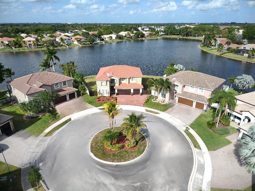 This extraordinary lakefront estate home is nestled in the prestigious, guard-gated community of Pembroke Shores. Perfectly positioned at the center of a large cul-de-sac, it offers ultimate privacy, a welcoming oversized paved driveway, a 3-car garage, and a beautifully manicured topiary landscape.