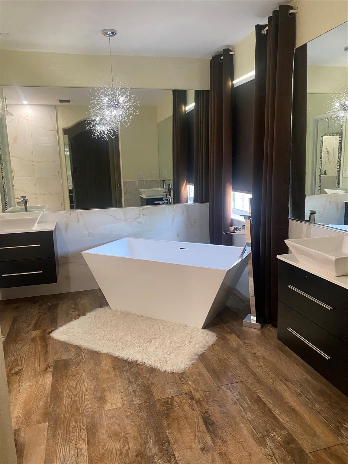 The expansive layout includes a grand open entrance, soaring double-height ceilings, a new gourmet kitchen with quartz countertops, and a massive island. The inviting family room features a large mounted TV and built-in fireplace. The home offers four spacious bedrooms and three and a half bathrooms, including a first-floor master suite and a second-floor grand master with a lavish bathroom, his-and-hers closets, and a private balcony with breathtaking water views.