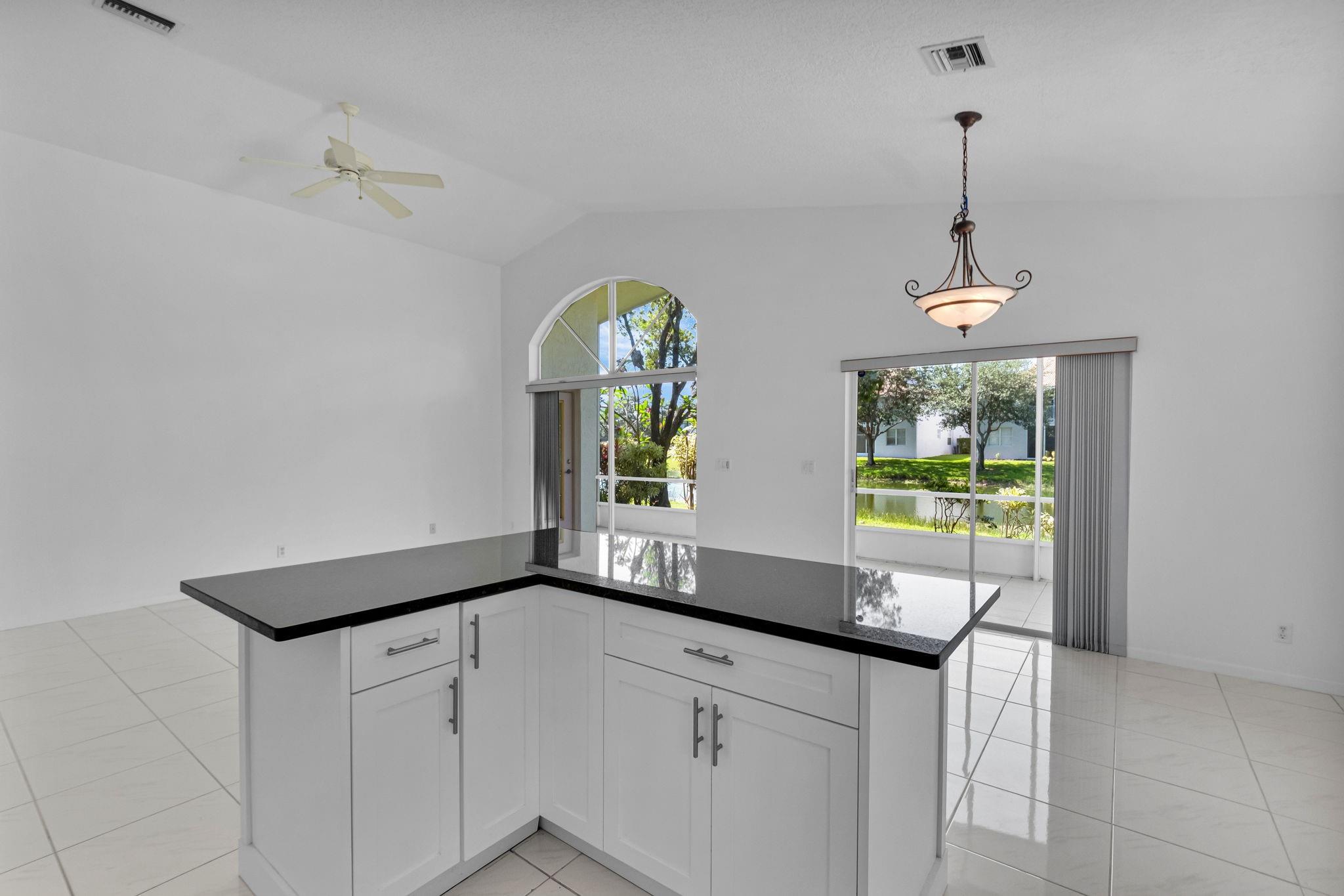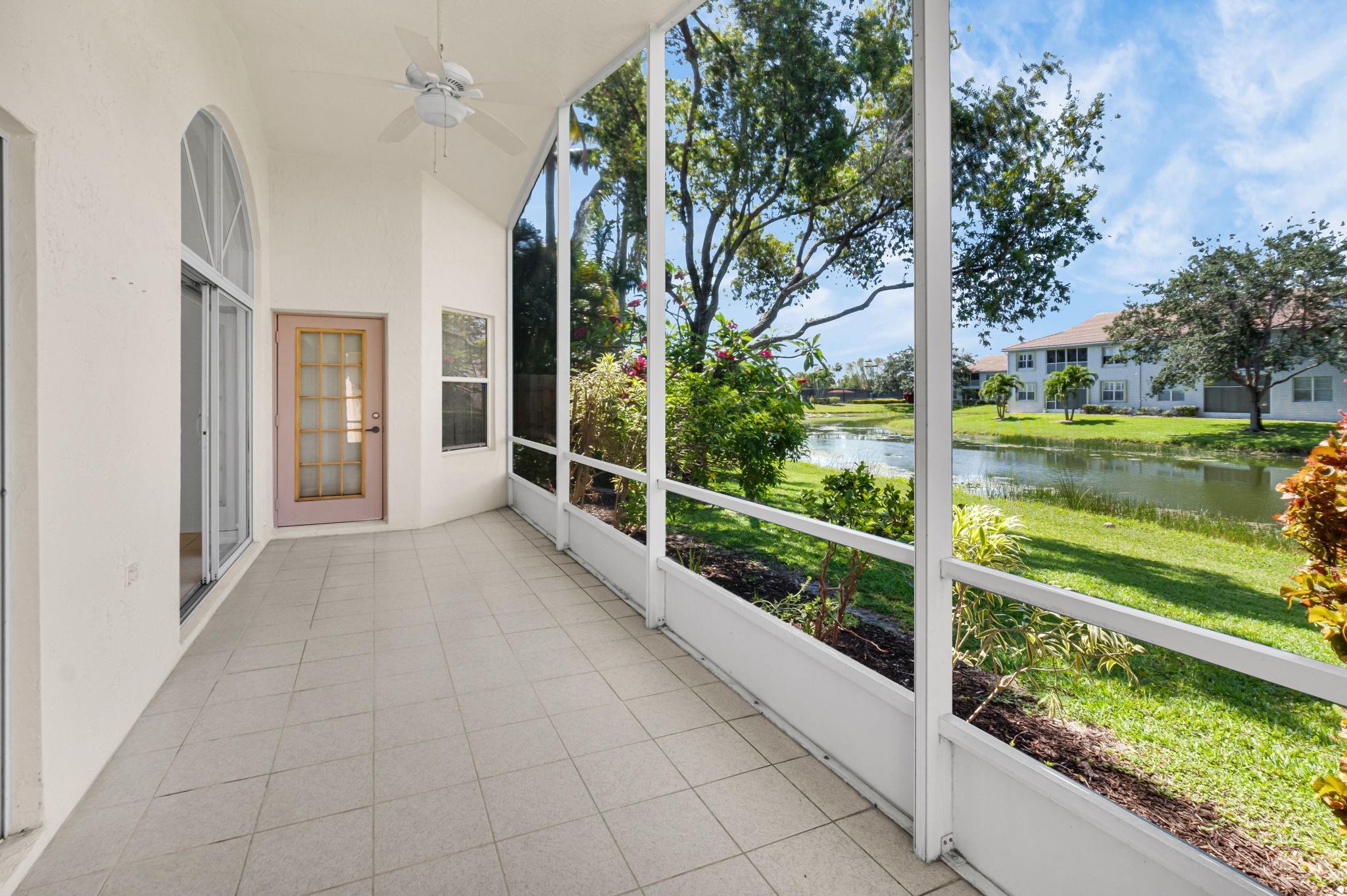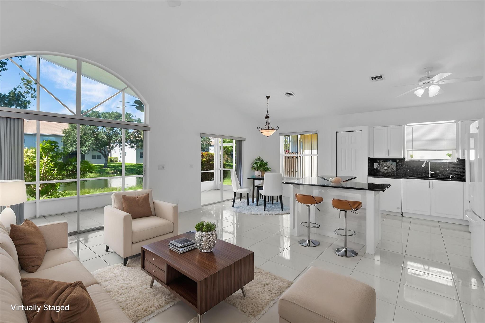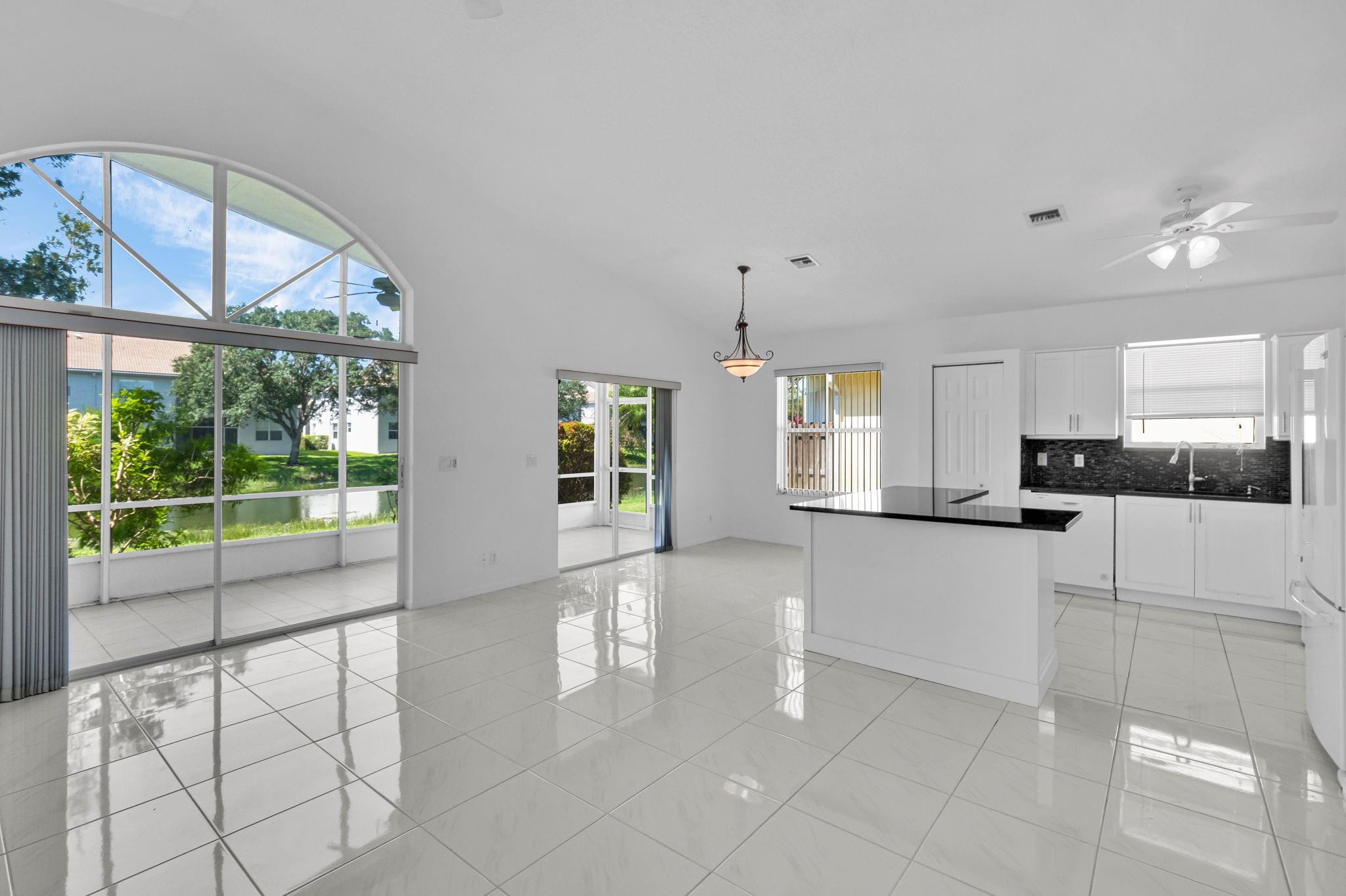 Beautiful lake view home in the 55+ gated community of The Grove. This is the largest floor plan offered featuring 3 bedrooms and 2 full baths (3rd bedroom used as a den). The updated kitchen includes granite countertops and a center island perfect for entertaining. Super spacious primary suite offers two walk-in closets and a bathroom with double sinks, a shower, and a tub. New carpet in the second bedroom. Dedicated laundry area. Relax on the oversized covered patio overlooking the lake. Roof is 2016. The Grove is a 24-hour manned gate active community offering an Olympic-sized saltwater swimming pool, sauna, Jacuzzi, fitness room, sports courts and lots of activities and events. Conveniently located near Florida’s Turnpike, I-95, shopping and dining. One pet up to 30lbs allowed.