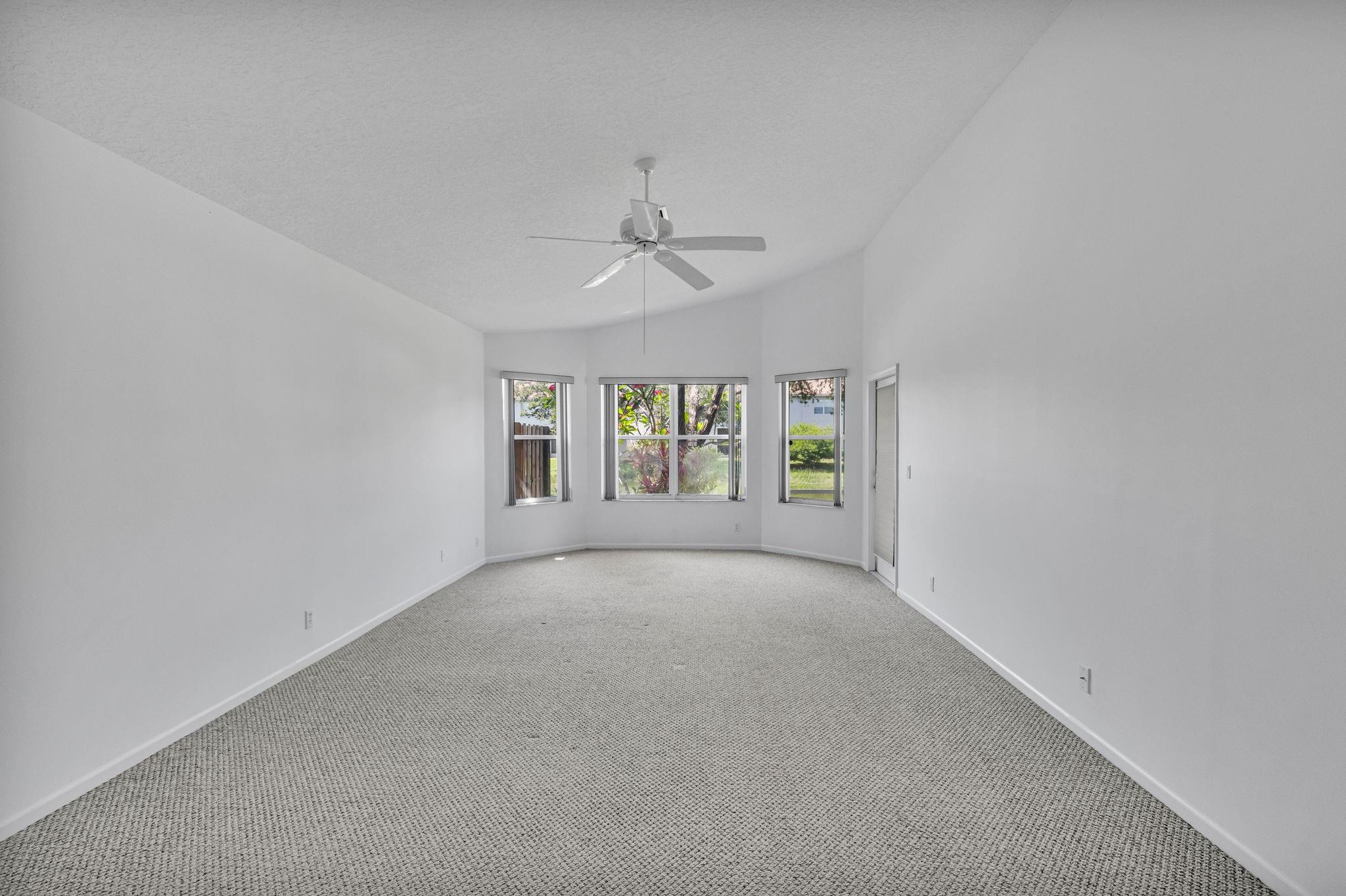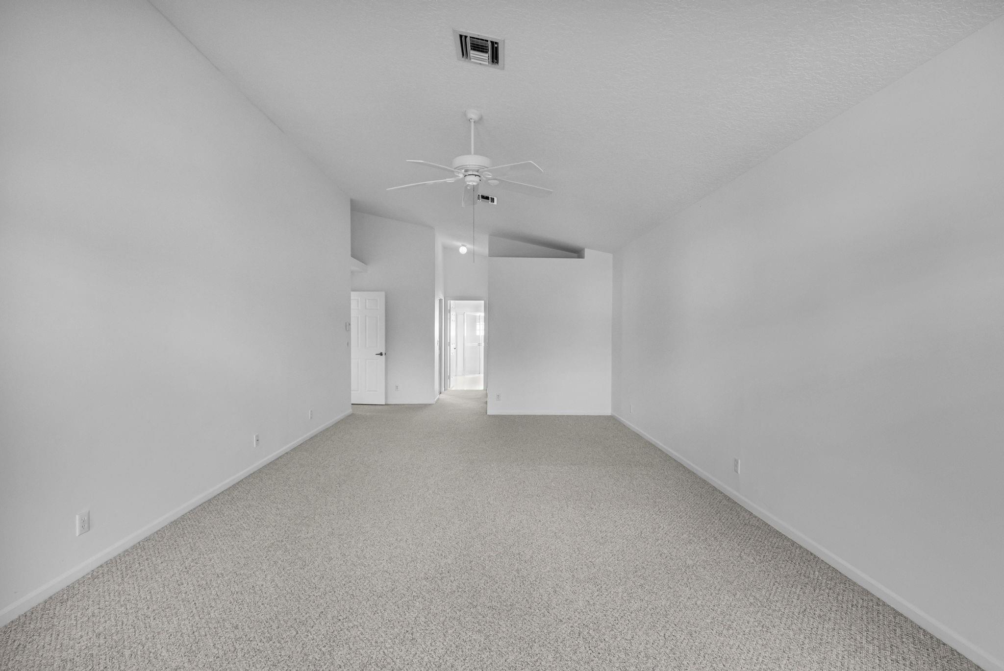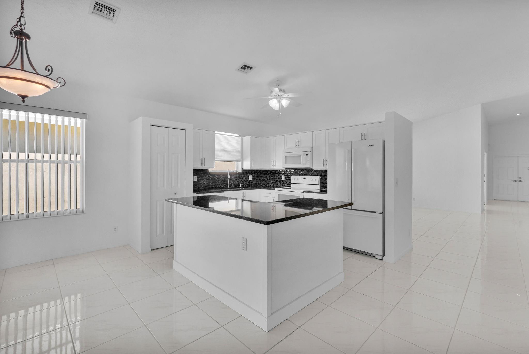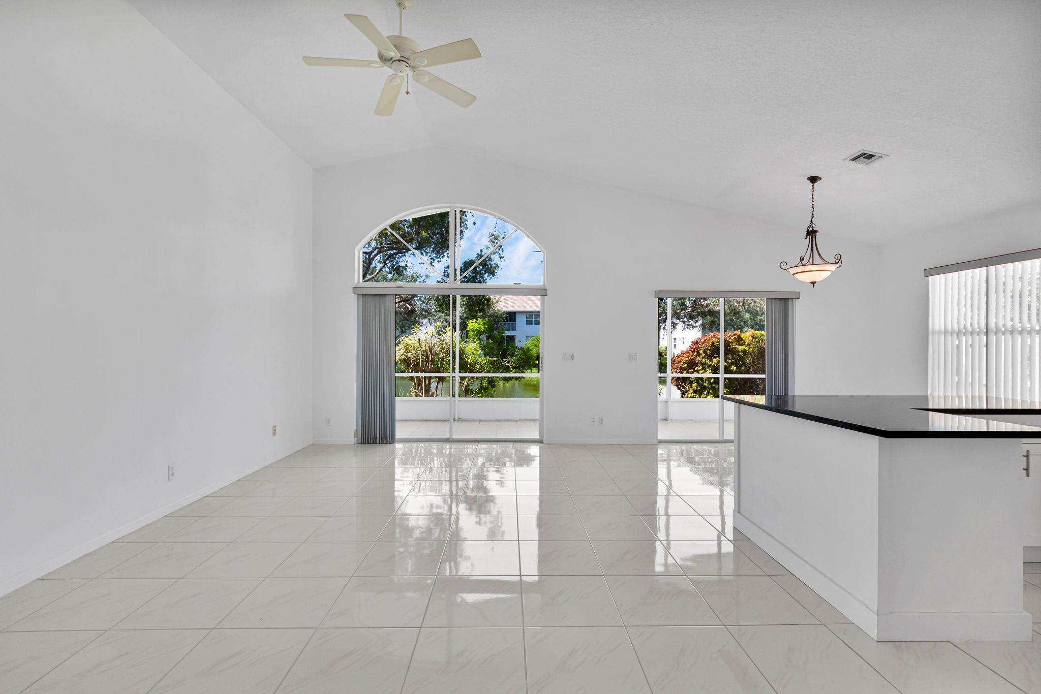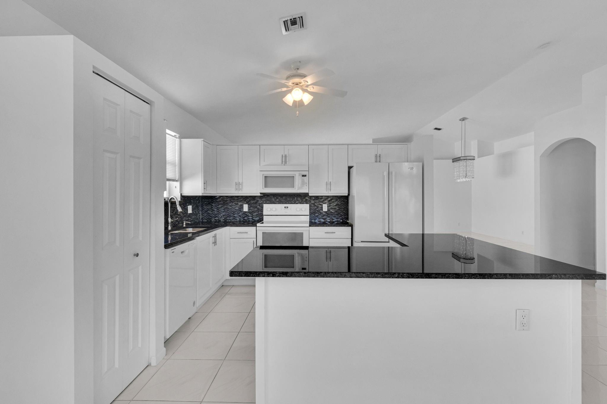 Beautiful lake view home in the 55+ gated community of The Grove. This is the largest floor plan offered featuring 3 bedrooms and 2 full baths (3rd bedroom used as a den). The updated kitchen includes granite countertops and a center island perfect for entertaining. Super spacious primary suite offers two walk-in closets and a bathroom with double sinks, a shower, and a tub. New carpet in the second bedroom. Dedicated laundry area. Relax on the oversized covered patio overlooking the lake. Roof is 2016. The Grove is a 24-hour manned gate active community offering an Olympic-sized saltwater swimming pool, sauna, Jacuzzi, fitness room, sports courts and lots of activities and events. Conveniently located near Florida’s Turnpike, I-95, shopping and dining. One pet up to 30lbs allowed.