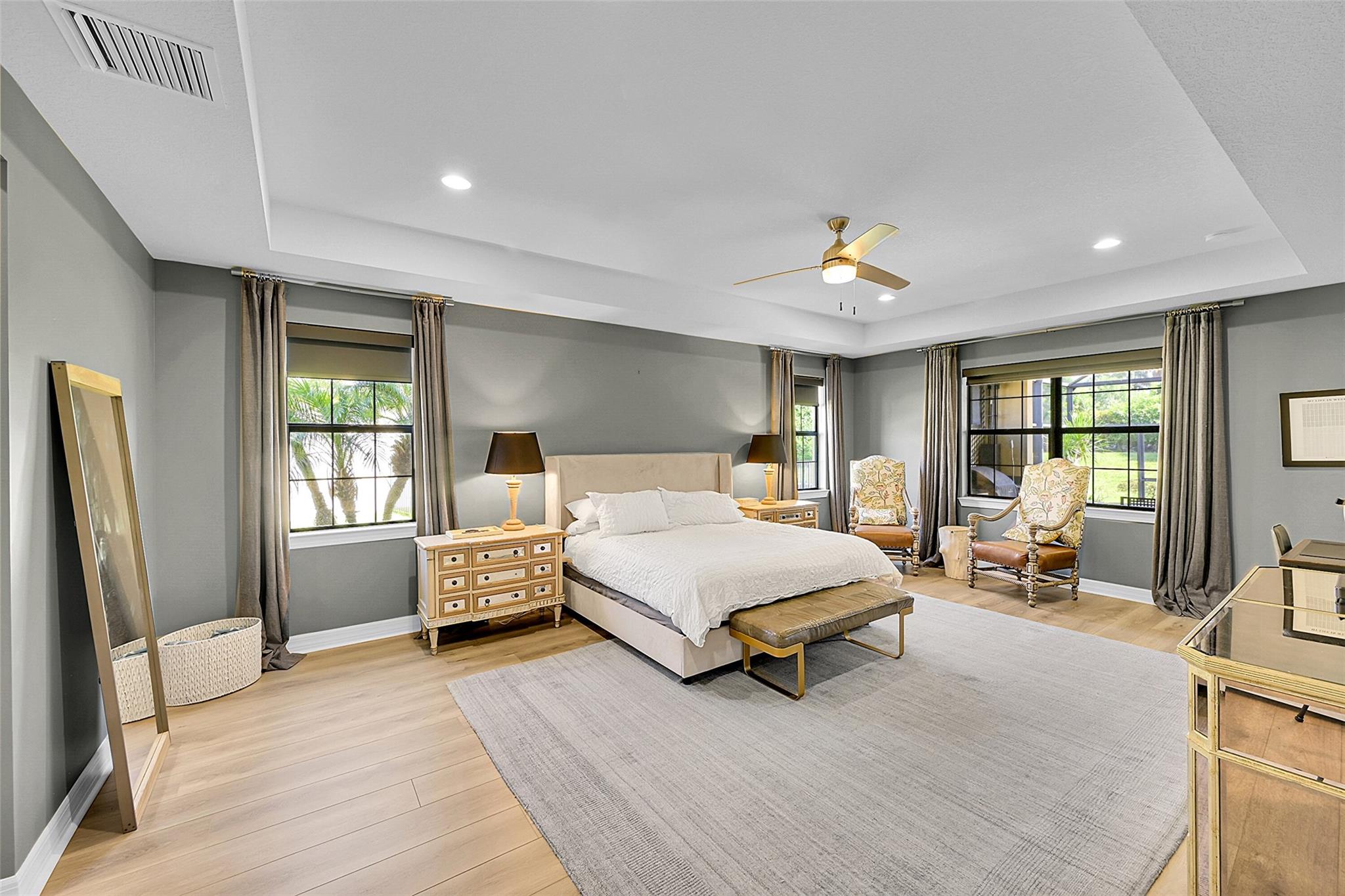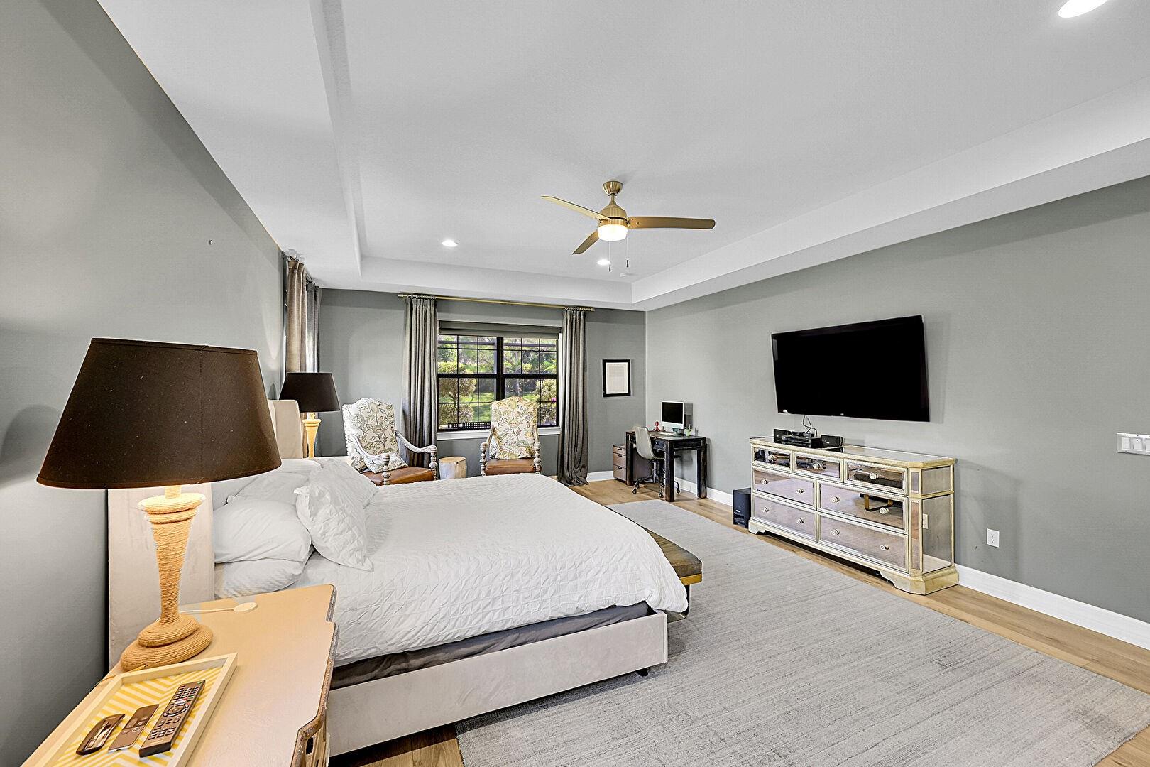 Beautifully upgraded home in the gated community of Castellina. This 5-bedroom + den, 3.5-bath residence offers over 3,200+ sqft of living space with a split floor plan, custom carpentry, RH chandeliers throughout, and a deep 3-car garage. Enjoy an open-concept layout with high ceilings, abundant natural light, and a 1,400+ sqft screened patio with BBQ bar, in-ground planters, and a tranquil water feature perfect for indoor-outdoor Florida living. The spacious master suite includes dual built-ins and a spa-like bath. Large lot with room for a pool. Community features tennis, pickleball, resort-style pool, fitness center, and lawn care. Minutes from WEF, shopping, dining, and with easy access to US-441, Turnpike, and I-75. Brand New AC units.