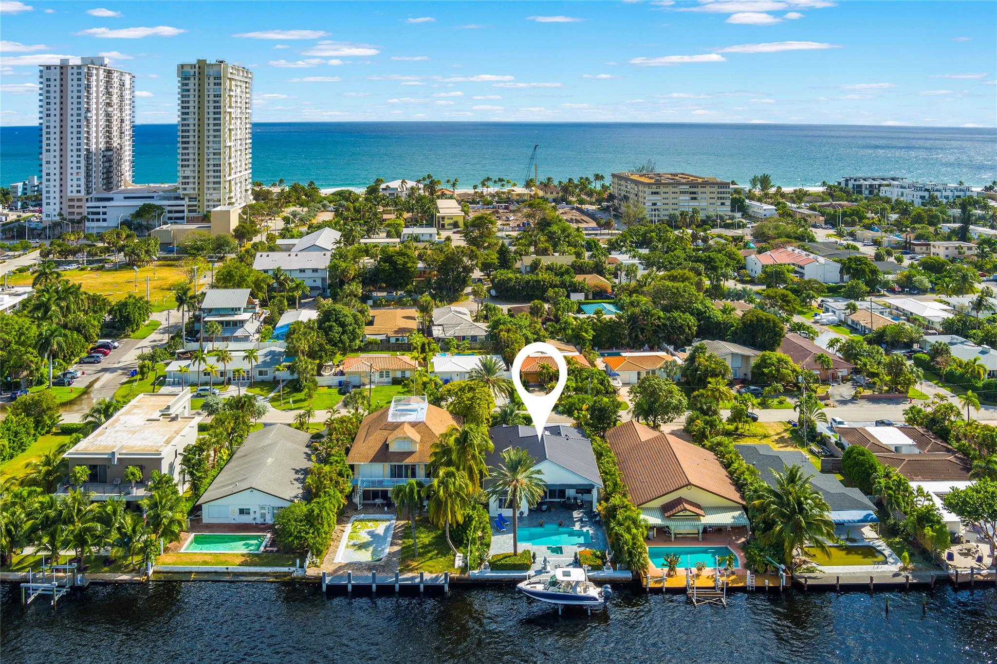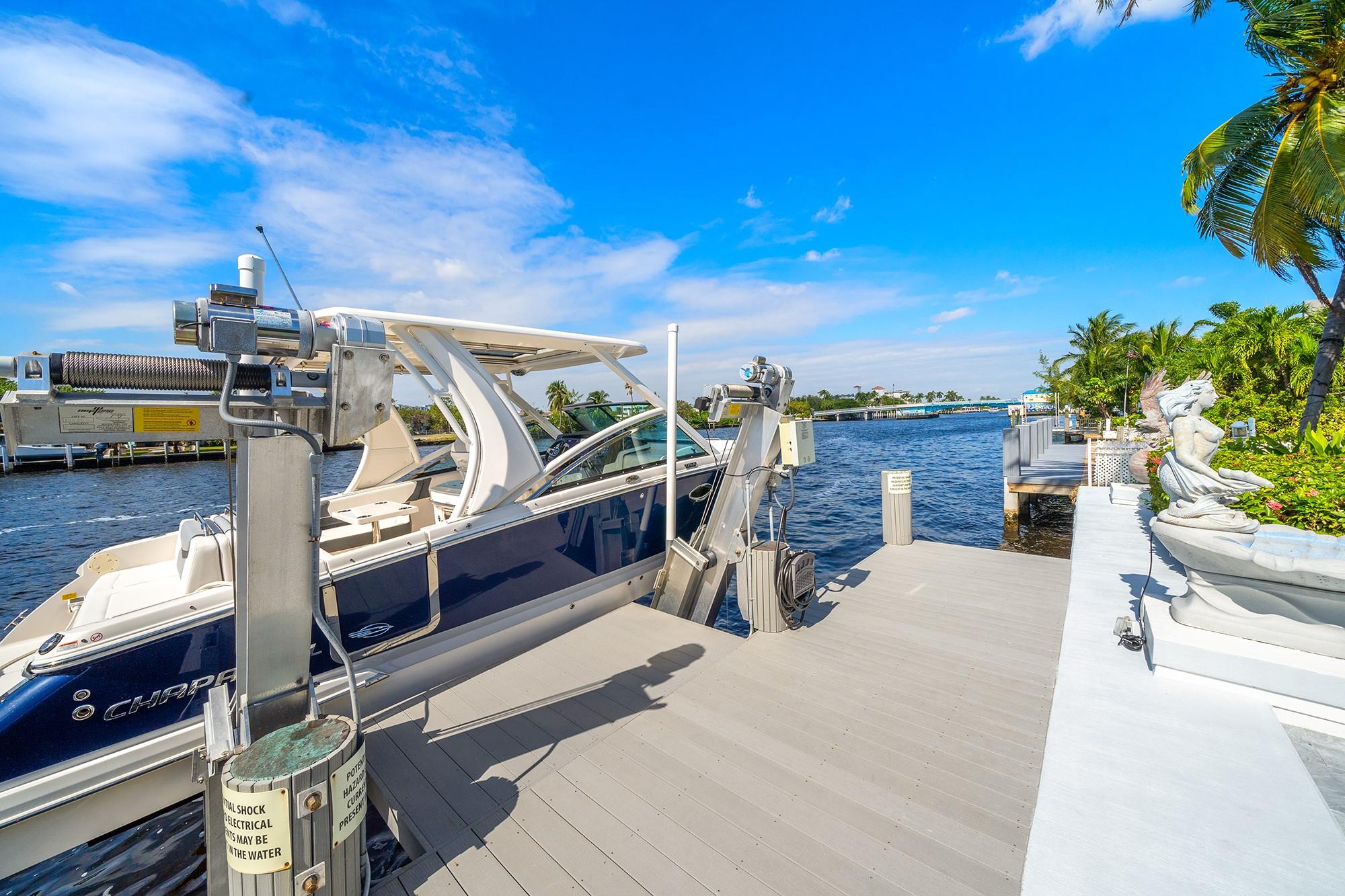 Waterfront living at its best! Located on the coveted east side of the Intracoastal, this beautifully updated 3BR/2.5BA home features a new galvanized roof, soaring ceilings, and elegant marble hardscaping throughout the driveway, backyard, and both sides of the home. Boating enthusiasts will love the brand-new dock and 20,000-lb boat lift — with no fixed bridges and quick access to the inlet. Fresh landscaping and low-maintenance outdoor spaces make it perfect for relaxing or entertaining. Conveniently located just minutes from the beach, shopping, and dining, this home blends luxury, location, and lifestyle in the heart of Pompano Beach