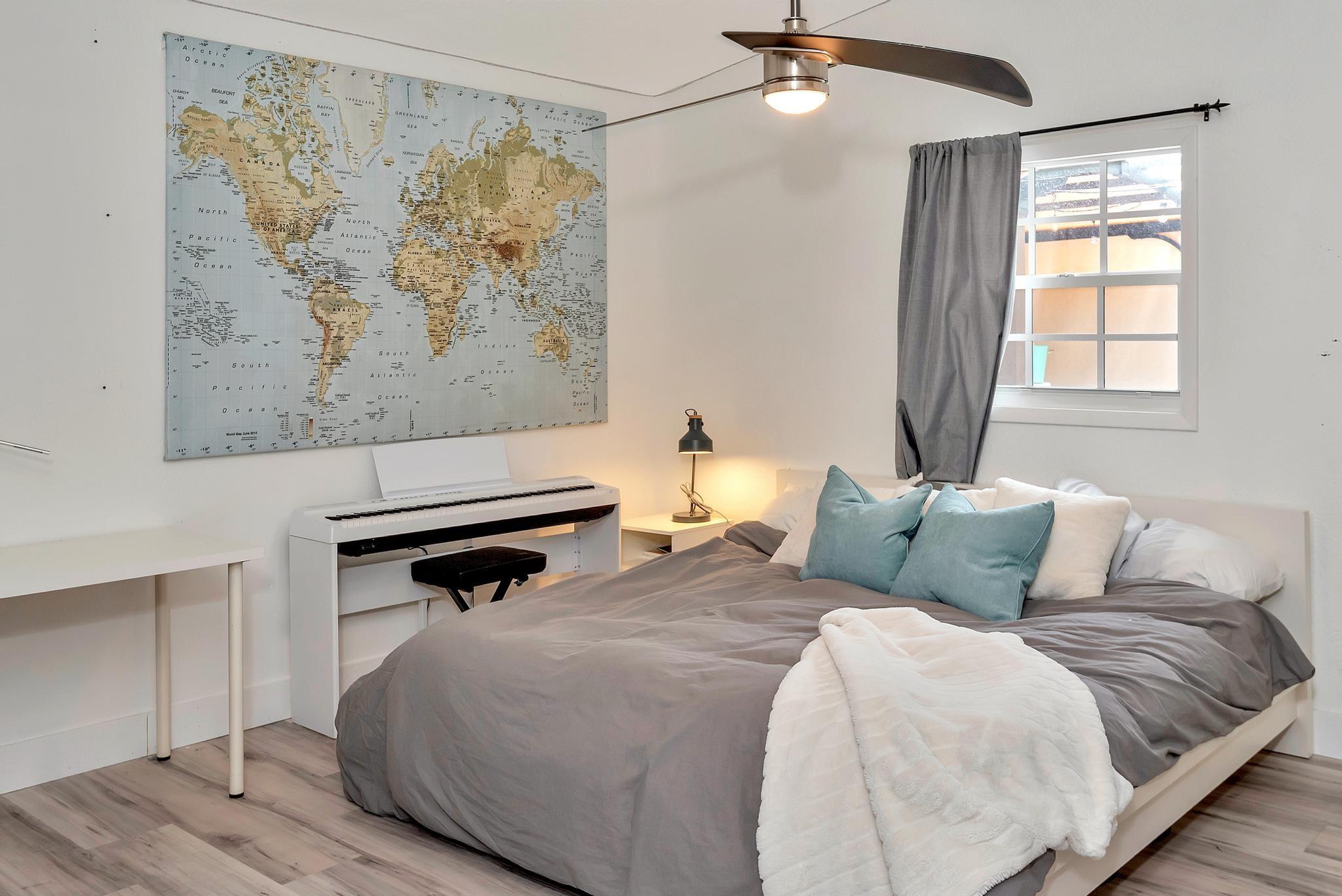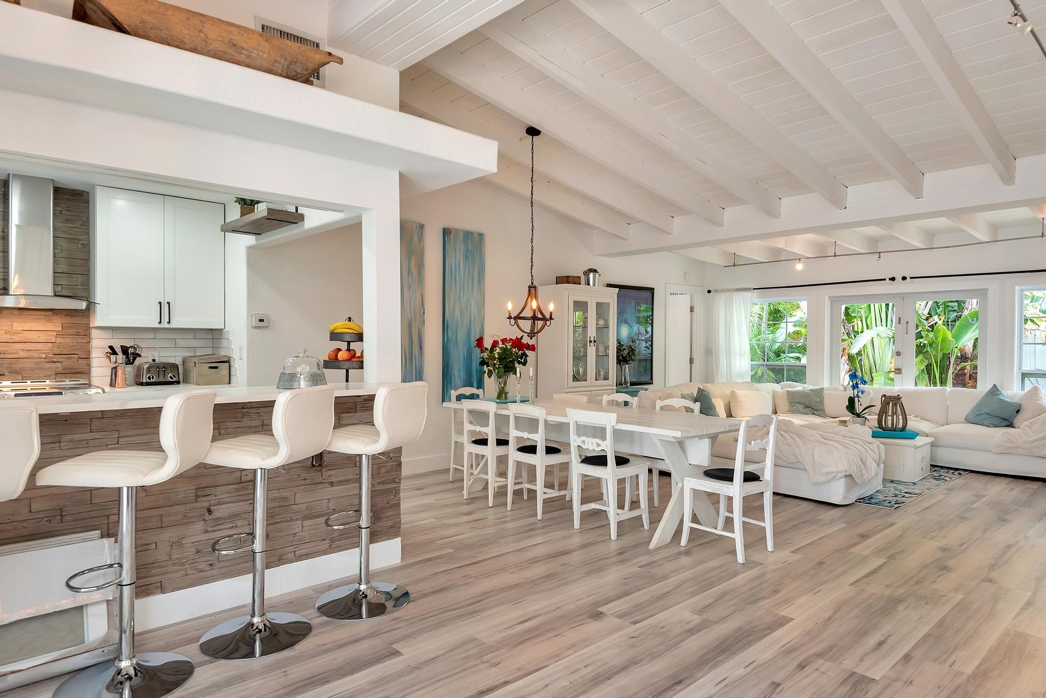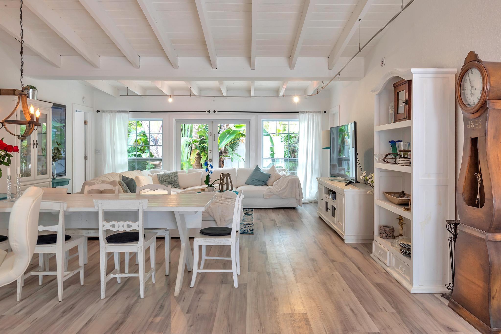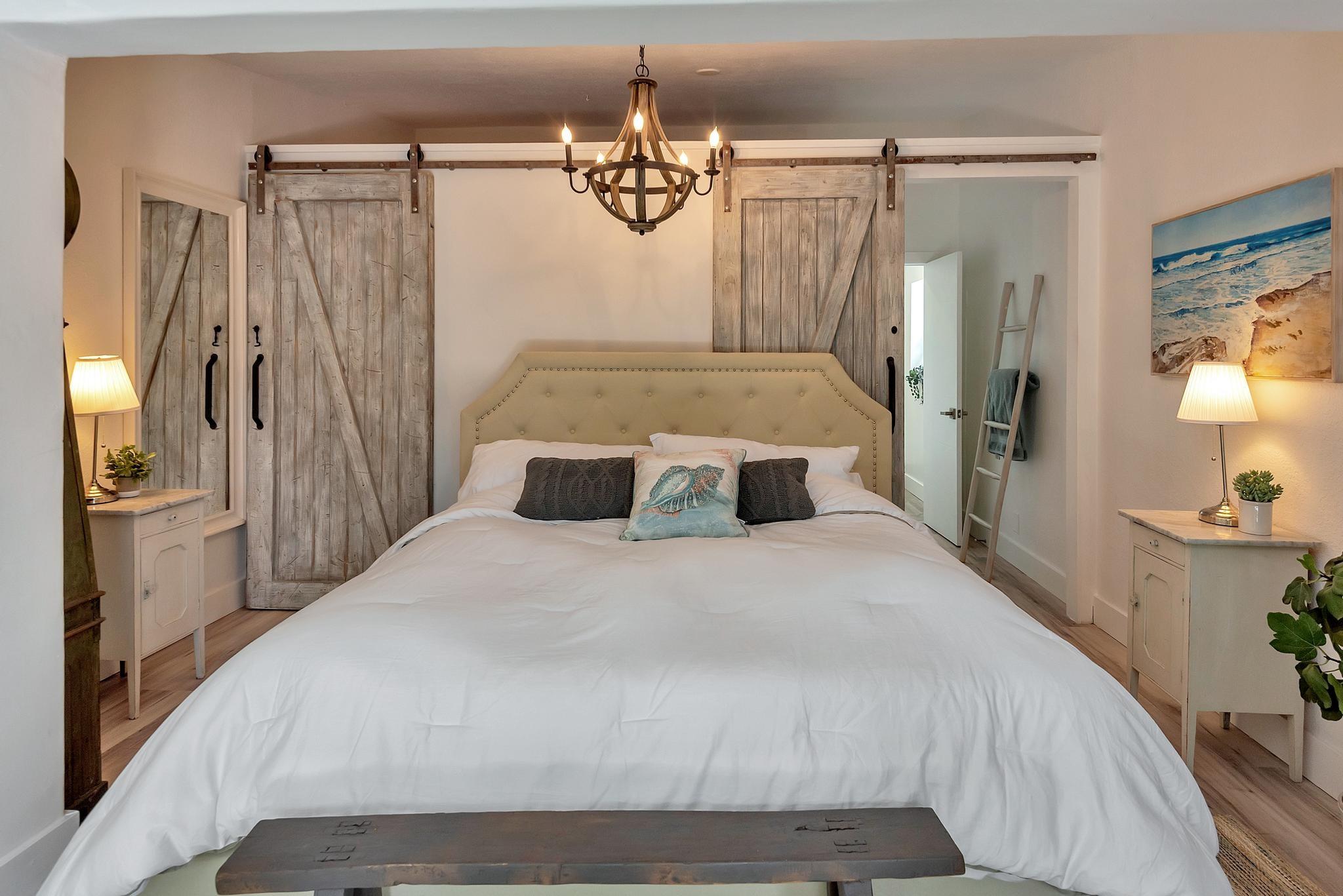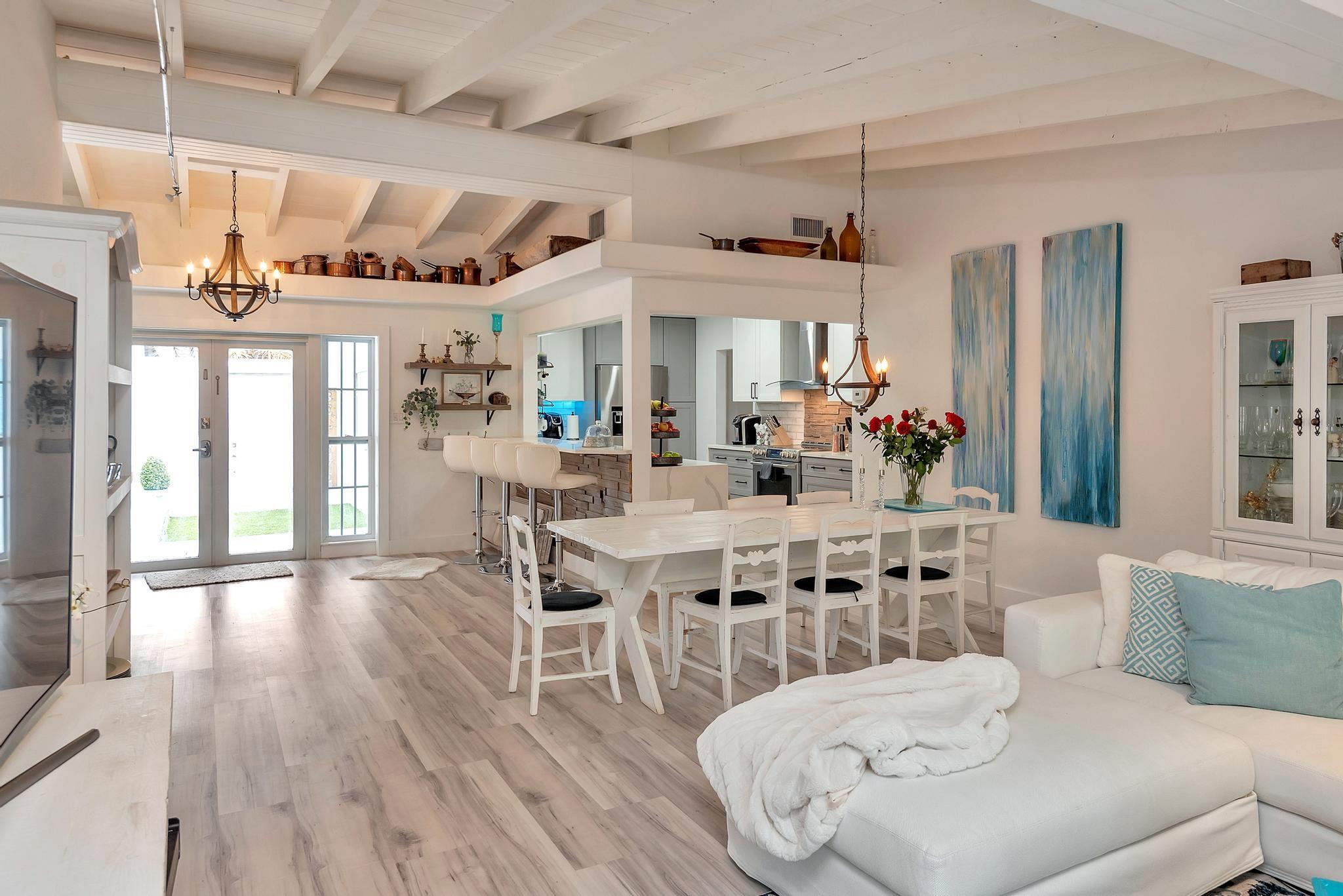 Cute and Cozy “Walk-to the Beach” house on quiet Terra Mar Island. Private fenced in yard with wood deck patio and hottub. Sideyard perfect as children’s playarea or for pets. Home offers vaulted ceilings in livingroom – exposed wood beams – and open floorplan between updated kitchen and livingroom/dining. Split 3 bedrooms. Primary bedroom offers custom built barndoors to walk-in closet, and doors leading out to small backyard patio and sideyard. Bonusroom used as an office. Furniture negotible. Room for Pool and Drawings available.