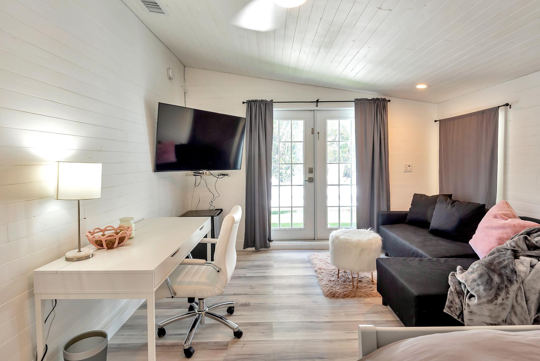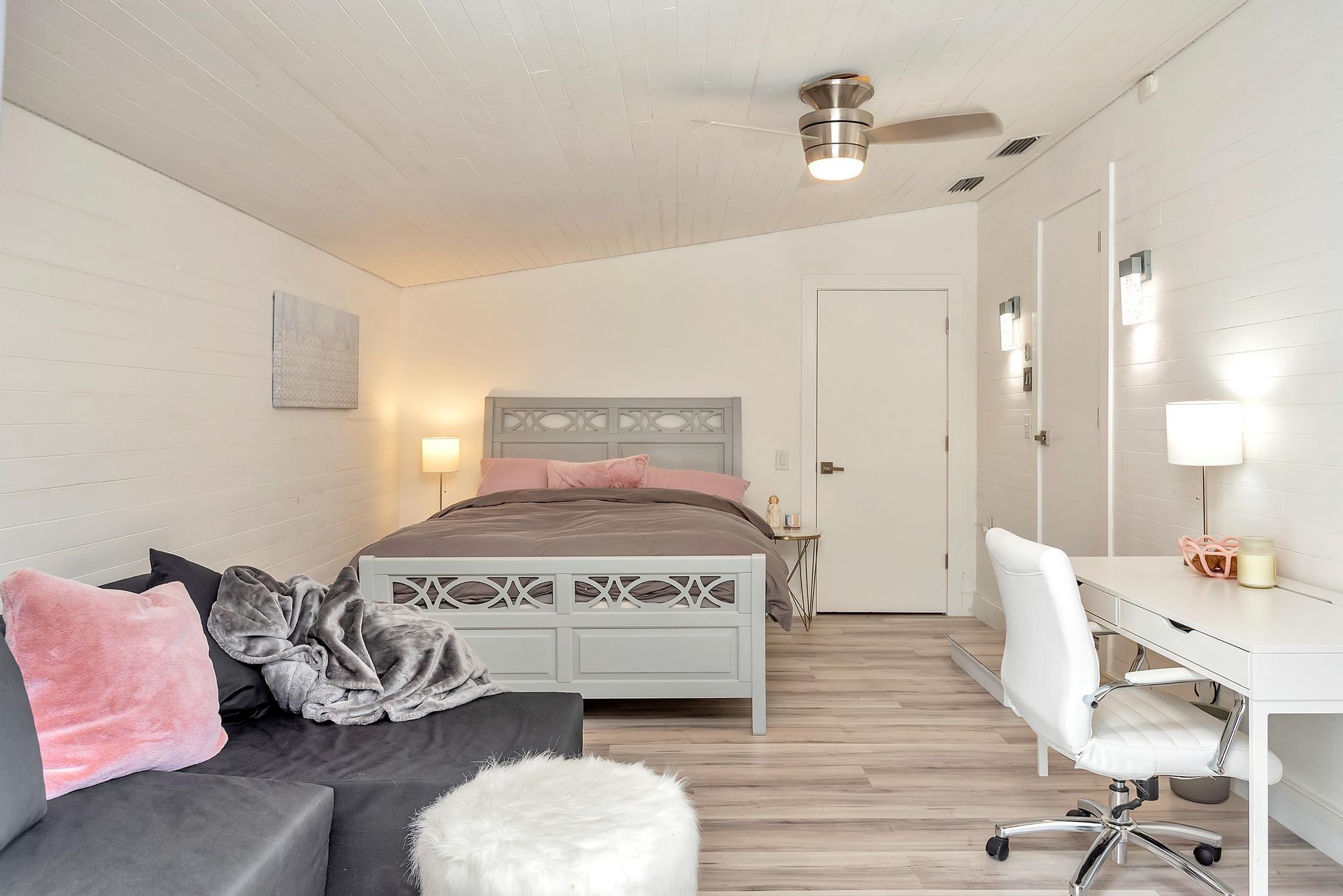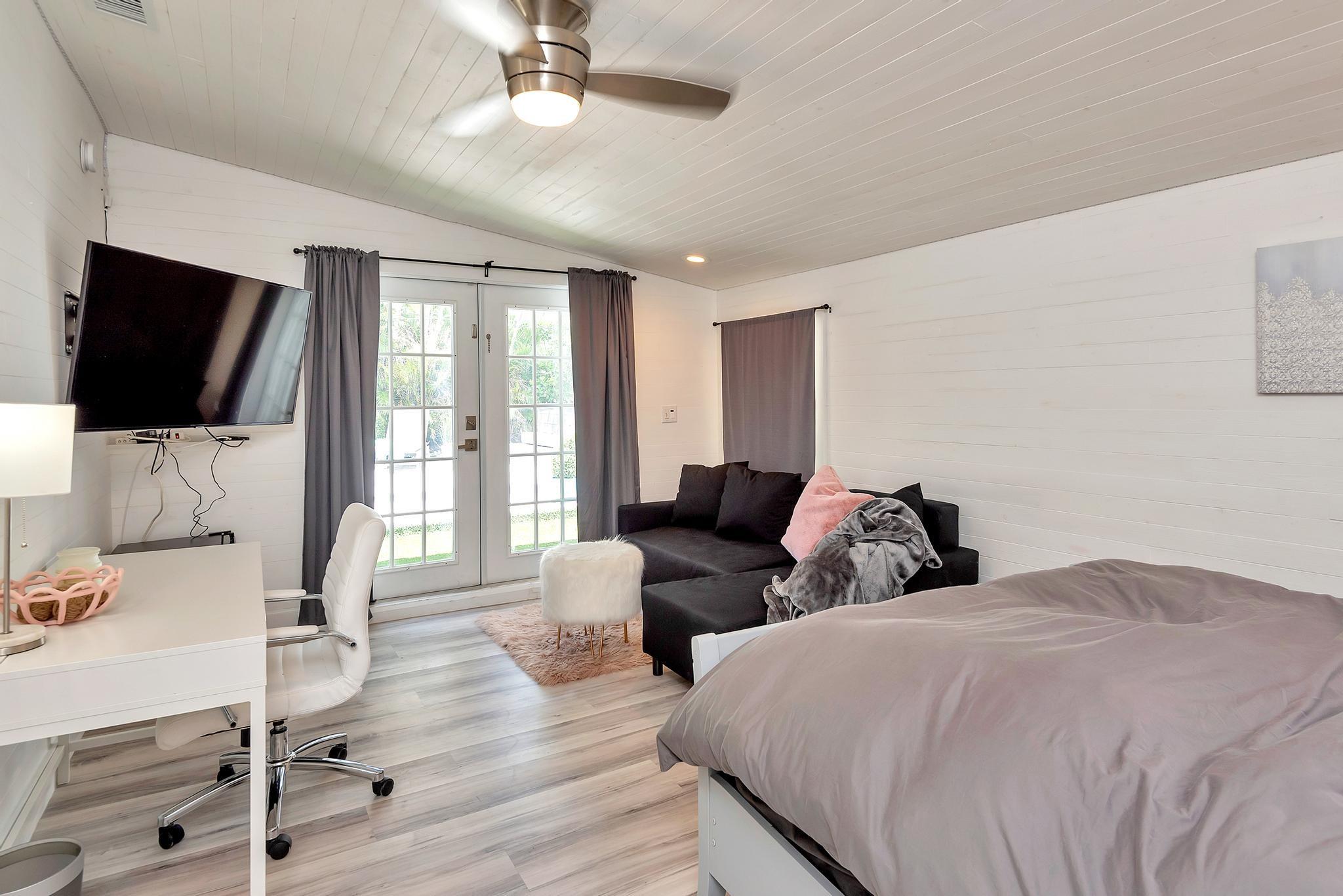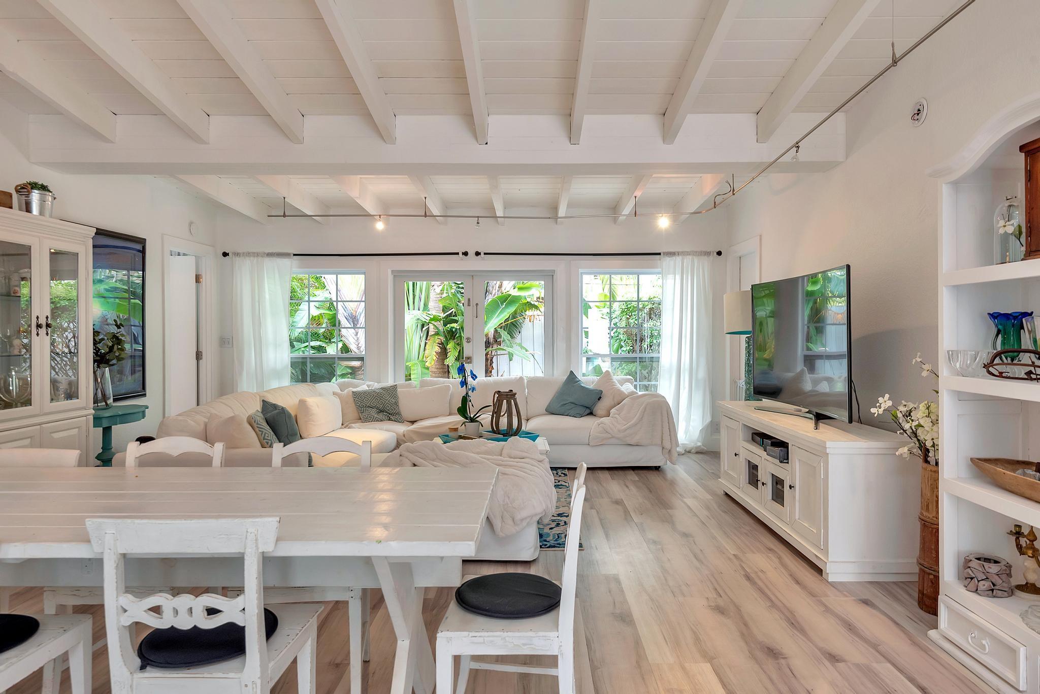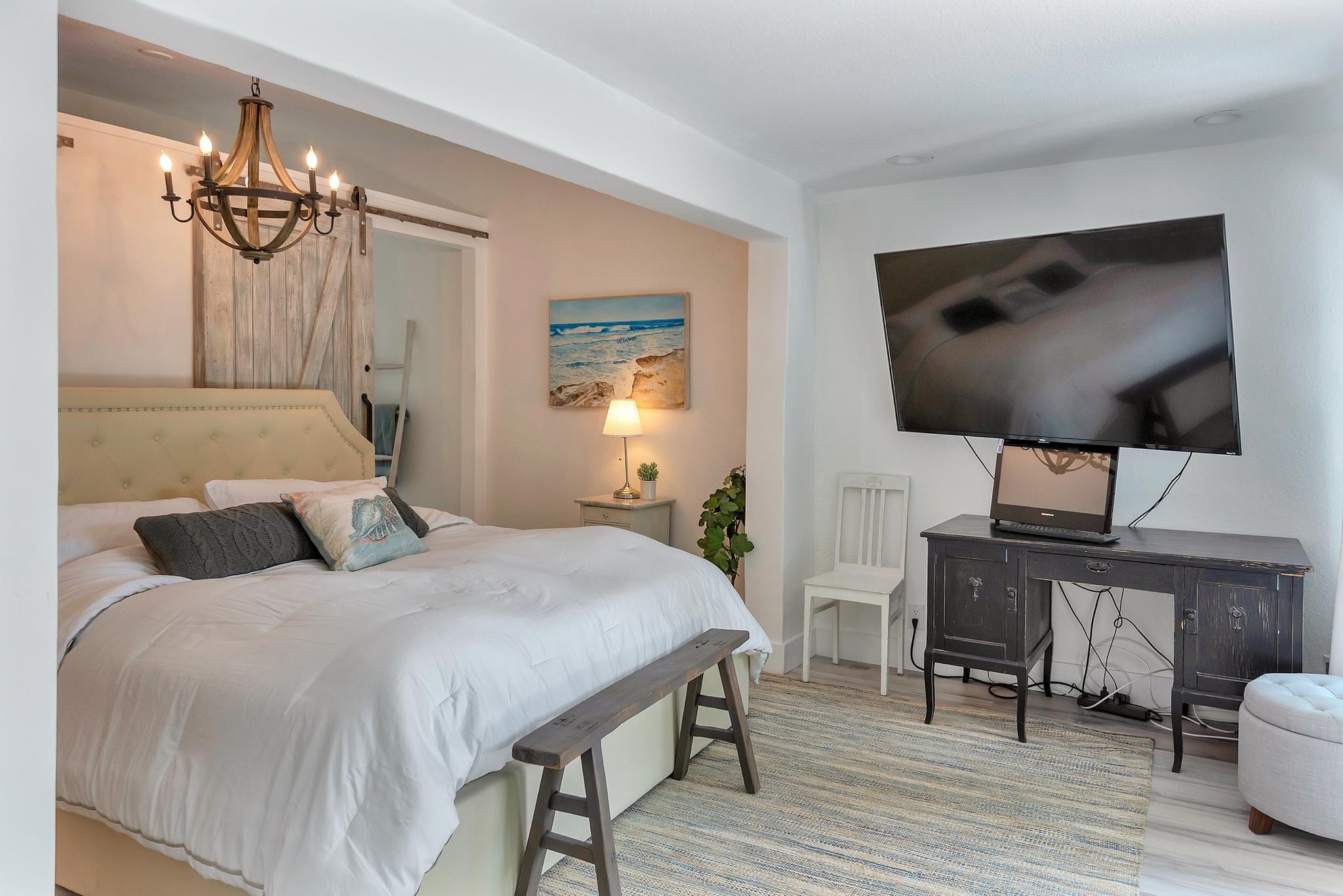 Cute and Cozy “Walk-to the Beach” house on quiet Terra Mar Island. Private fenced in yard with wood deck patio and hottub. Sideyard perfect as children’s playarea or for pets. Home offers vaulted ceilings in livingroom – exposed wood beams – and open floorplan between updated kitchen and livingroom/dining. Split 3 bedrooms. Primary bedroom offers custom built barndoors to walk-in closet, and doors leading out to small backyard patio and sideyard. Bonusroom used as an office. Furniture negotible. Room for Pool and Drawings available.