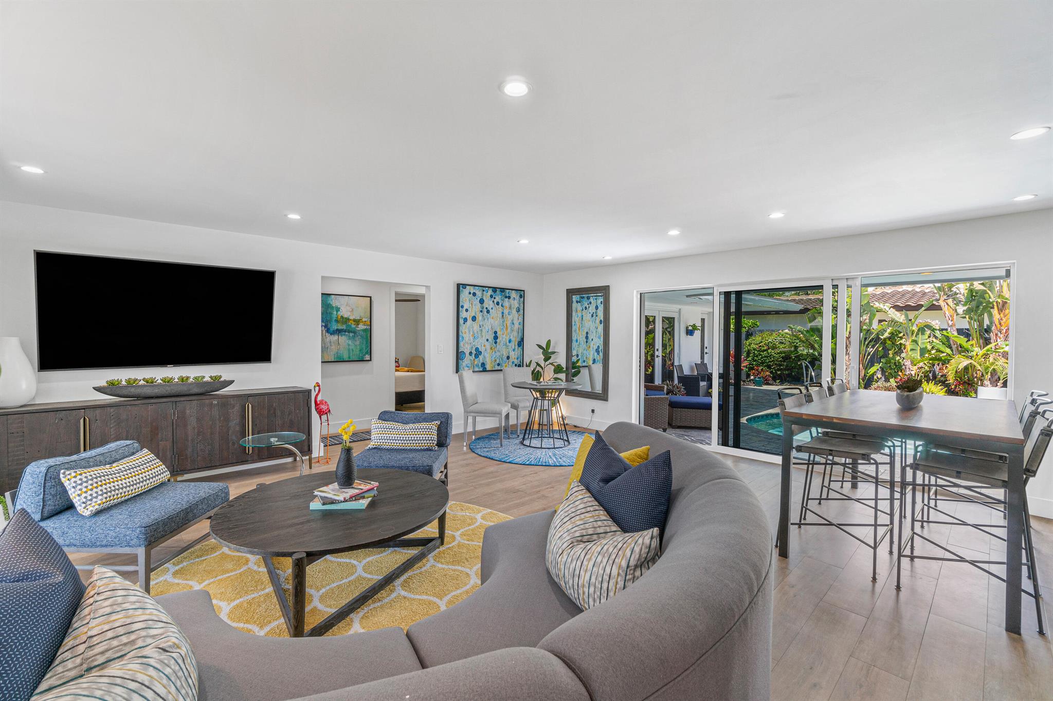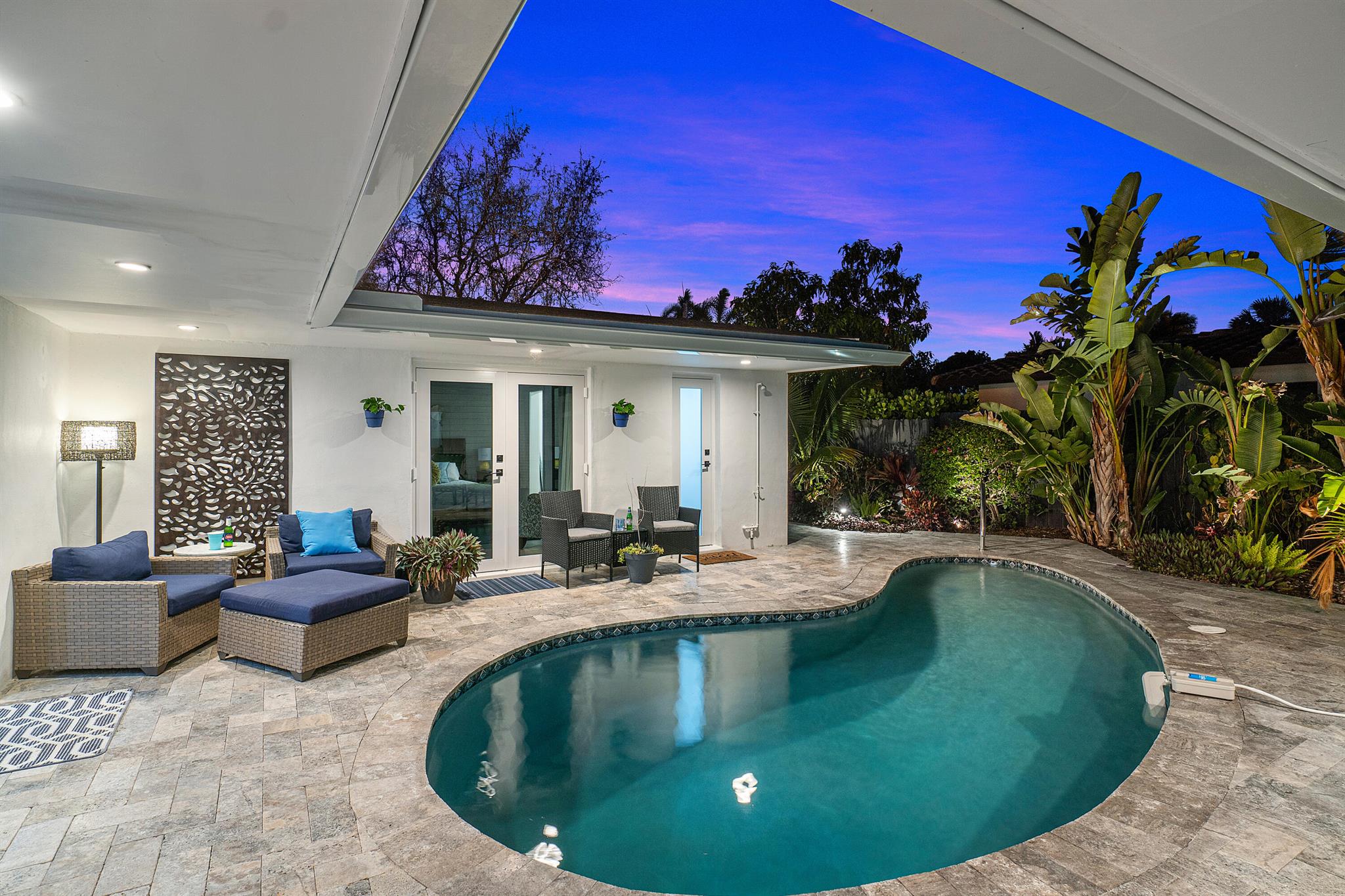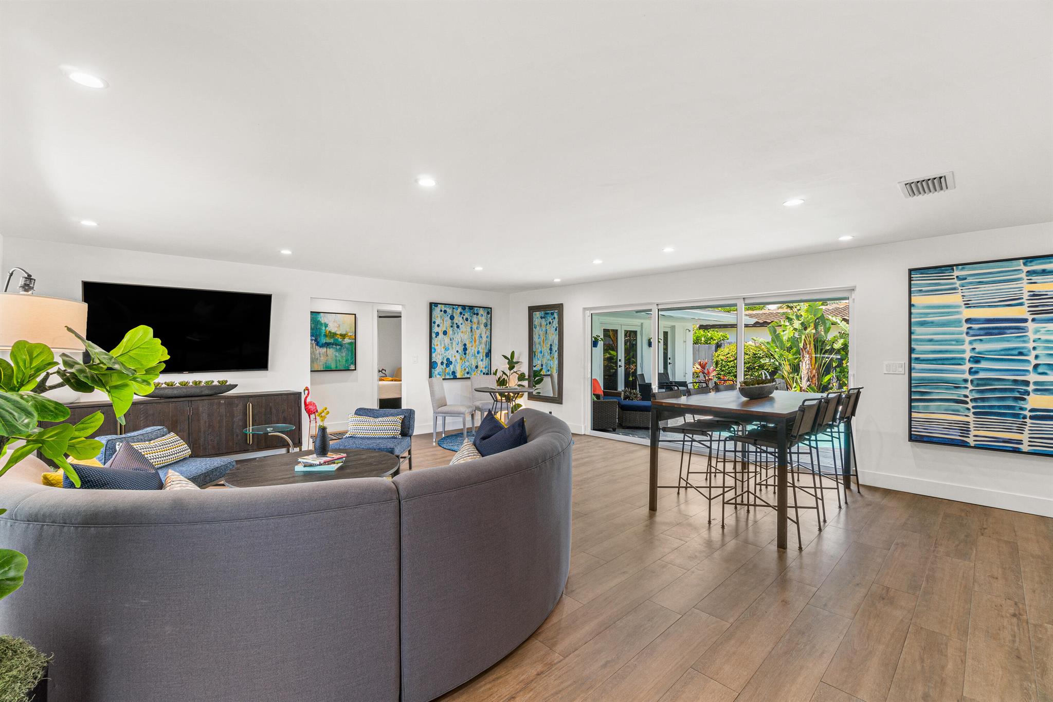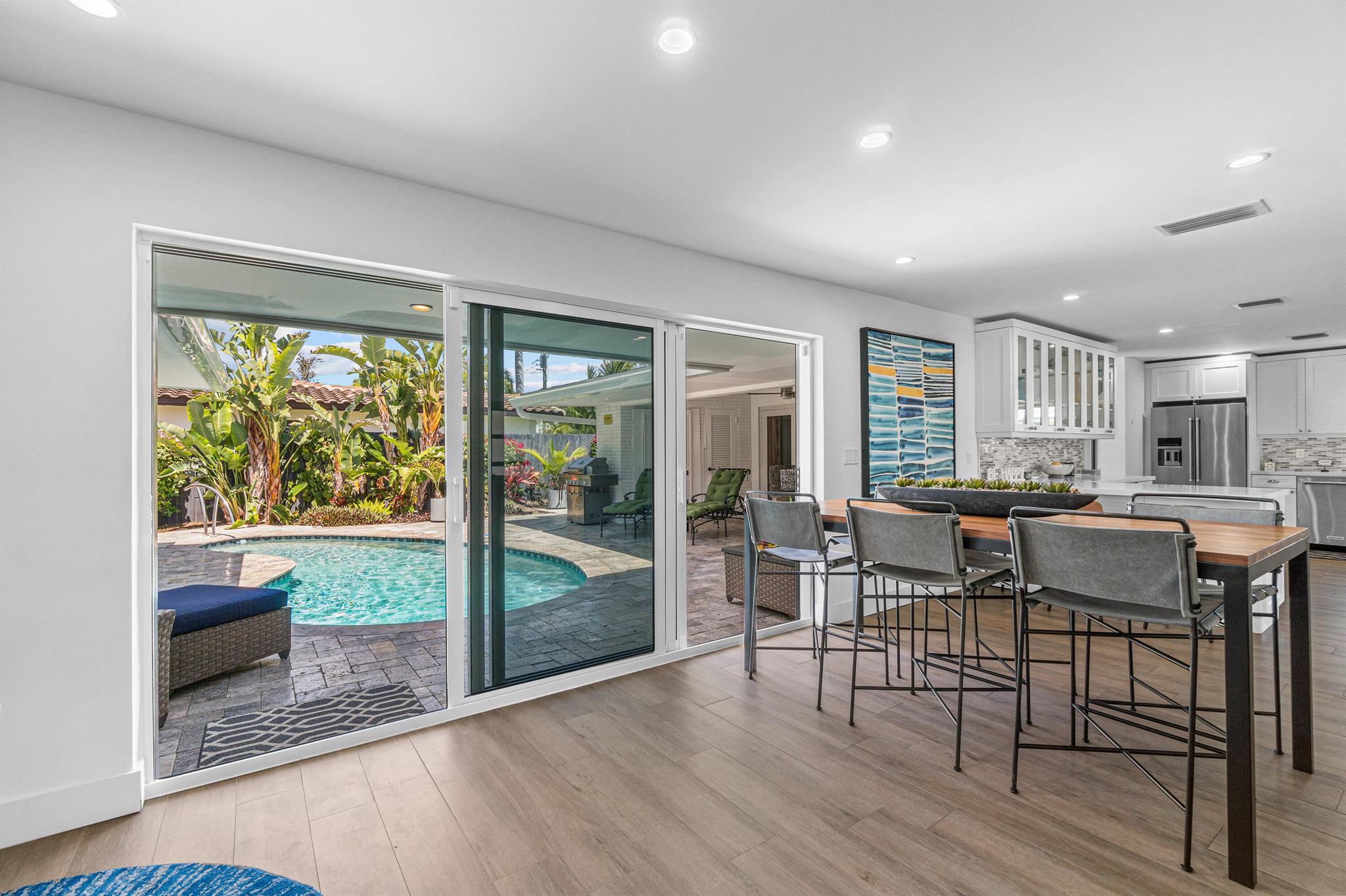 Absolutely stunning home. Located on a corner lot in the heart of Coral Ridge. This 4 bedrooms, 3 full baths home has been completely renovated with updated Kitchen Aid appliances, impact windows/doors throughout, gas water heater, new electrical wiring and a new roof, new landscaping, new washer/dryer, leased solar, new pool heater, new controller and pump on hot tub. This home has been approved and functioning as a short-term rental. The location will not disappoint! You’ll feel like you’re on vacation every day! Colorful new south Florida looking landscaping in the front yard adds a tropical view out the huge picture windows in the the front while providing additional privacy from the surroundings.