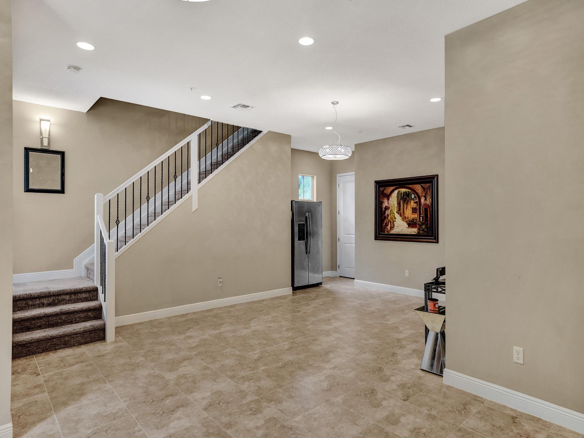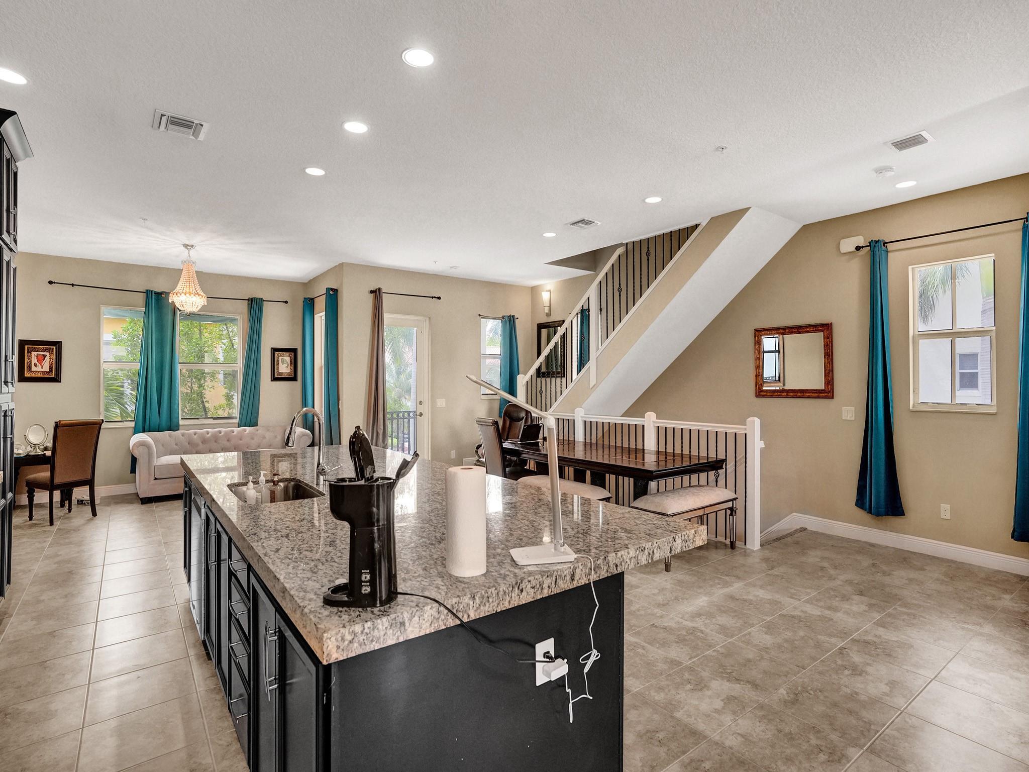 Impeccable 2017 Three-Story Townhome combining chic style with modern convenience. 10-foot high ceilings and impact windows/doors. 18×18-inch tile flooring on all three floors creates a seamless flow and enhances the overall aesthetic. An optional fourth bedroom can be easily added to the First floor., additionally, there’s a full bathroom and a two-car garage. On the second floor, you’ll be greeted by designer mocha 10-foot kitchen cabinets, granite countertops, and a generously sized center island. A spacious living room, a dining room, and a balcony, creating an ideal environment for entertaining. On the third floor, the principal bedroom awaits, complete with walk-in closet. 4th bedroom is a large open space on the first floor to be used and designed as buyer’s wish.