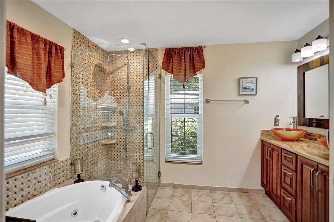 Come see this completely updated estate-sized home in a gated community with an oversized great room and double height ceilings. The kitchen includes a beautiful quartzite on the counters, stainless steel appliances, high-end solid wood cabinetry and a breakfast nook that opens through sliding glass doors with a screened porch. The main bedroom is on the first floor as is a 2nd bedroom. a powder room and laundry room completes the main level. Impact windows/doors 2019; new roof/gutters 2017; new HVAC 2022; new washer/dryer 2021. HOA requires minimum credit score of 650. No renting first year of ownership, minimum 6 month rentals thereafter.