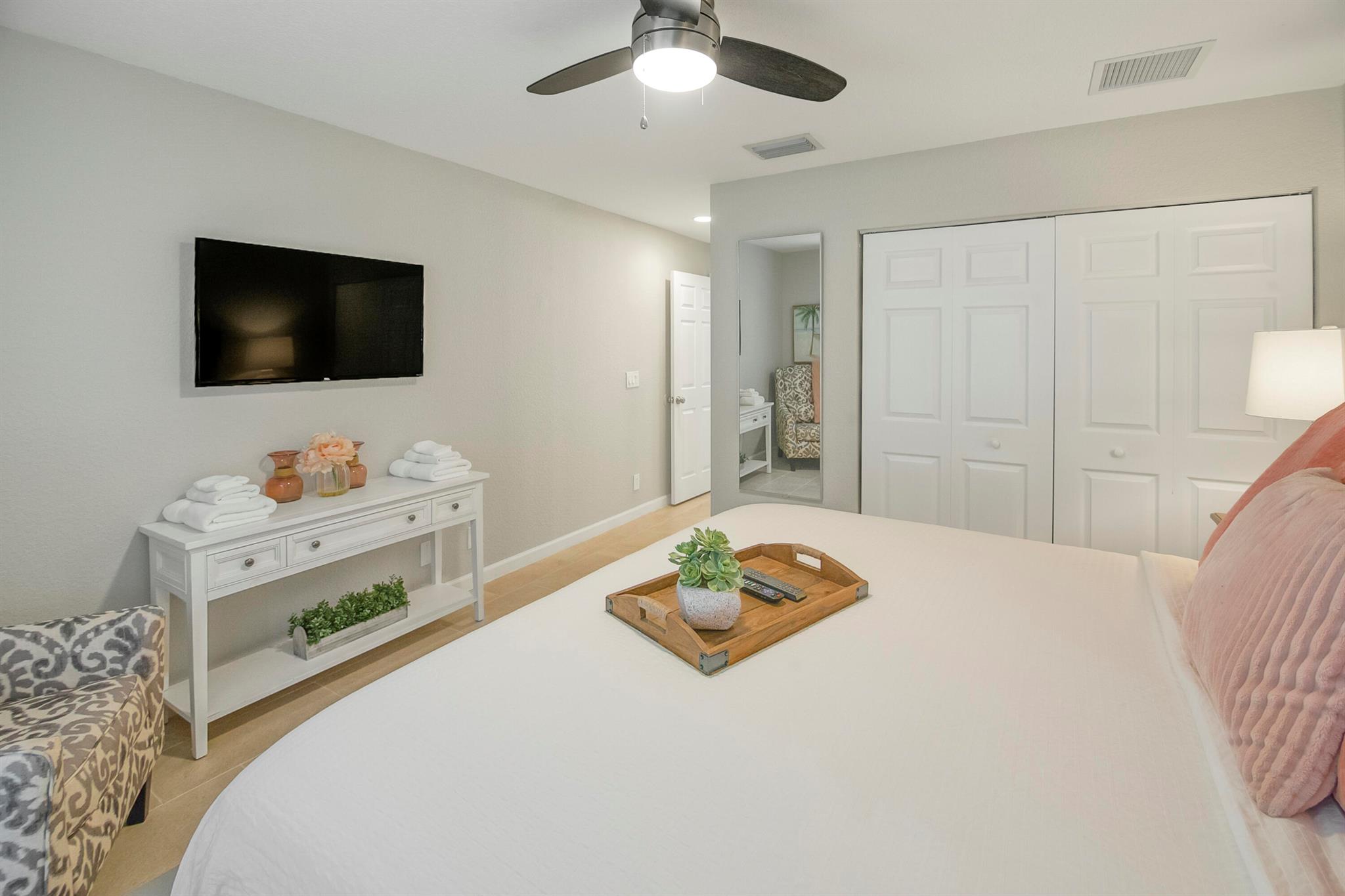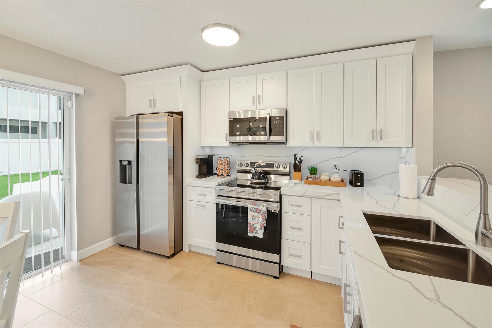 LOCATION! Half mile to artsy Atlantic Ave. where you may choose to walk to mature dining, entertainment, and eclectic art museums. Or, Take a refreshing 15 minute bike ride to the beach. If a quiet night at home is what you desire, enjoy the BBQ in the fully fenced backyard and spacious patio. Property is located directly across the street from a newly updated park and walking path. If you like NEW, the property offers plenty. Built in 2007, beautifully renovated and decorated for even the most discerning buyer. NEW kitchen, with quartz counters and stainless steel appliance; NEW HVAC; NEW water heater; Newly painted; NEWLY remodeled bathrooms. Impact windows and metal roof. Security Cameras. Furniture and decor negotiable. Plenty of space for a pool.