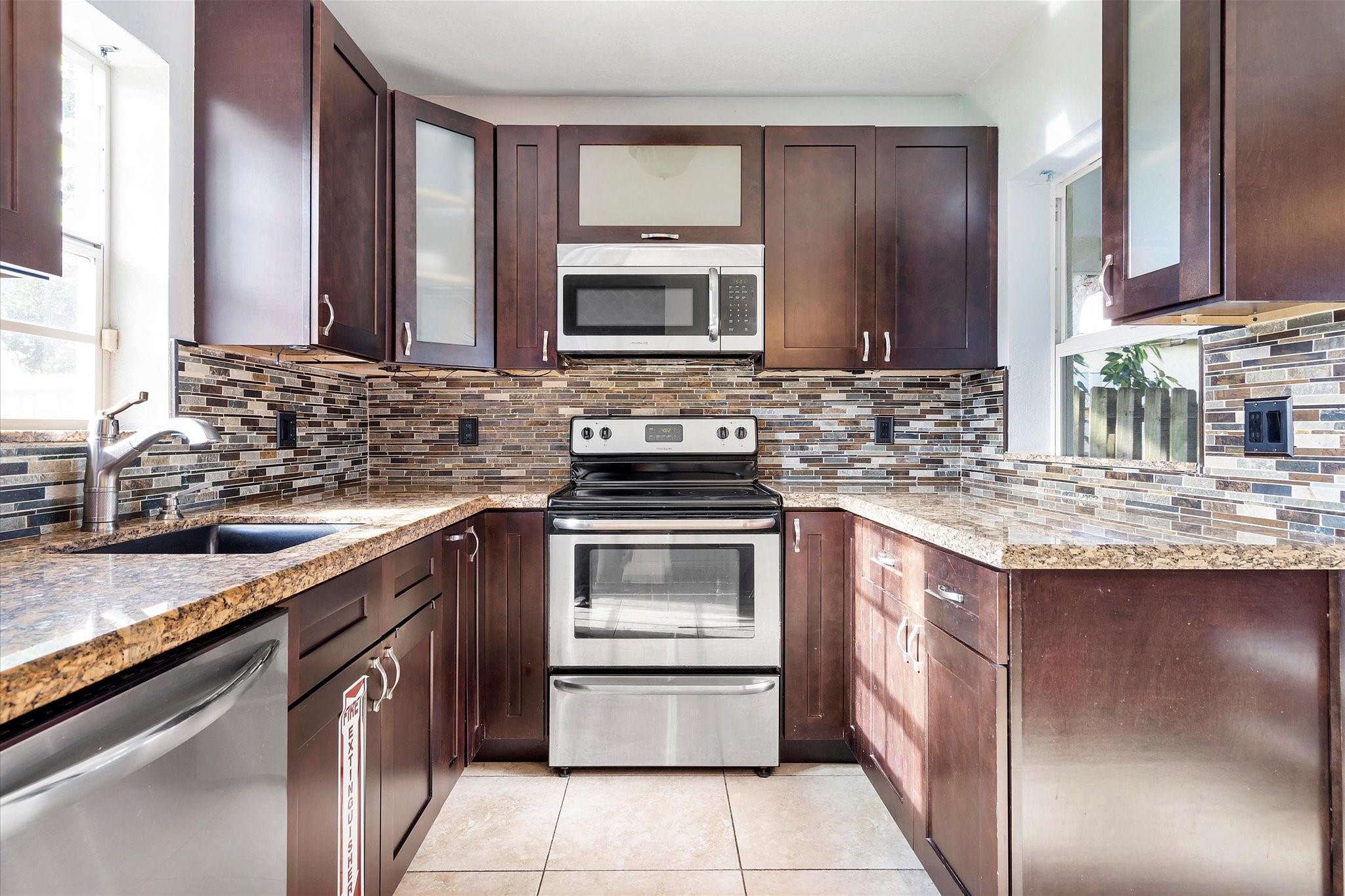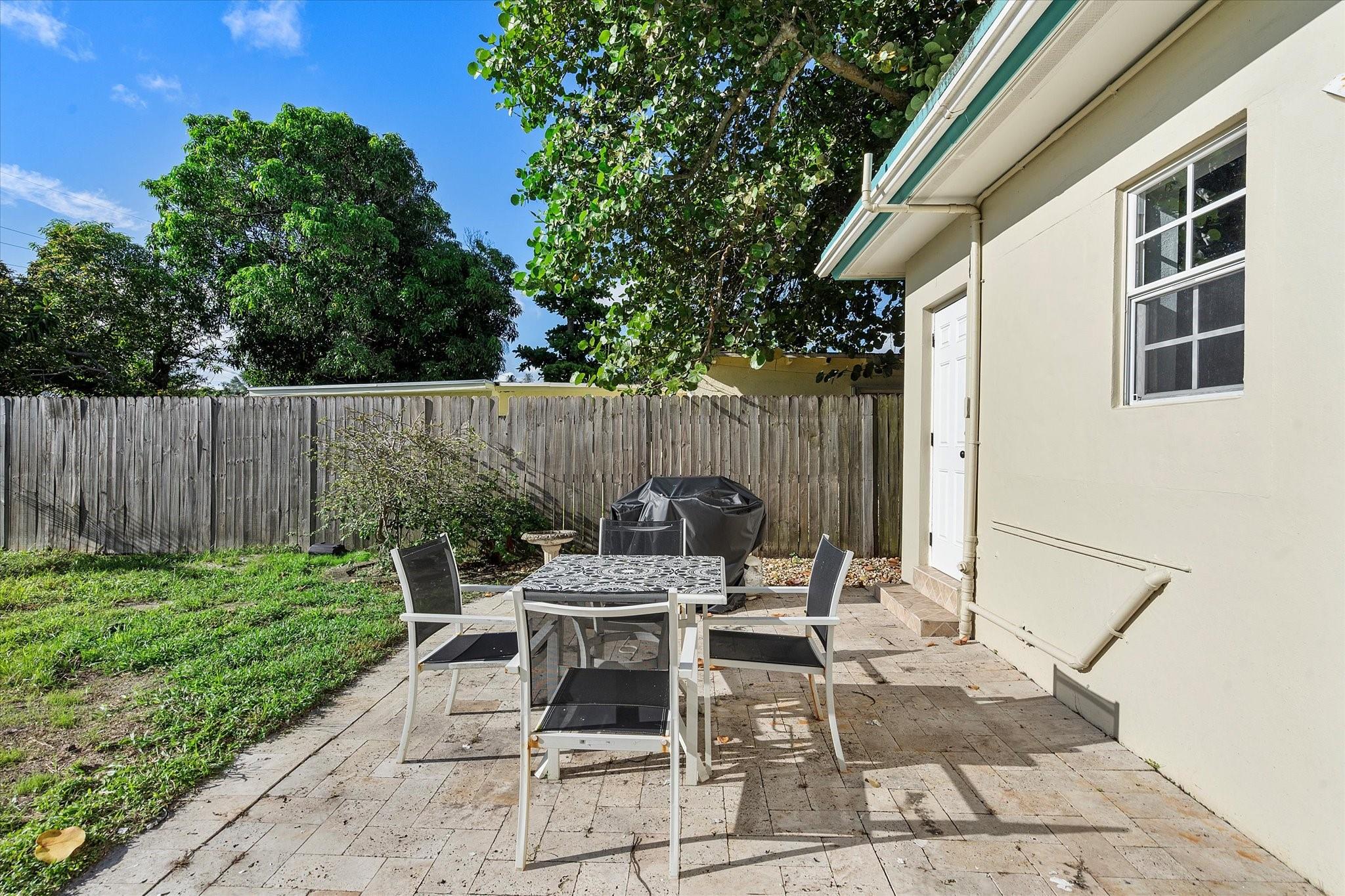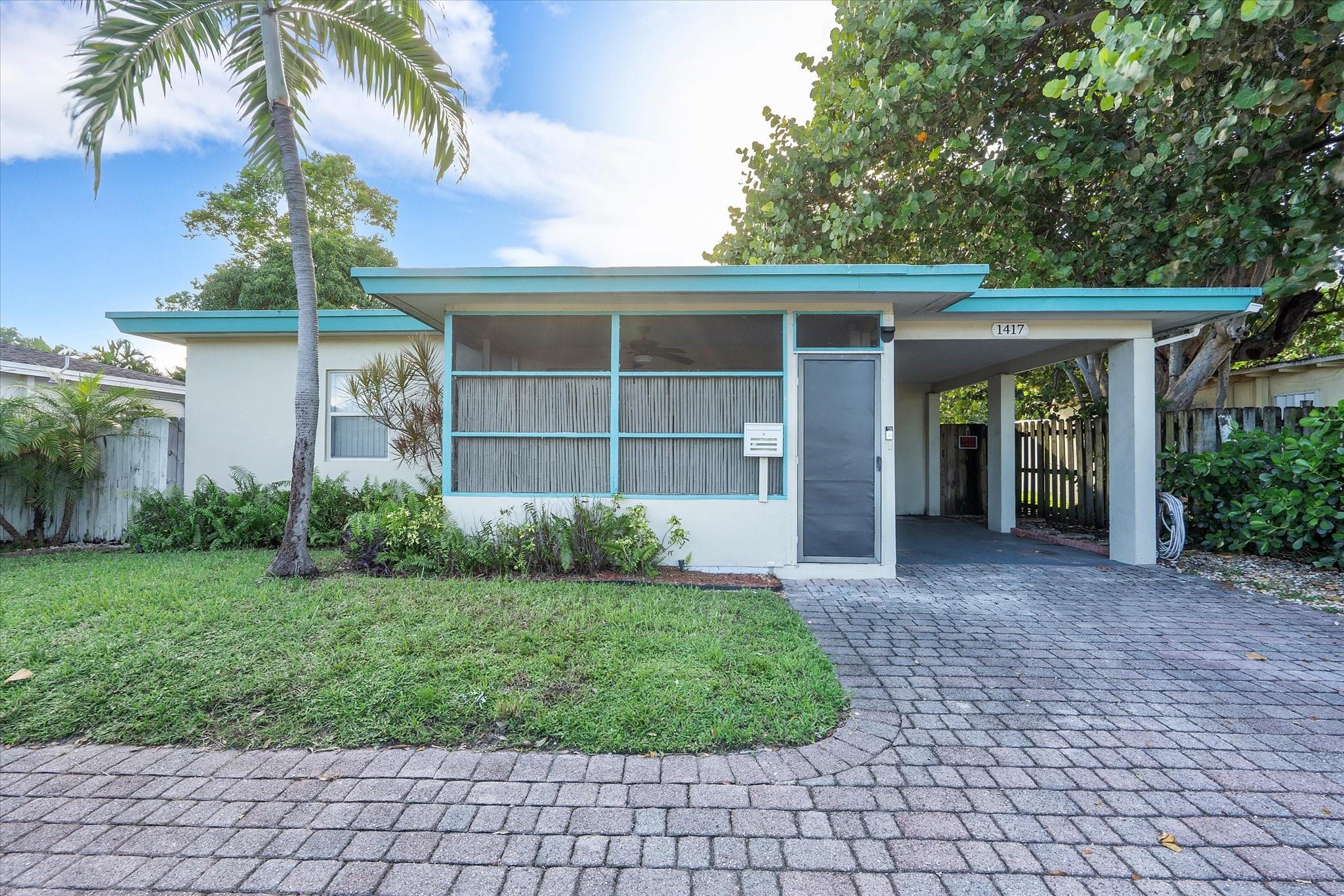 Discover this Fort Lauderdale gem, an exceptional investment or private getaway with no HOA or rental restrictions! Behind the attractive paver drive and carport, this 2-bedroom, 1-bath home welcomes you with a glass-enclosed porch and a stylish interior. The updated kitchen boasts stainless steel appliances, granite countertops, tile backsplash, and a bright eat-in area. A modern multi-jet walk-in shower, tile floors, and neutral tones add comfort and charm. Outdoors, enjoy a fully fenced backyard with shed, room for a future pool, and total privacy. Complete panel shutters provide peace of mind—all in the heart of Fort Lauderdale, close to beaches, dining, and entertainment.