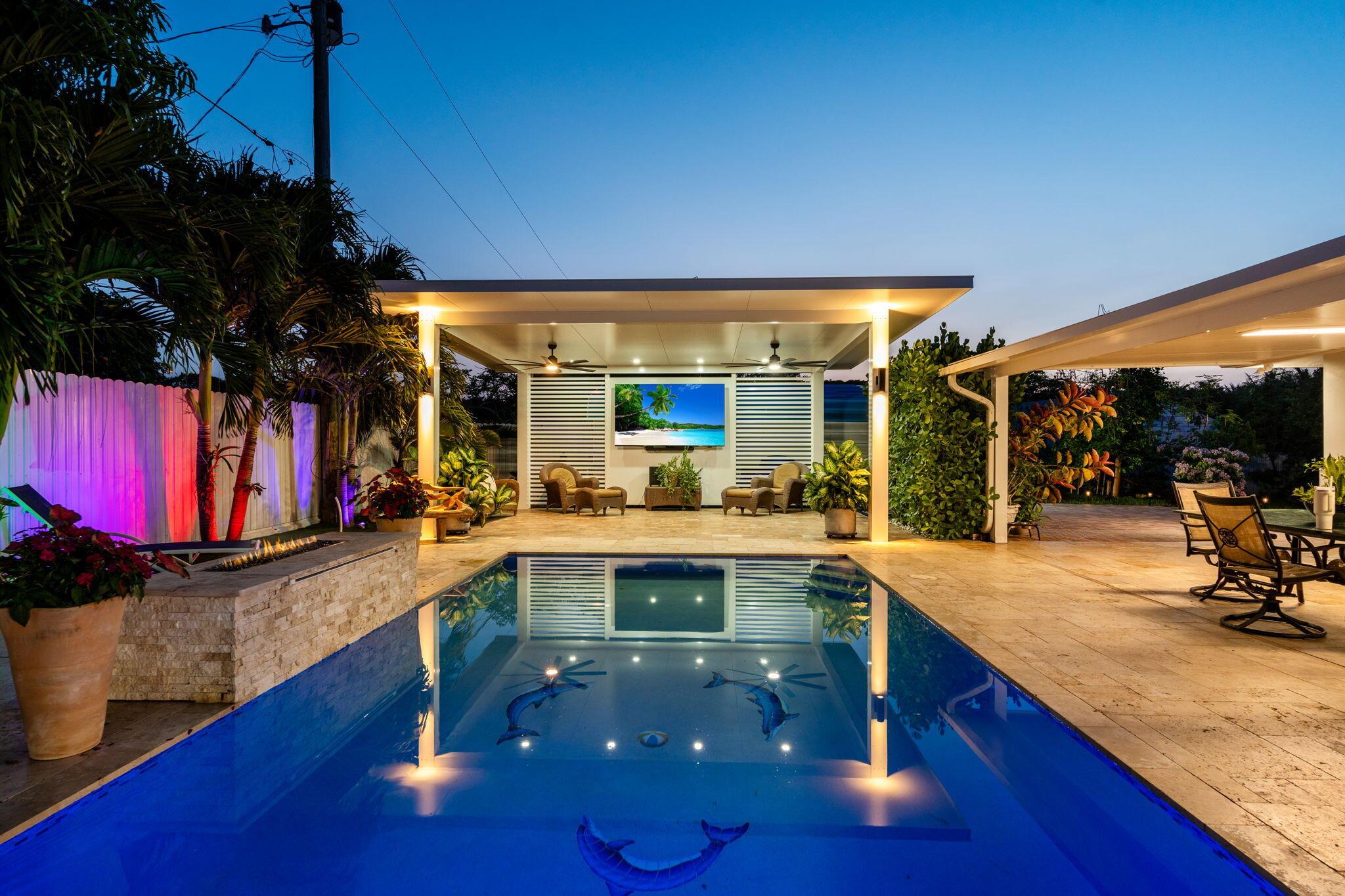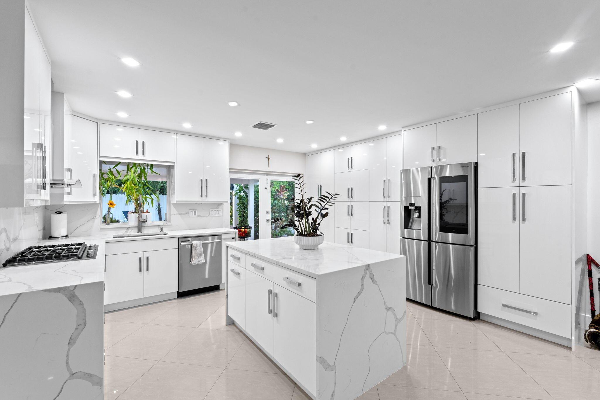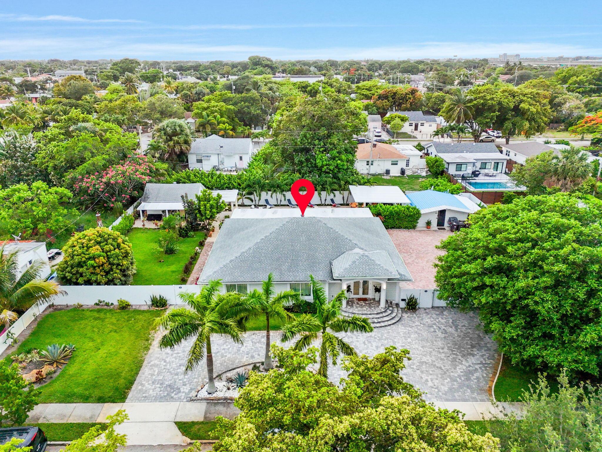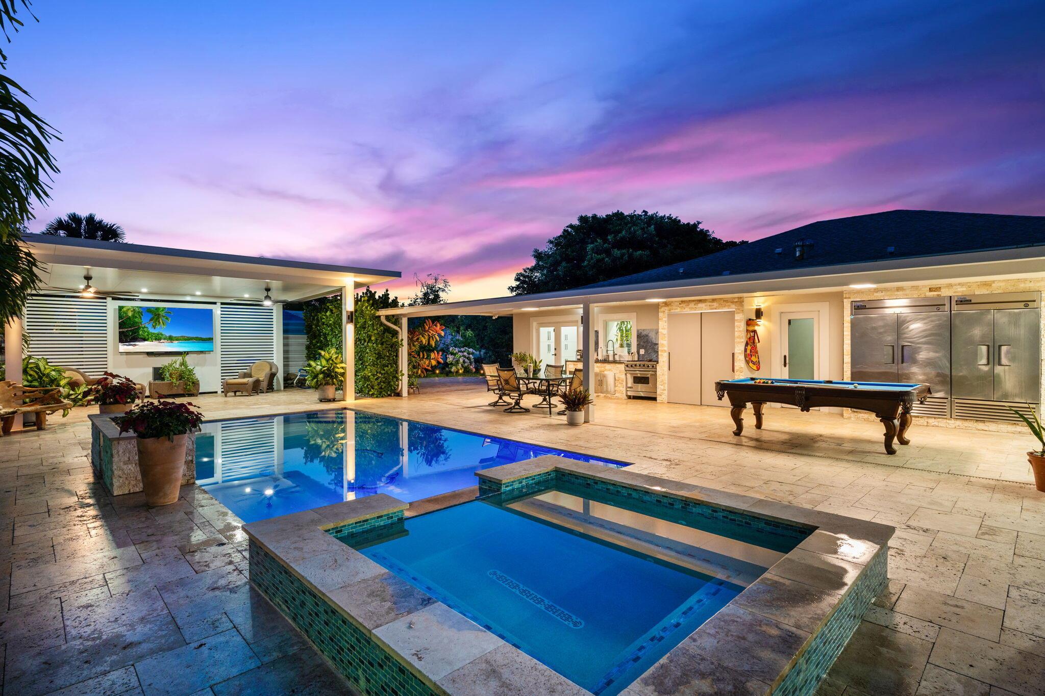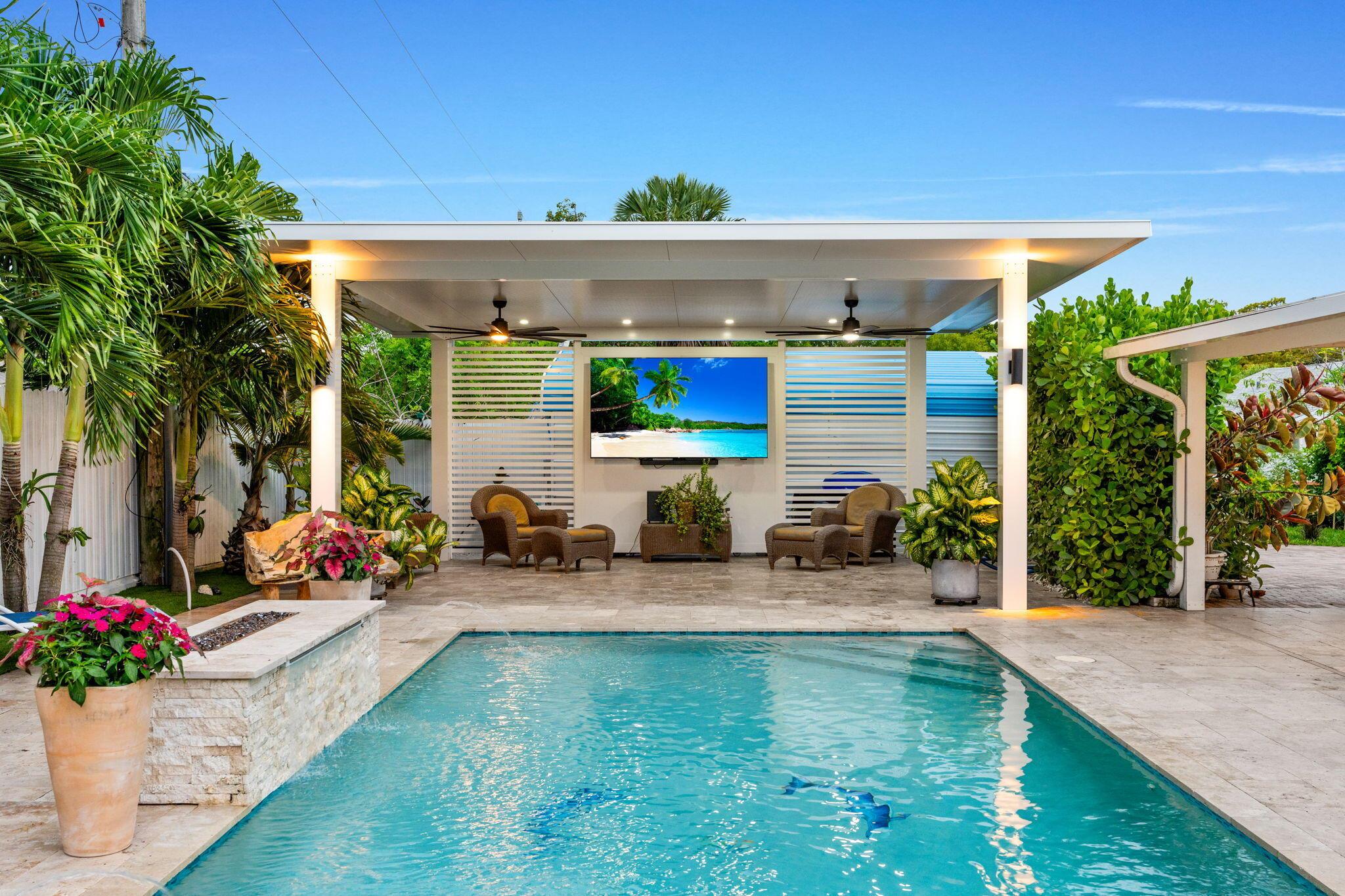 Price Improvement! Step into your own private paradise with this exquisitely renovated 5-bedroom, 4.5-bathroom home including a ”Casita” in the back. This property is perfectly situated on a rare TRIPLE LOT just under HALF an ACRE. Featuring approximately 2,700 sqft of living space, this custom-designed property was completely renovated late 2020 with top-quality finishes, impact windows and doors, and high-end details throughout. The main home offers a bright open layout with porcelain tile floors, a stunning chef’s kitchen with sleek waterfall-edge quartz countertops, custom cabinetry, and premium stainless steel appliances — one of three fully equipped gas kitchens on the property.