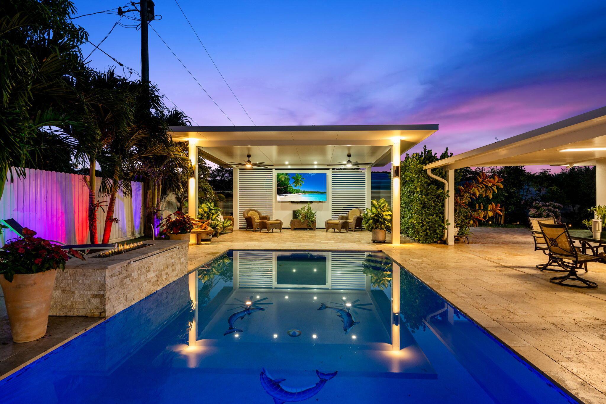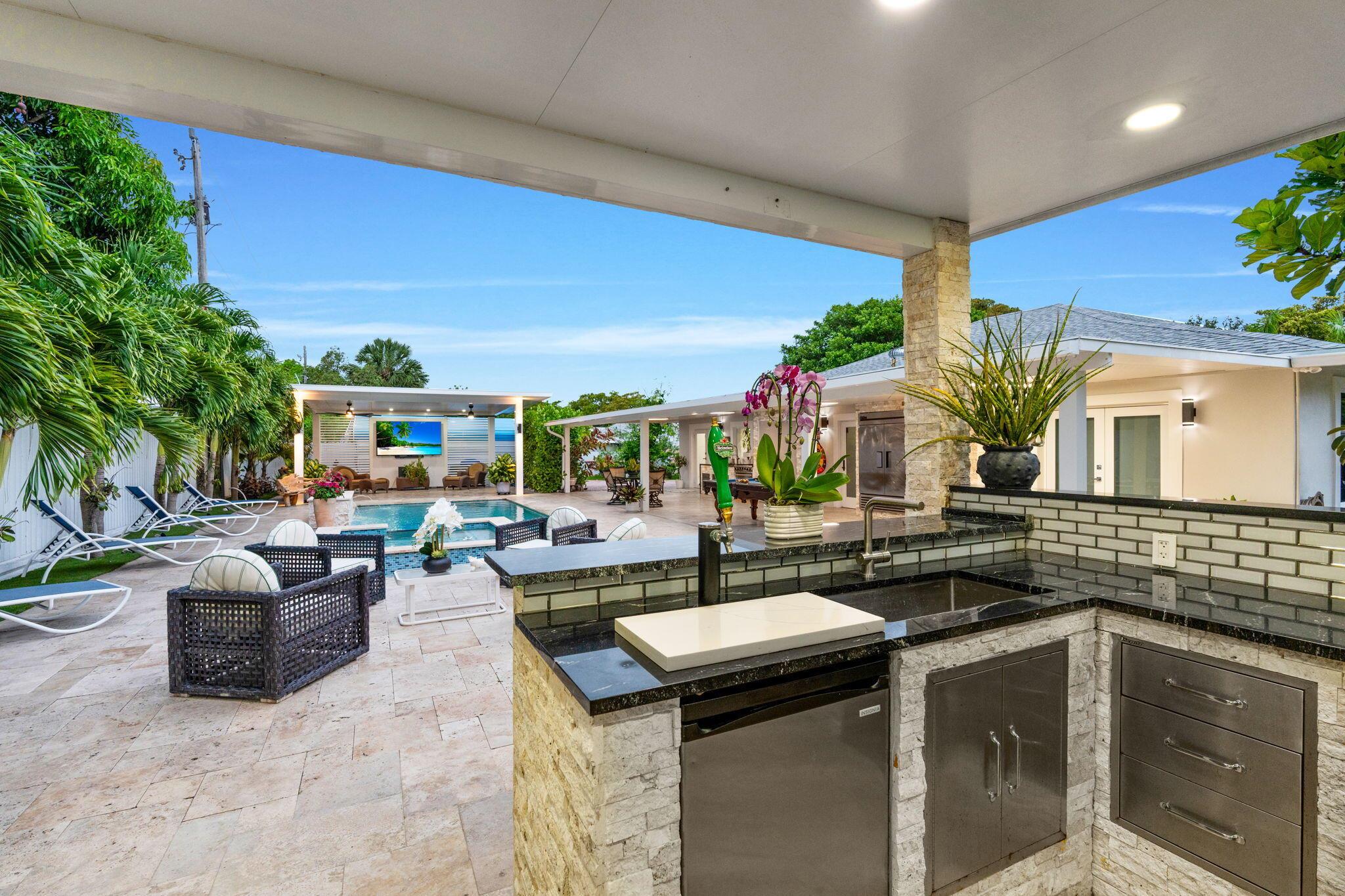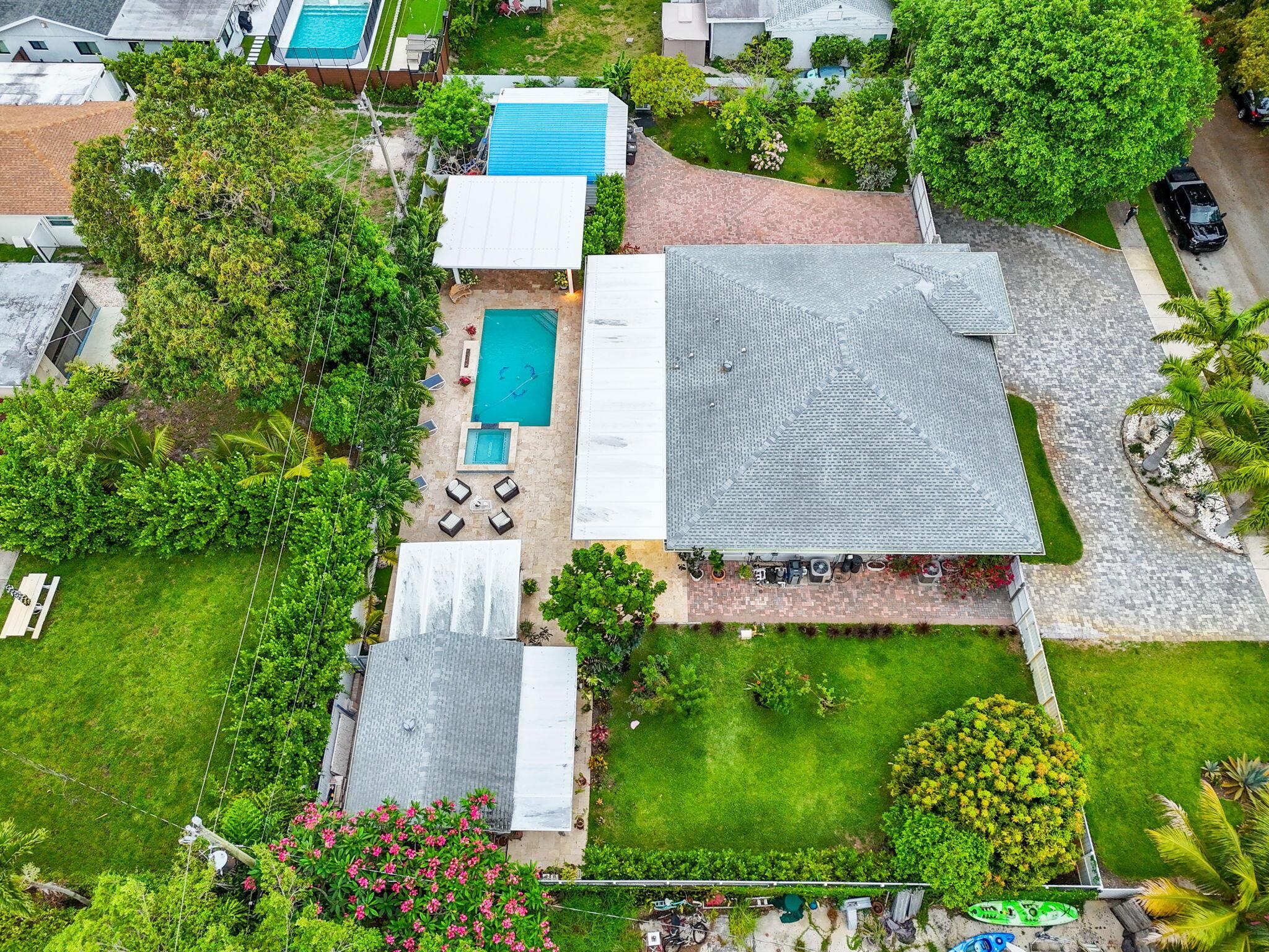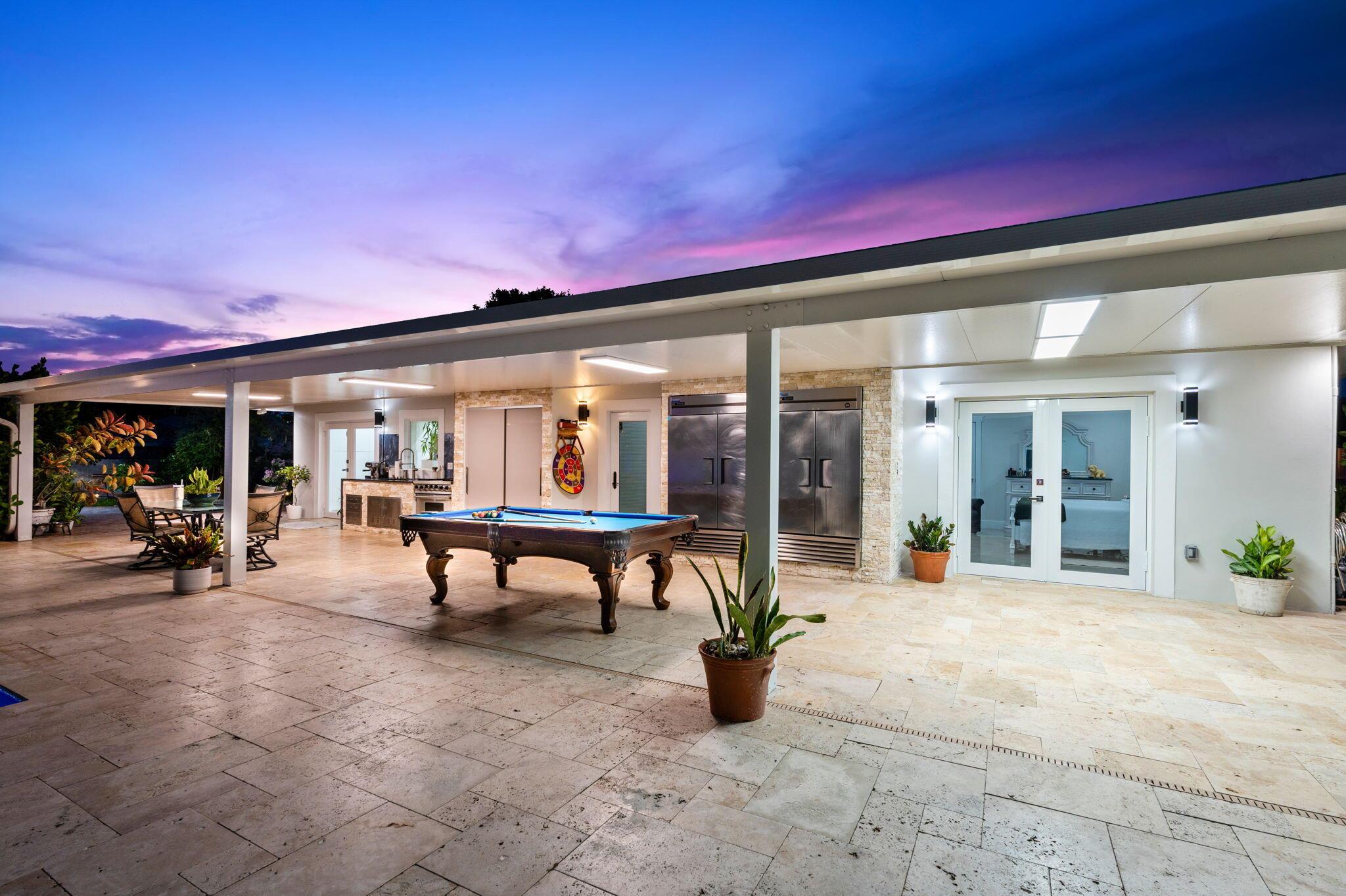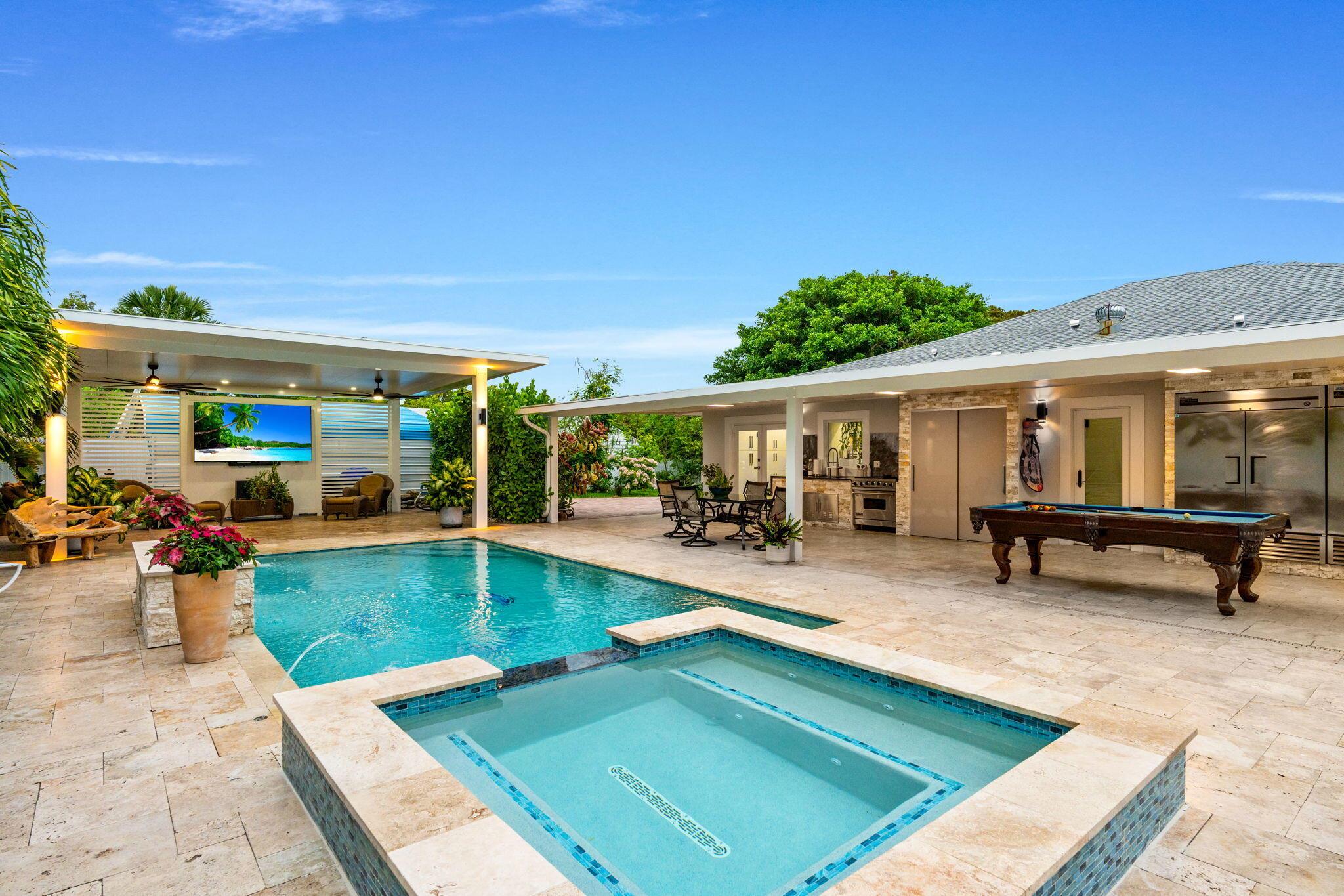 Price Improvement! Step into your own private paradise with this exquisitely renovated 5-bedroom, 4.5-bathroom home including a ”Casita” in the back. This property is perfectly situated on a rare TRIPLE LOT just under HALF an ACRE. Featuring approximately 2,700 sqft of living space, this custom-designed property was completely renovated late 2020 with top-quality finishes, impact windows and doors, and high-end details throughout. The main home offers a bright open layout with porcelain tile floors, a stunning chef’s kitchen with sleek waterfall-edge quartz countertops, custom cabinetry, and premium stainless steel appliances — one of three fully equipped gas kitchens on the property.