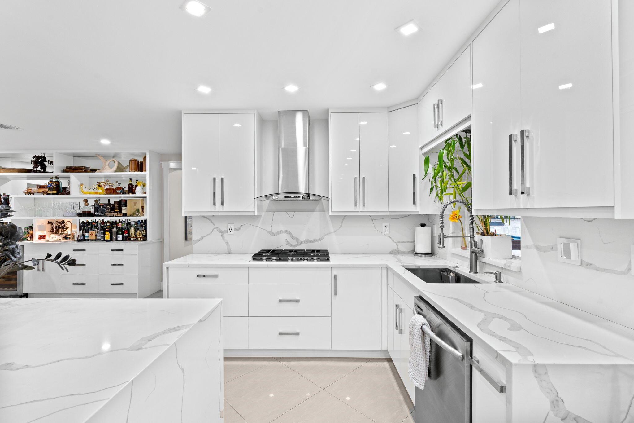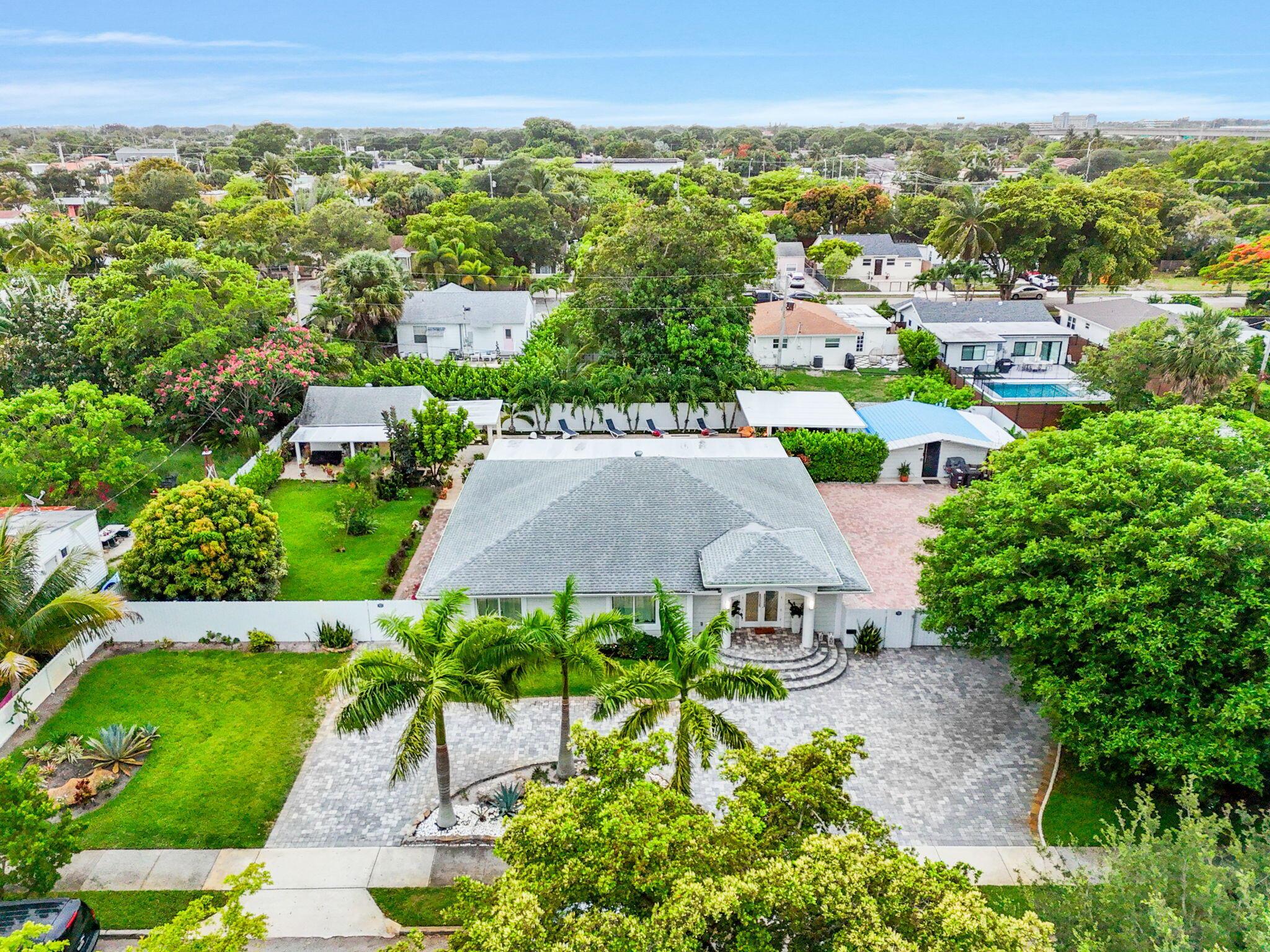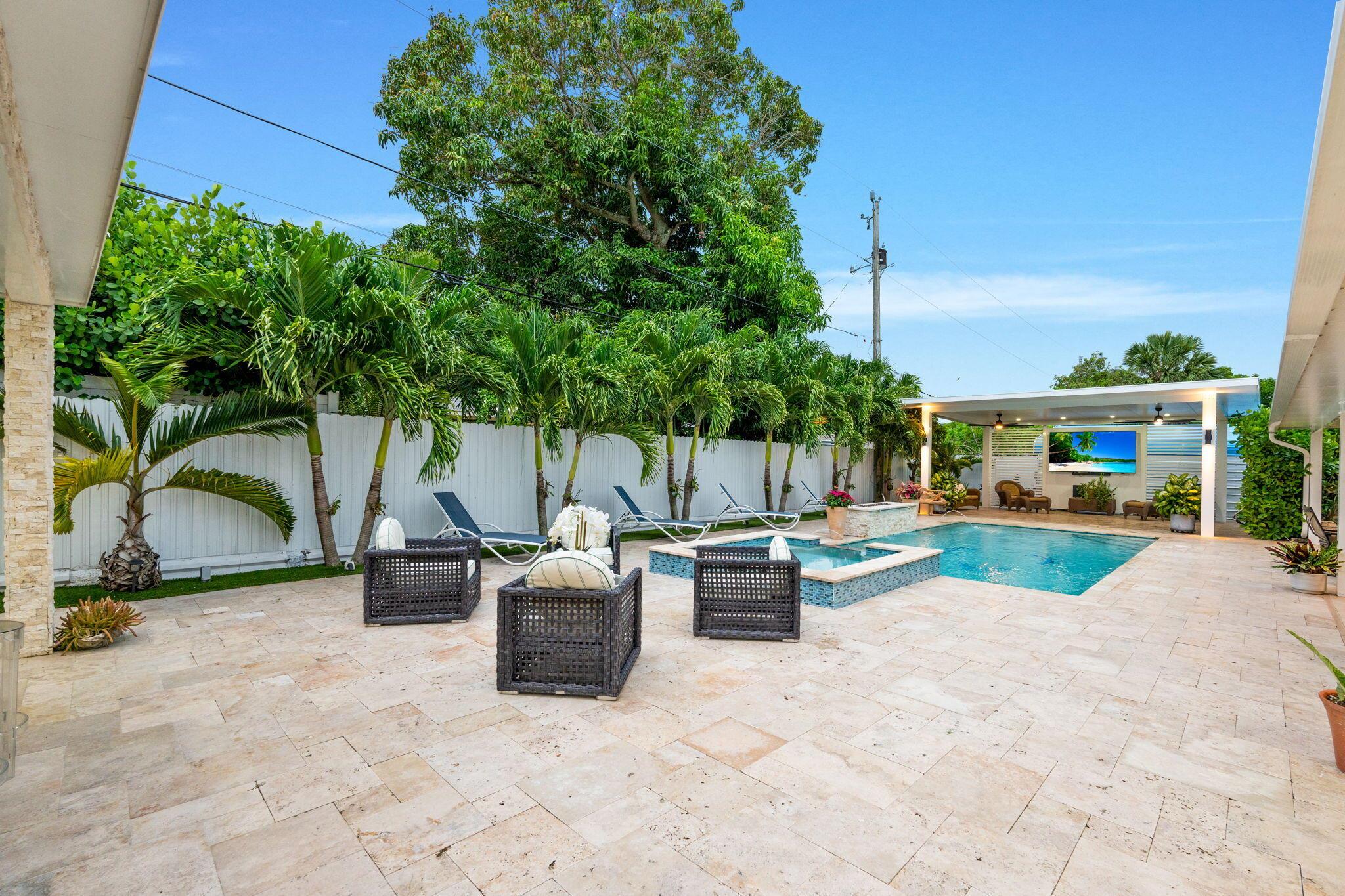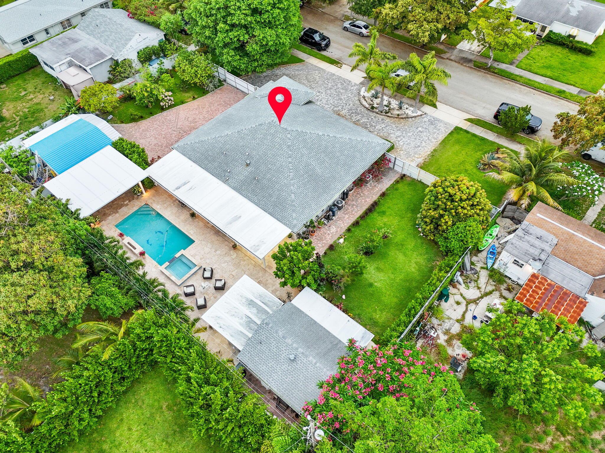 Price Improvement! Step into your own private paradise with this exquisitely renovated 5-bedroom, 4.5-bathroom home including a ”Casita” in the back. This property is perfectly situated on a rare TRIPLE LOT just under HALF an ACRE. Featuring approximately 2,700 sqft of living space, this custom-designed property was completely renovated late 2020 with top-quality finishes, impact windows and doors, and high-end details throughout. The main home offers a bright open layout with porcelain tile floors, a stunning chef’s kitchen with sleek waterfall-edge quartz countertops, custom cabinetry, and premium stainless steel appliances — one of three fully equipped gas kitchens on the property.