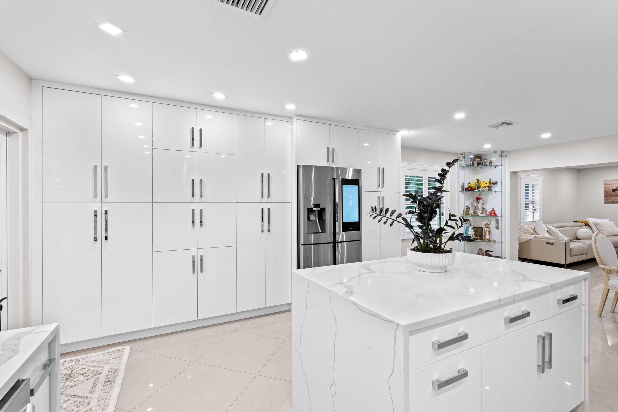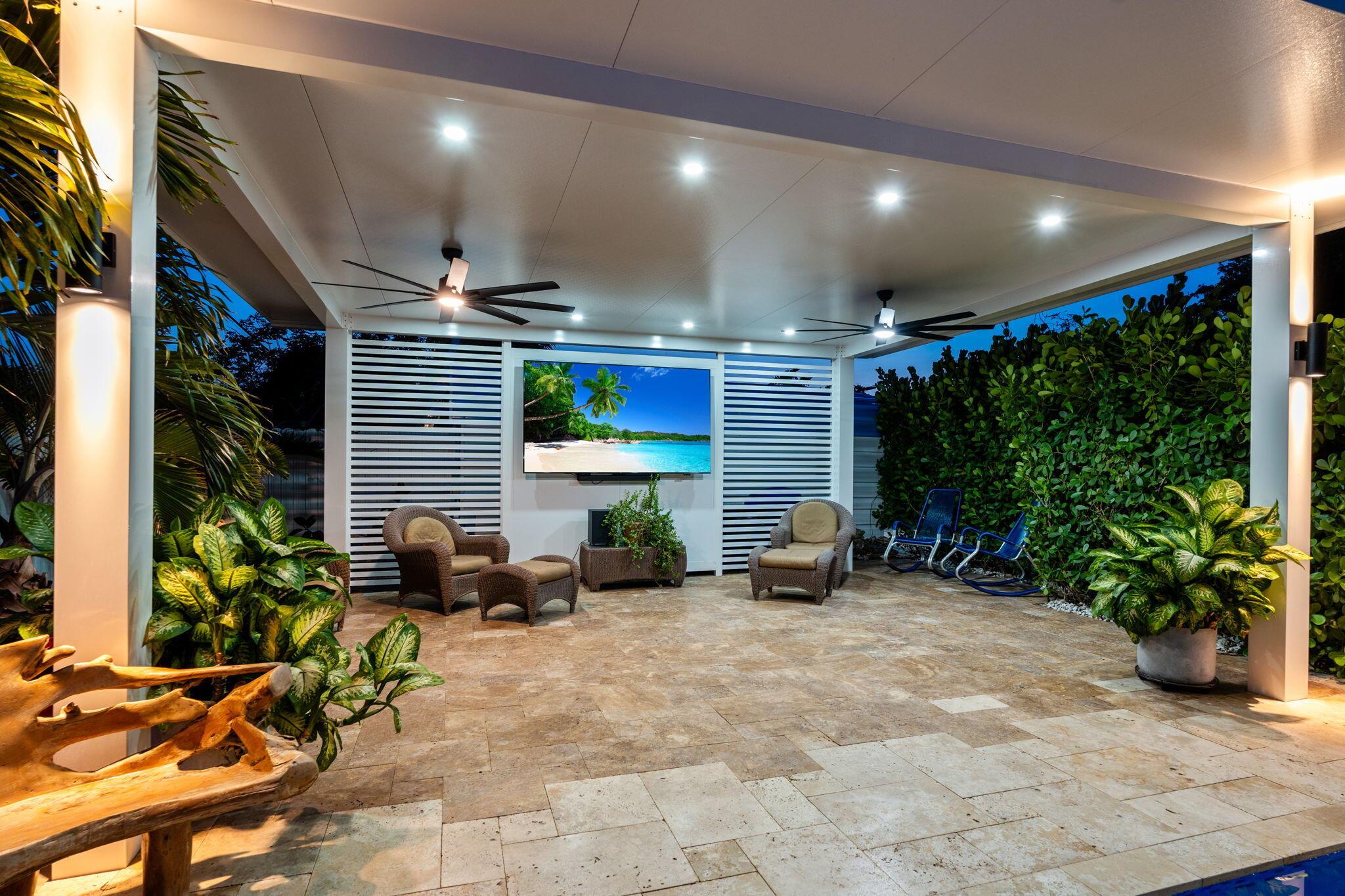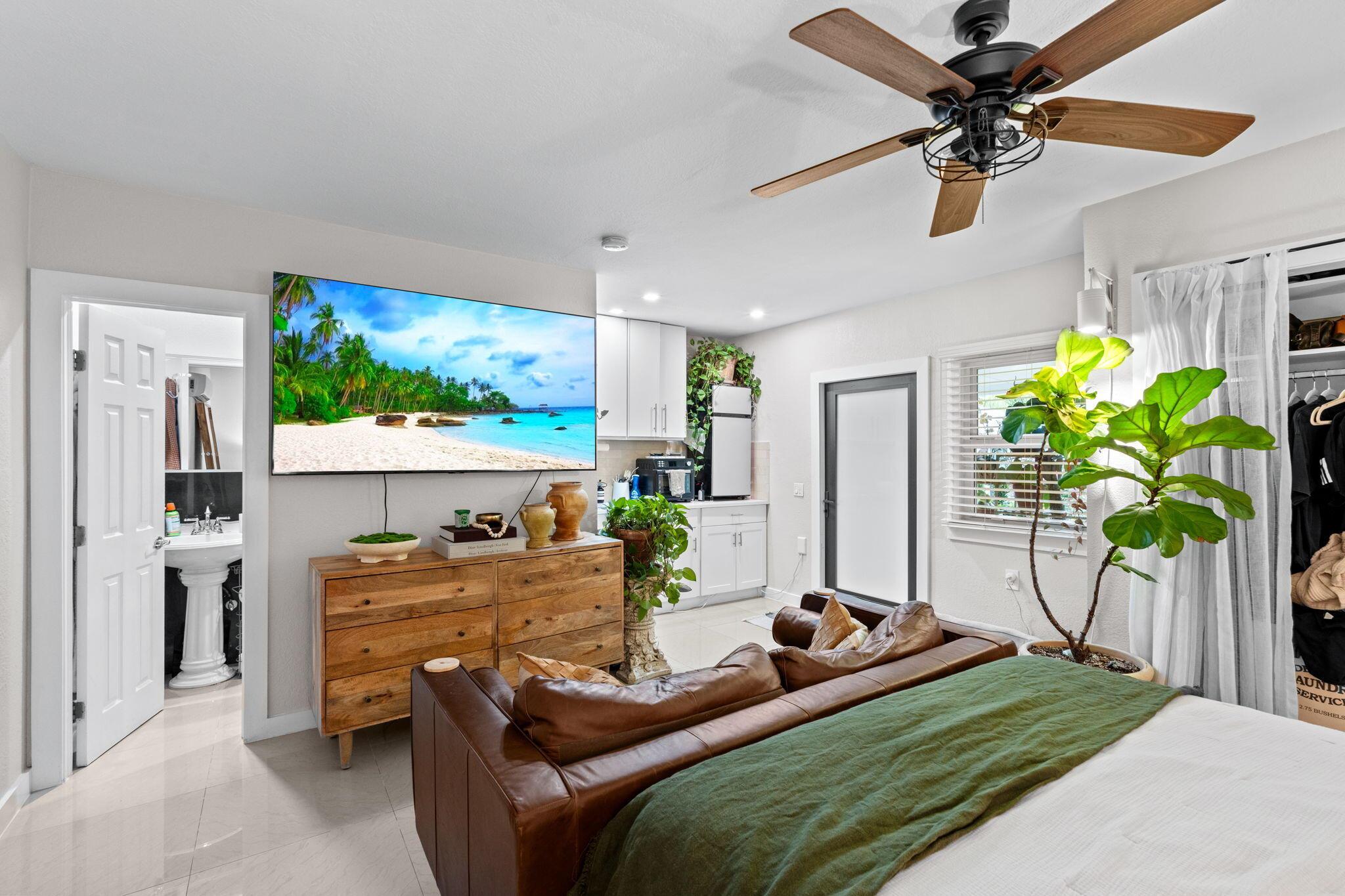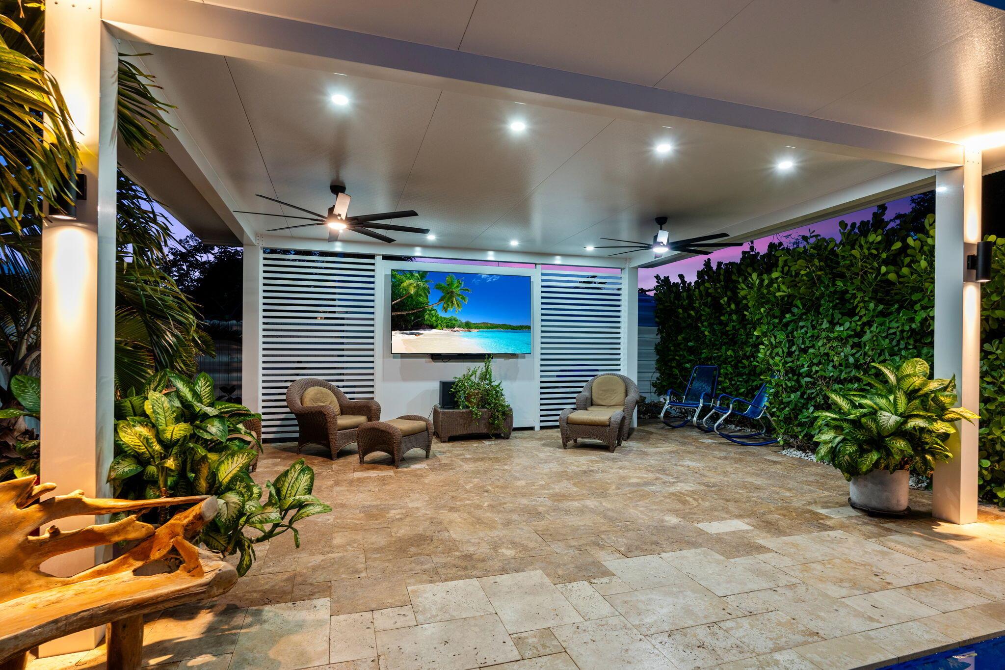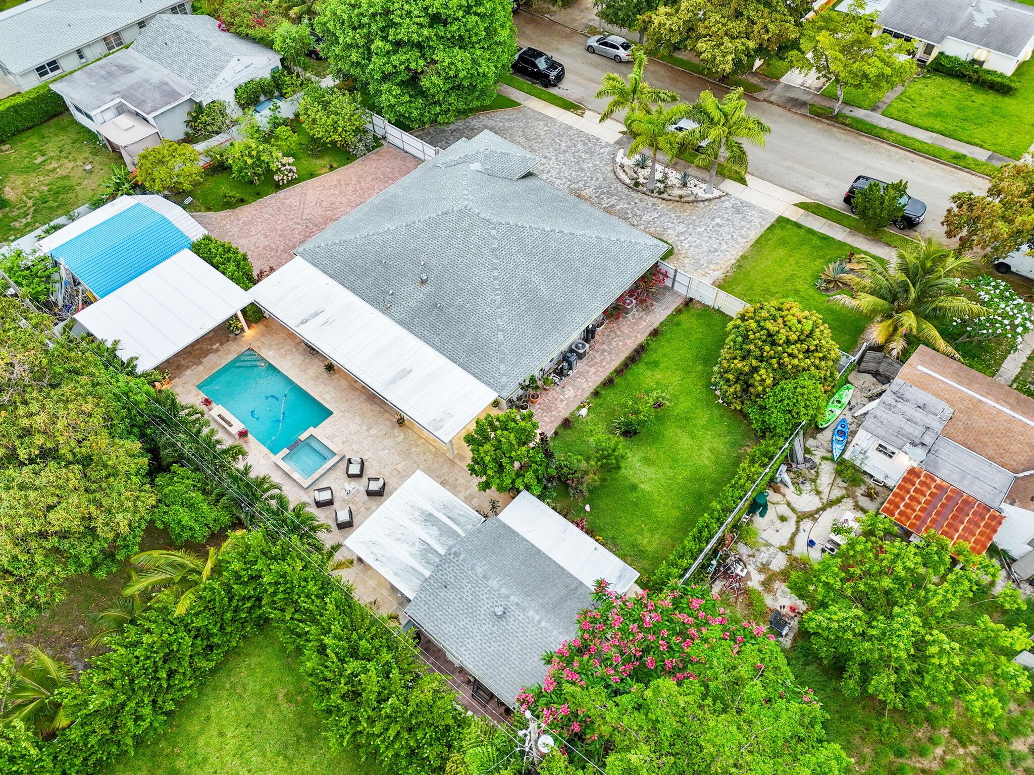 Price Improvement! Step into your own private paradise with this exquisitely renovated 5-bedroom, 4.5-bathroom home including a ”Casita” in the back. This property is perfectly situated on a rare TRIPLE LOT just under HALF an ACRE. Featuring approximately 2,700 sqft of living space, this custom-designed property was completely renovated late 2020 with top-quality finishes, impact windows and doors, and high-end details throughout. The main home offers a bright open layout with porcelain tile floors, a stunning chef’s kitchen with sleek waterfall-edge quartz countertops, custom cabinetry, and premium stainless steel appliances — one of three fully equipped gas kitchens on the property.