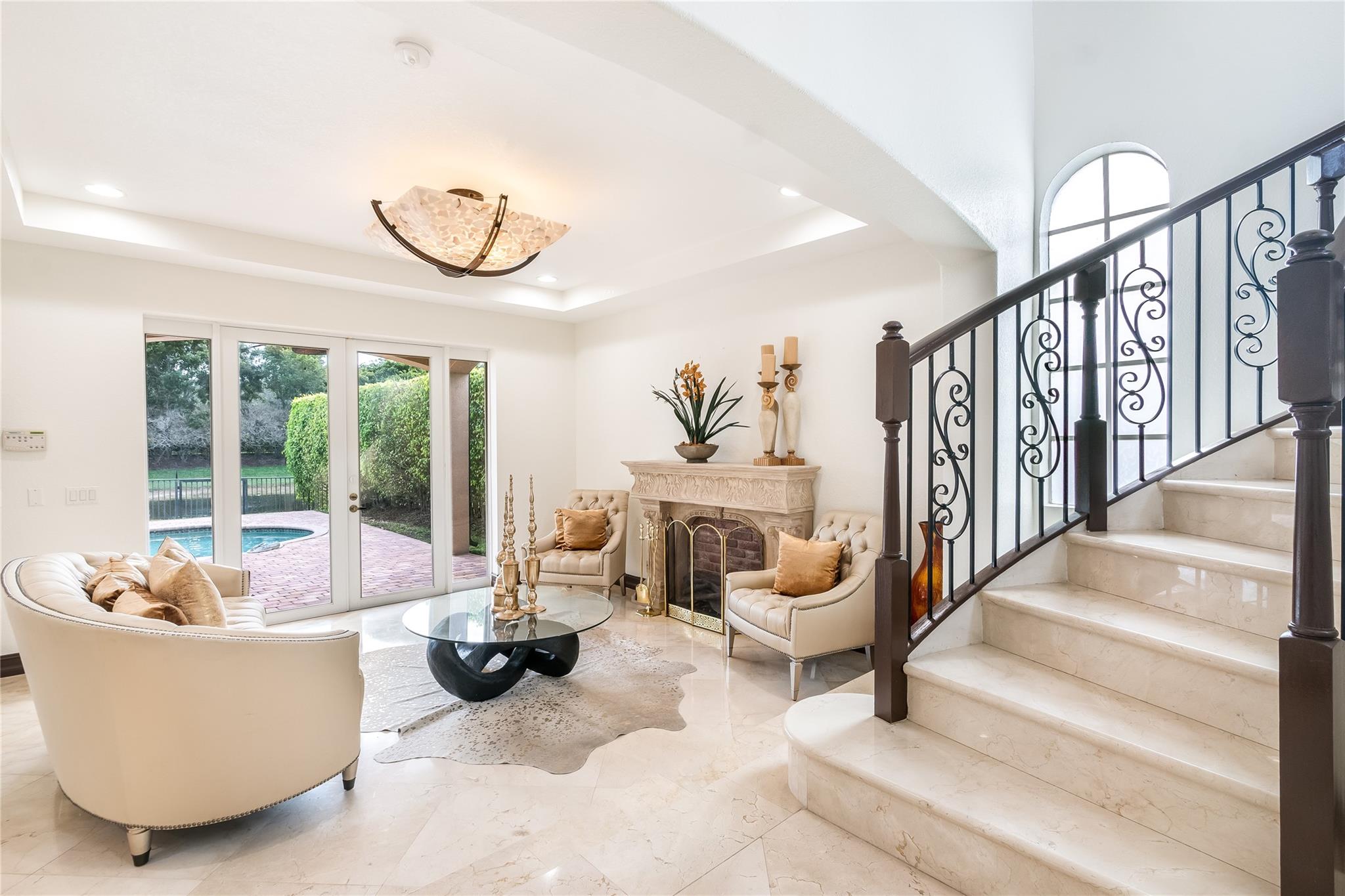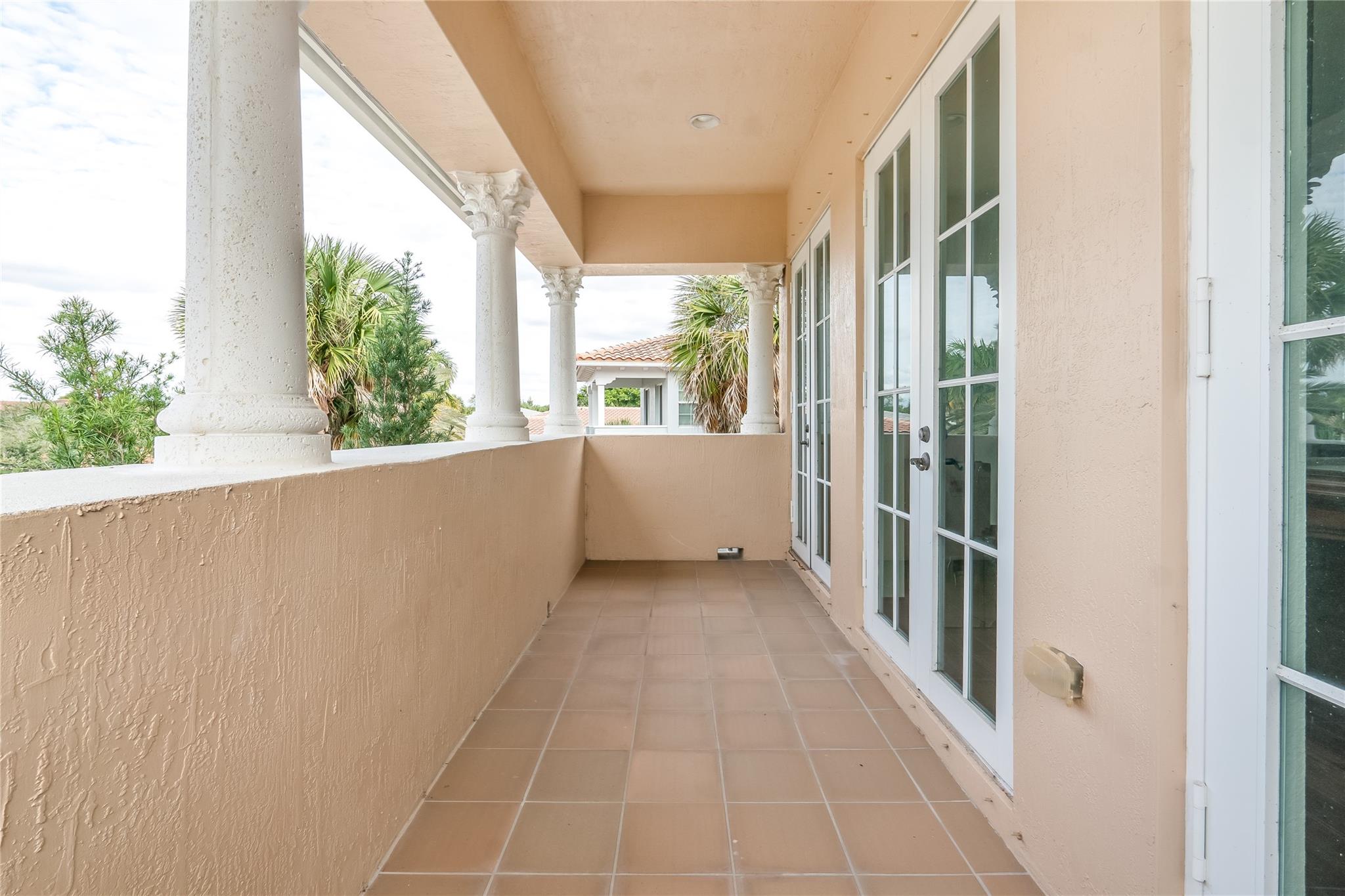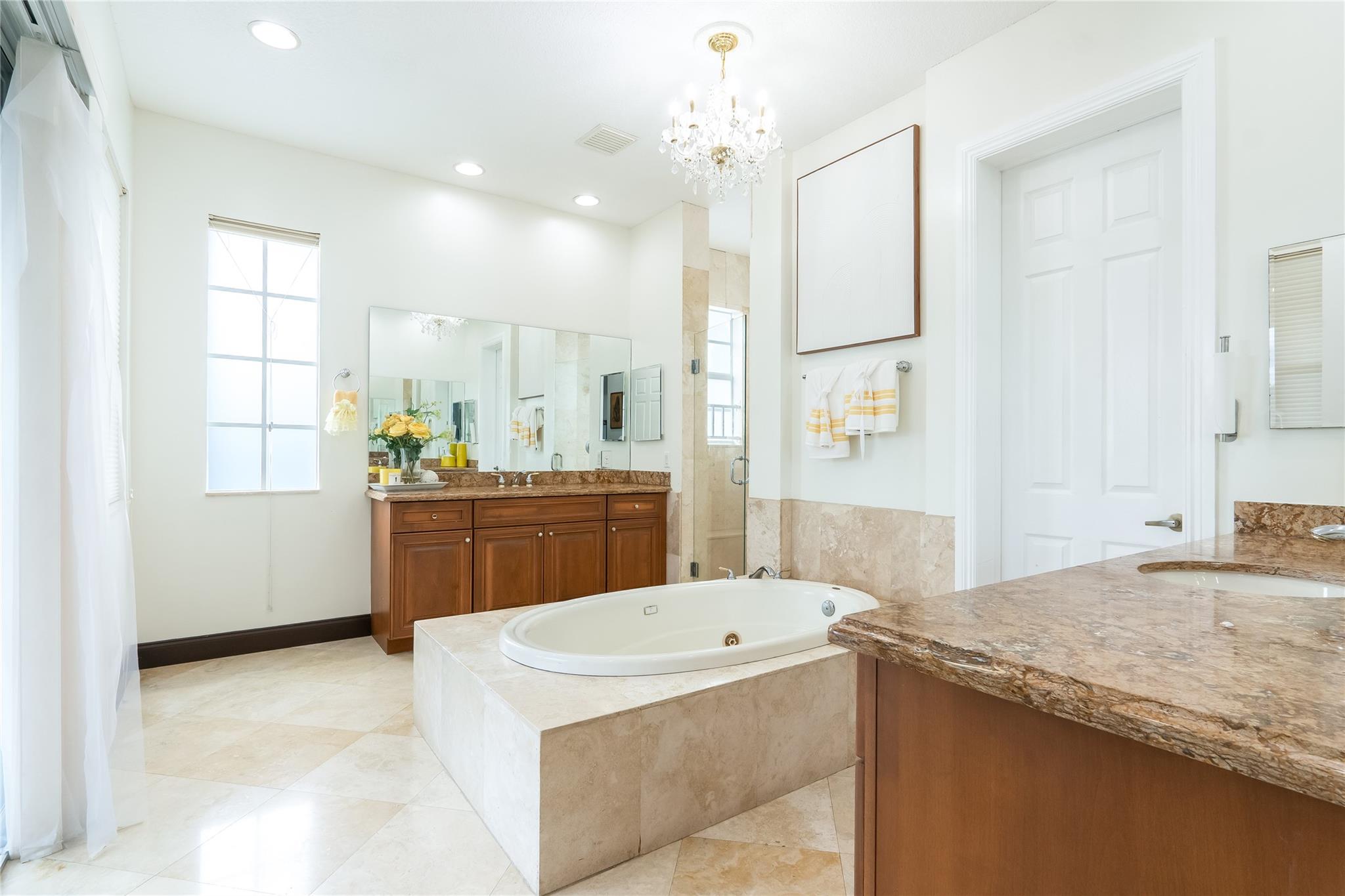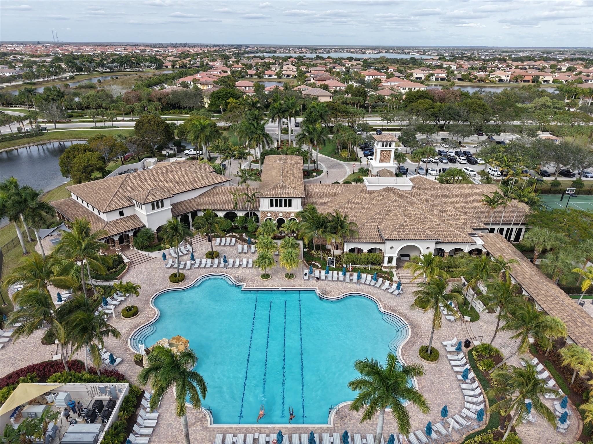 Stunning 5-bed 3-bath, two-story residence. The first floor showcases elegant marble floors, a striking luxury marble circular staircase. The home’s extra-large kitchen, with an oversized countertop, flows seamlessly into the spacious family room, offering breathtaking views of the pool and lake. One of the five bedrooms is a versatile bonus room, ideal as a playroom or fifth bedroom. Large primary suite offers a bonus sitting area. Home features three private balconies, ample outdoor space to relax, unwind and enjoy the tranquility with a stunning private lake view. The outdoor space feels like a private retreat. The community offers resort-style amenities, including a clubhouse, pools, gym, and 24-hour security.