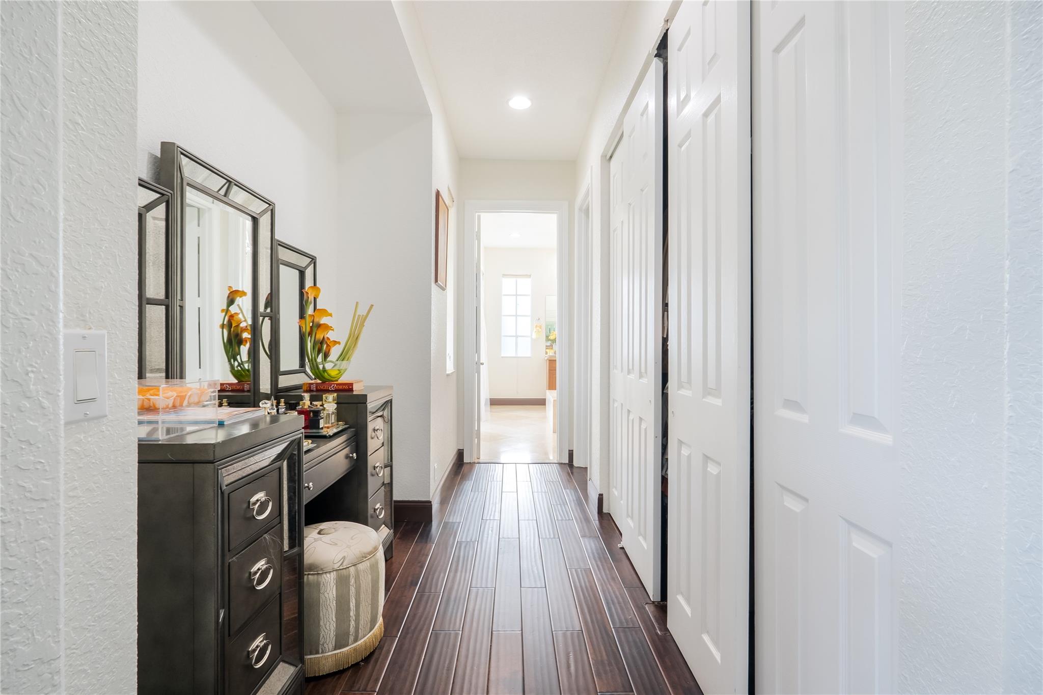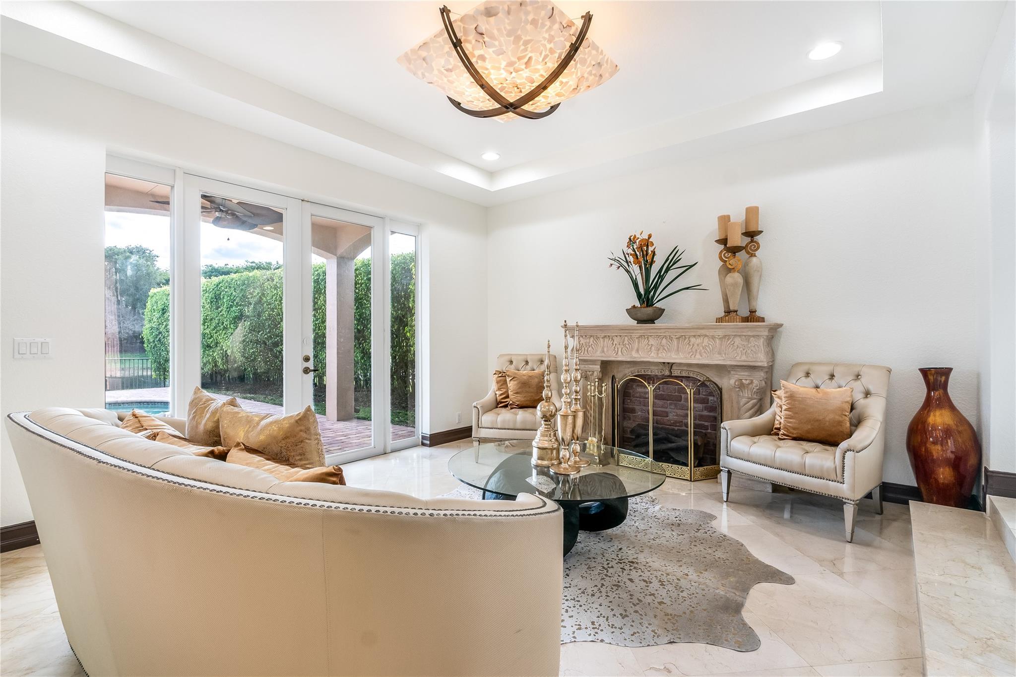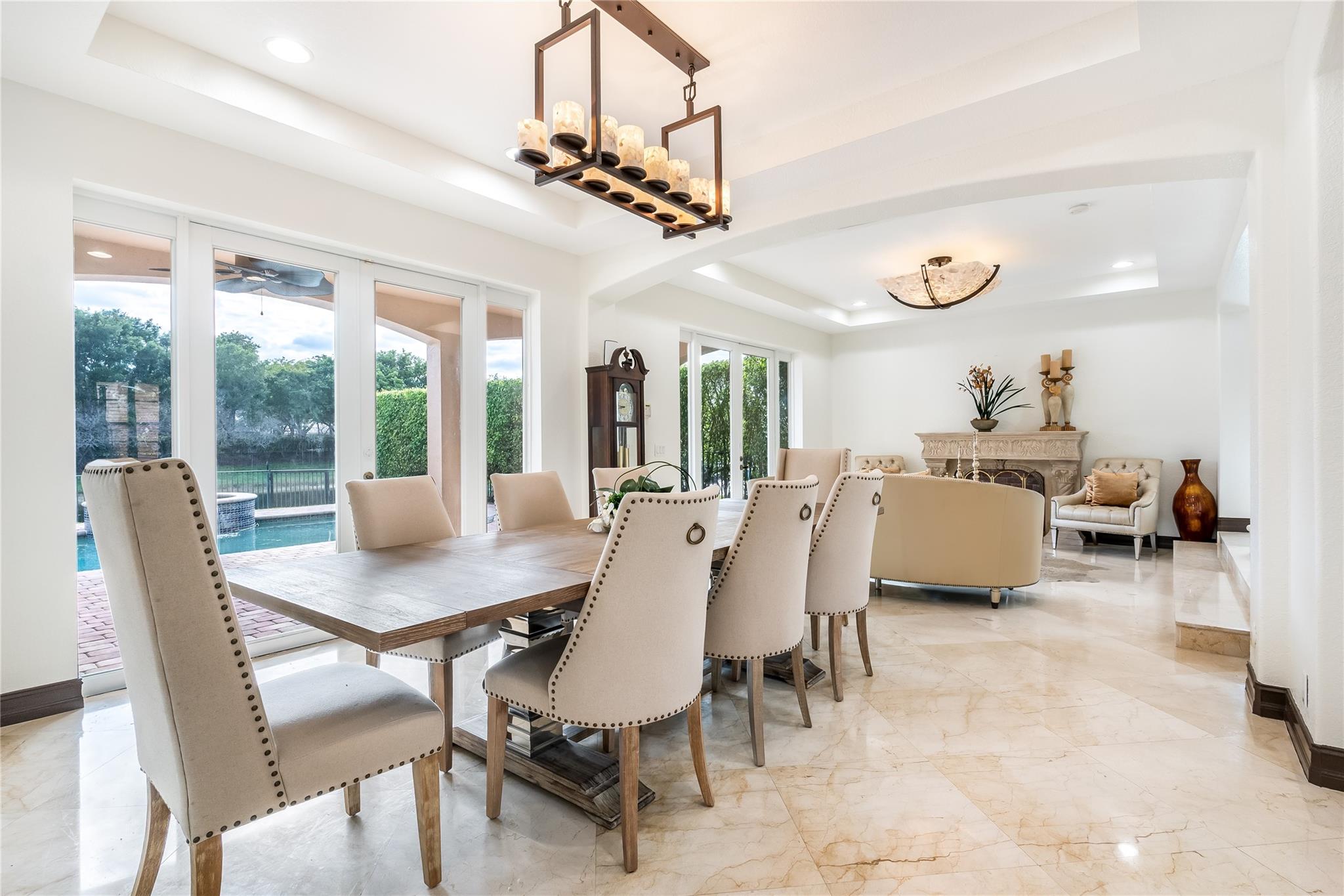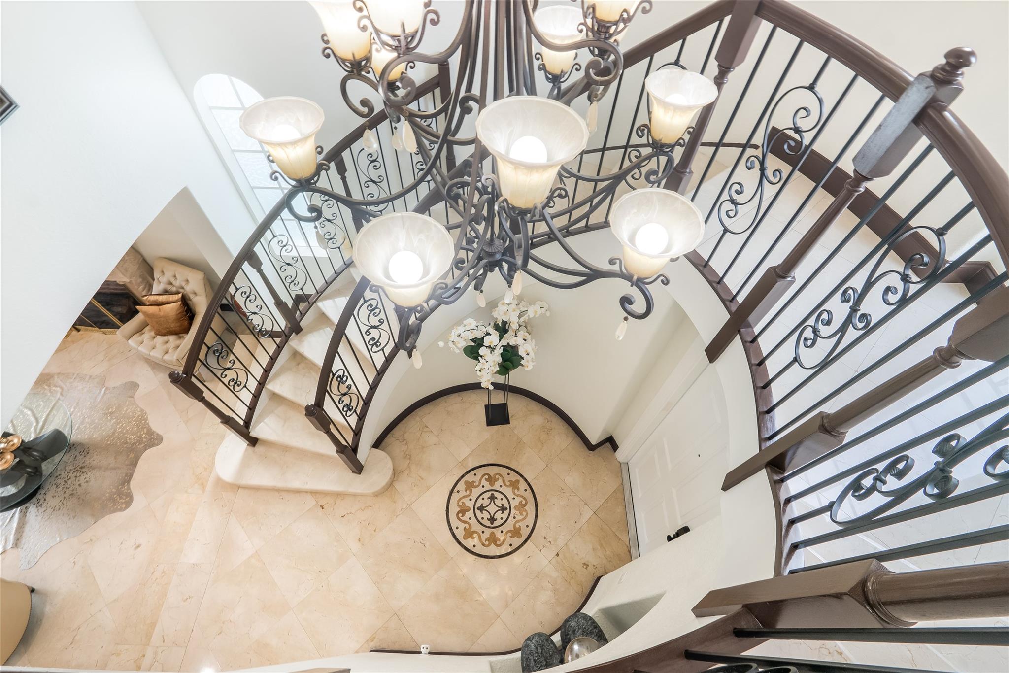 Stunning 5-bed 3-bath, two-story residence. The first floor showcases elegant marble floors, a striking luxury marble circular staircase. The home’s extra-large kitchen, with an oversized countertop, flows seamlessly into the spacious family room, offering breathtaking views of the pool and lake. One of the five bedrooms is a versatile bonus room, ideal as a playroom or fifth bedroom. Large primary suite offers a bonus sitting area. Home features three private balconies, ample outdoor space to relax, unwind and enjoy the tranquility with a stunning private lake view. The outdoor space feels like a private retreat. The community offers resort-style amenities, including a clubhouse, pools, gym, and 24-hour security.