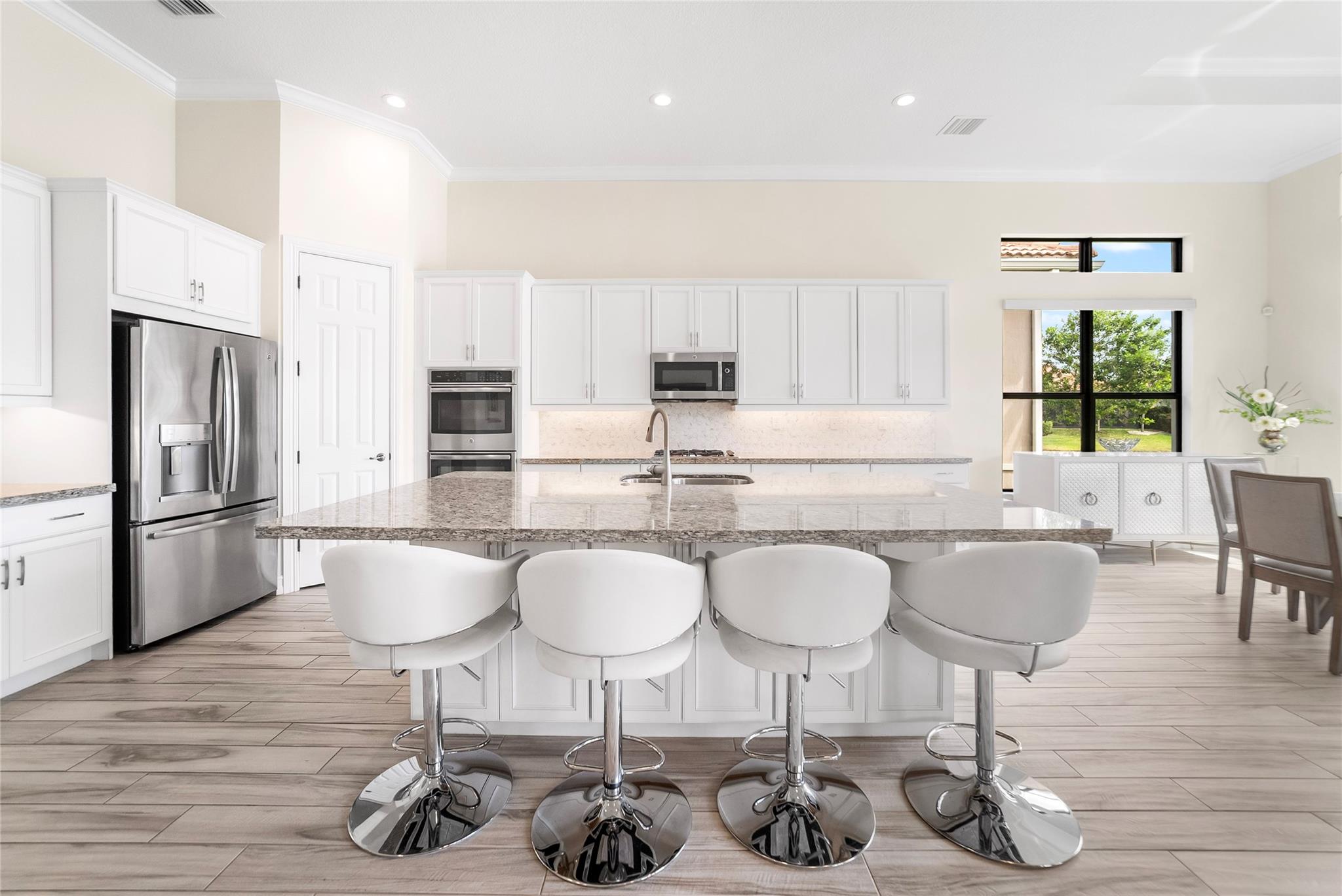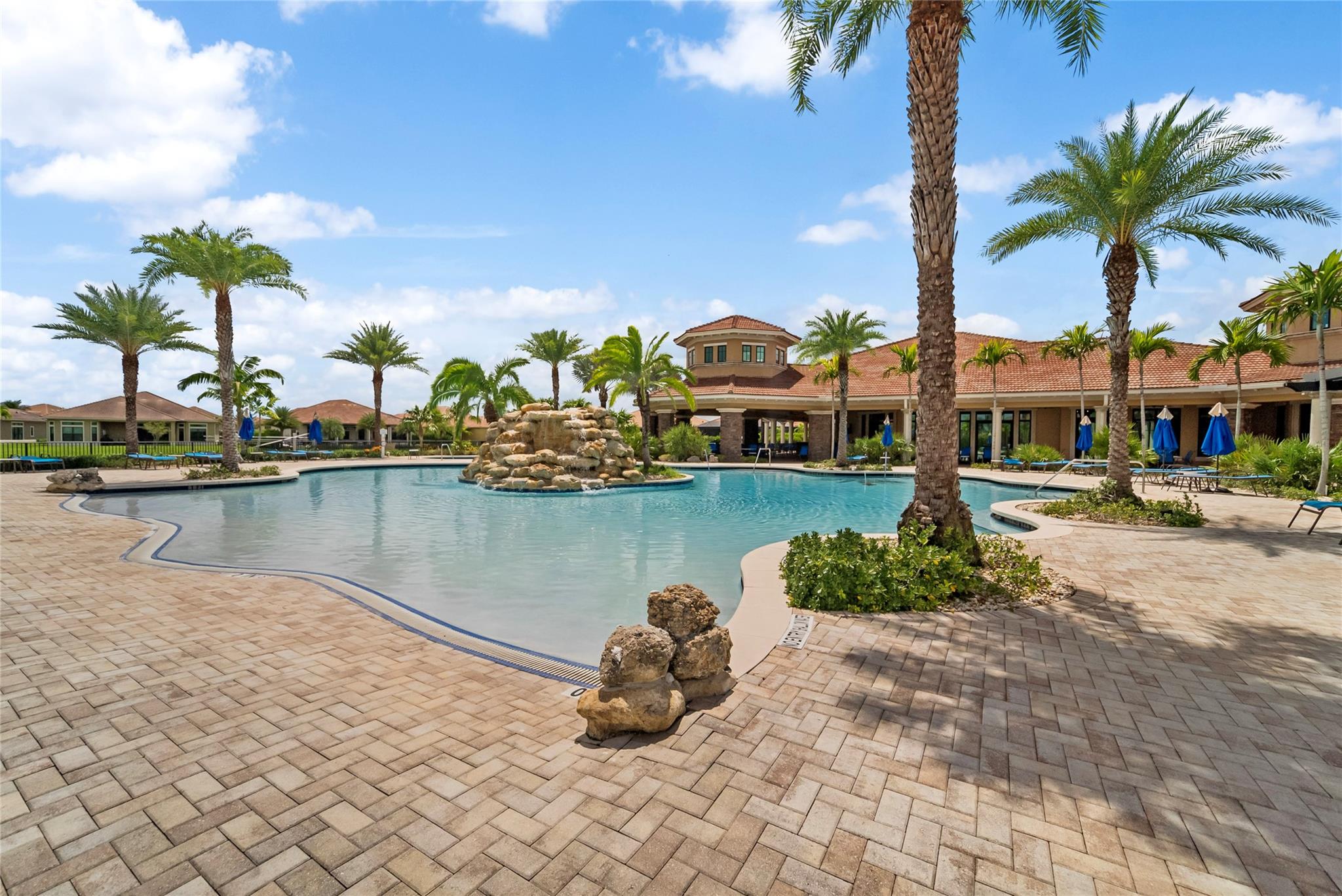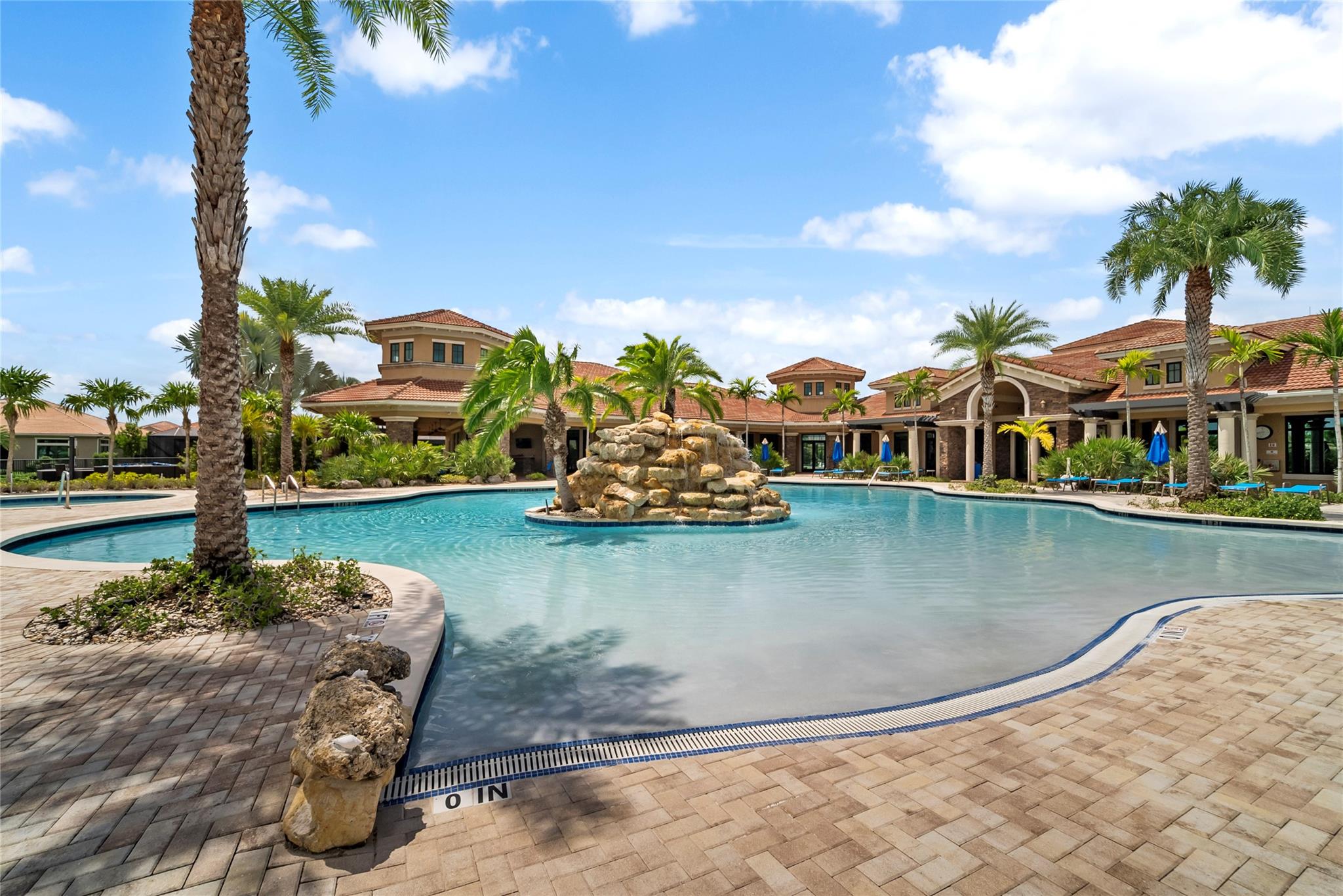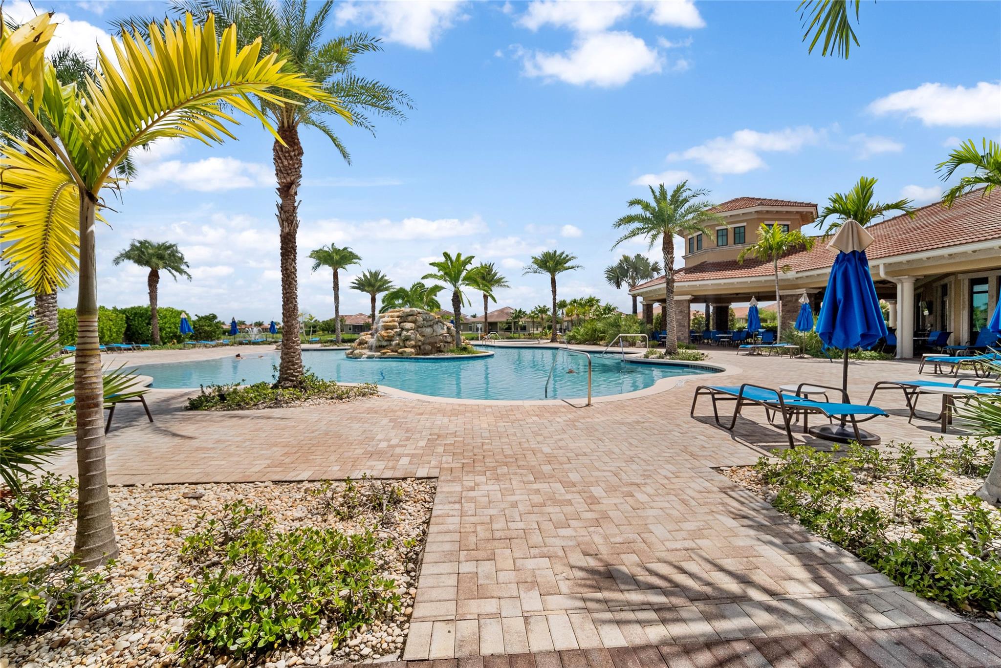 Turnkey Vera Model Home w/3 Beds w/On-Suite Baths (3rd Bed Used As An Office) 2.5 Baths, Waterfront Home w/Extended Pavered Covered & Open Patio, Split Open Floor Plan, Porcelain Wood Looking Tile Floors Throughout, Just Under 2,700 SqFt Under Living Area, 12″ Ceilings w/Crown Molding & Tray Ceilings, Impact Windows/Doors, Custom Front Door, Luxurious Remote Shades, Spacious Kitchen On Gas, Dual Ovens, Quartz Counters & Island, Pantry, Breakfast Area Overlooking Back Patio & Water, Large Primary Bed w/Sitting Area, Custom Walk-In Closet, Separate Tub & Shower, Dual Sinks, Bonus Room Could Be Converted To a Full 3rd Bed w/Walk-In Closet, Ample Laundry Room w/Additional Cabinets, Resort-Style Amenities, Heated Pool, Spa, Fitness Center, Tennis/Pickle Ball, 24-Hour Guard Gate, & More.