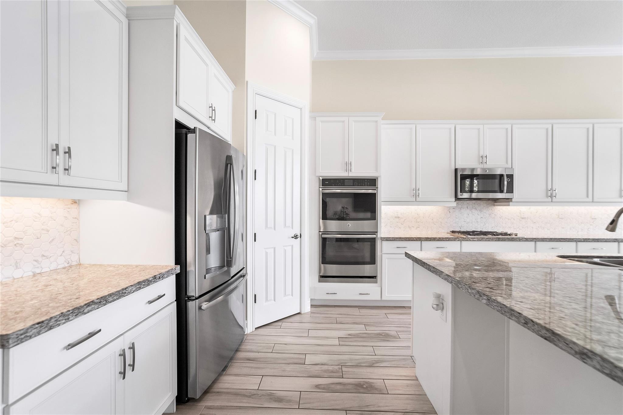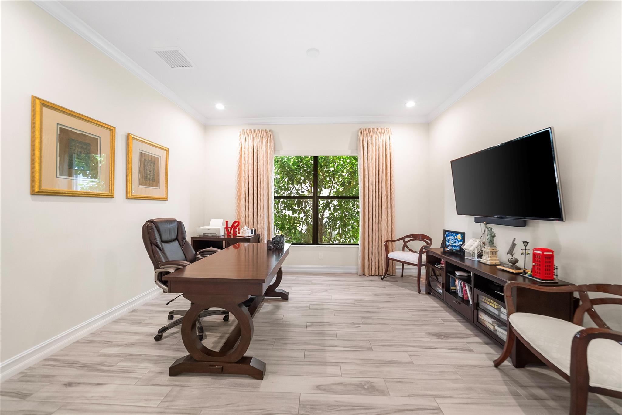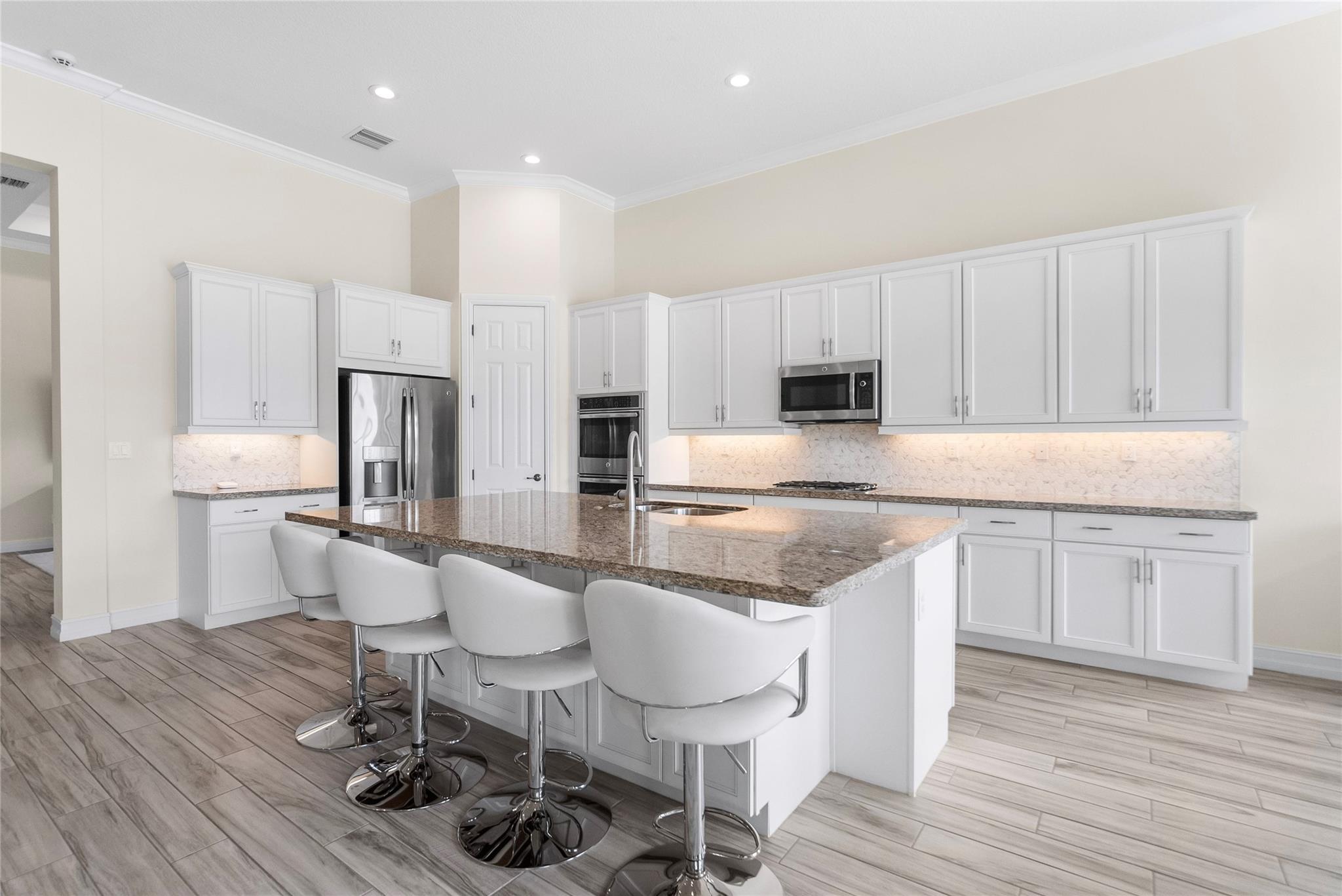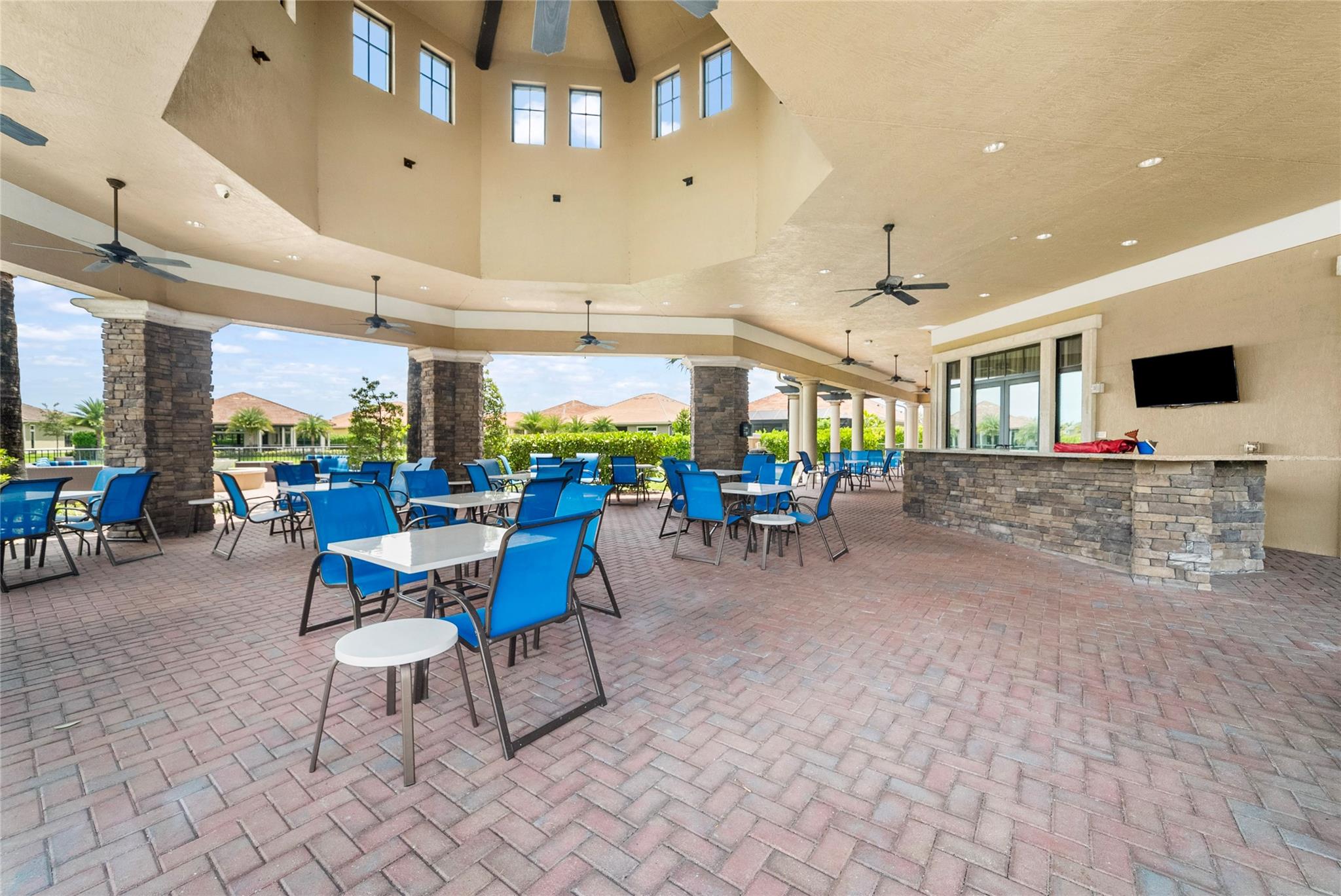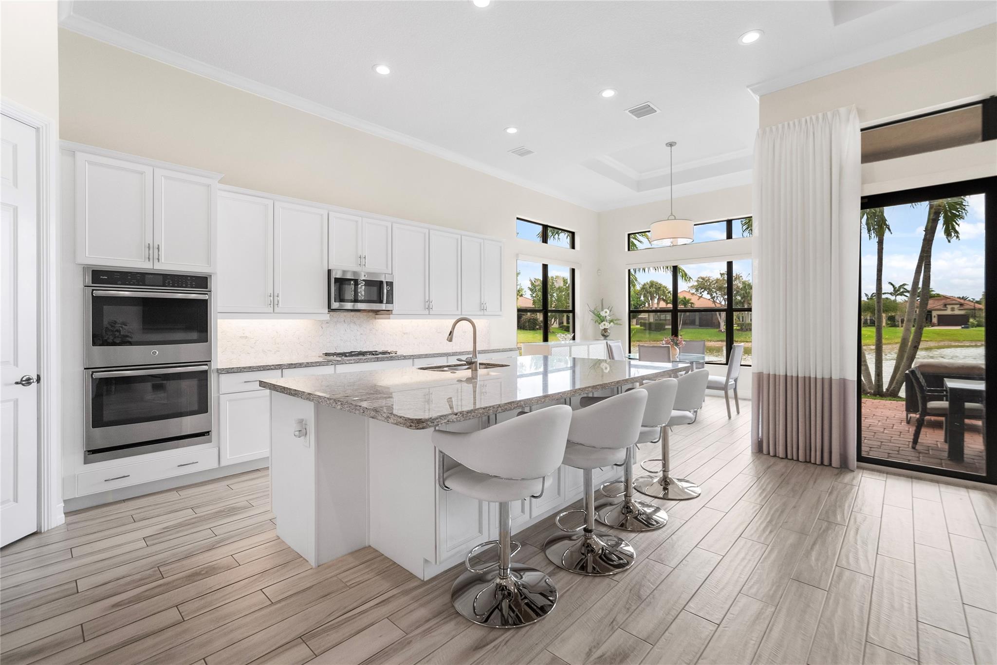 Turnkey Vera Model Home w/3 Beds w/On-Suite Baths (3rd Bed Used As An Office) 2.5 Baths, Waterfront Home w/Extended Pavered Covered & Open Patio, Split Open Floor Plan, Porcelain Wood Looking Tile Floors Throughout, Just Under 2,700 SqFt Under Living Area, 12″ Ceilings w/Crown Molding & Tray Ceilings, Impact Windows/Doors, Custom Front Door, Luxurious Remote Shades, Spacious Kitchen On Gas, Dual Ovens, Quartz Counters & Island, Pantry, Breakfast Area Overlooking Back Patio & Water, Large Primary Bed w/Sitting Area, Custom Walk-In Closet, Separate Tub & Shower, Dual Sinks, Bonus Room Could Be Converted To a Full 3rd Bed w/Walk-In Closet, Ample Laundry Room w/Additional Cabinets, Resort-Style Amenities, Heated Pool, Spa, Fitness Center, Tennis/Pickle Ball, 24-Hour Guard Gate, & More.