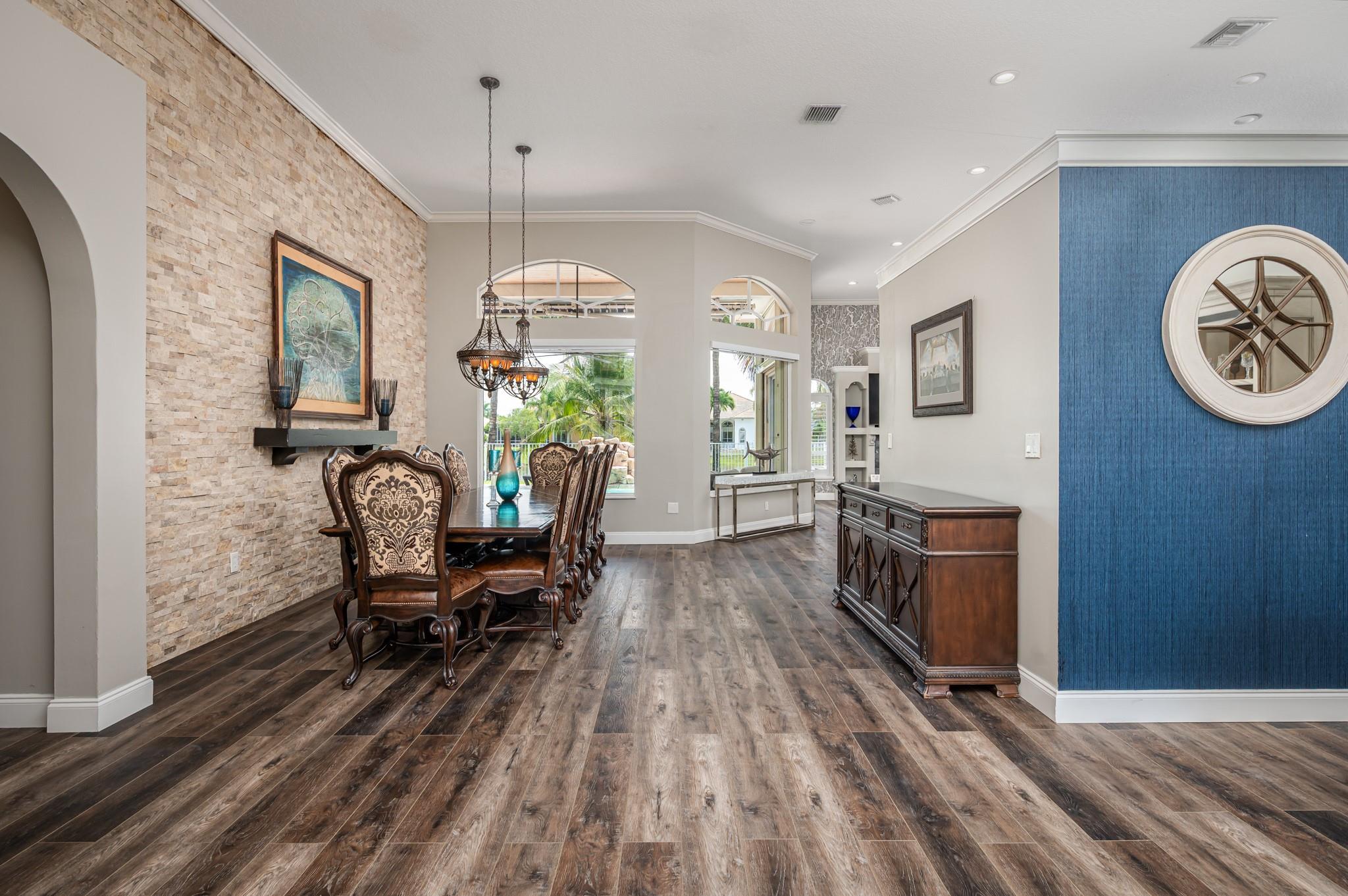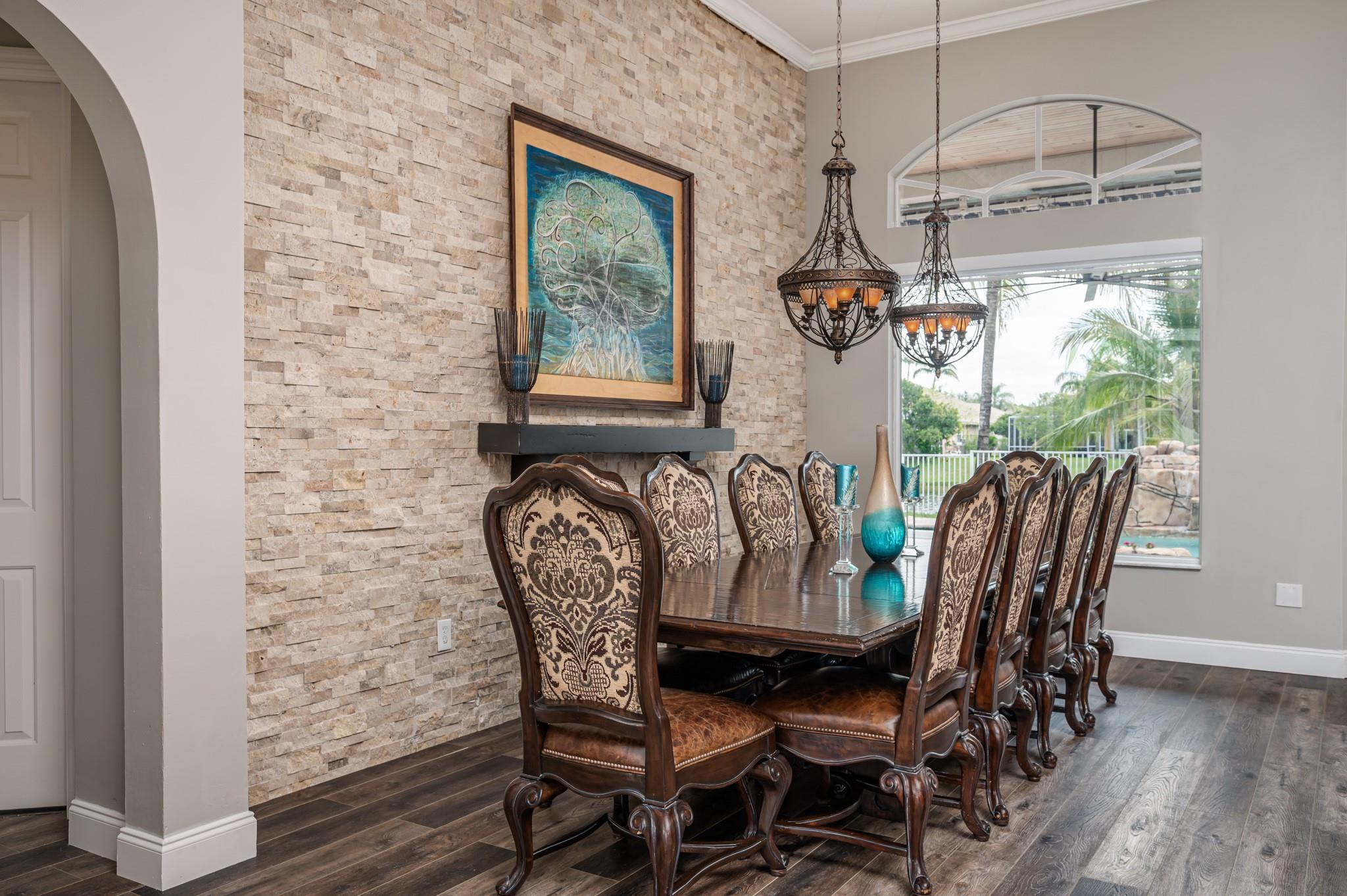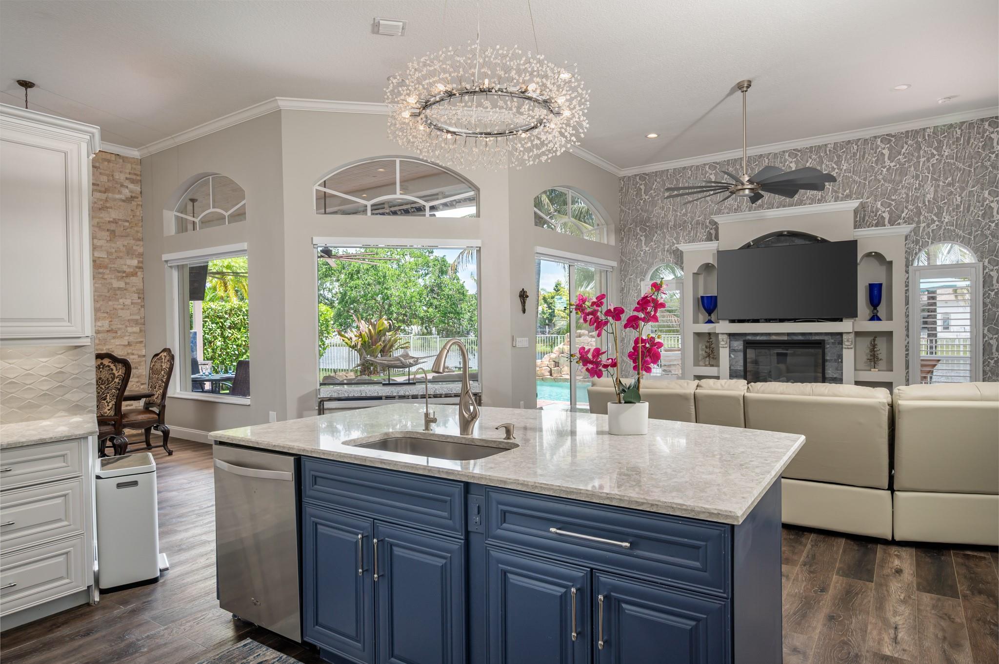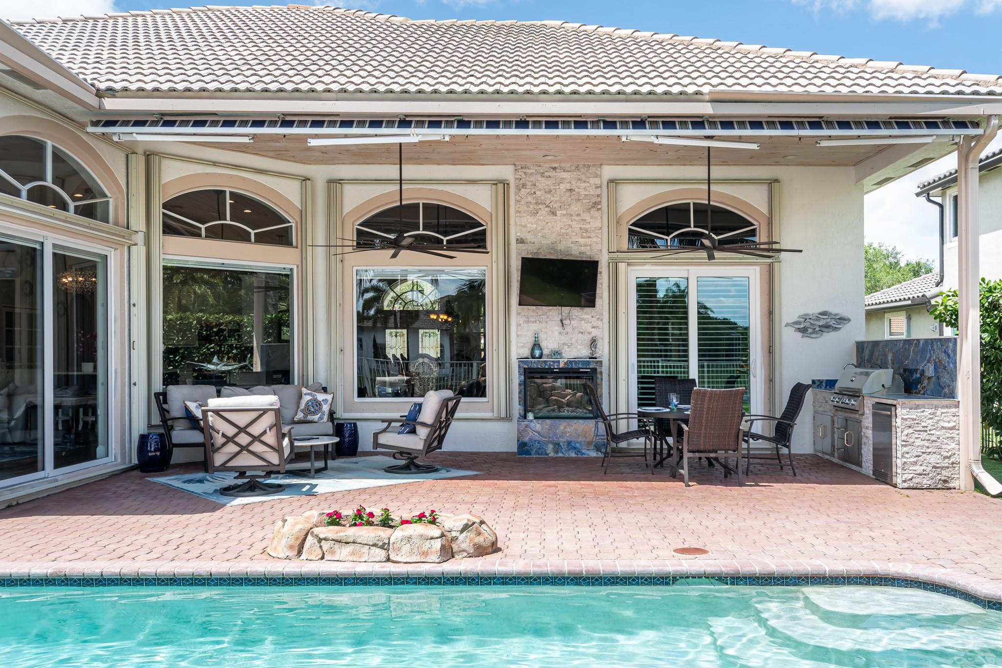 This exquisite home is the perfect combination of luxury and comfort. The open floor plan creates a seamless flow between the kitchen, dining & living areas. The home has been meticulously upgraded with high-end finishes and features, adding exceptional value and sophistication throughout. The heart of the home is the grand kitchen, featuring an over sized island ideal for family gatherings. The stunning IMPACT picture windows provides unobstructed panoramic views of the private pool & serene lake. The backyard is an entertainer’s dream, with a waterfall & fire features creating an inviting ambiance. The outdoor kitchen and large shaded area adds to this outdoor paradise. Don’t miss your opportunity to own your own slice of paradise!! Wall art does not convey.