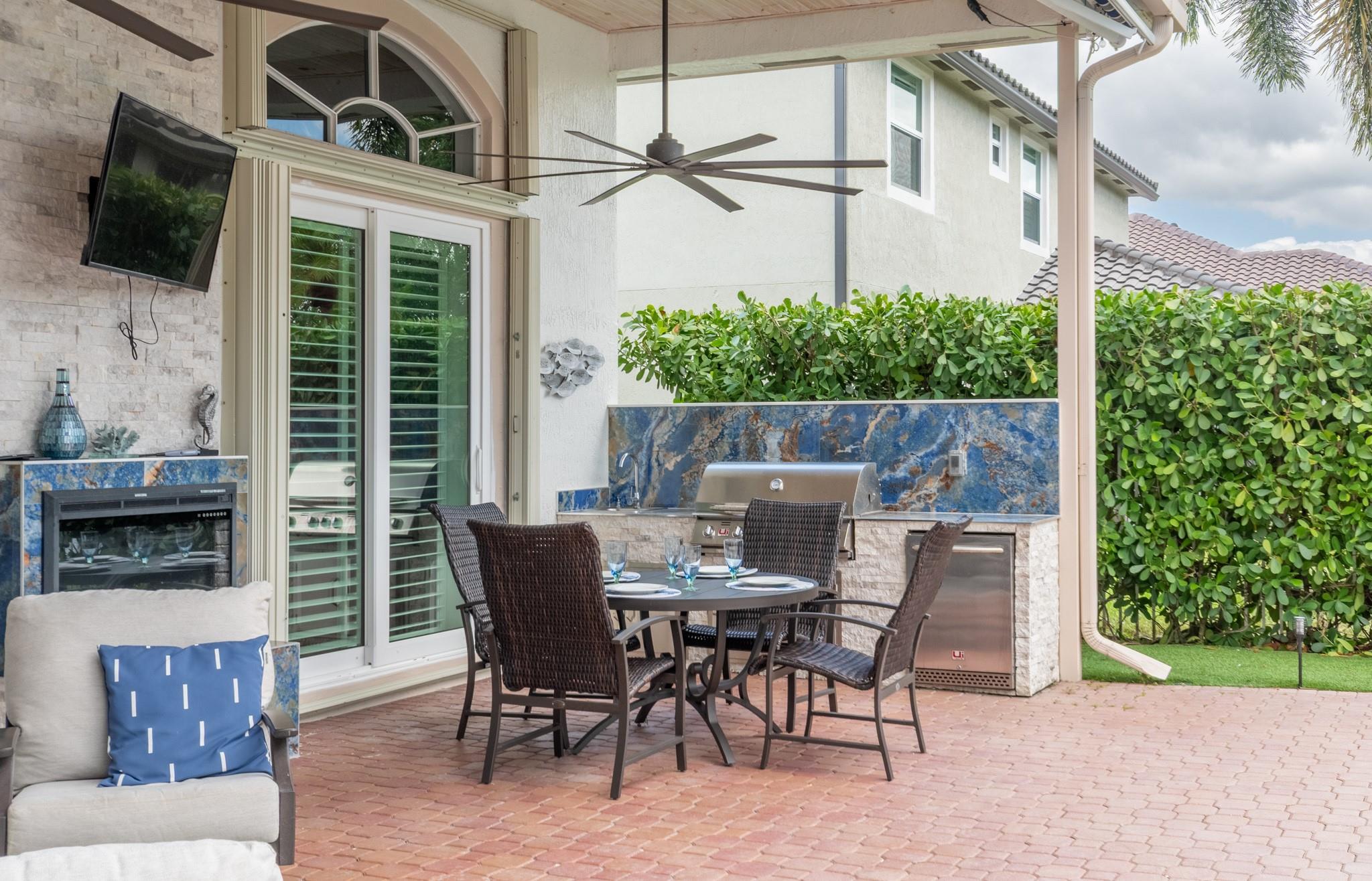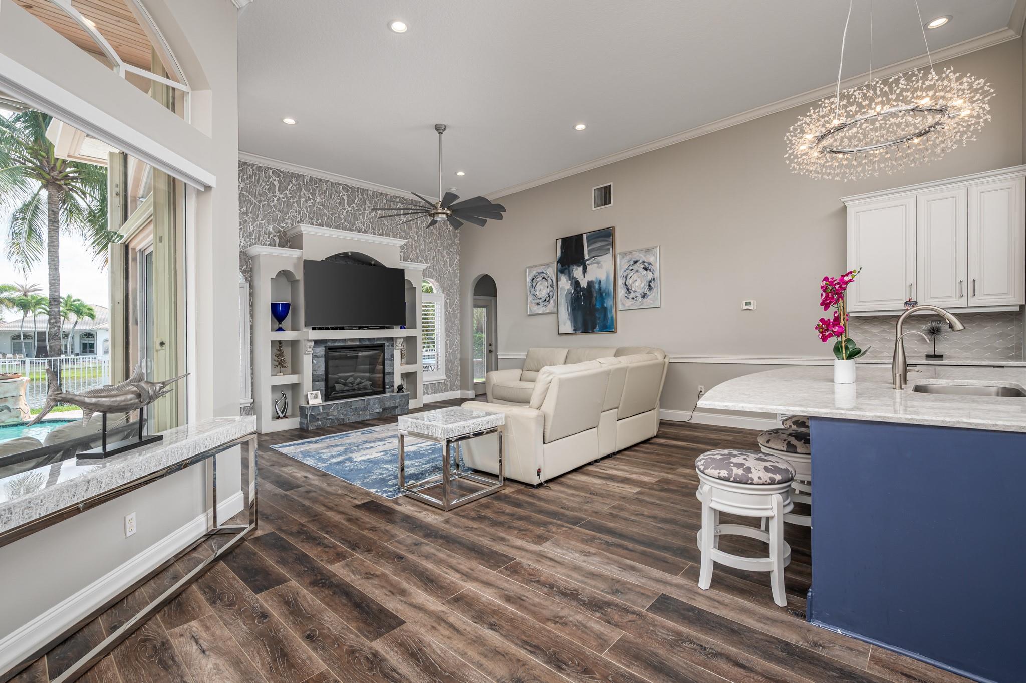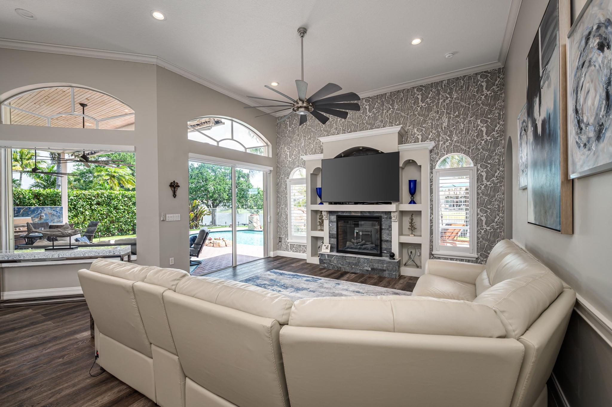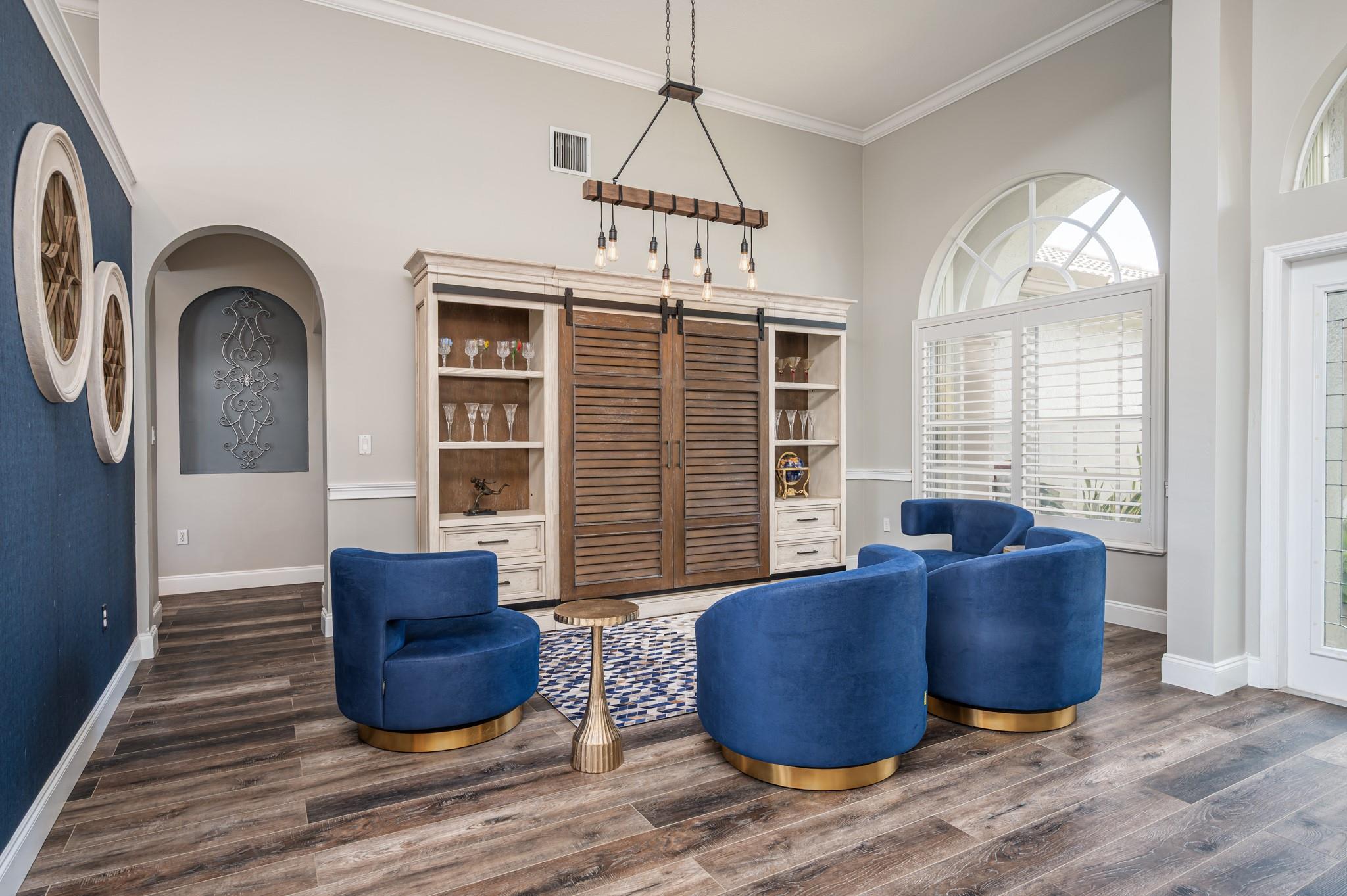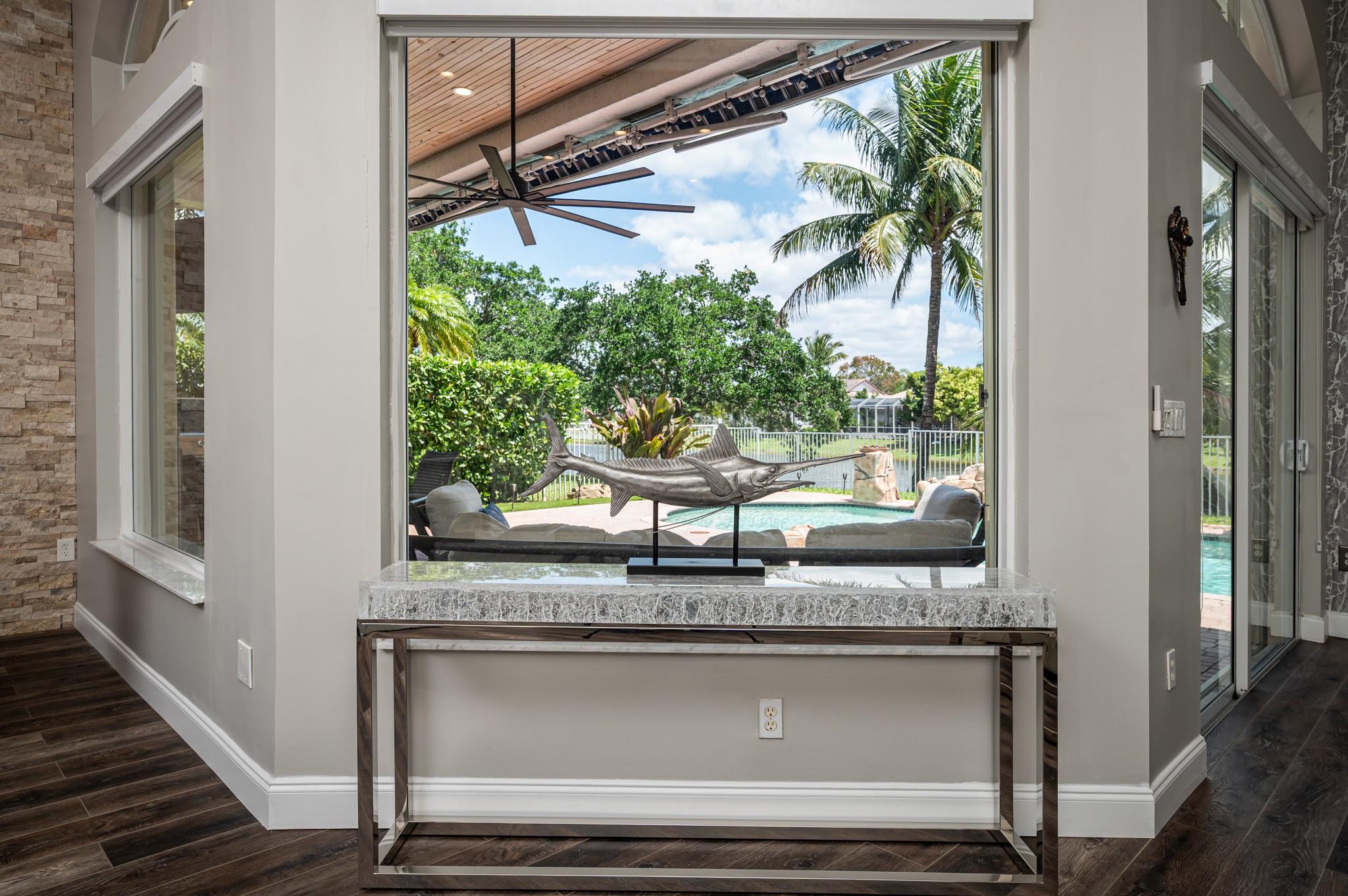 This exquisite home is the perfect combination of luxury and comfort. The open floor plan creates a seamless flow between the kitchen, dining & living areas. The home has been meticulously upgraded with high-end finishes and features, adding exceptional value and sophistication throughout. The heart of the home is the grand kitchen, featuring an over sized island ideal for family gatherings. The stunning IMPACT picture windows provides unobstructed panoramic views of the private pool & serene lake. The backyard is an entertainer’s dream, with a waterfall & fire features creating an inviting ambiance. The outdoor kitchen and large shaded area adds to this outdoor paradise. Don’t miss your opportunity to own your own slice of paradise!! Wall art does not convey.