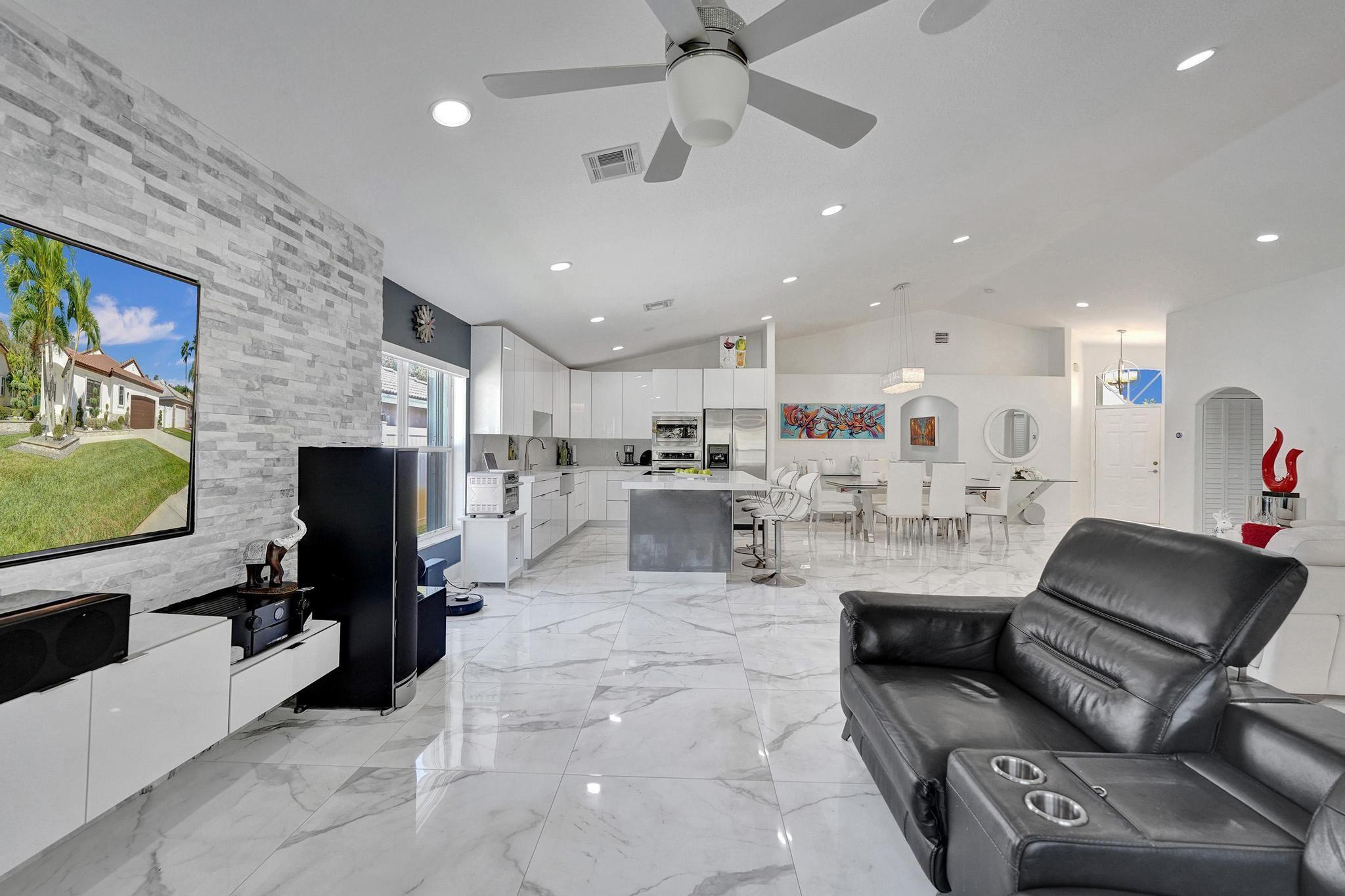 This beautifully updated 4 bedroom 2 bath home is a must-see! Nestled in the gated community of The Estates of Pembroke Shores in Heftler Homes, it boasts a unique open-concept design with the dividing wall in the main living area removed, creating a bright and spacious feel. Natural light floods the home, enhancing its airy ambiance. The split floor plan offers privacy, with the primary suite featuring direct access to the backyard. Both bathrooms have been tastefully renovated, and the main living area showcases elegant 24×24 tile flooring throughout. Conveniently located near top shopping, dining, and with easy access to I-75, this home offers the perfect blend of style, comfort, and convenience. Don’t miss out on this fantastic opportunity!