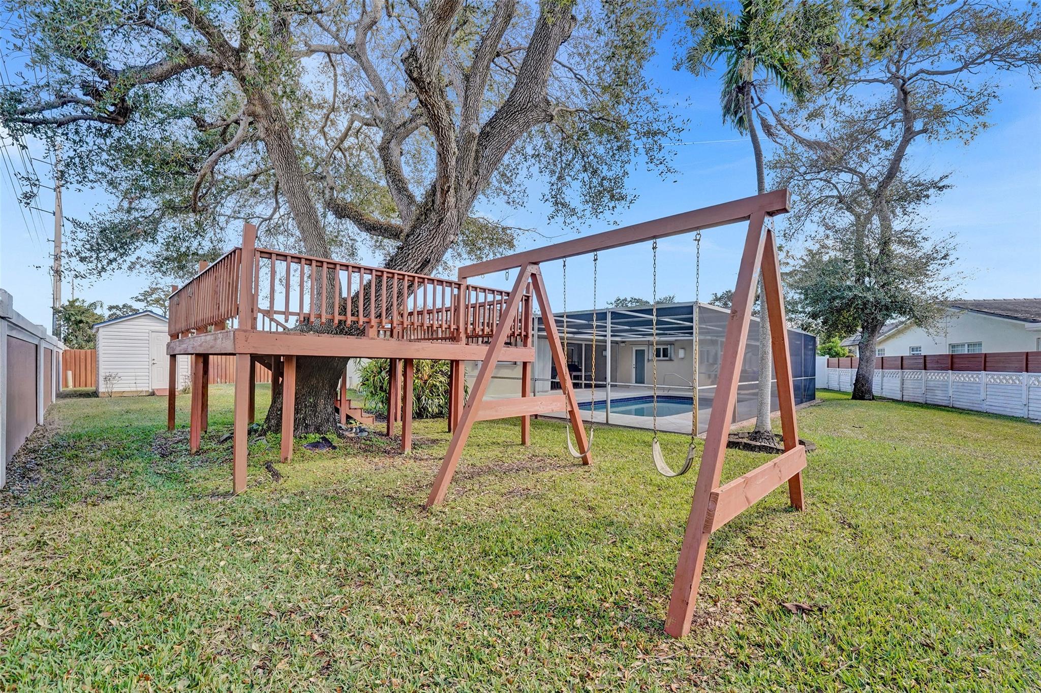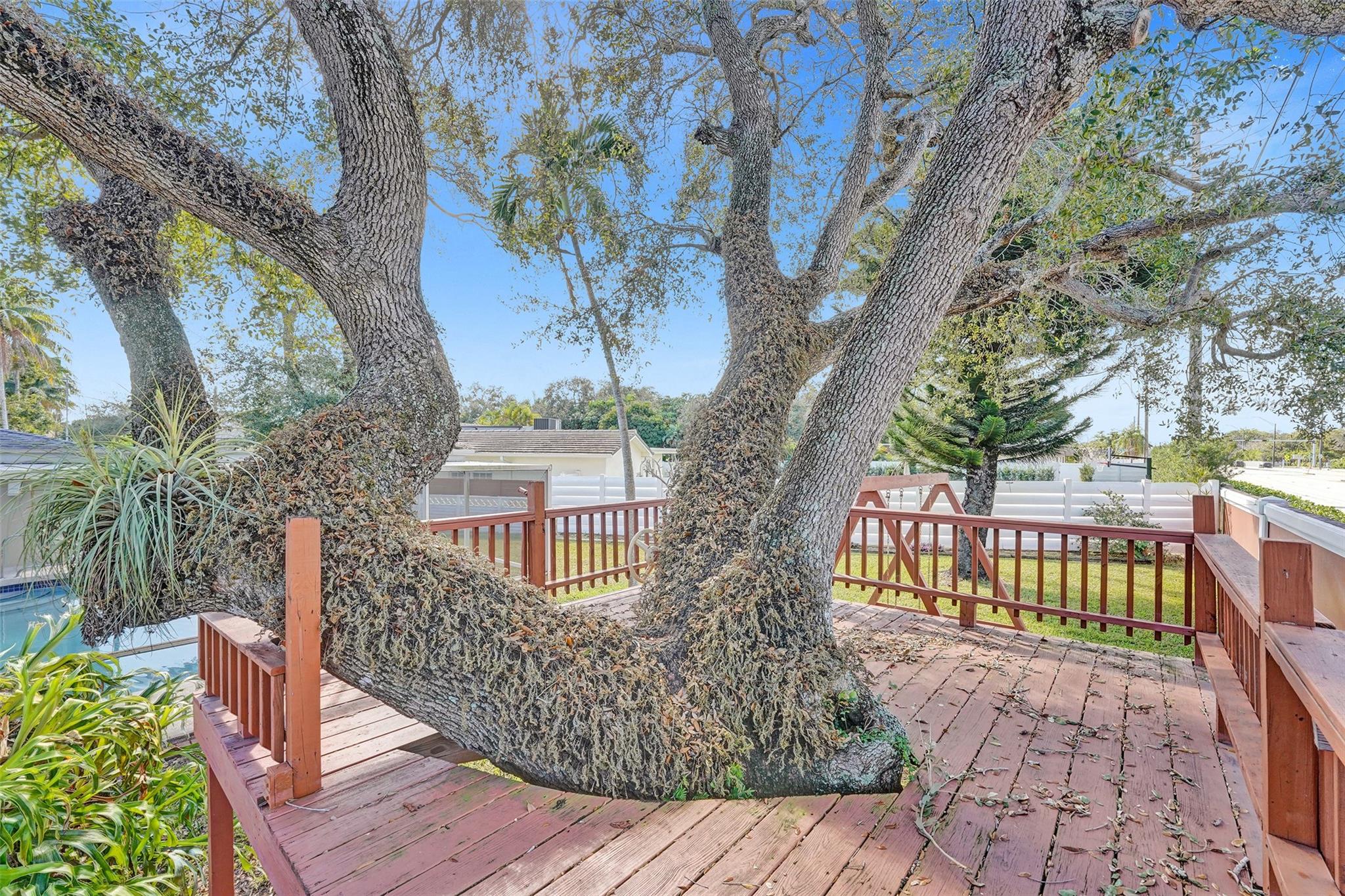 NESTLED ON A MAGNIFICENT 12,000+ SQUARE FT LOT, THIS STUNNING 4 BEDROOM, 3 BATHROOM HOME OFFERS A HARMONIOUS BLEND OF MODERN SOPHISTICATION AND OUTDOOR CHARM. COMPLETELY UPDATED WITH BEAUTIFUL FINISHES, THE INTERIOR BOASTS SPACIOUS LIVING AREAS FILLED WITH NATURAL LIGHT AND THOUGHTFUL DESIGN ELEMENTS THROUGHOUT. STEP OUTSIDE TO DISCOVER A TRUE ENTERTAINERS PARADISE-A SCREENED IN POOL PERFECT FOR YEAR ROUND ENJOYMENT AND EXPANSIVE GREEN SPACES. A WHIMSICAL TREEHOUSE EMBRACED BY A MAJESTIC OAK, GREAT FOR KIDS AND ADULTS. THIS HOME WILL NOT DISAPPOINT!