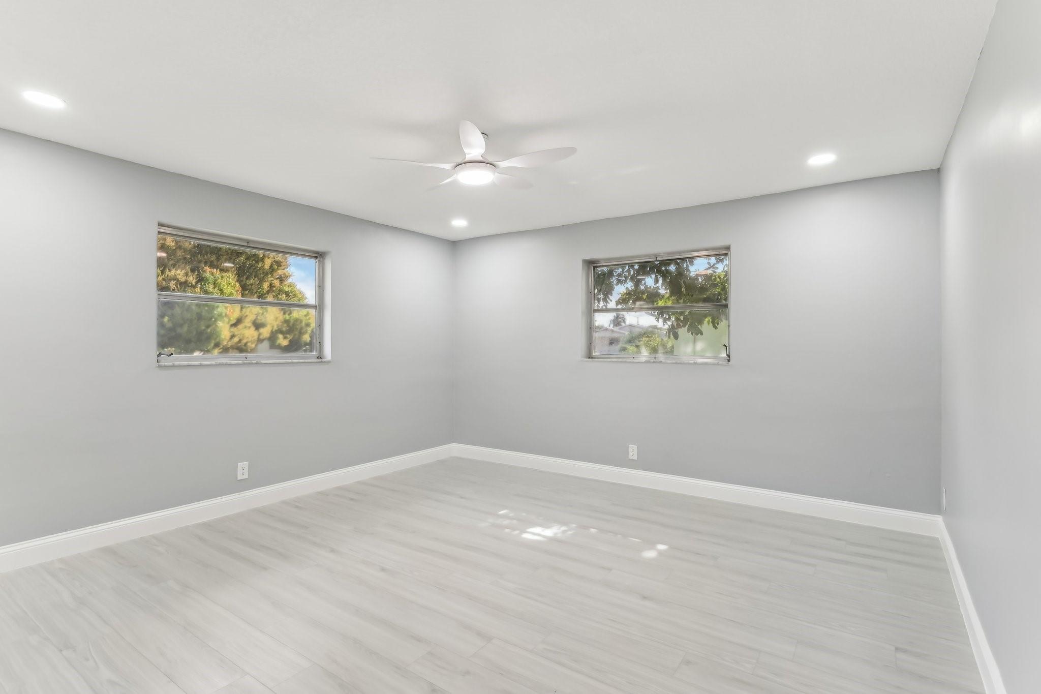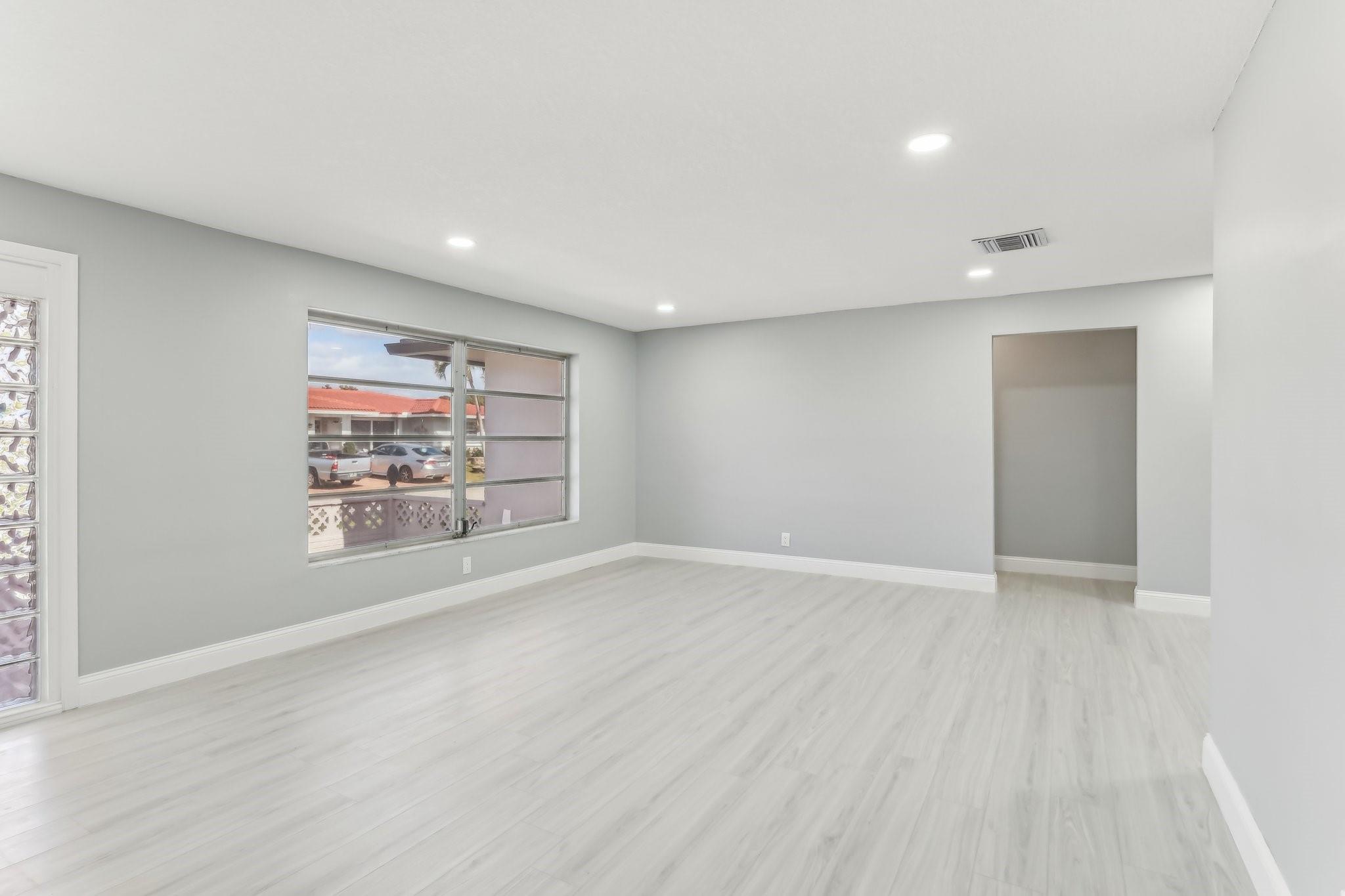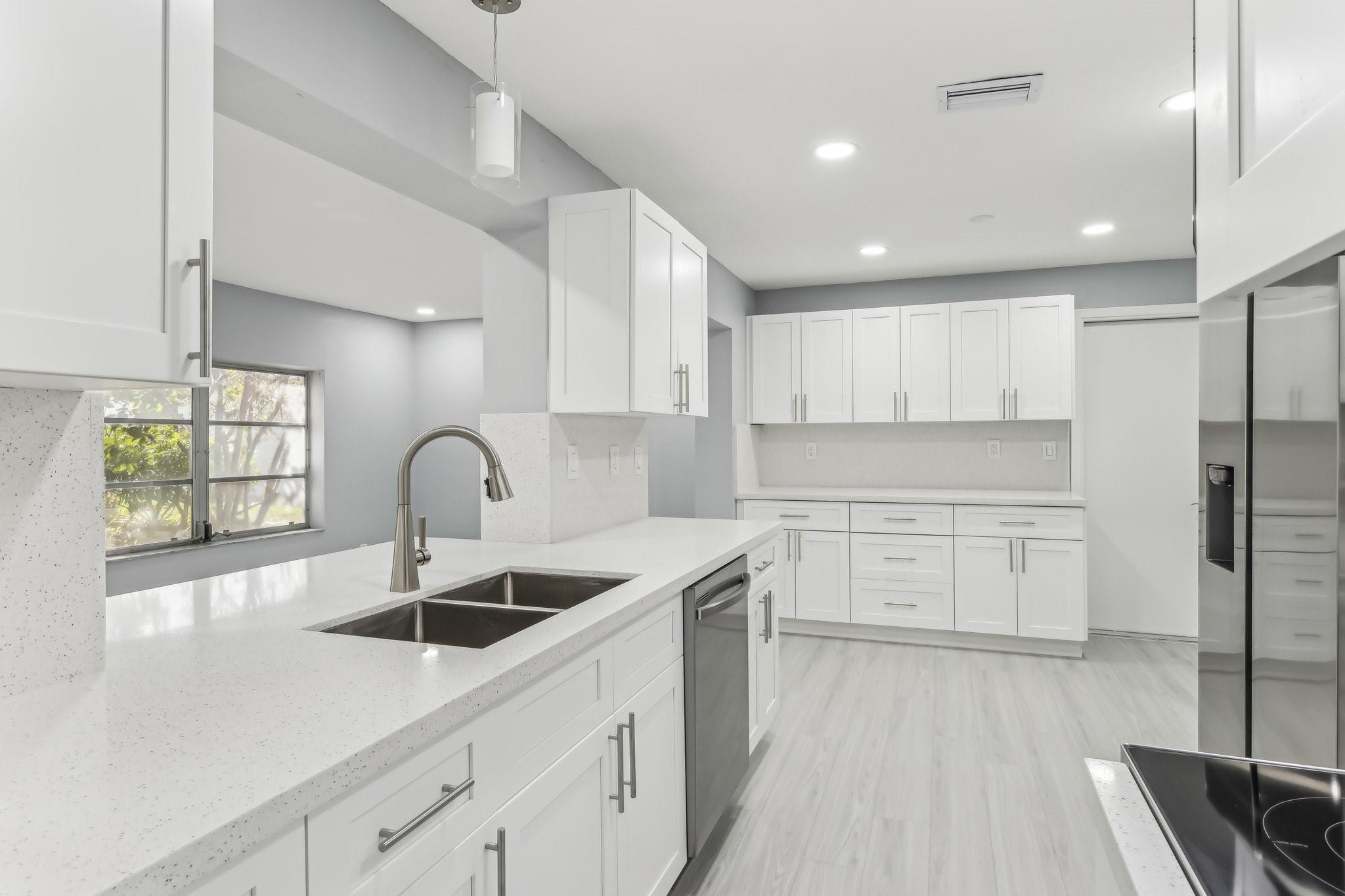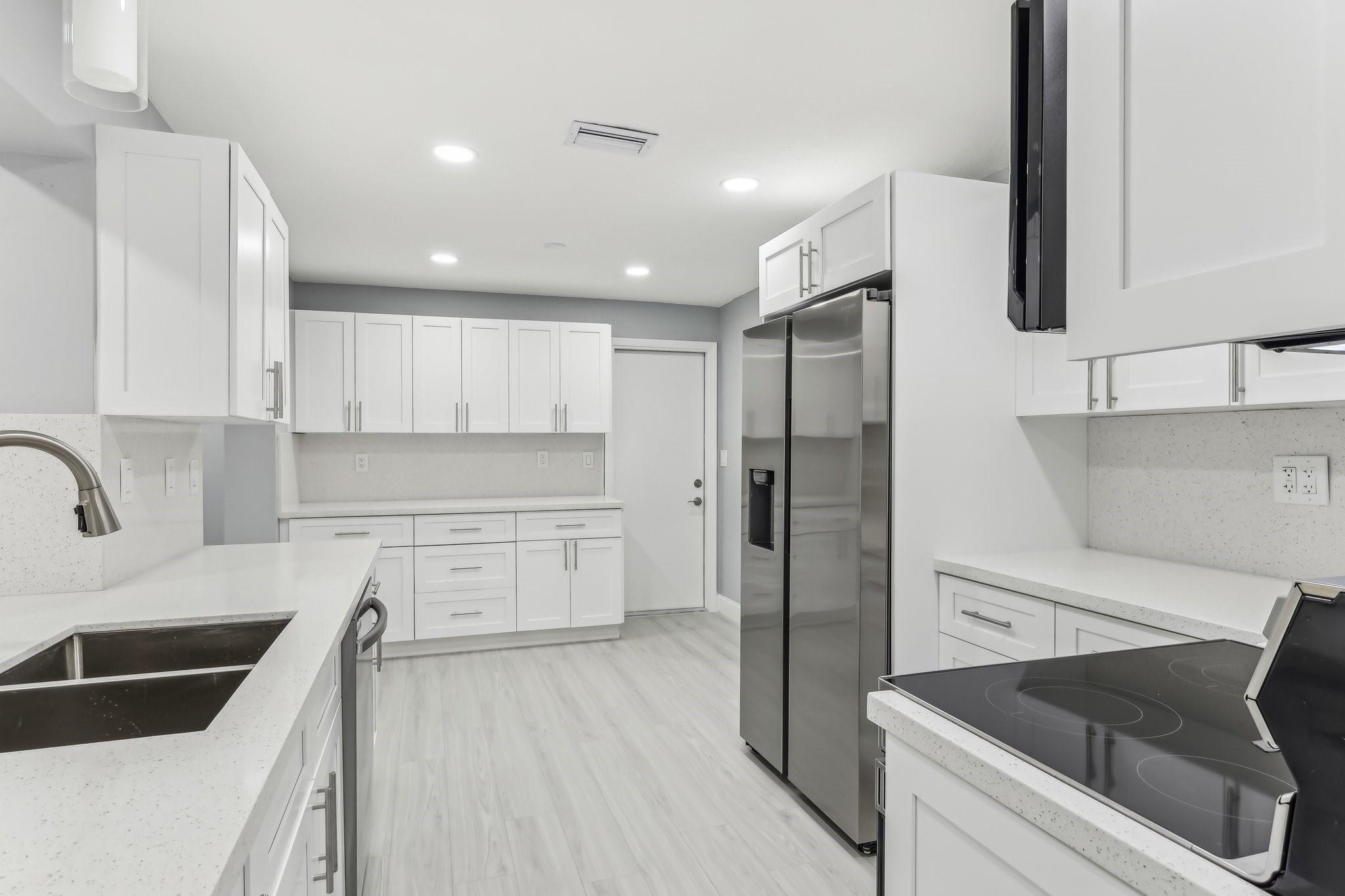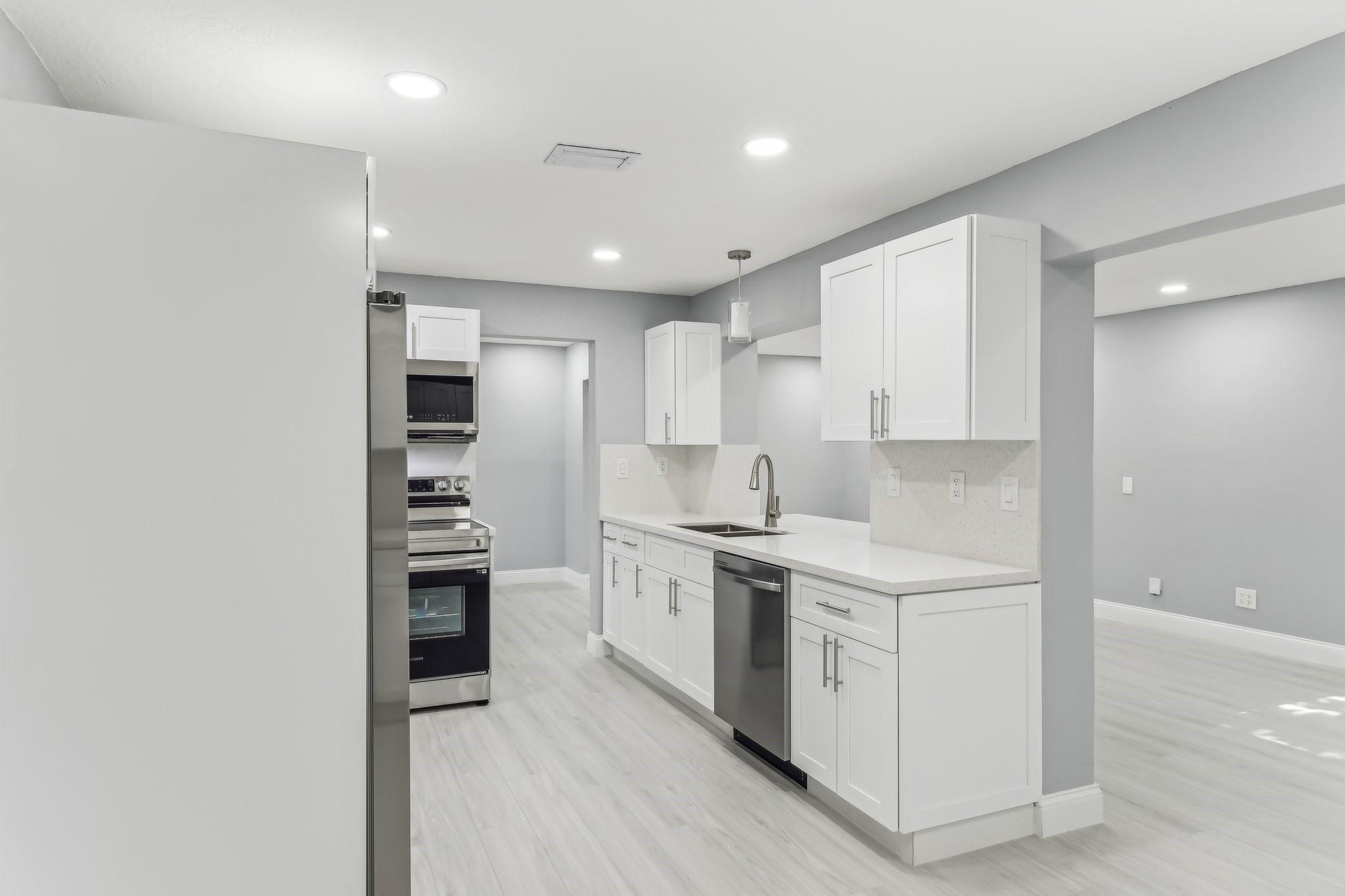 New Roof (2024) for peace of mind, Air Conditioning (2024) for year-round comfort. Beautifully designed bathrooms with modern finishes. New Laminate Wood Flooring throughout, adding warmth and elegance. Generously sized bedrooms with ample closet space. A 1-car garage for convenience and extra storage. A spacious kitchen with stunning quartz countertops and brand-new Samsung appliances. Freshly painted interior and exterior for a polished, move-in-ready look. Elegant recessed lighting throughout the home. Lawn maintenance is included in the monthly HOA dues.