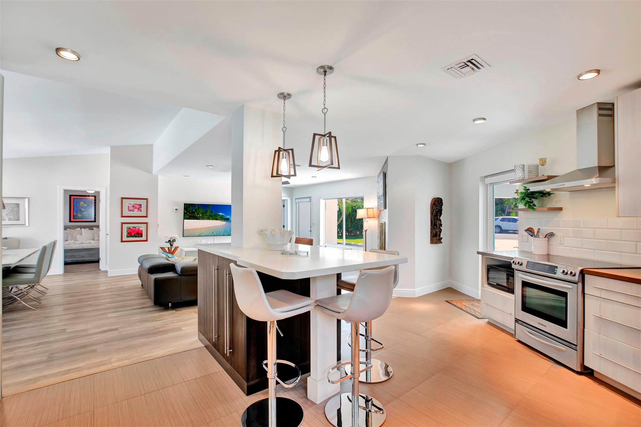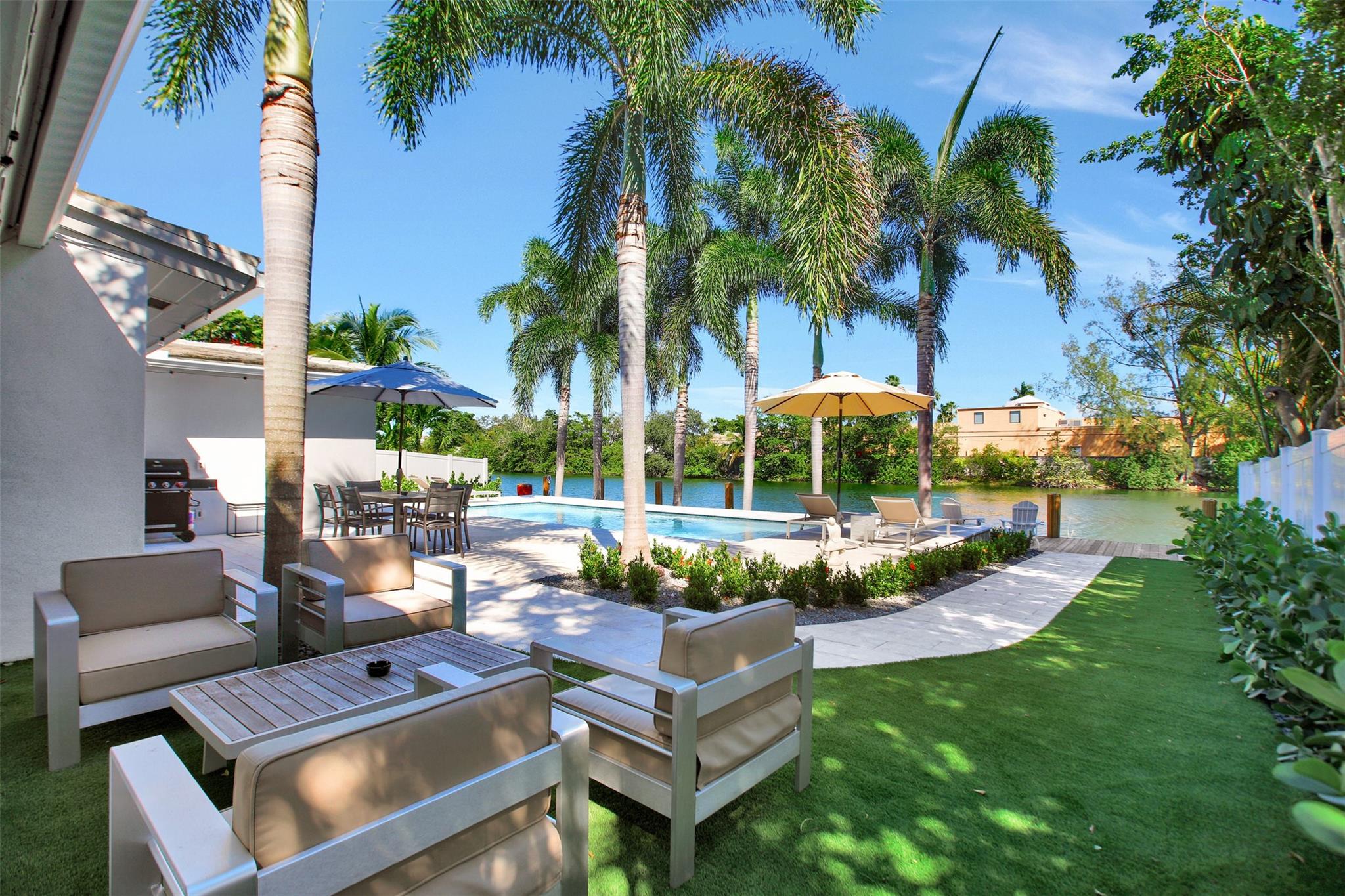 Lakefront oasis in prime Poinsettia Heights! This meticulously updated 3-bedroom, 2-bath home redefines coastal living. An open floor plan creates seamless indoor-outdoor flow, while a brand-new pool, patio, seawall, and dock offer an unparalleled entertainment space. Just minutes from Las Olas and the beach, this property balances luxury and convenience. Soft neutral tones and large windows bathe the interior in natural light, creating an elegant, contemporary atmosphere. Smart modern finishes elevate every corner, making each space both functional and stylish. This property comes with vacation rental licensing and a proven income track record, making it perfect whether you want it as an investment that generates cash flow or as your main home. A true waterfront gem.