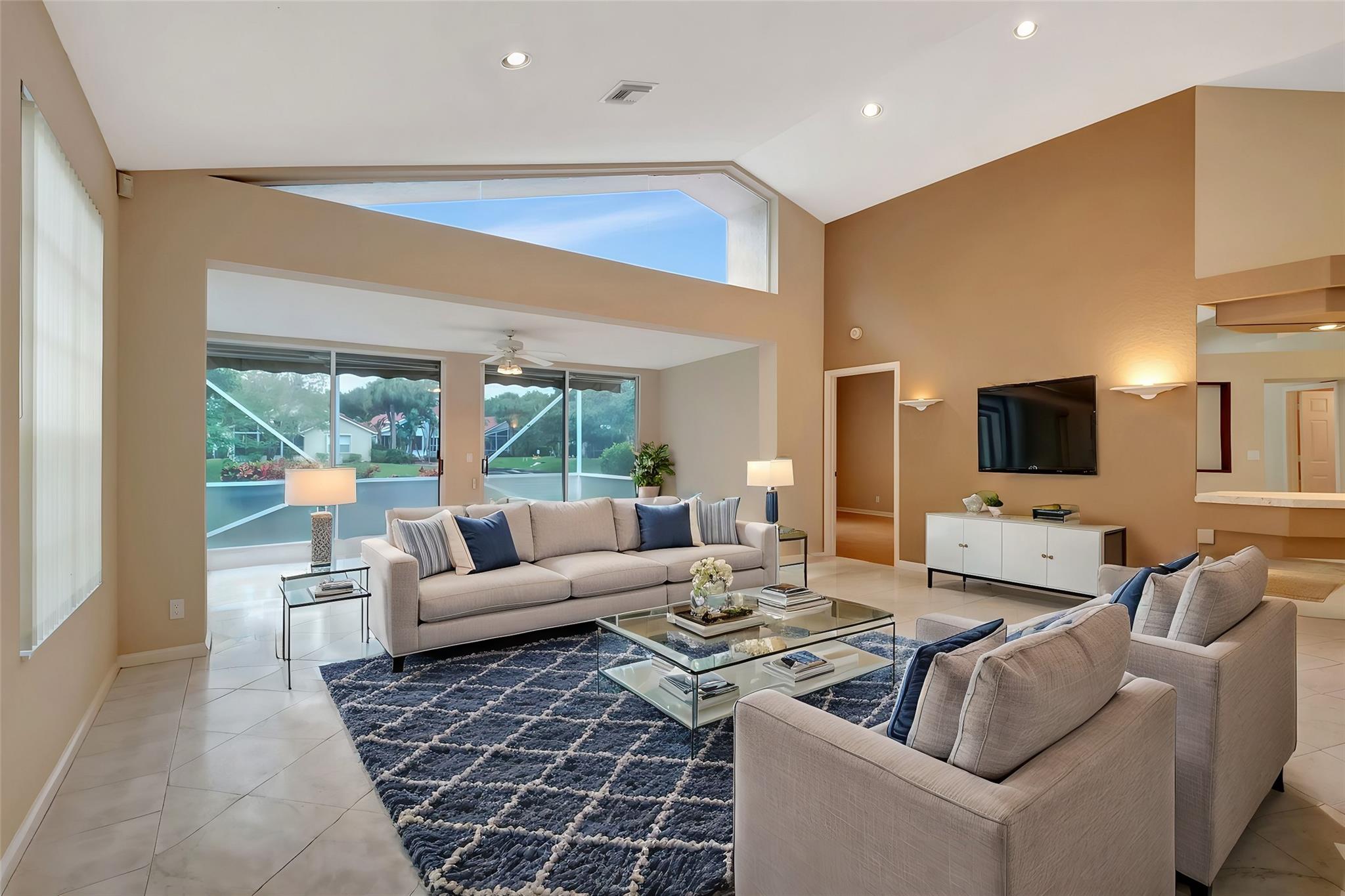 *Wallpaper being removed – new photos soon! Developer Model Home! This expanded model sits on a prime lot with FULL LAKE VIEWS and an extended driveway accommodating 6-8 cars. The extra-large living space is perfect for entertaining! Upgrades include a custom motorized awning on the newly screened patio, NEW ROOF 2022, fully renovated primary bath 2022, NEW A/C 2022, NEW water heater 2022, NEW appliances 2020 and NEW gutters installed 2024. This home is located within Indian Spring Country Club where membership is optional but not mandatory! Cable/Int. and landscaping included in HOA. Only 15 minutes to the beach and 20 minutes to vibrant Downtown Delray Beach! Brand new Publix shopping plaza with all new eateries, Starbucks and conveniences within walking distance!