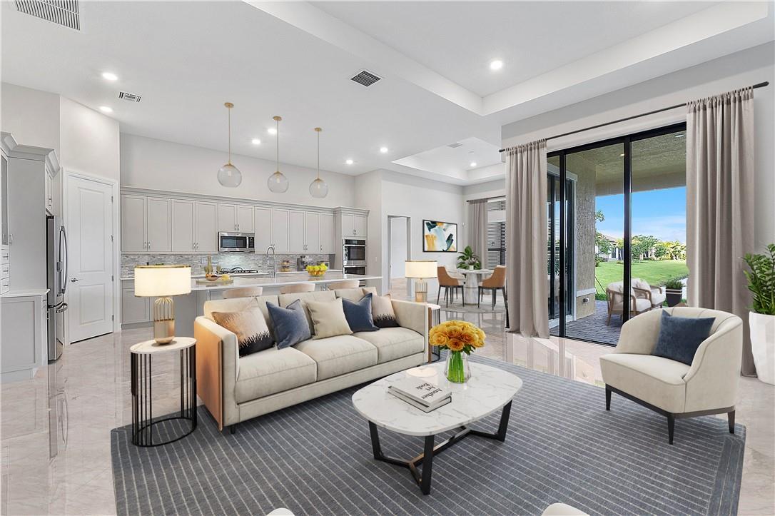 Come see this gorgeous, brand new, barely lived-in home on a beautiful long lake lot. Almost $100k in builders upgrades. Gorgeous marble floors and quartz counters. This desirable 1-story Cerelia model has 2 bedrooms + home office (which can be used as another bedroom or den), 2.5 baths, and a 3-car tandem garage. This brand new home (lived in for only a handful of nights) is ready for you to move right in without waiting to build! Four Seasons Parkland is an active adult, all-inclusive, resort lifestyle with a 24,000 sq foot clubhouse with state-of-the-art fitness center, pickle ball, bocce ball, 2 pools, social events and so much more! Feel like you’re living in a luxurious camp for andults all years round!