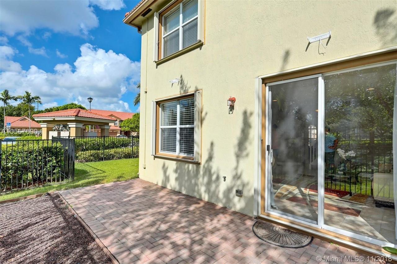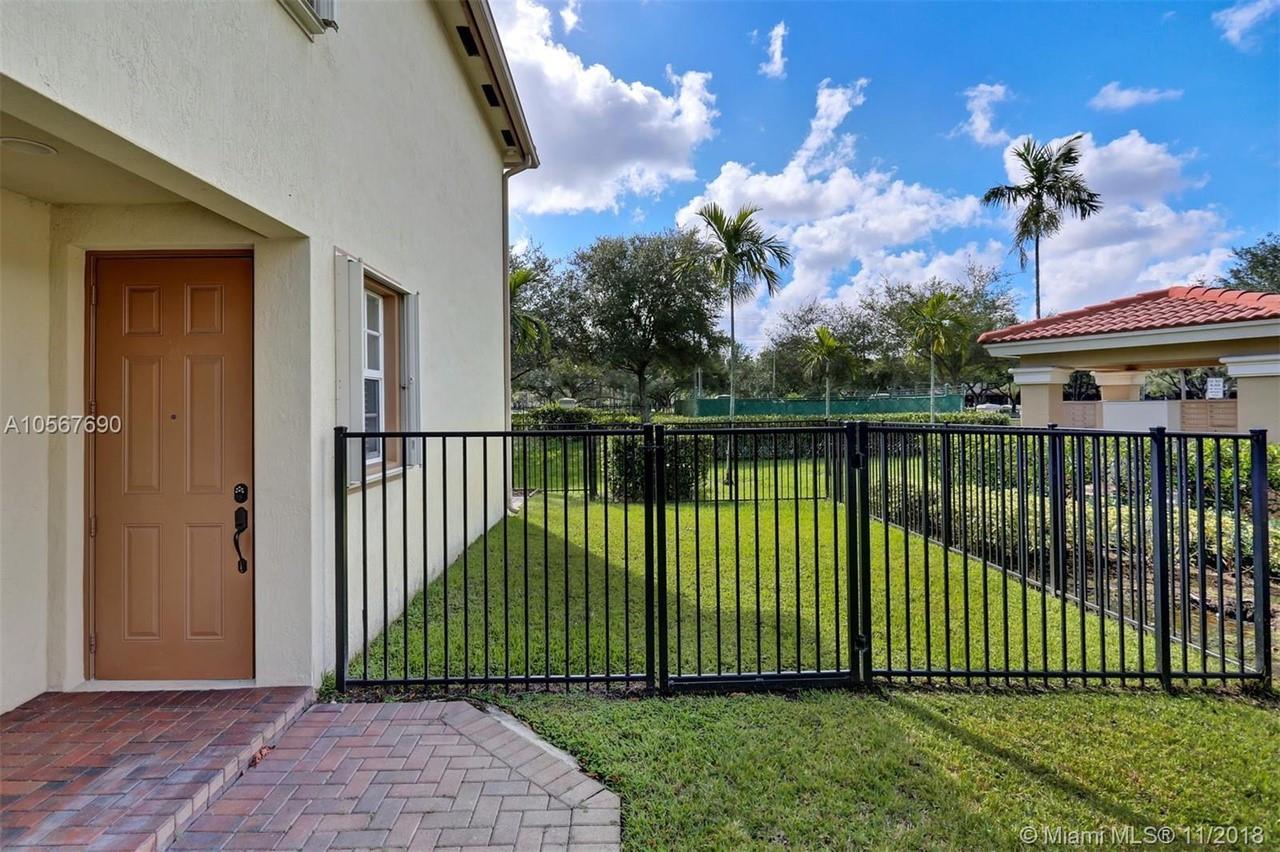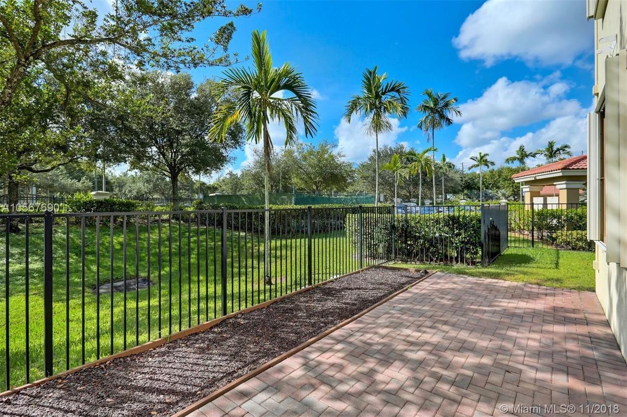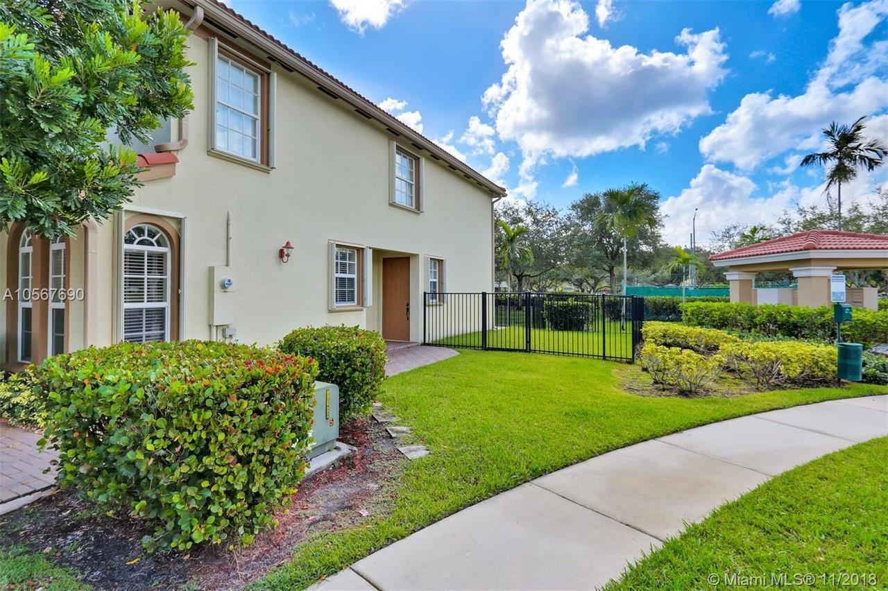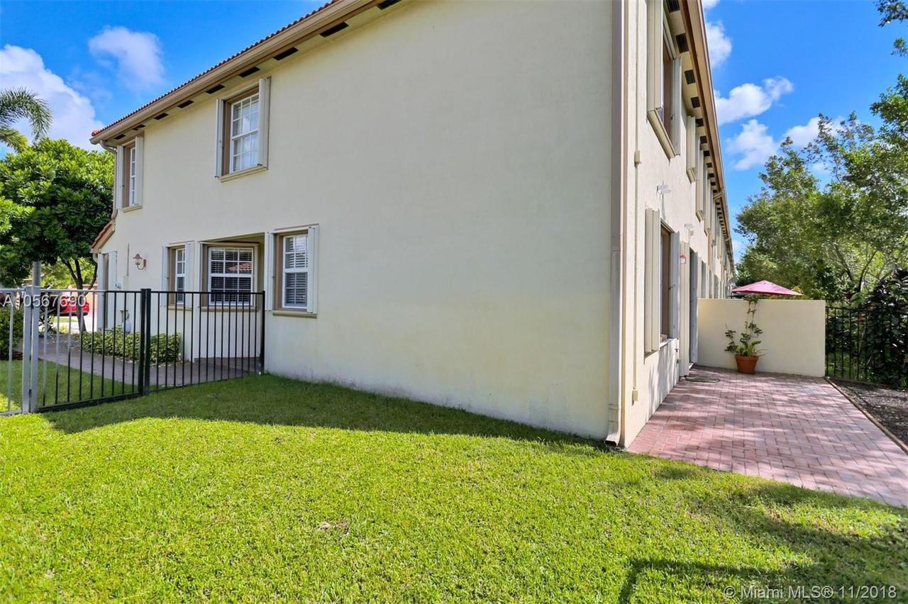 Picture perfect! Corner unit townhome in sought after community .One of few units with a fenced wraparound yard!Located across the community pool & on a dead-end street. This home offers an open floor plan with high ceilings, tile floors throughout 1st floor, lots of windows bringing in natural lights. Beautiful redone kitchen. Nice size Family room. Upstairs features gorgeous wood floors throughout, large Master bedroom with a walk-in closet, vaulted ceilings. Remodeled Master bath with walk-in shower, Granite top vanity with 2 sinks, Laundry closet upstairs, mounted ceiling speakers throughout the home, Accordion shutters in back and on the side windows on both floors, along with hurricane impact windows in front. Top rated schools. Homes in this community rarely become available. Hurry!