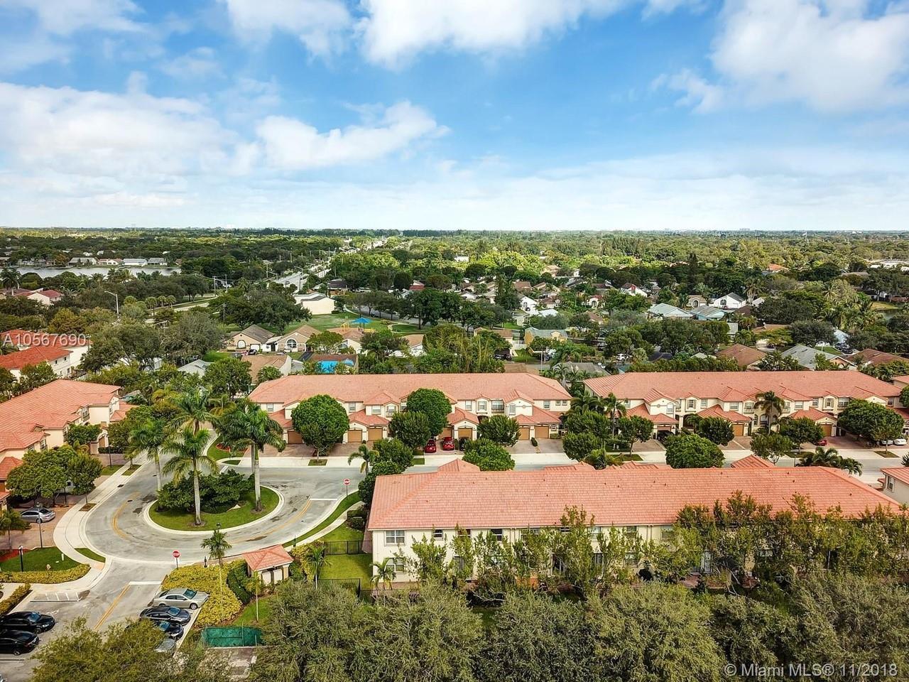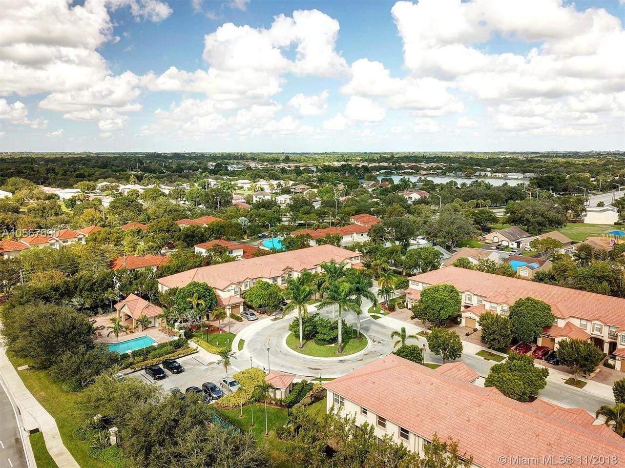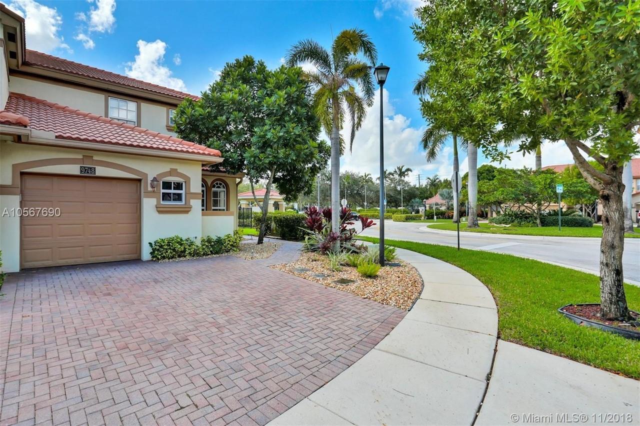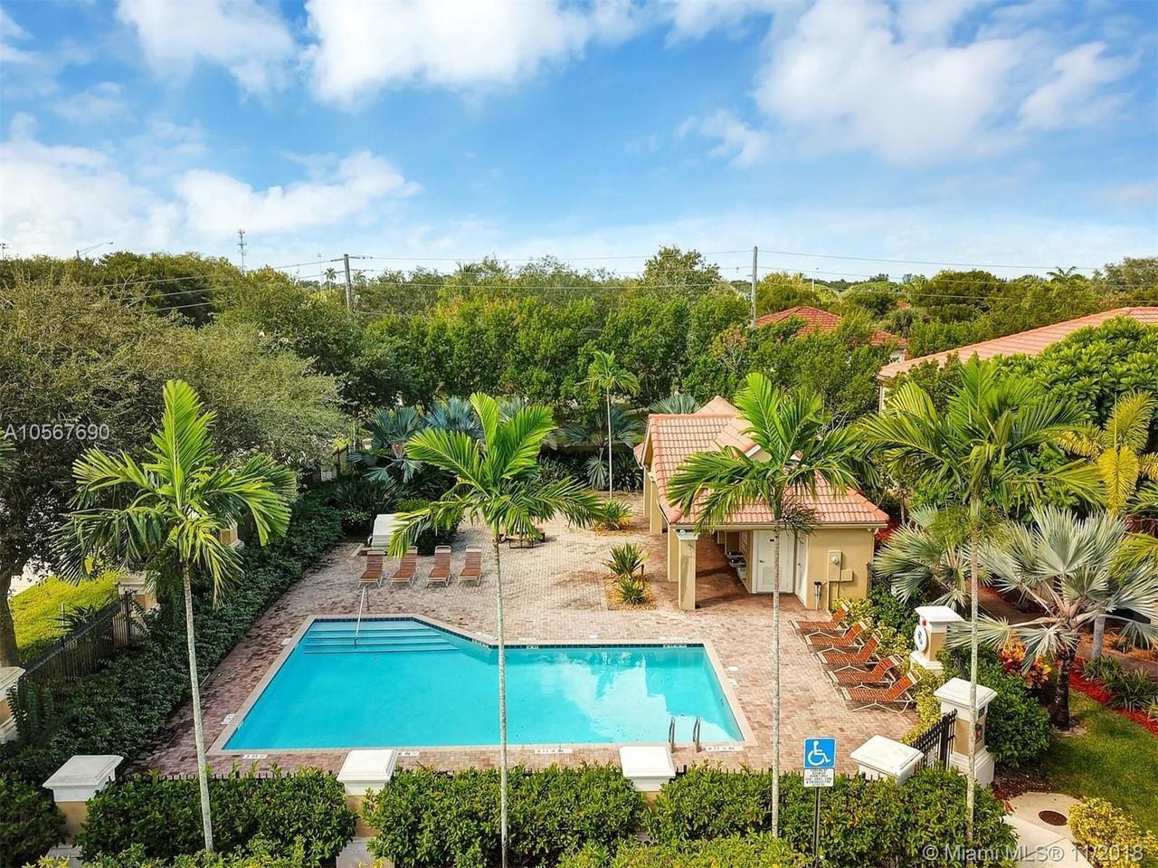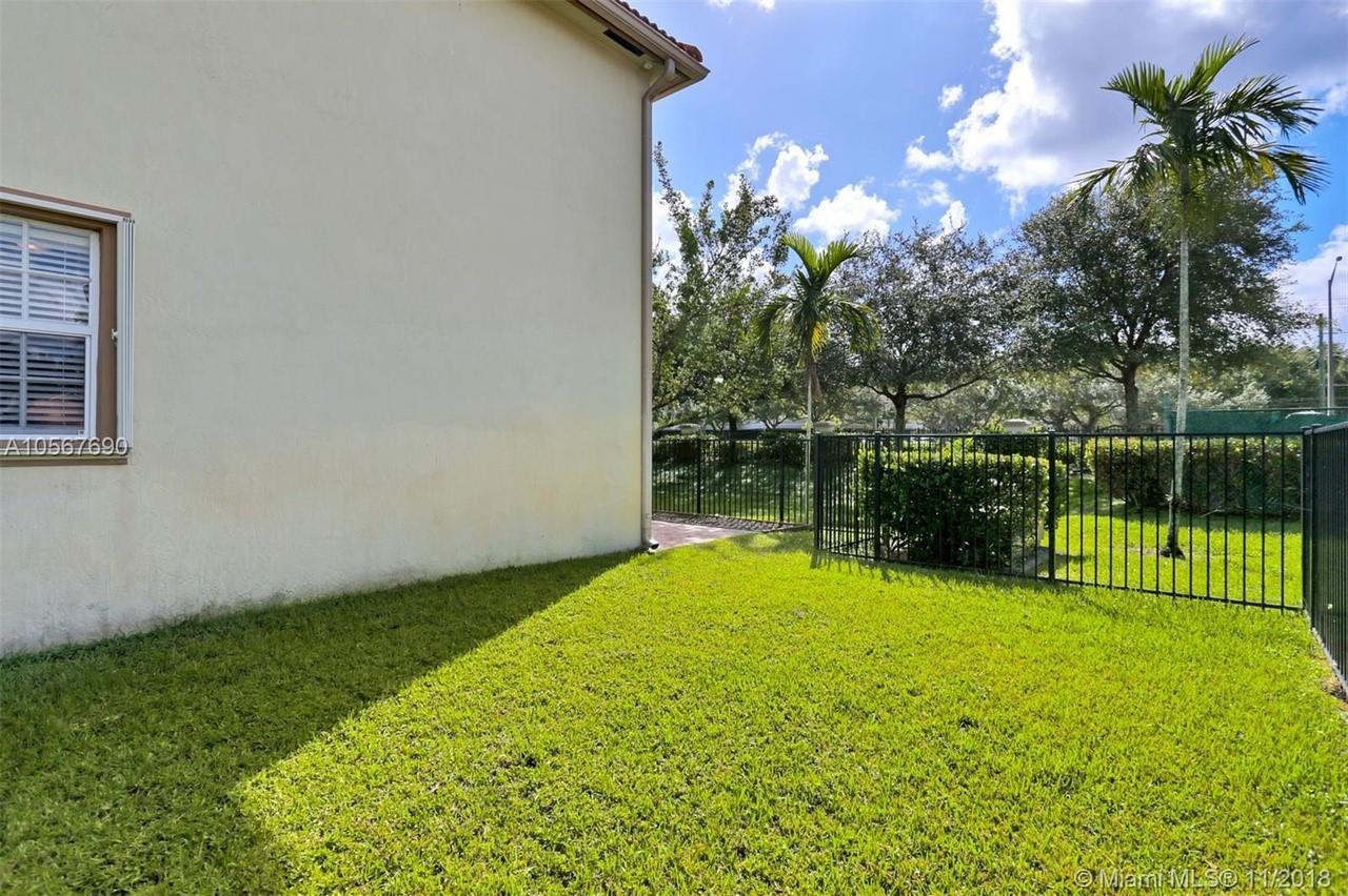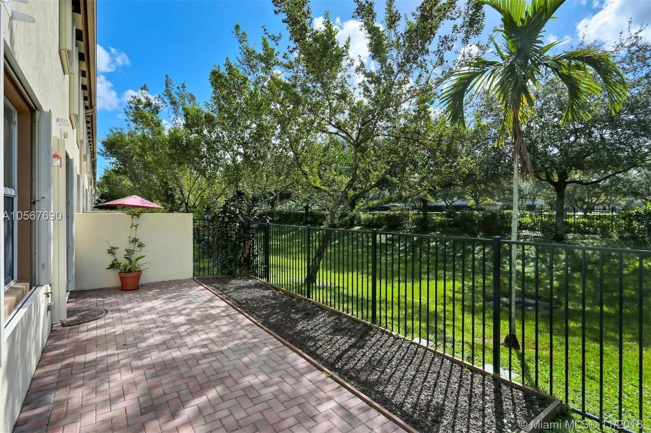 Picture perfect! Corner unit townhome in sought after community .One of few units with a fenced wraparound yard!Located across the community pool & on a dead-end street. This home offers an open floor plan with high ceilings, tile floors throughout 1st floor, lots of windows bringing in natural lights. Beautiful redone kitchen. Nice size Family room. Upstairs features gorgeous wood floors throughout, large Master bedroom with a walk-in closet, vaulted ceilings. Remodeled Master bath with walk-in shower, Granite top vanity with 2 sinks, Laundry closet upstairs, mounted ceiling speakers throughout the home, Accordion shutters in back and on the side windows on both floors, along with hurricane impact windows in front. Top rated schools. Homes in this community rarely become available. Hurry!