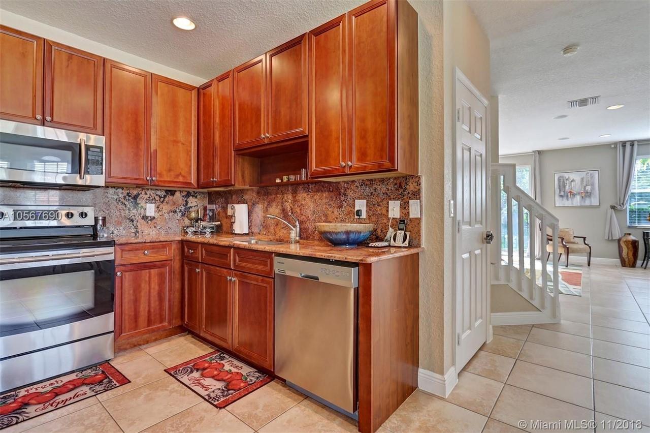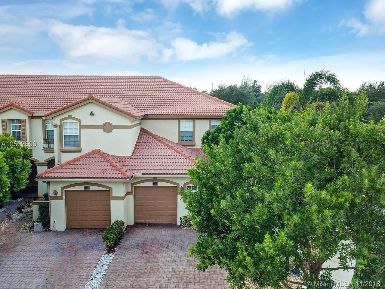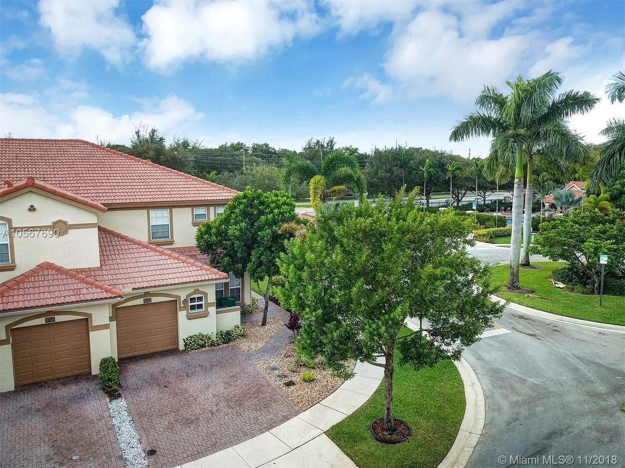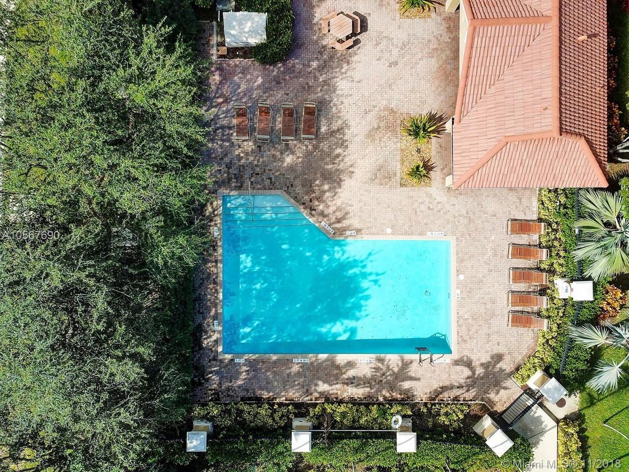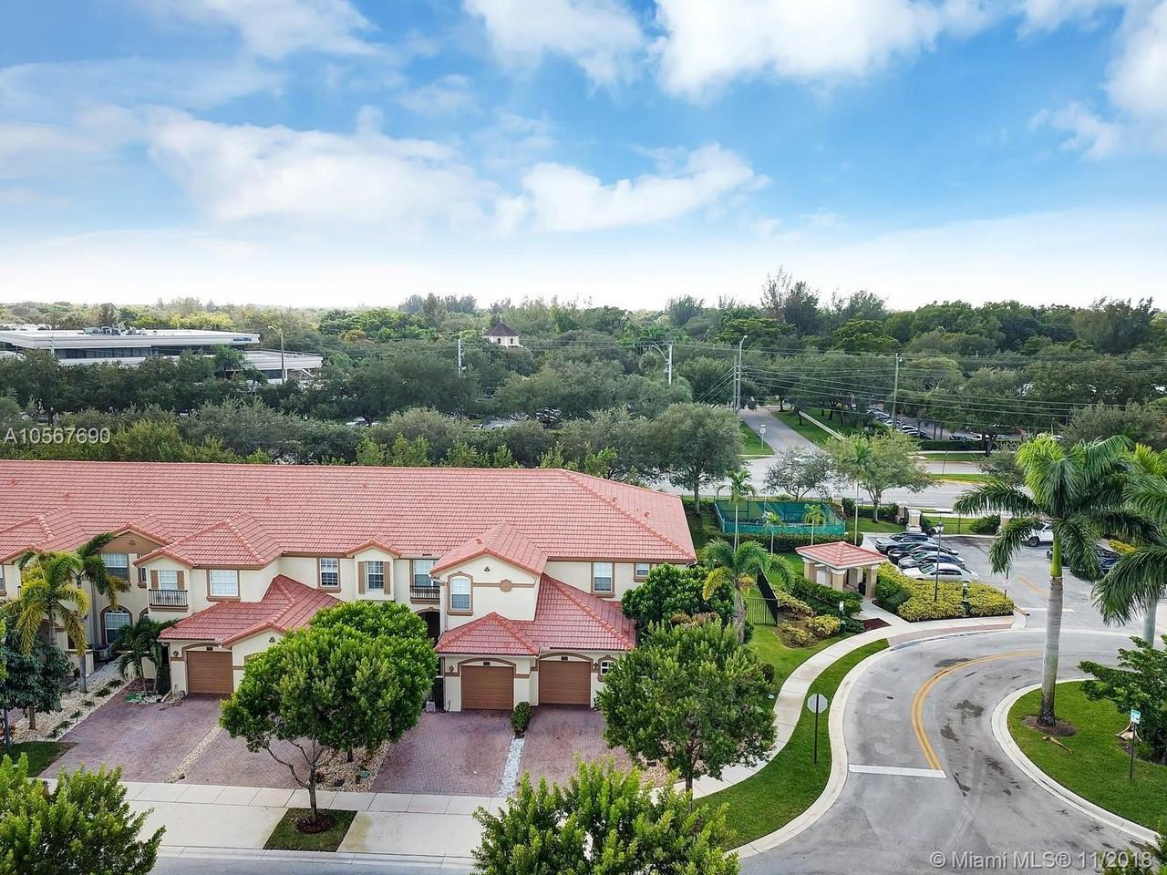Picture perfect! Corner unit townhome in sought after community .One of few units with a fenced wraparound yard!Located across the community pool & on a dead-end street. This home offers an open floor plan with high ceilings, tile floors throughout 1st floor, lots of windows bringing in natural lights. Beautiful redone kitchen. Nice size Family room. Upstairs features gorgeous wood floors throughout, large Master bedroom with a walk-in closet, vaulted ceilings. Remodeled Master bath with walk-in shower, Granite top vanity with 2 sinks, Laundry closet upstairs, mounted ceiling speakers throughout the home, Accordion shutters in back and on the side windows on both floors, along with hurricane impact windows in front. Top rated schools. Homes in this community rarely become available. Hurry!