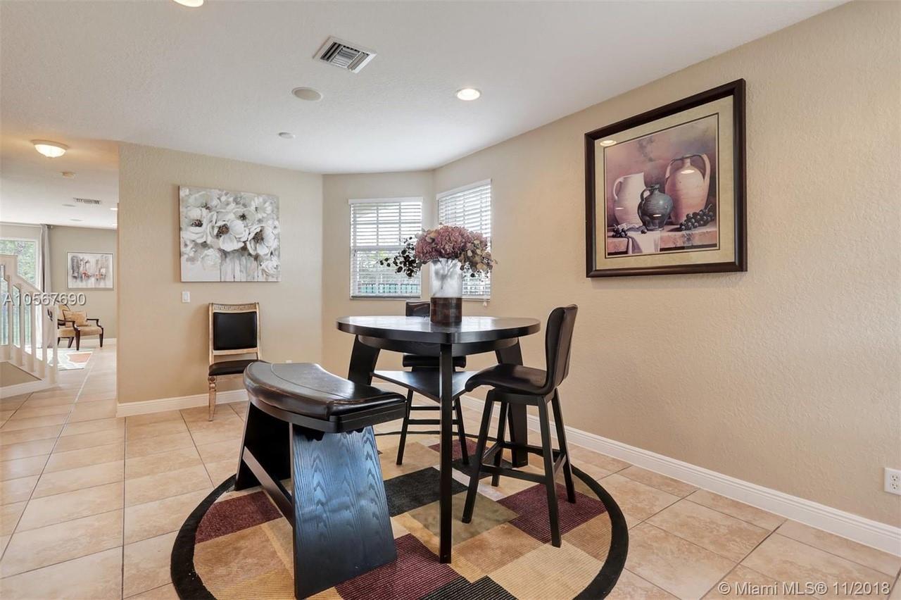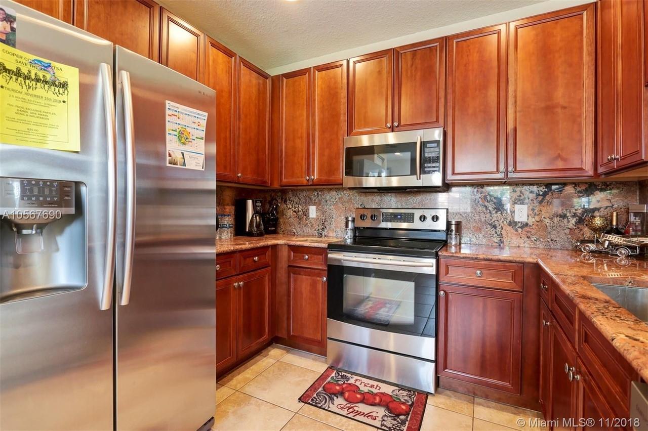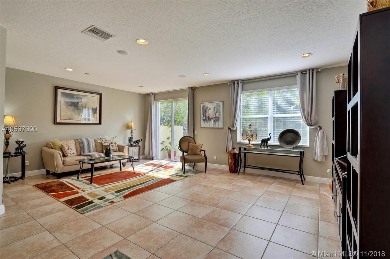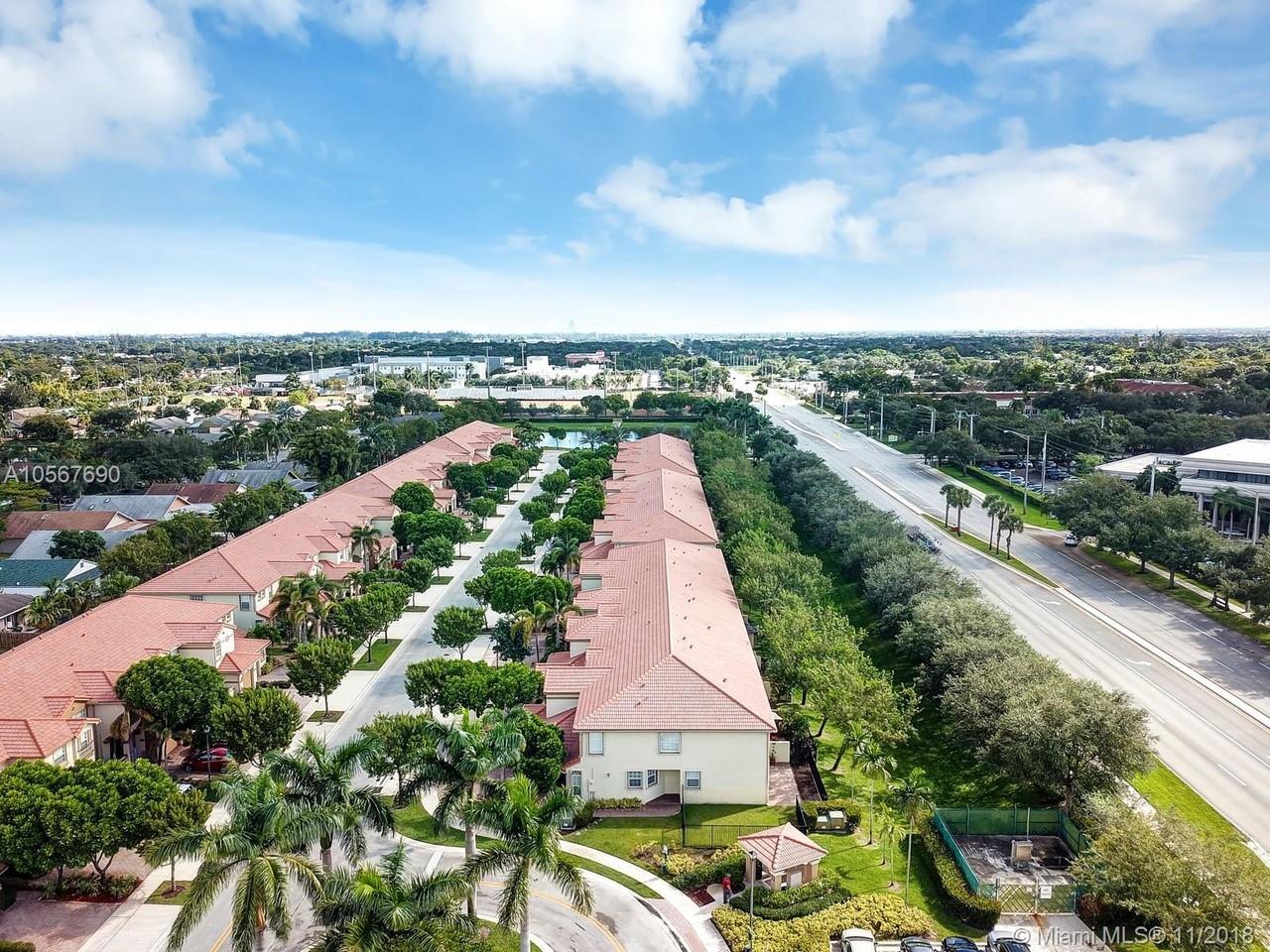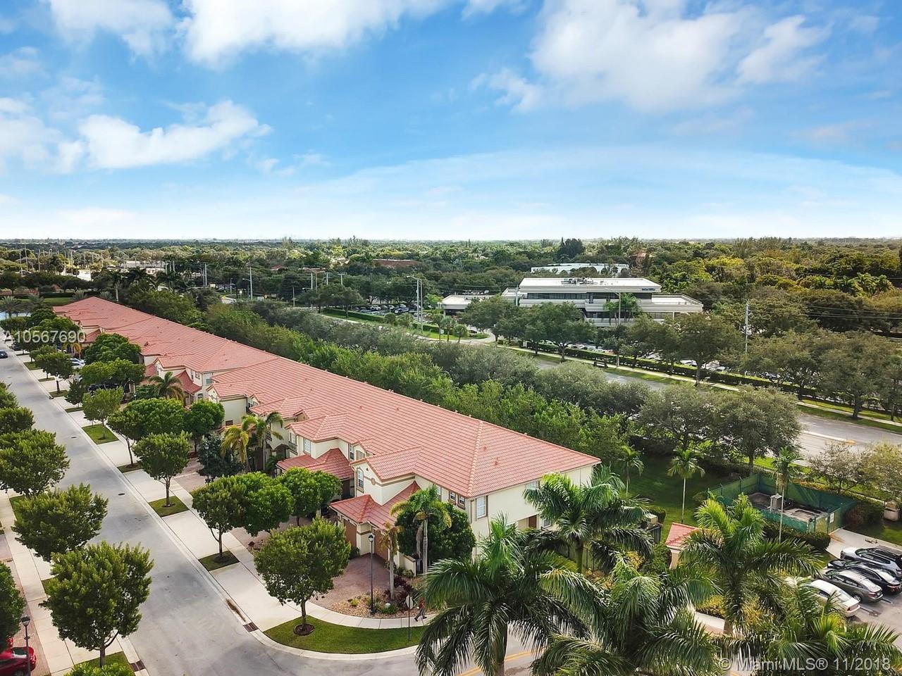 Picture perfect! Corner unit townhome in sought after community .One of few units with a fenced wraparound yard!Located across the community pool & on a dead-end street. This home offers an open floor plan with high ceilings, tile floors throughout 1st floor, lots of windows bringing in natural lights. Beautiful redone kitchen. Nice size Family room. Upstairs features gorgeous wood floors throughout, large Master bedroom with a walk-in closet, vaulted ceilings. Remodeled Master bath with walk-in shower, Granite top vanity with 2 sinks, Laundry closet upstairs, mounted ceiling speakers throughout the home, Accordion shutters in back and on the side windows on both floors, along with hurricane impact windows in front. Top rated schools. Homes in this community rarely become available. Hurry!