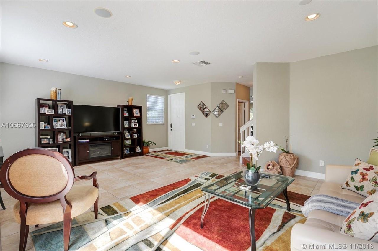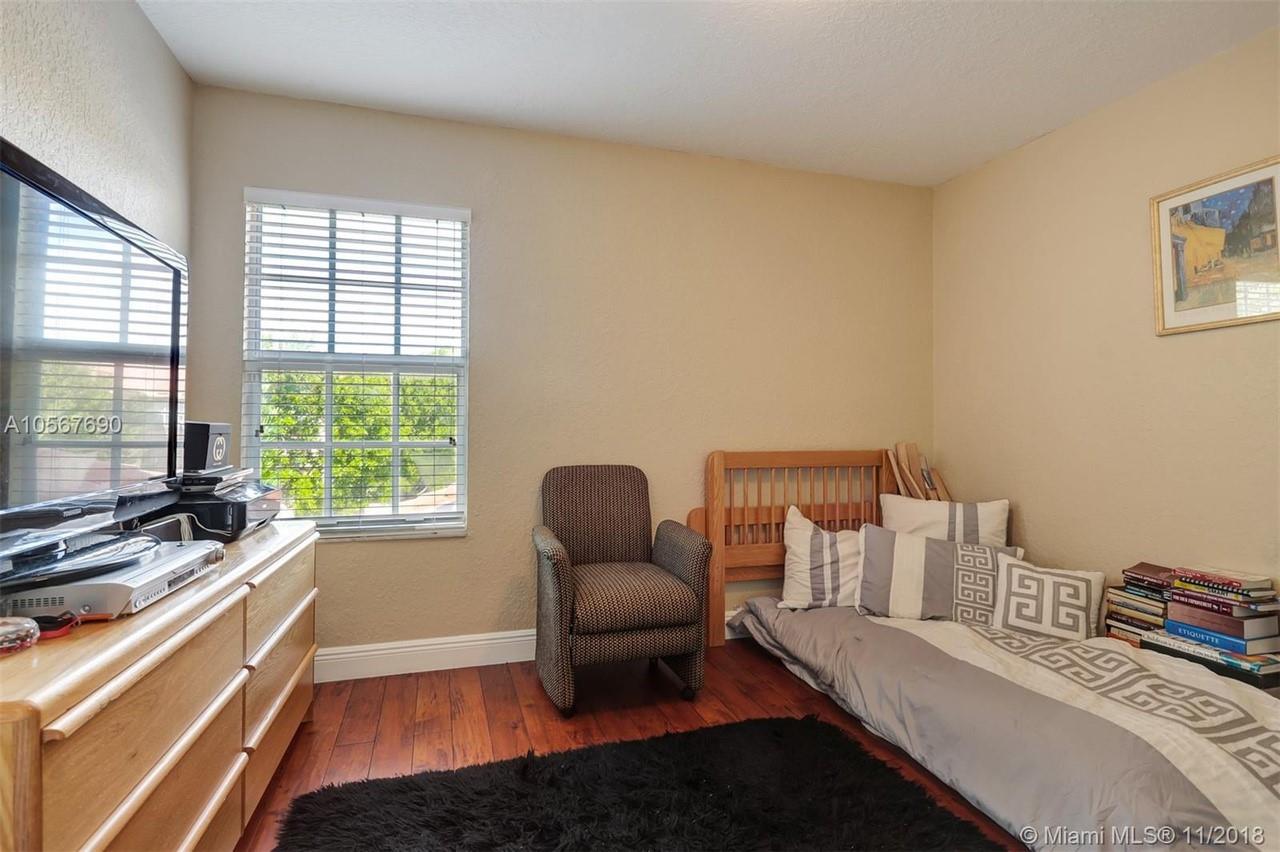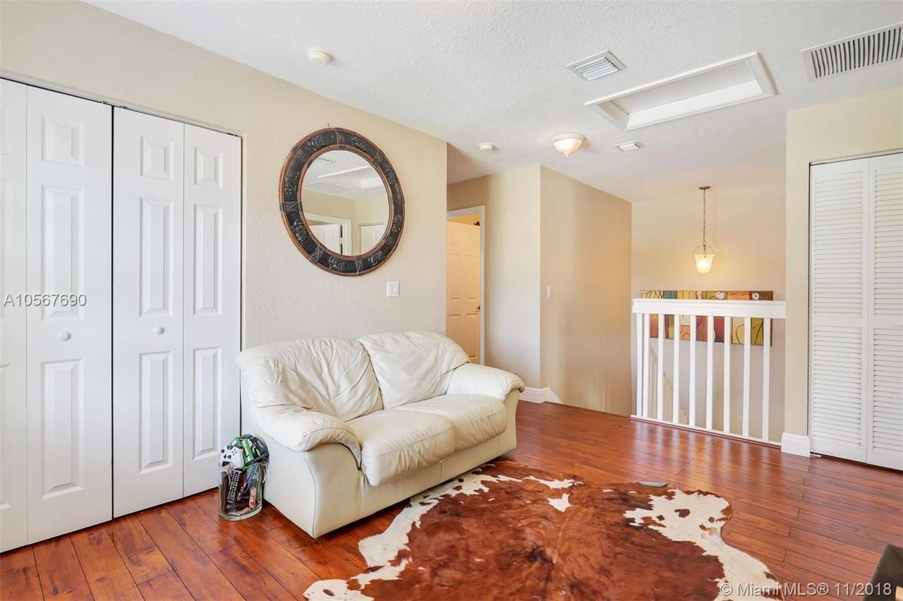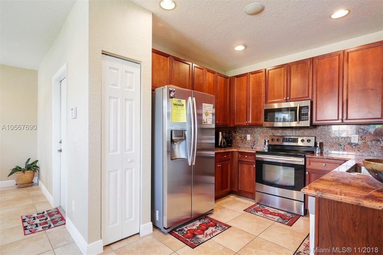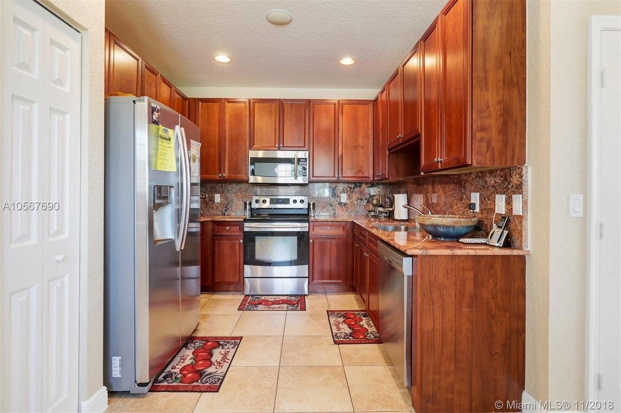 Picture perfect! Corner unit townhome in sought after community .One of few units with a fenced wraparound yard!Located across the community pool & on a dead-end street. This home offers an open floor plan with high ceilings, tile floors throughout 1st floor, lots of windows bringing in natural lights. Beautiful redone kitchen. Nice size Family room. Upstairs features gorgeous wood floors throughout, large Master bedroom with a walk-in closet, vaulted ceilings. Remodeled Master bath with walk-in shower, Granite top vanity with 2 sinks, Laundry closet upstairs, mounted ceiling speakers throughout the home, Accordion shutters in back and on the side windows on both floors, along with hurricane impact windows in front. Top rated schools. Homes in this community rarely become available. Hurry!