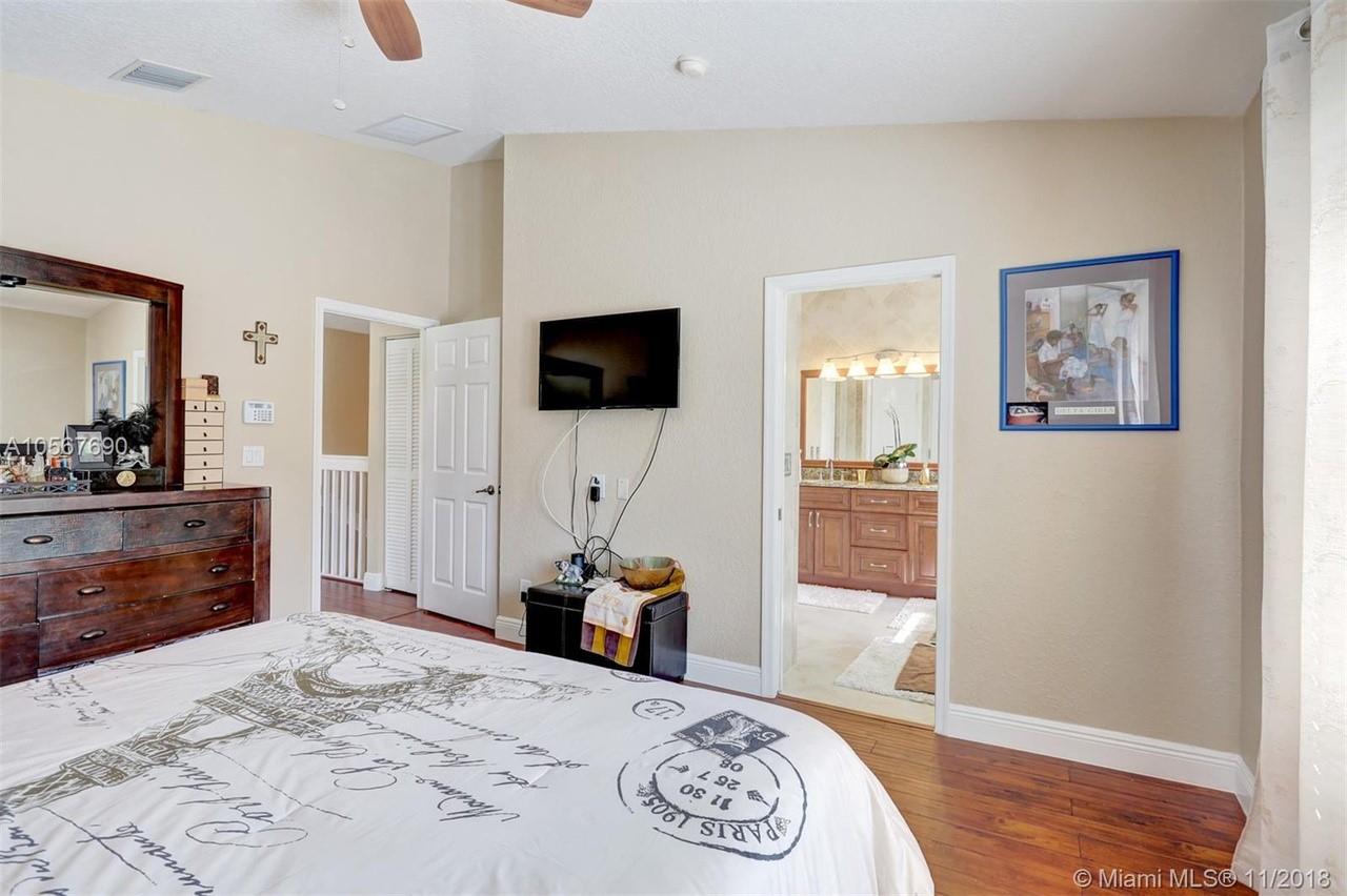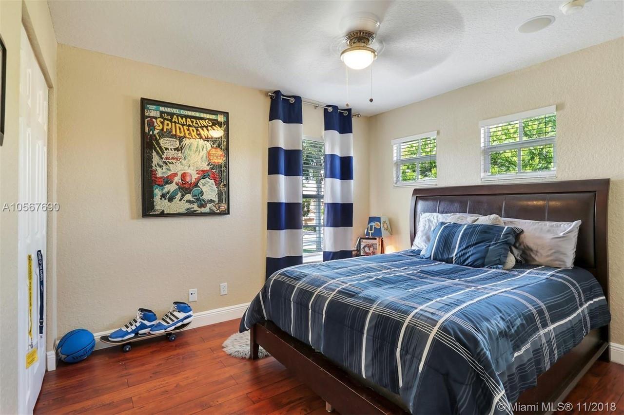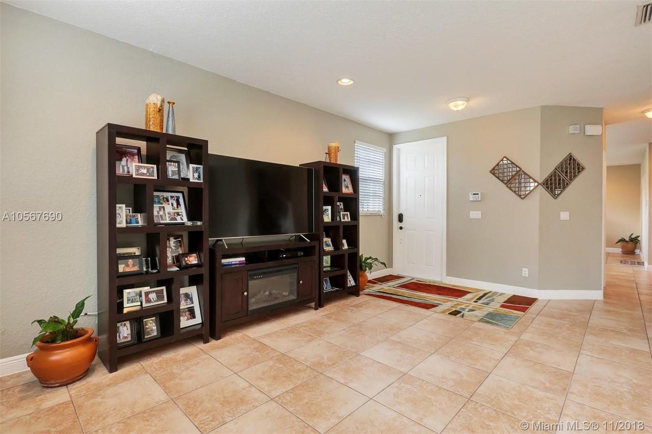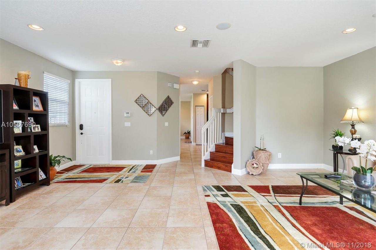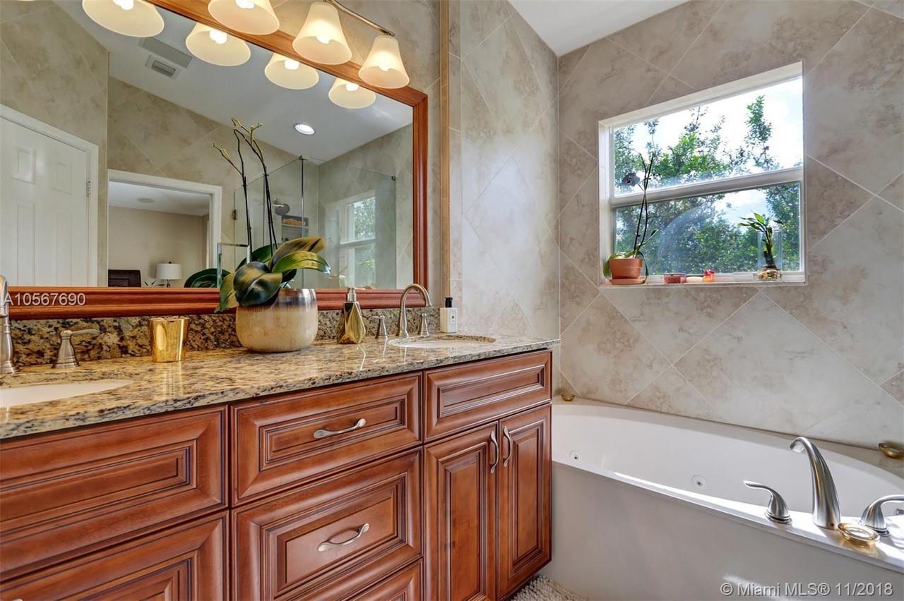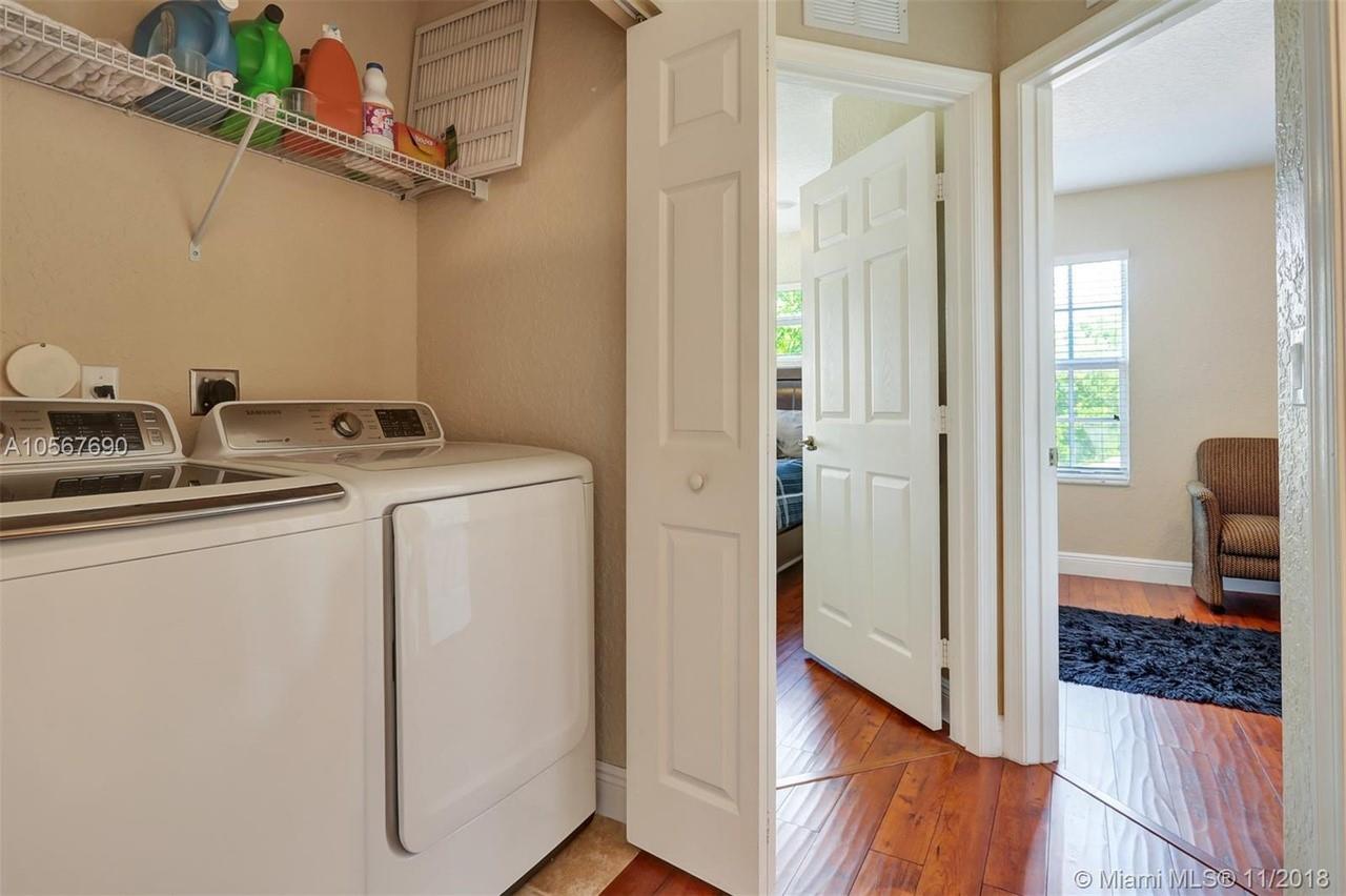Picture perfect! Corner unit townhome in sought after community .One of few units with a fenced wraparound yard!Located across the community pool & on a dead-end street. This home offers an open floor plan with high ceilings, tile floors throughout 1st floor, lots of windows bringing in natural lights. Beautiful redone kitchen. Nice size Family room. Upstairs features gorgeous wood floors throughout, large Master bedroom with a walk-in closet, vaulted ceilings. Remodeled Master bath with walk-in shower, Granite top vanity with 2 sinks, Laundry closet upstairs, mounted ceiling speakers throughout the home, Accordion shutters in back and on the side windows on both floors, along with hurricane impact windows in front. Top rated schools. Homes in this community rarely become available. Hurry!