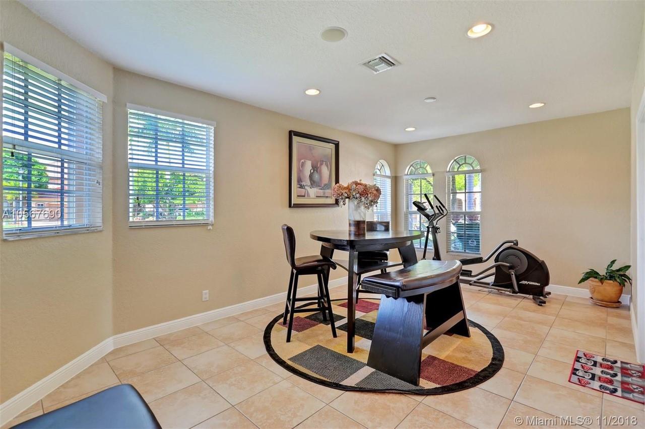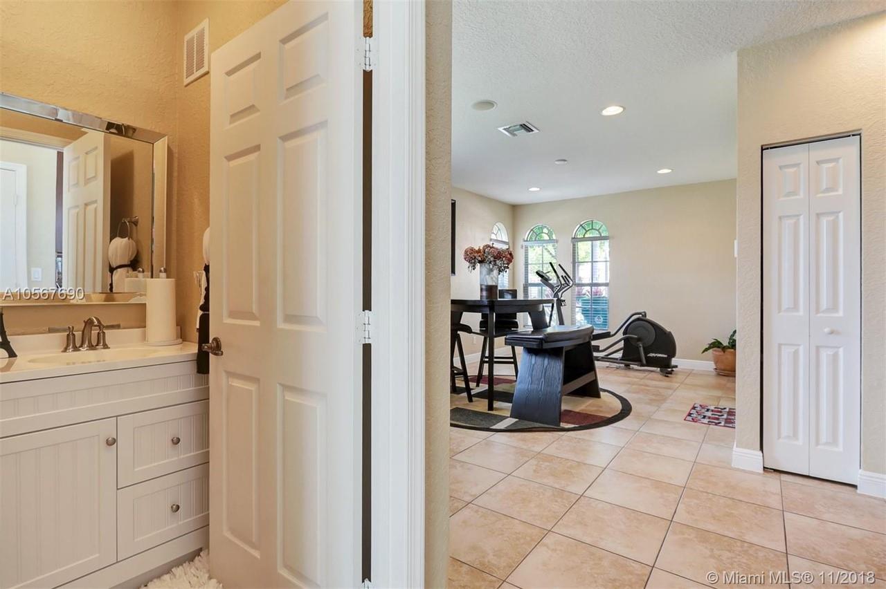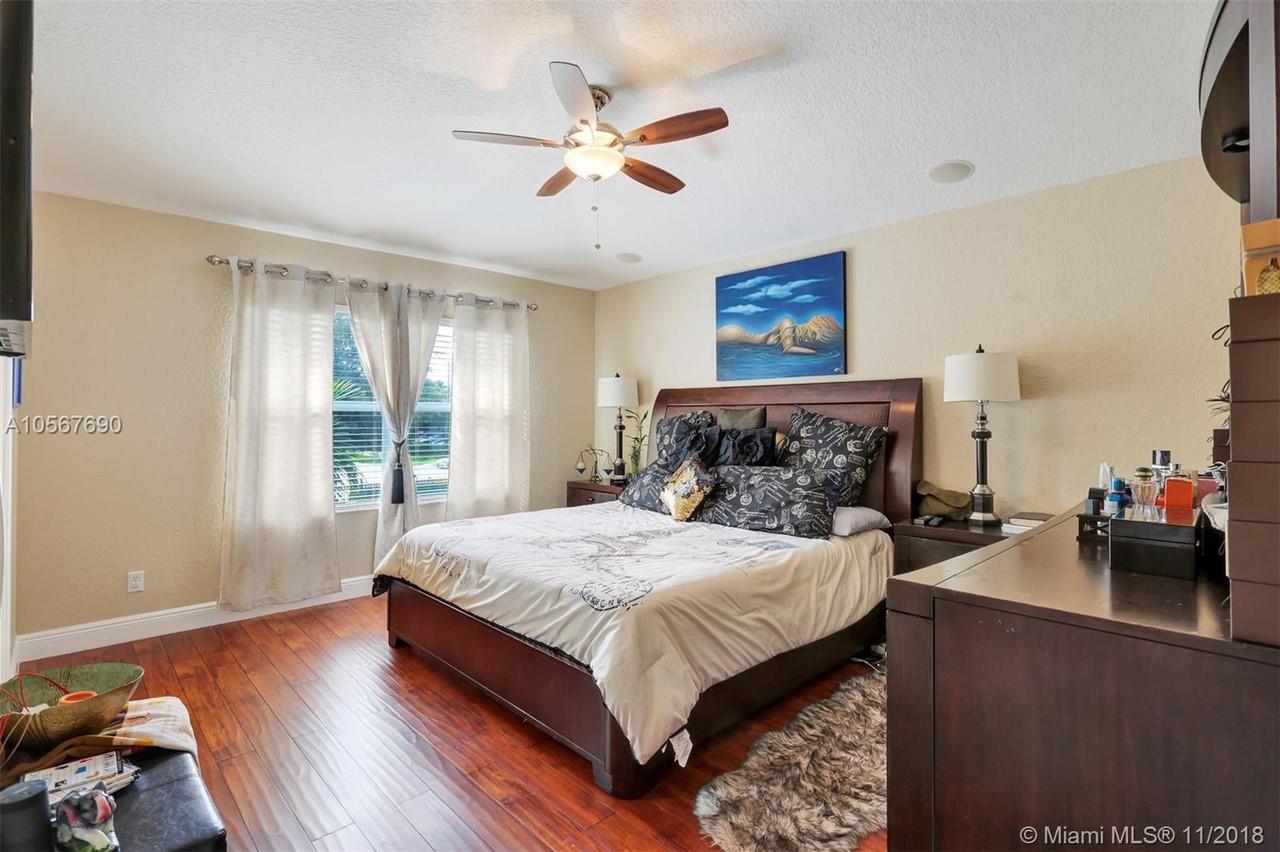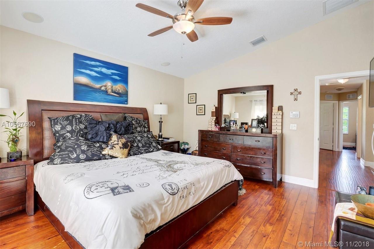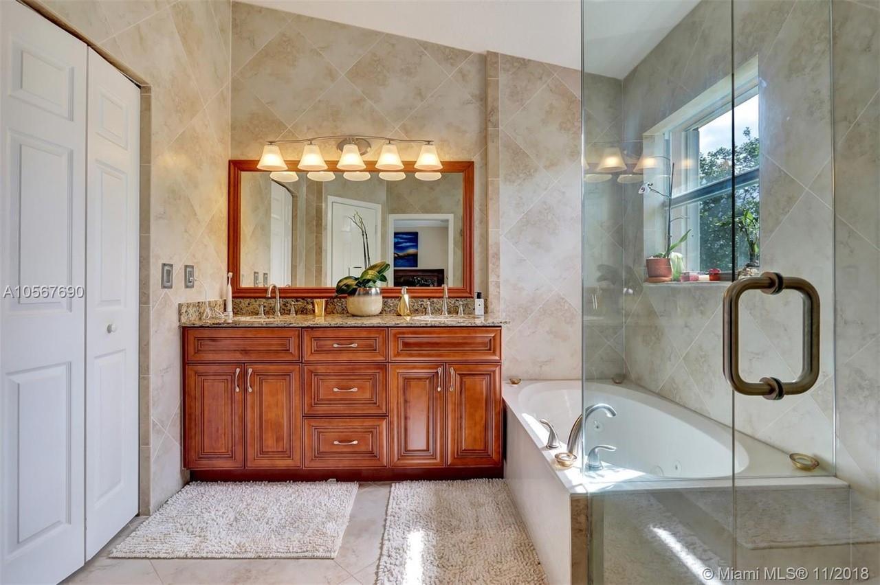 Picture perfect! Corner unit townhome in sought after community .One of few units with a fenced wraparound yard!Located across the community pool & on a dead-end street. This home offers an open floor plan with high ceilings, tile floors throughout 1st floor, lots of windows bringing in natural lights. Beautiful redone kitchen. Nice size Family room. Upstairs features gorgeous wood floors throughout, large Master bedroom with a walk-in closet, vaulted ceilings. Remodeled Master bath with walk-in shower, Granite top vanity with 2 sinks, Laundry closet upstairs, mounted ceiling speakers throughout the home, Accordion shutters in back and on the side windows on both floors, along with hurricane impact windows in front. Top rated schools. Homes in this community rarely become available. Hurry!
