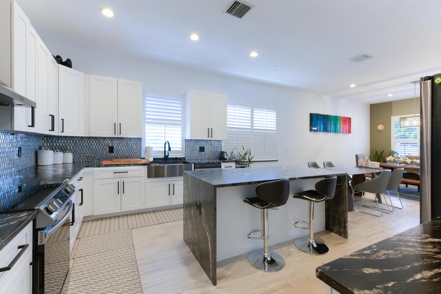 Welcome to the beautiful gated community of Andros Isle in the heart of West Palm Beach. This model offers one of the largest one story floor plans in the community with 2853 total square feet and 2237 square feet under air. During the past 18 months this home has been beautifully renovated throughout. As you enter the home you will immediately notice the extra large Luxury Vinyl Plank flooring and the high coffered ceilings in the living room with custom decorative paint. You will love this kitchen as it is made for those who love to cook as well as entertain. The kitchen was fully renovated last year with high end granite and a large granite waterfall island, custom tile backsplash, new dark stainless steel appliances throughout, and a stainless steel farmhouse sink.